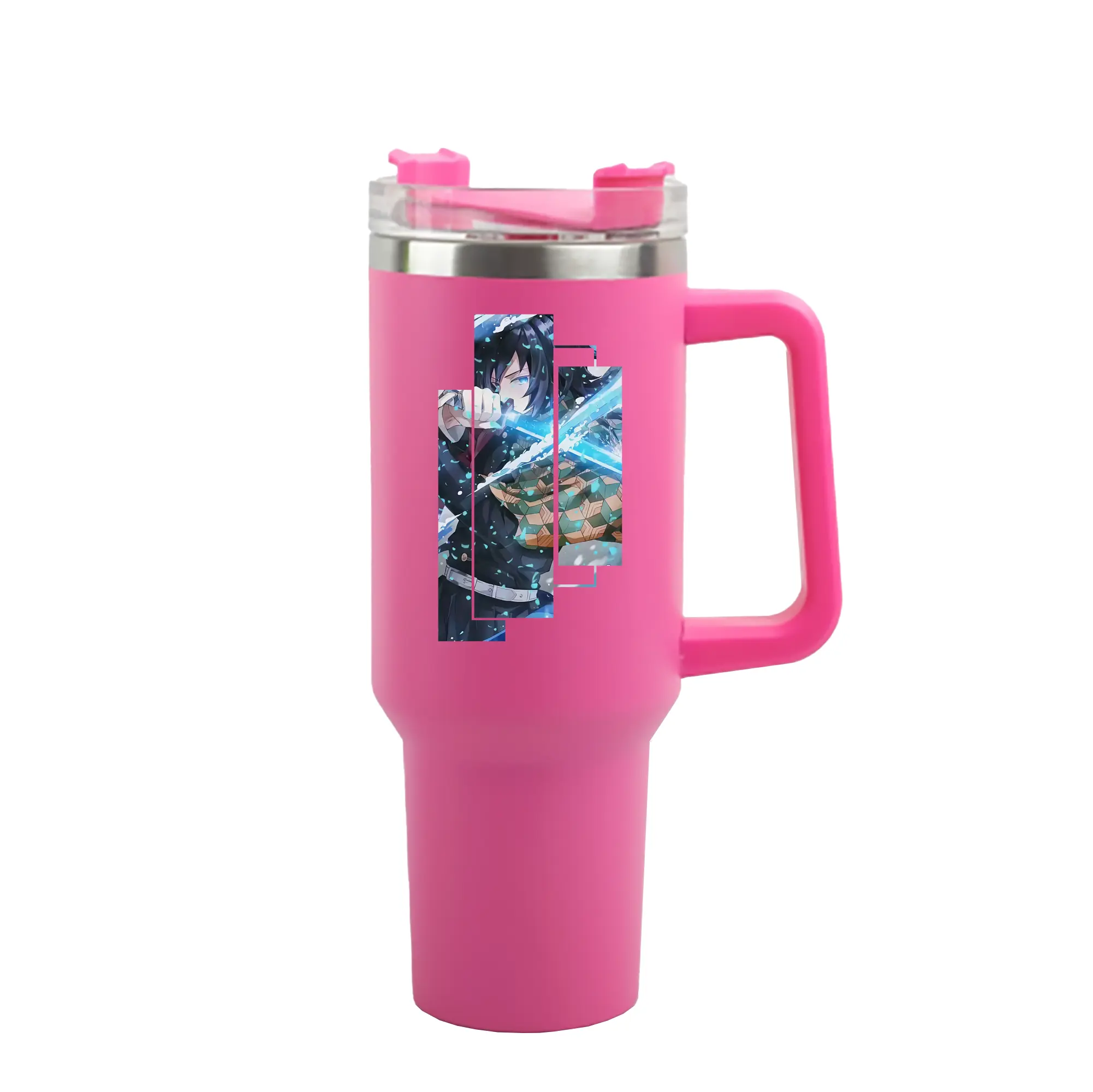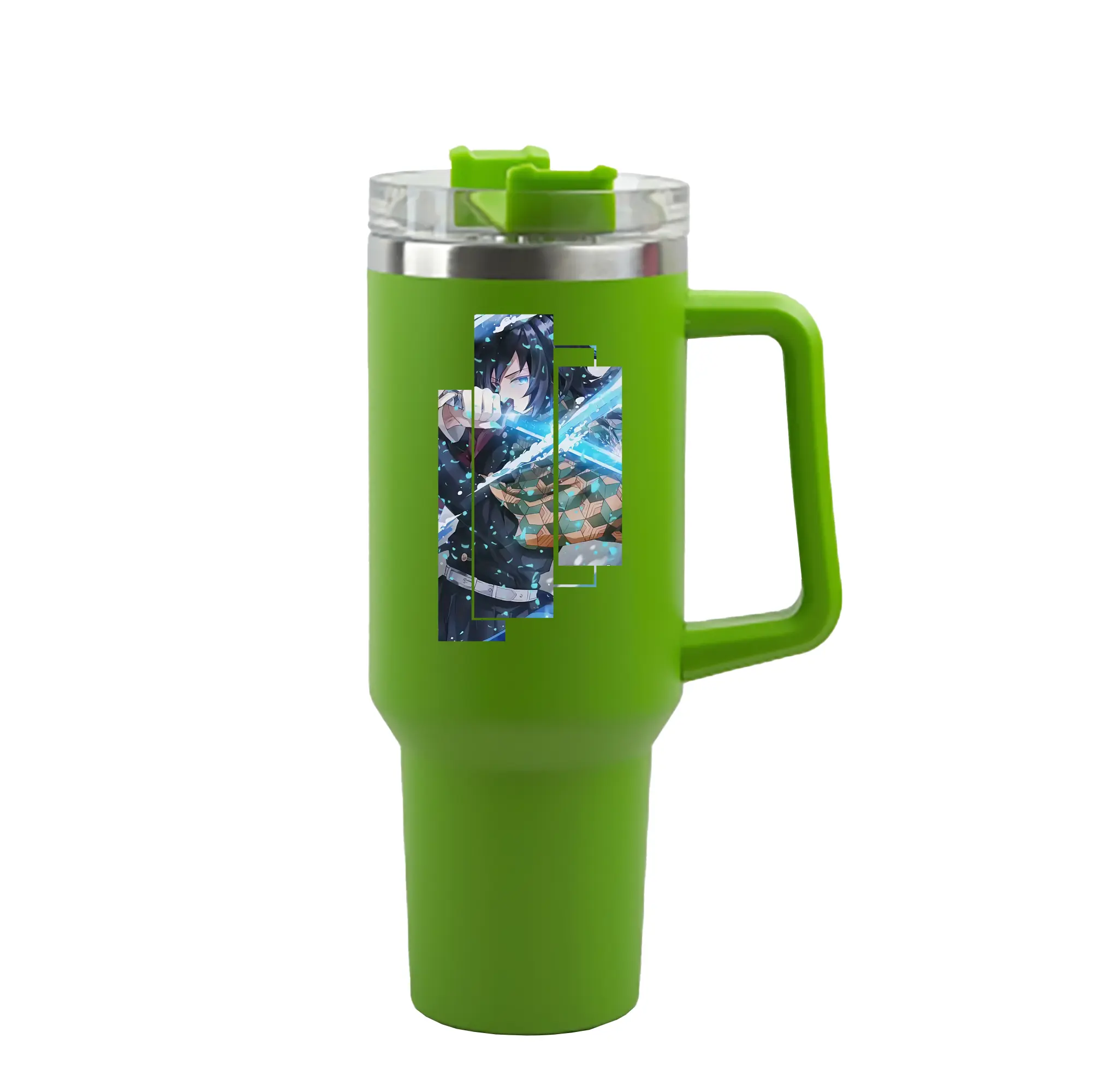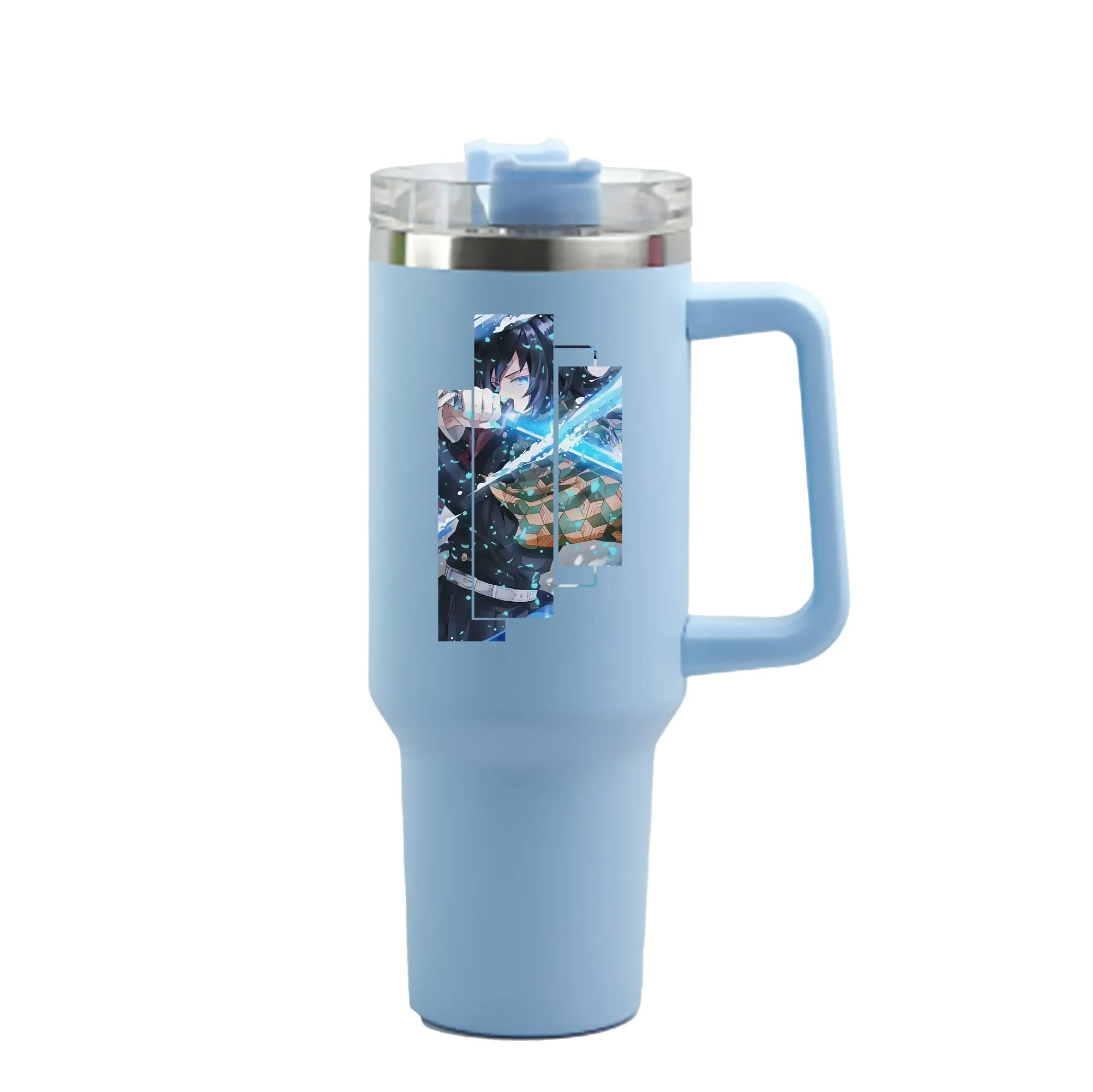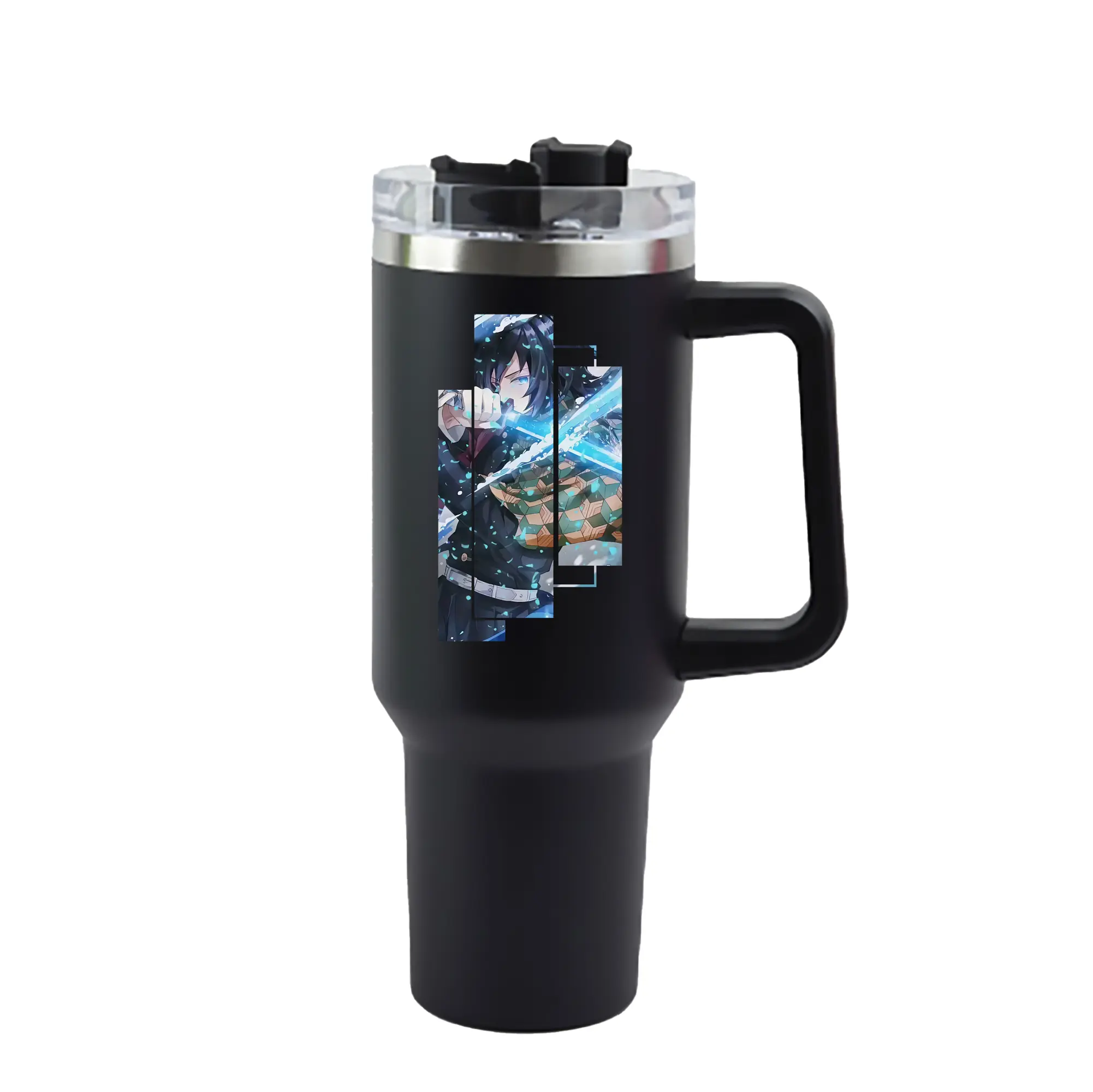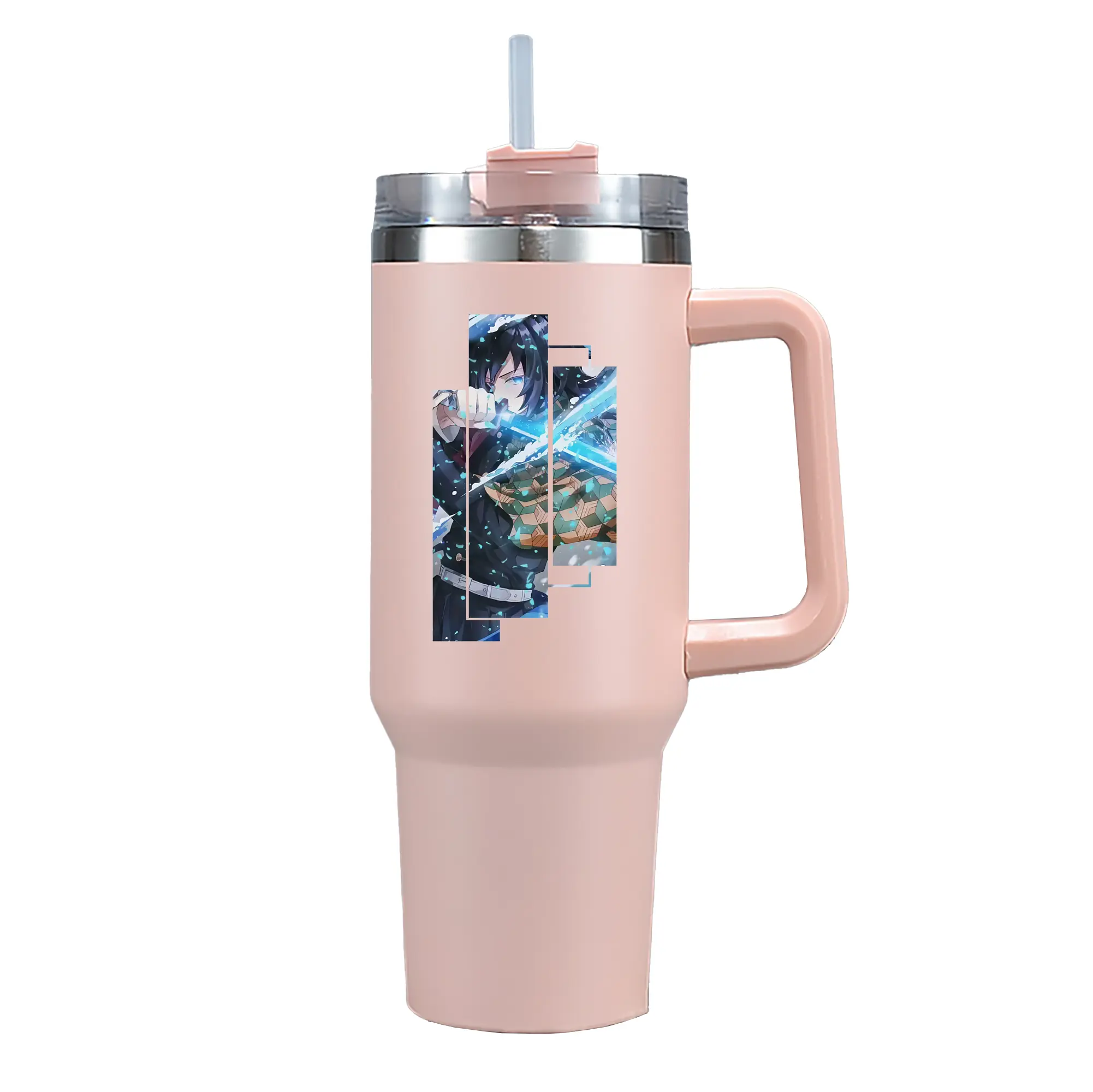 鬼滅の刃 グッズ,冨岡 義勇 - 1200mL 車用タンブラー ・ クリスタルステッカー ・ 304ステンレス 内側 ・ 201ステンレス 外側 ・ 保温 保冷 ・ ハンドル&ストロー付き ・ 通勤 ドライブ アウトドア用