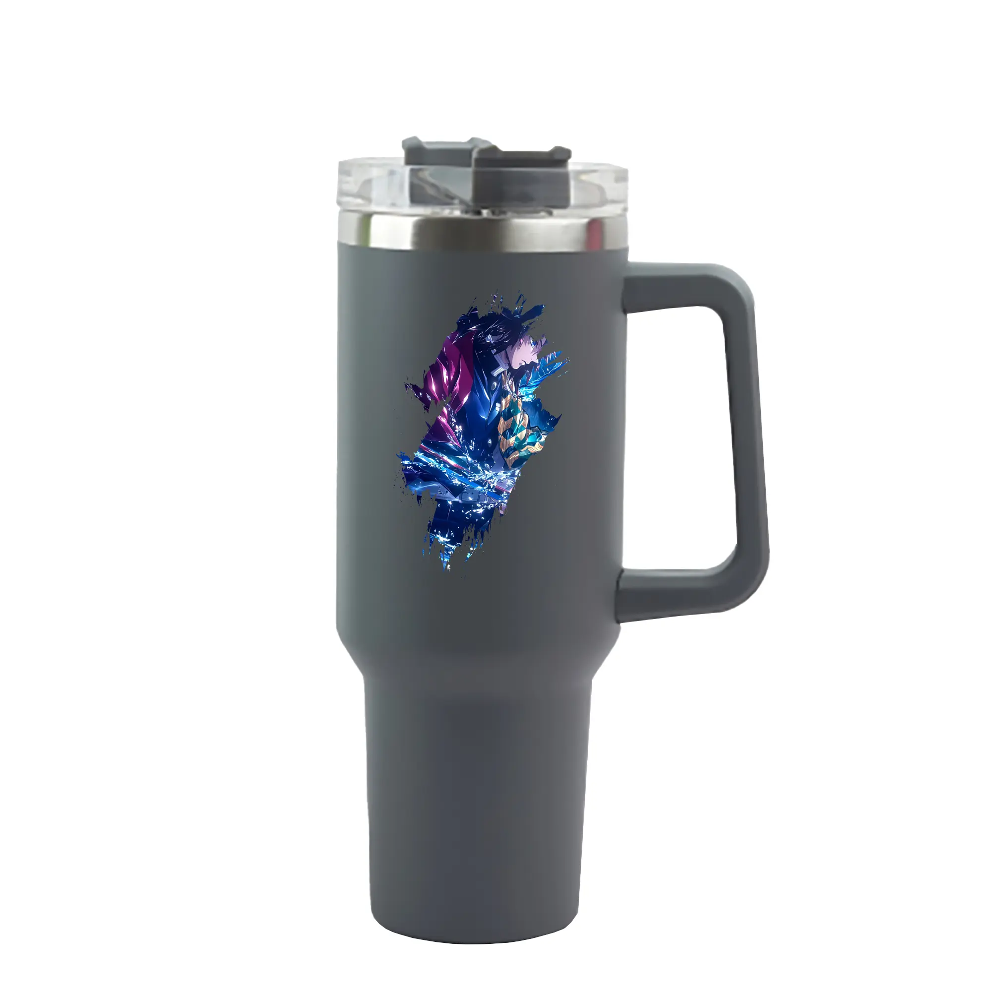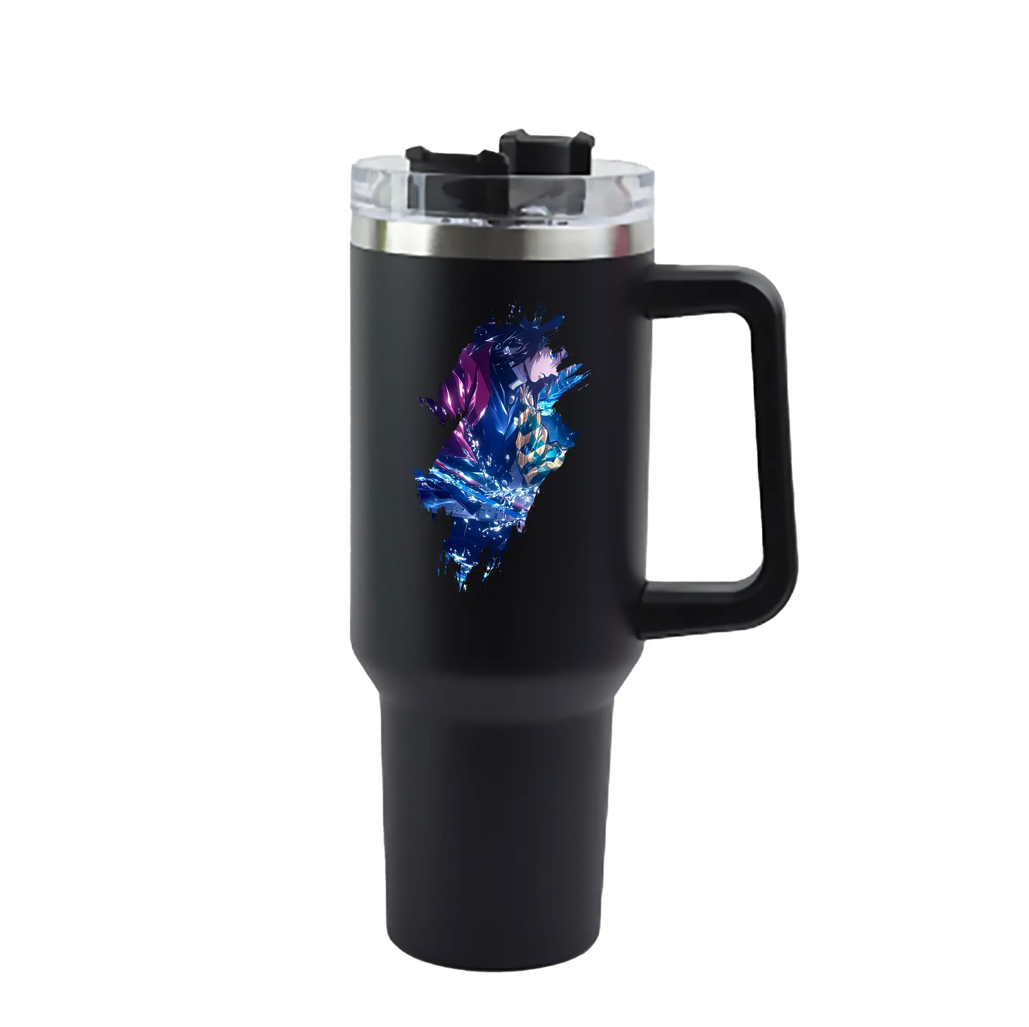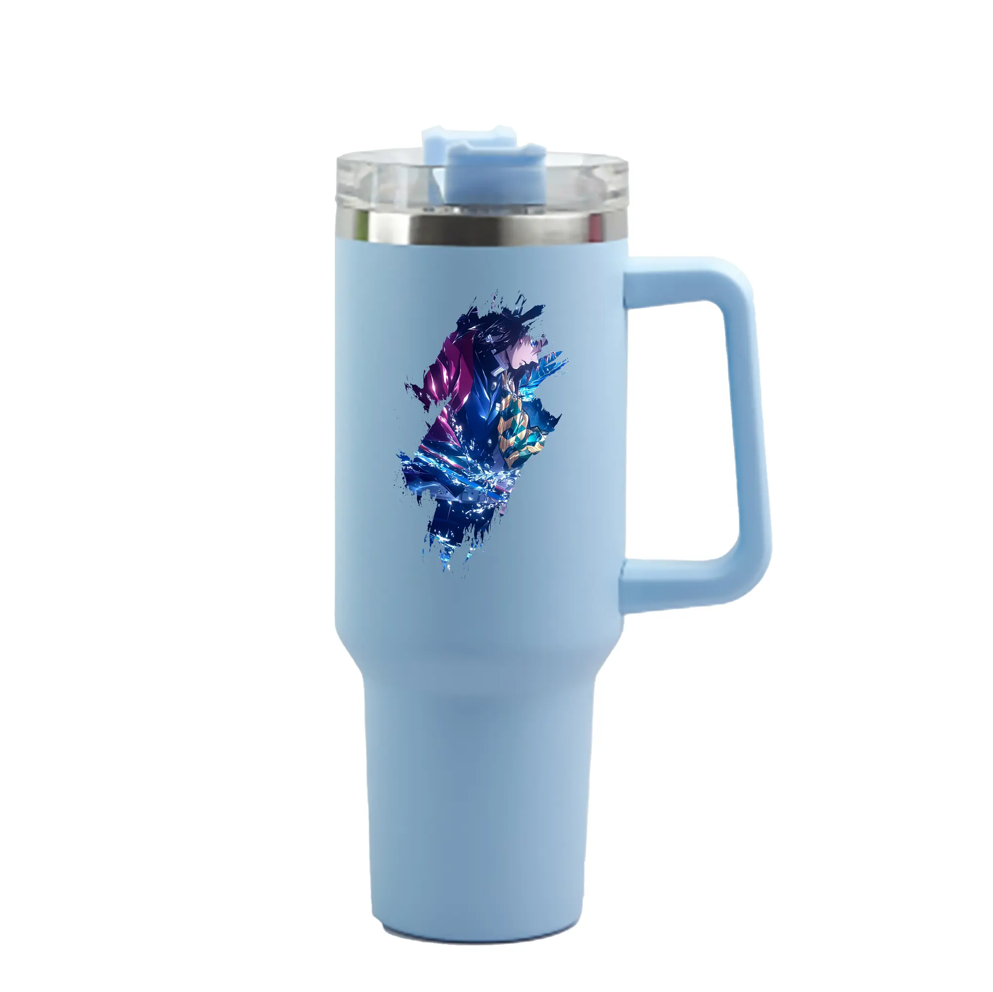 鬼滅の刃 グッズ,冨岡 義勇 - 1200mL 車用タンブラー ・ クリスタルステッカー ・ 304ステンレス 内側 ・ 201ステンレス 外側 ・ 保温 保冷 ・ ハンドル&ストロー付き ・ 通勤 ドライブ アウトドア用
