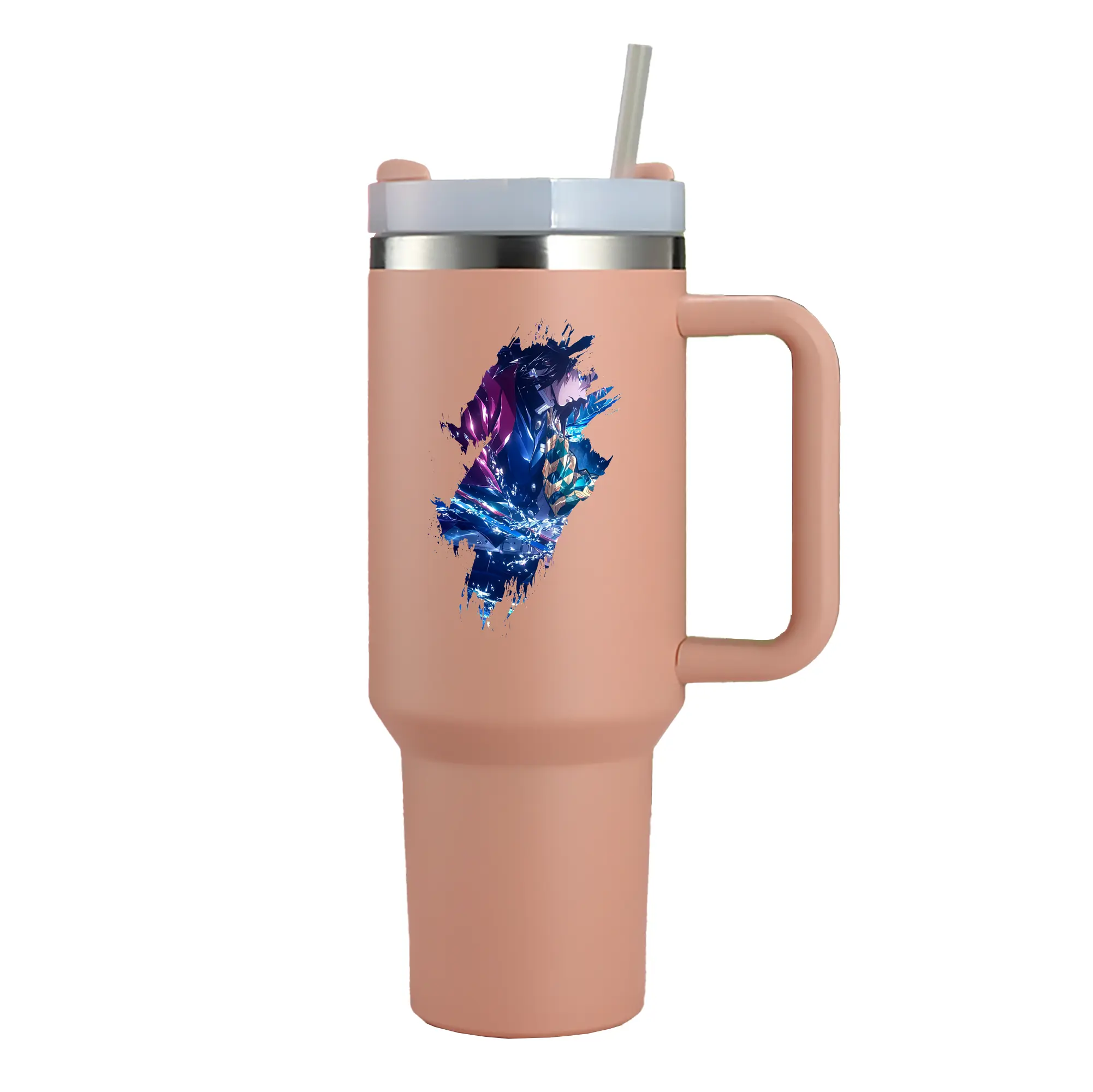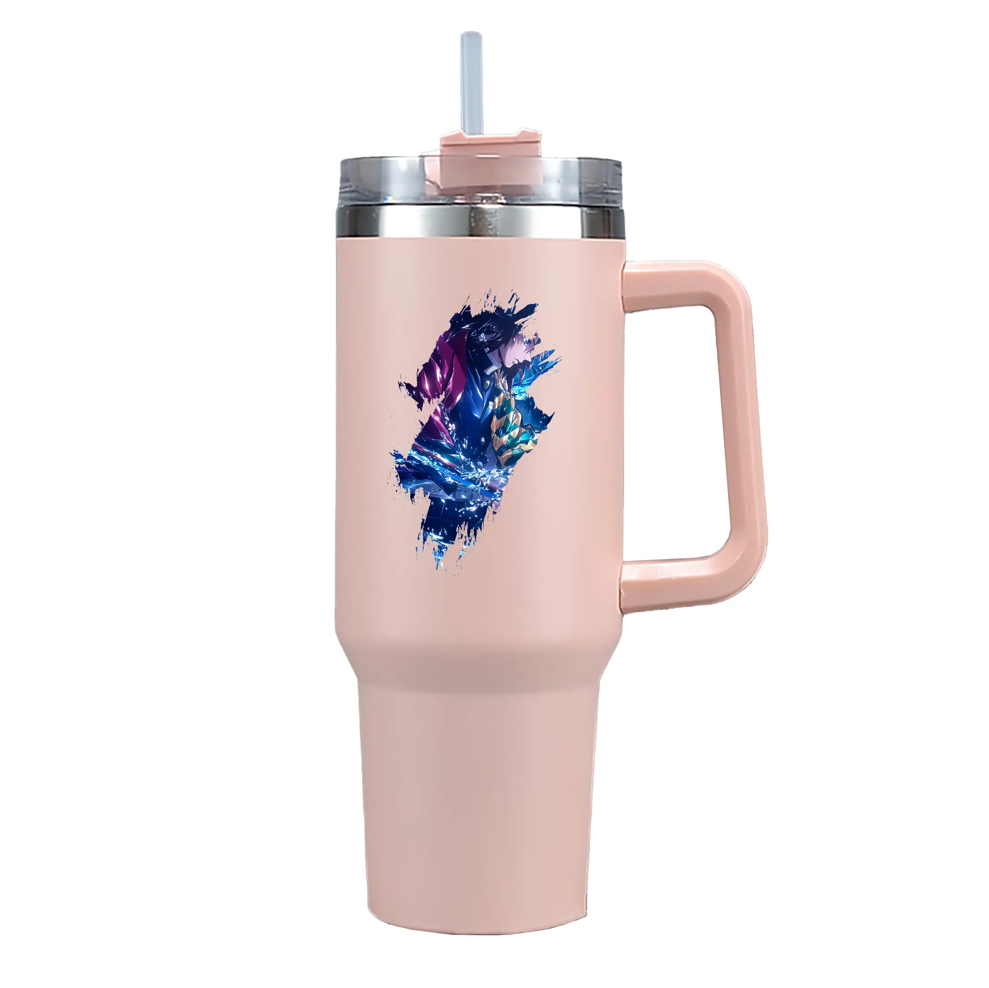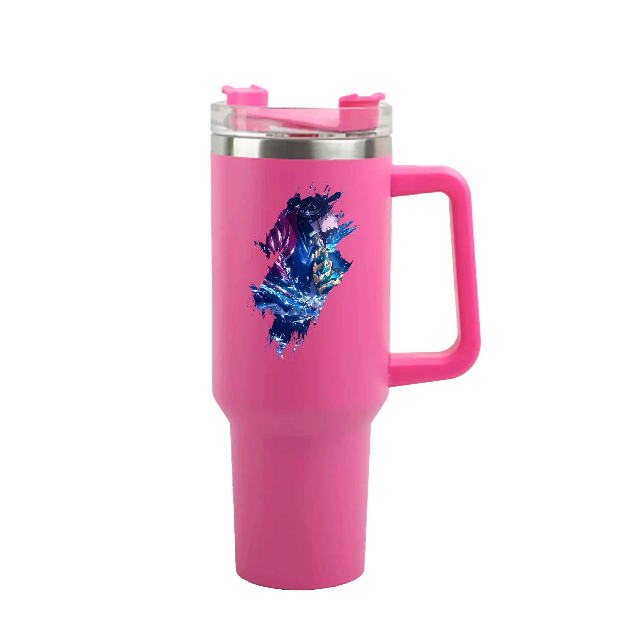 鬼滅の刃 グッズ,冨岡 義勇 - 1200mL 車用タンブラー ・ クリスタルステッカー ・ 304ステンレス 内側 ・ 201ステンレス 外側 ・ 保温 保冷 ・ ハンドル&ストロー付き ・ 通勤 ドライブ アウトドア用