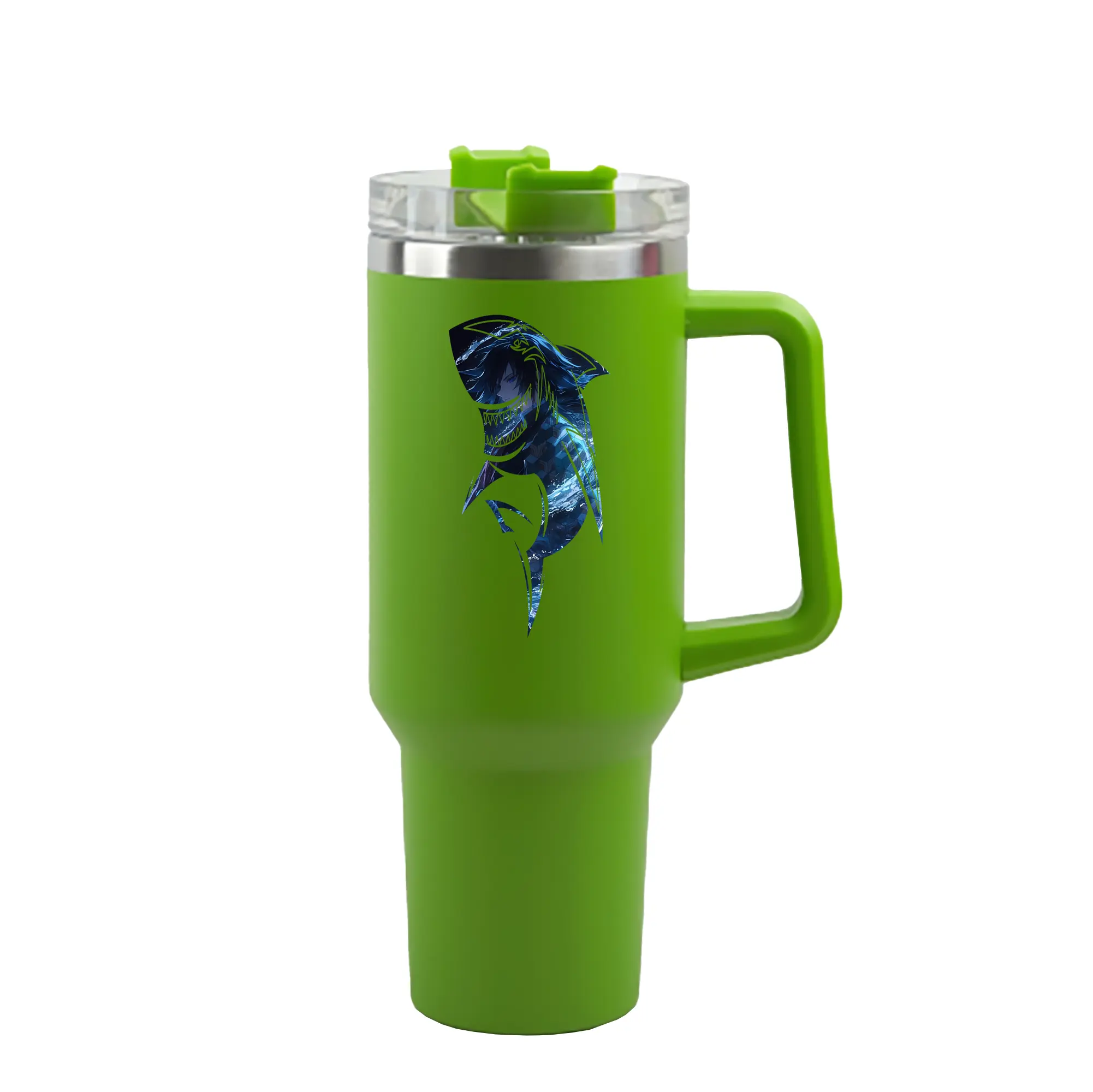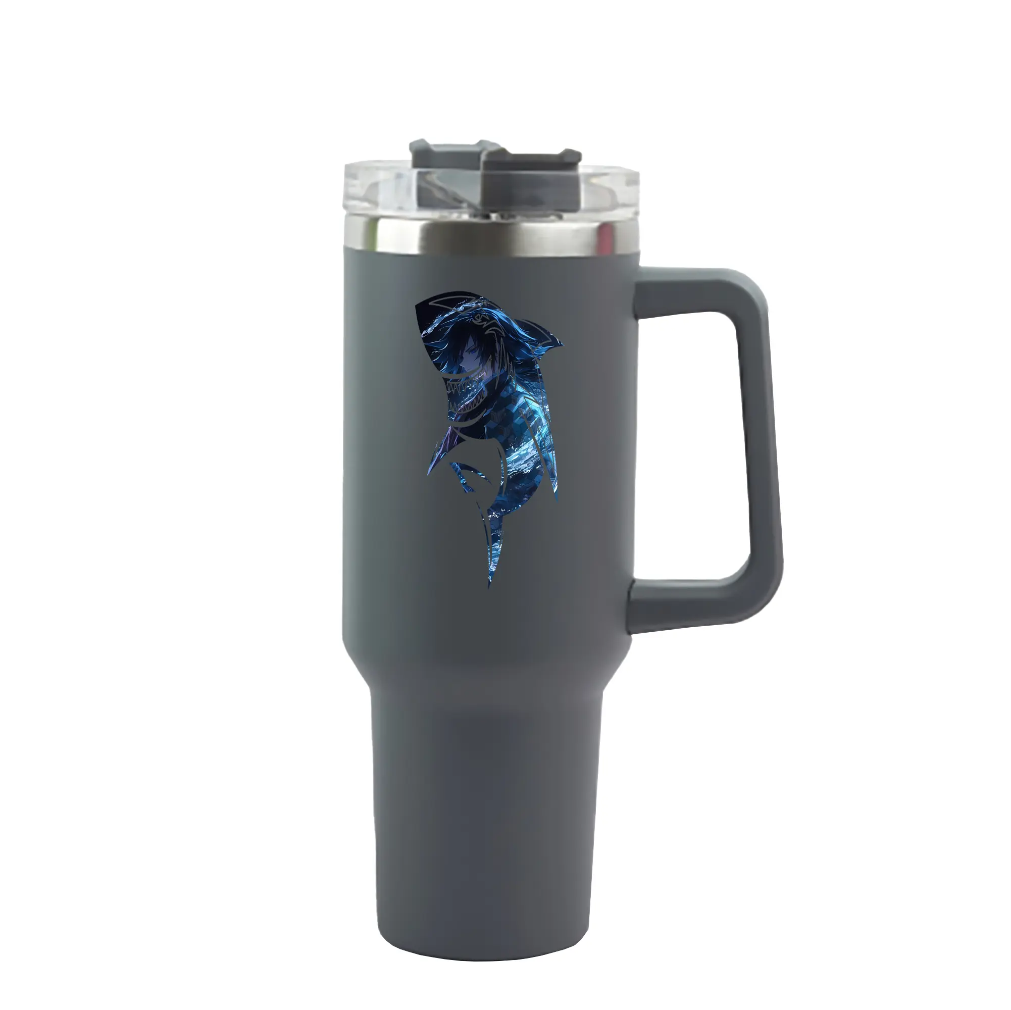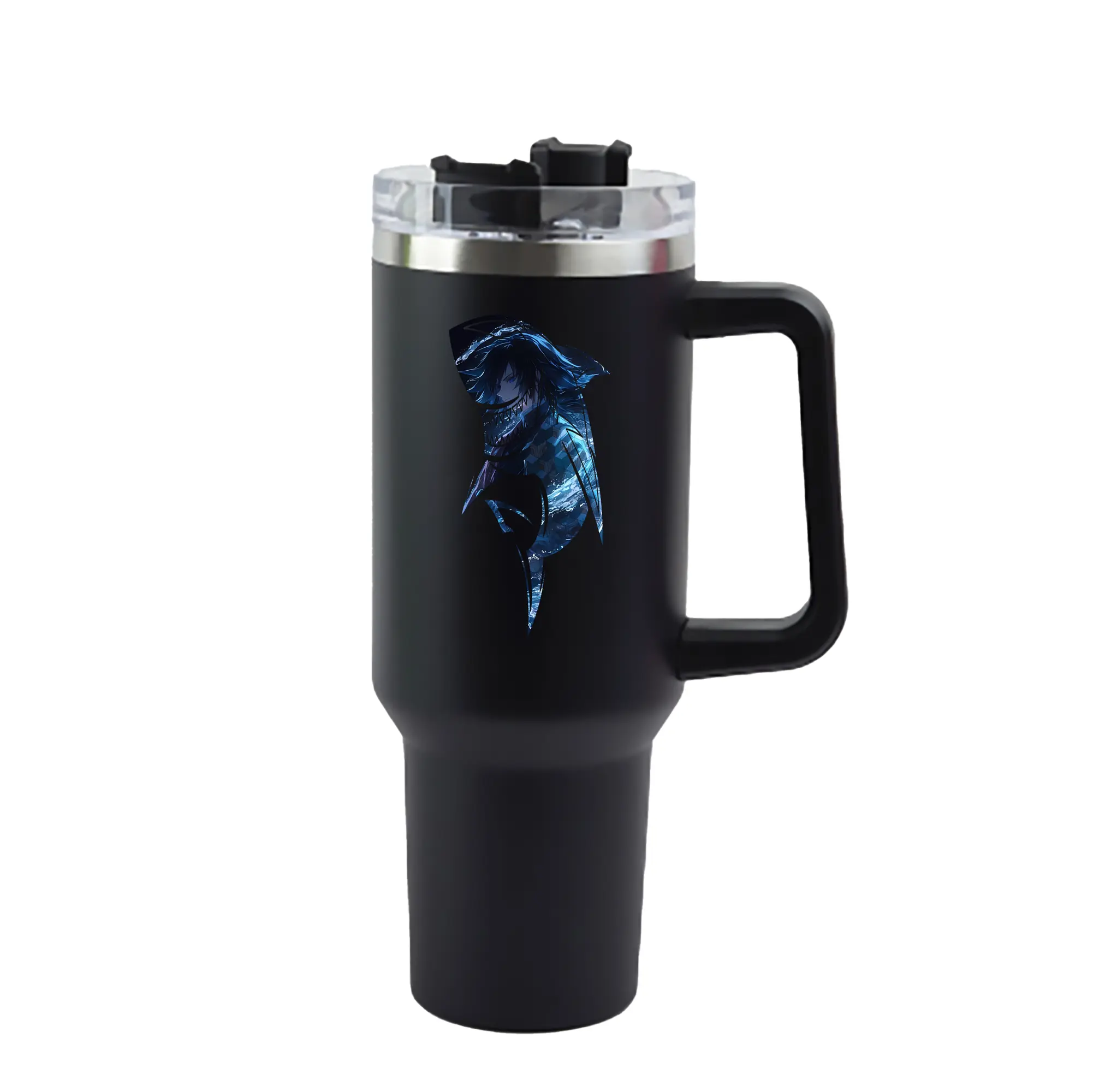 鬼滅の刃 グッズ,冨岡 義勇 - 1200mL 車用タンブラー ・ クリスタルステッカー ・ 304ステンレス 内側 ・ 201ステンレス 外側 ・ 保温 保冷 ・ ハンドル&ストロー付き ・ 通勤 ドライブ アウトドア用