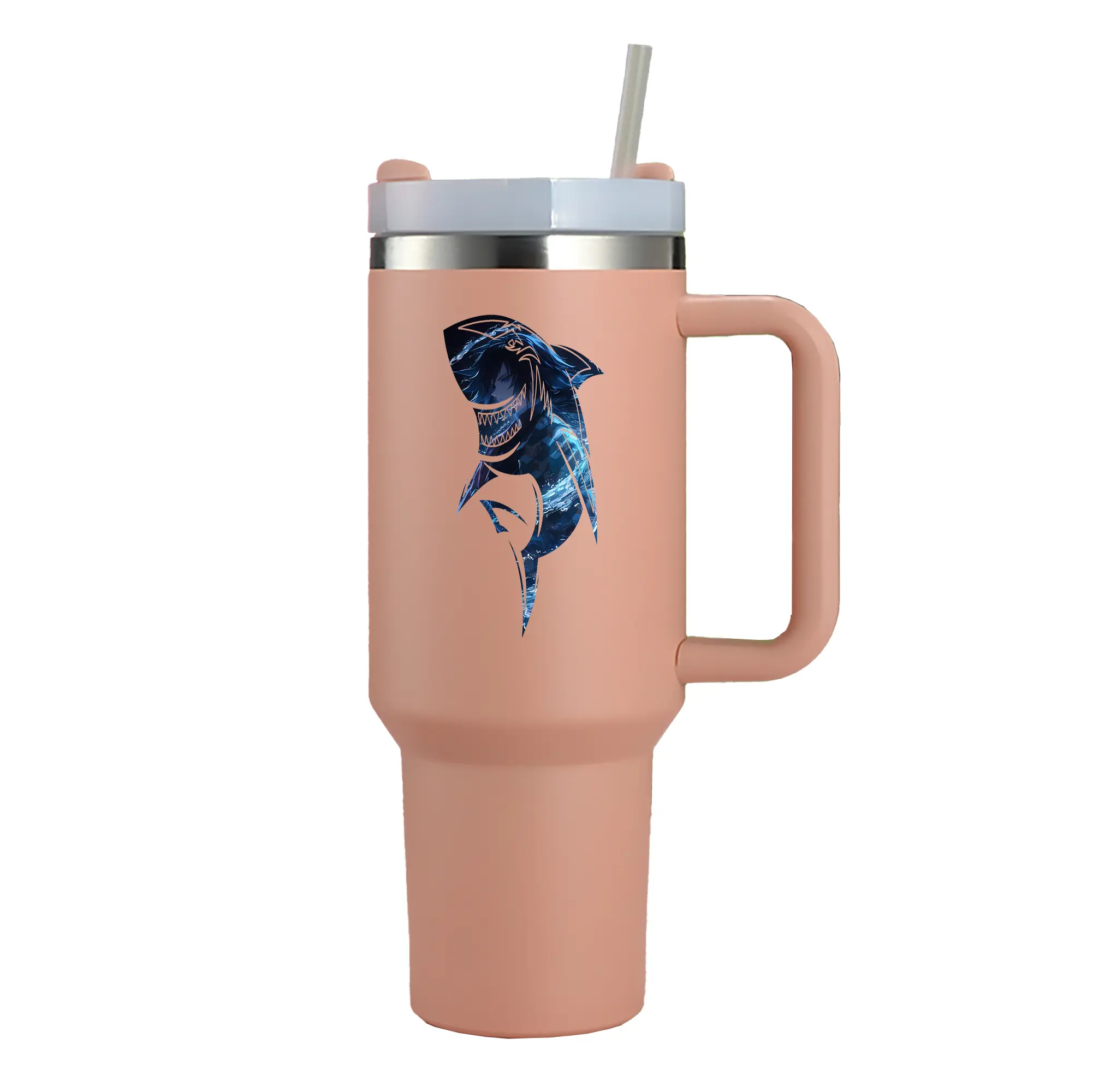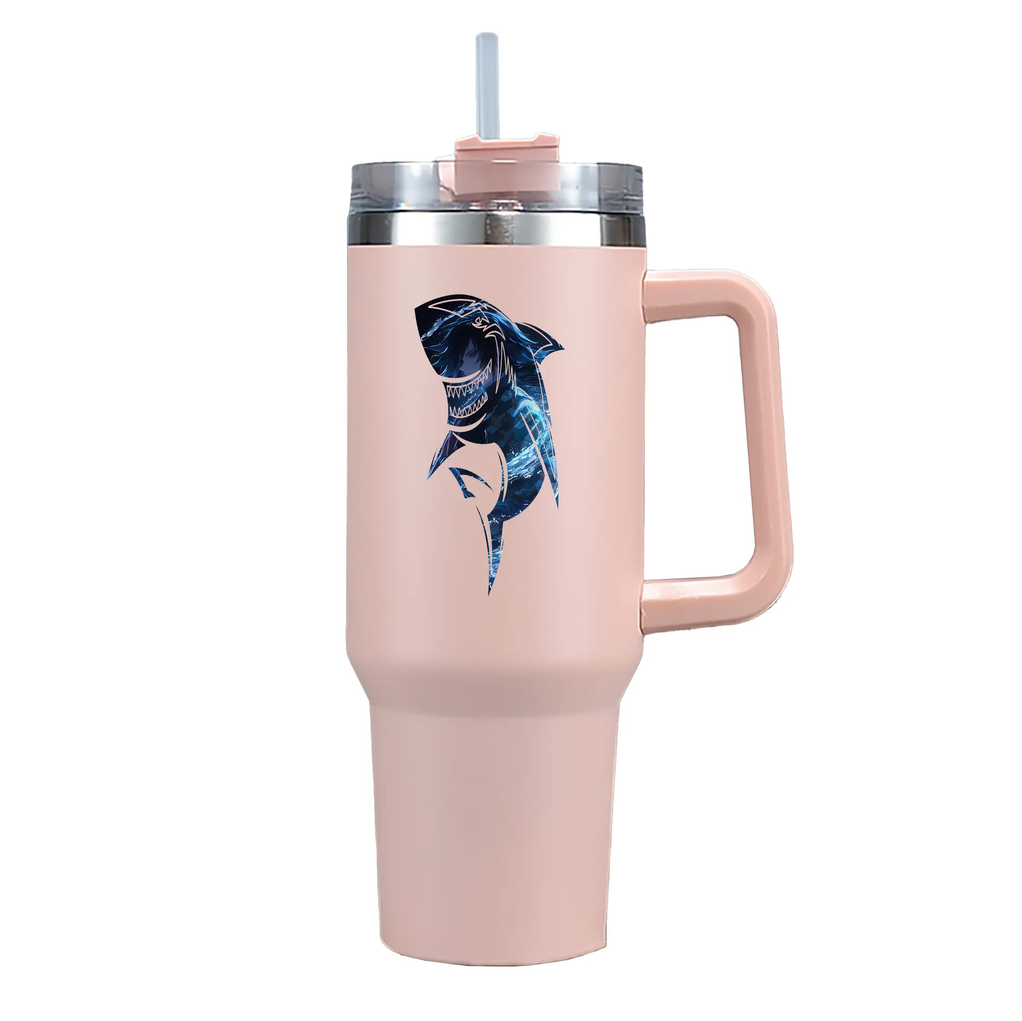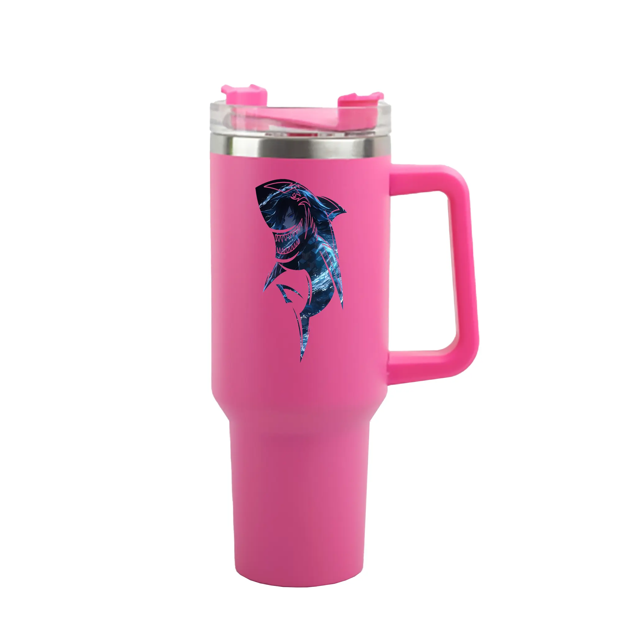 鬼滅の刃 グッズ,冨岡 義勇 - 1200mL 車用タンブラー ・ クリスタルステッカー ・ 304ステンレス 内側 ・ 201ステンレス 外側 ・ 保温 保冷 ・ ハンドル&ストロー付き ・ 通勤 ドライブ アウトドア用