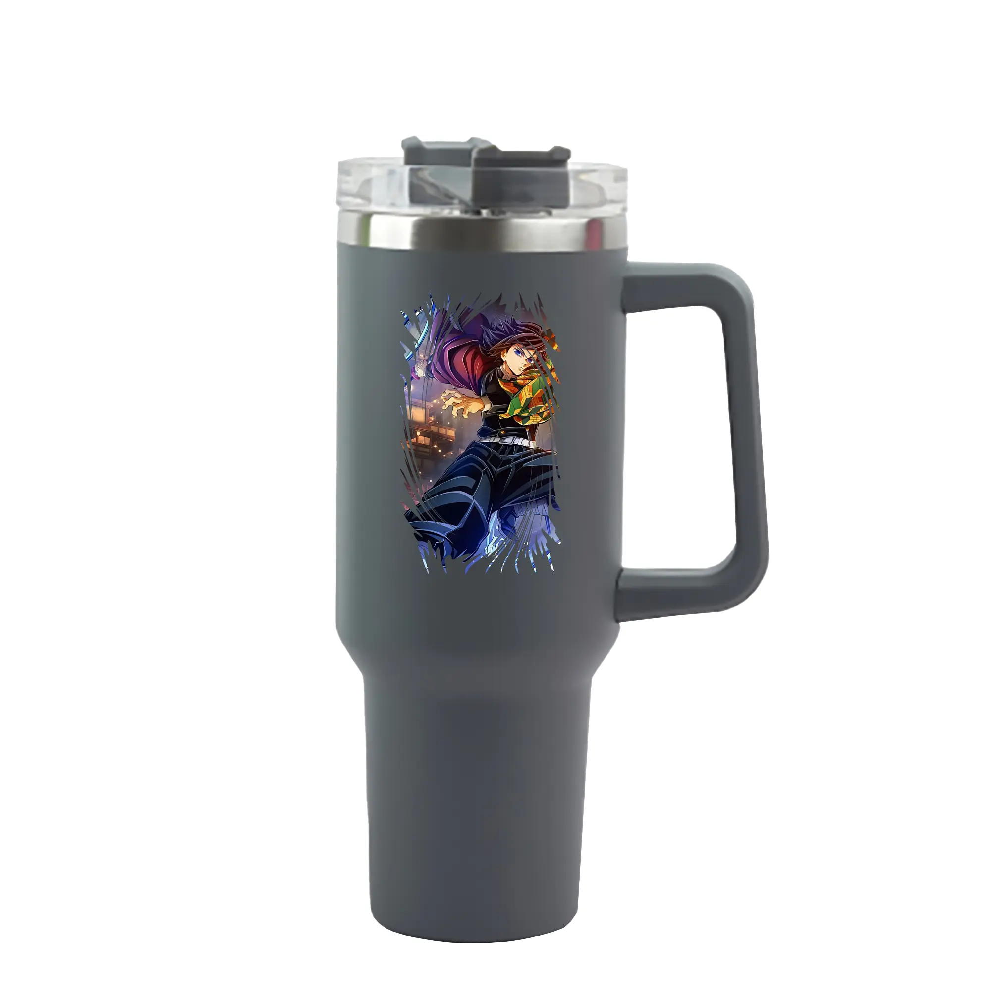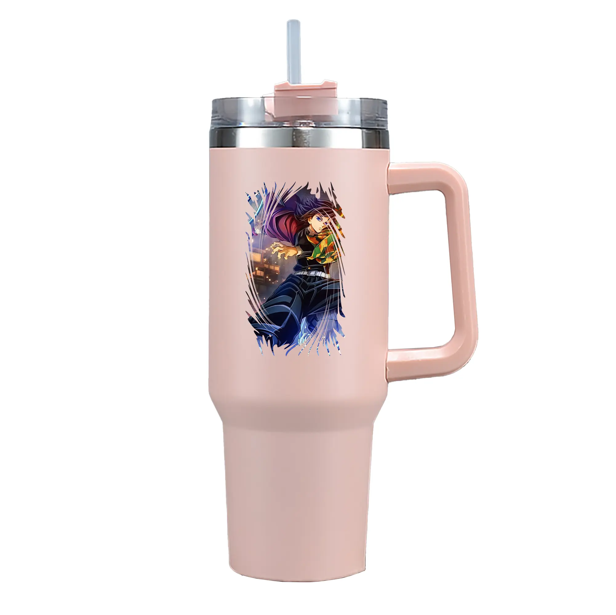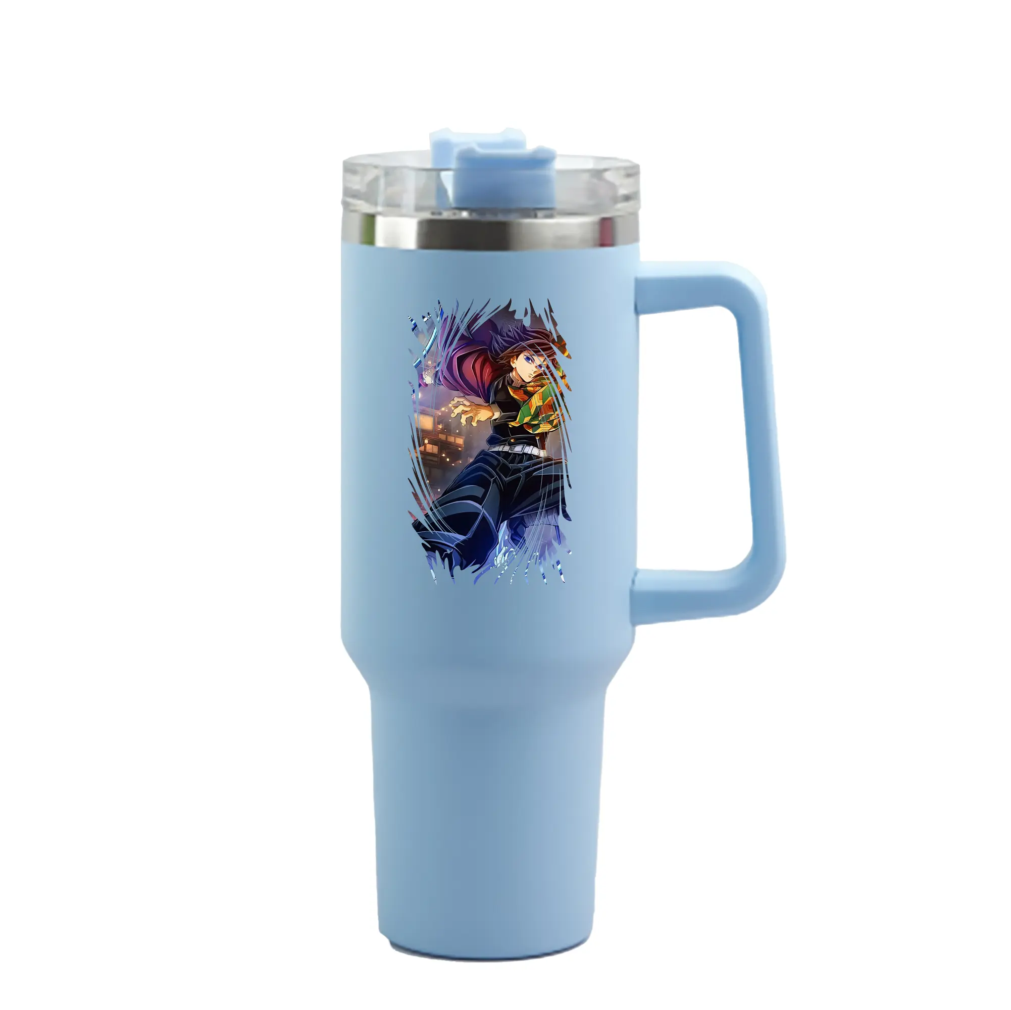 鬼滅の刃 グッズ,冨岡 義勇 - 1200mL 車用タンブラー ・ クリスタルステッカー ・ 304ステンレス 内側 ・ 201ステンレス 外側 ・ 保温 保冷 ・ ハンドル&ストロー付き ・ 通勤 ドライブ アウトドア用