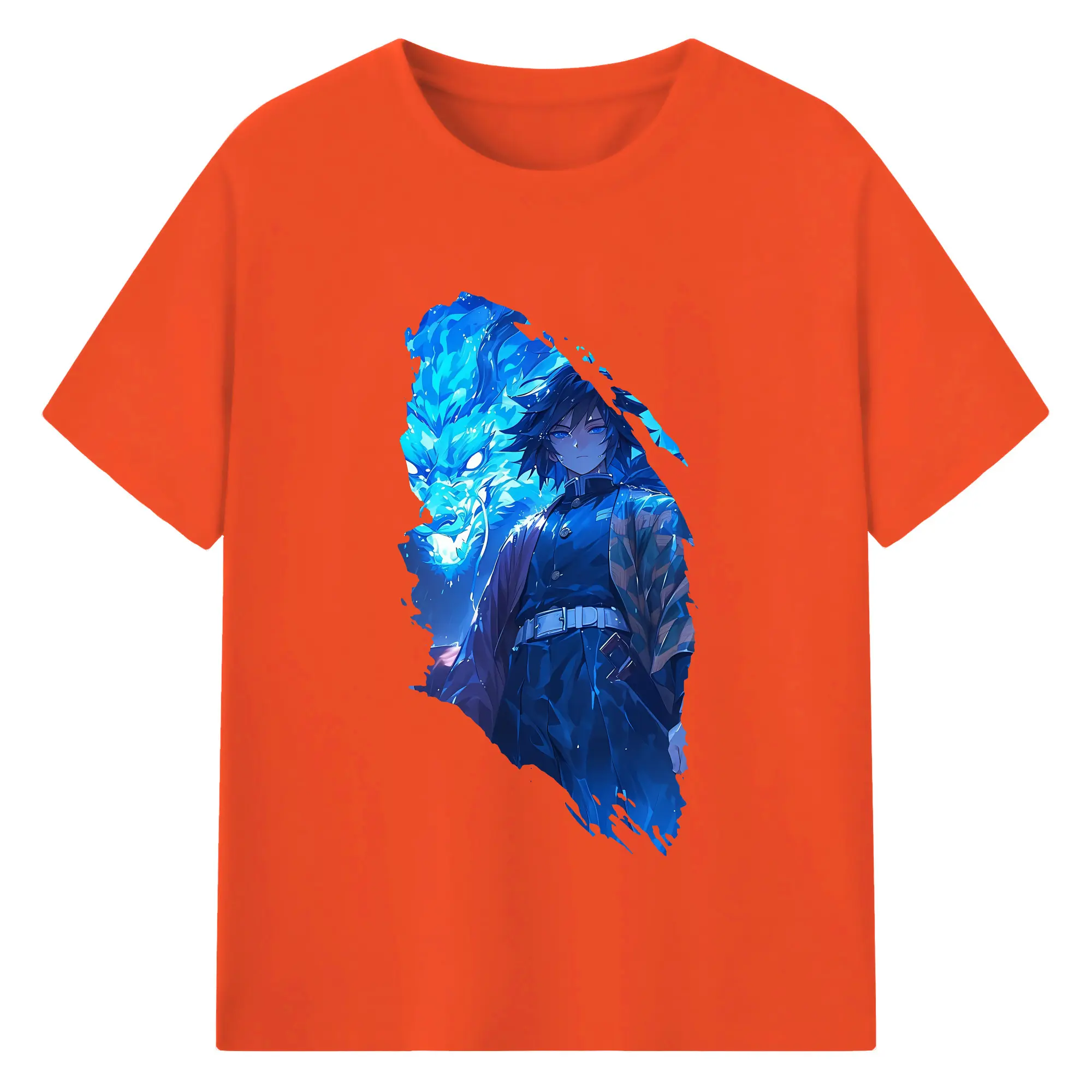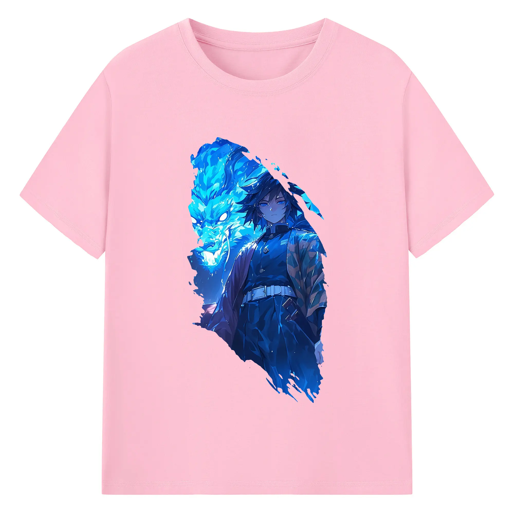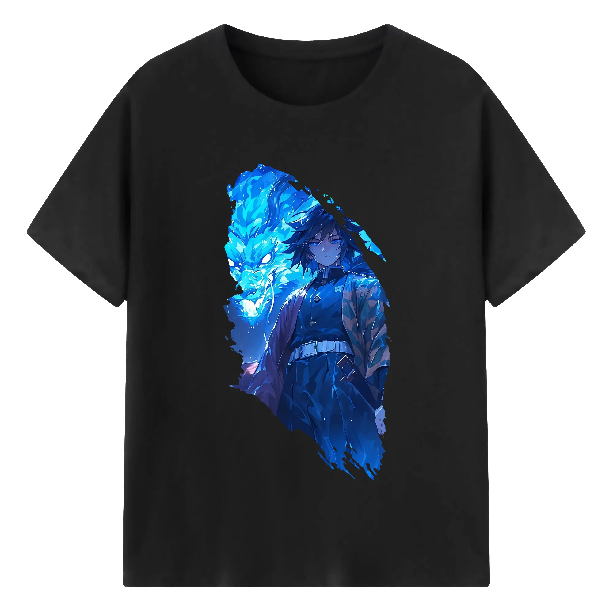 鬼滅の刃 グッズ,冨岡 義勇 - 綿100% 半袖Tシャツ ・ バックプリント ・ 快適 通気性 ・ 日常使い 散歩 スポーツ用