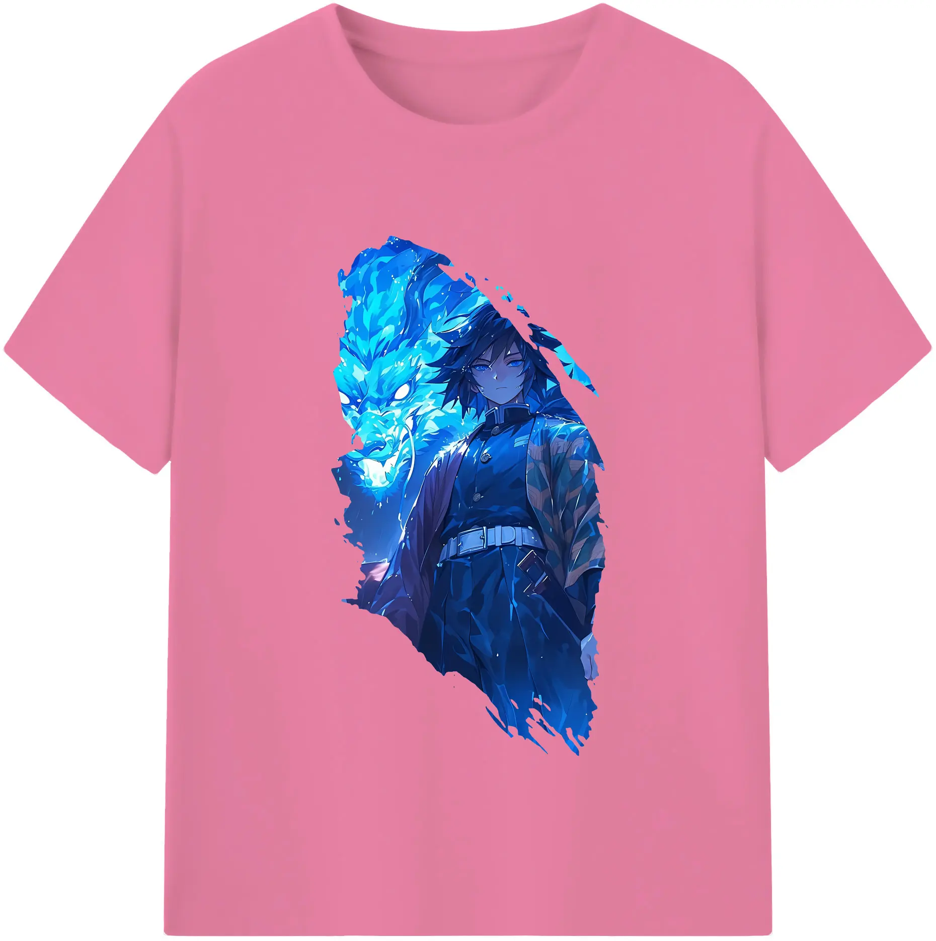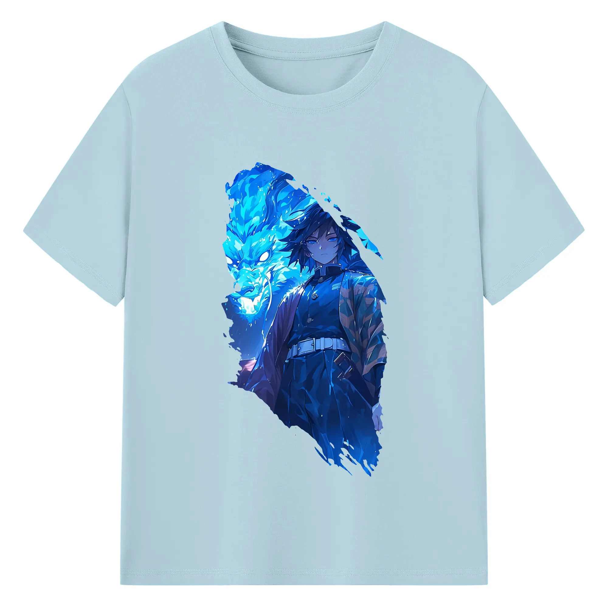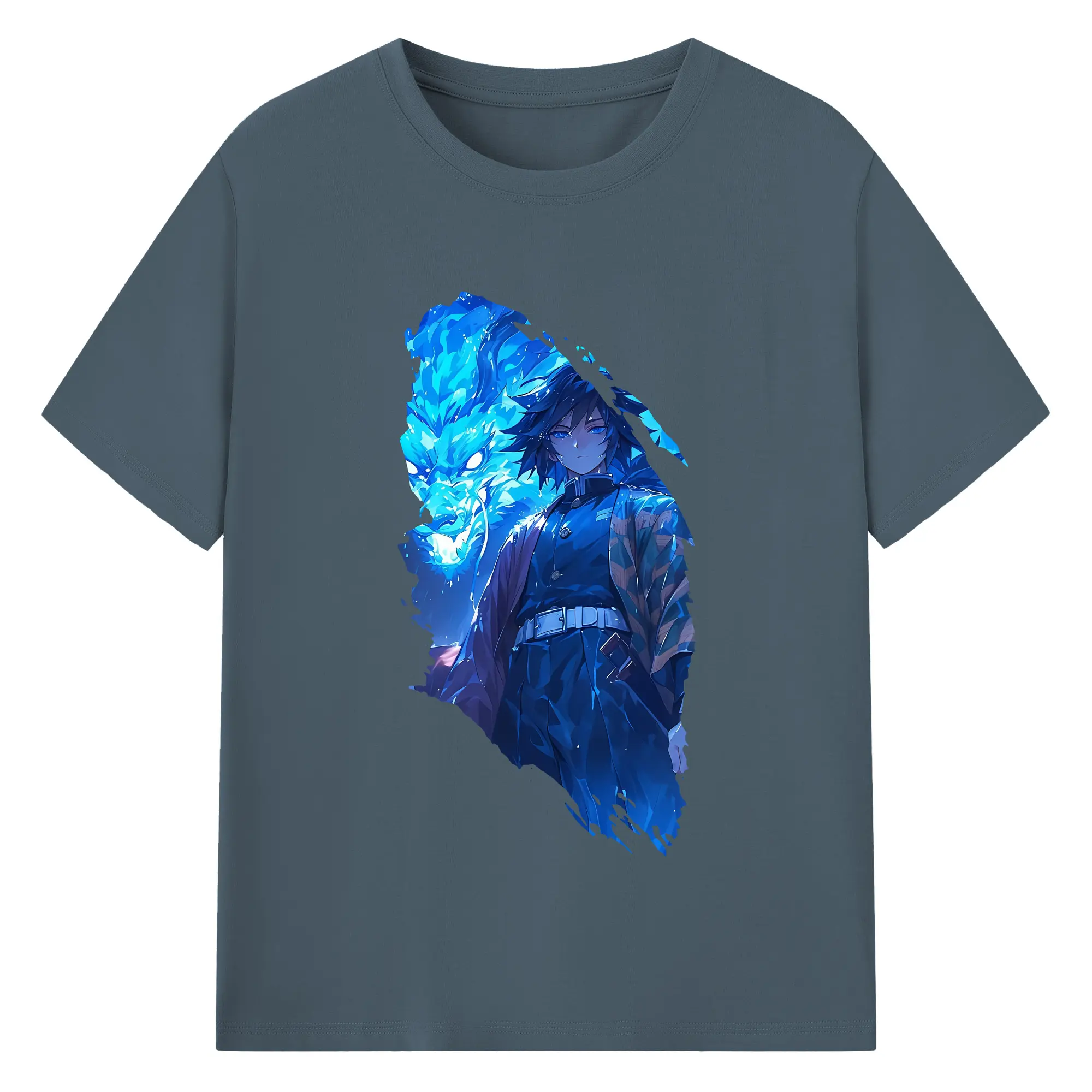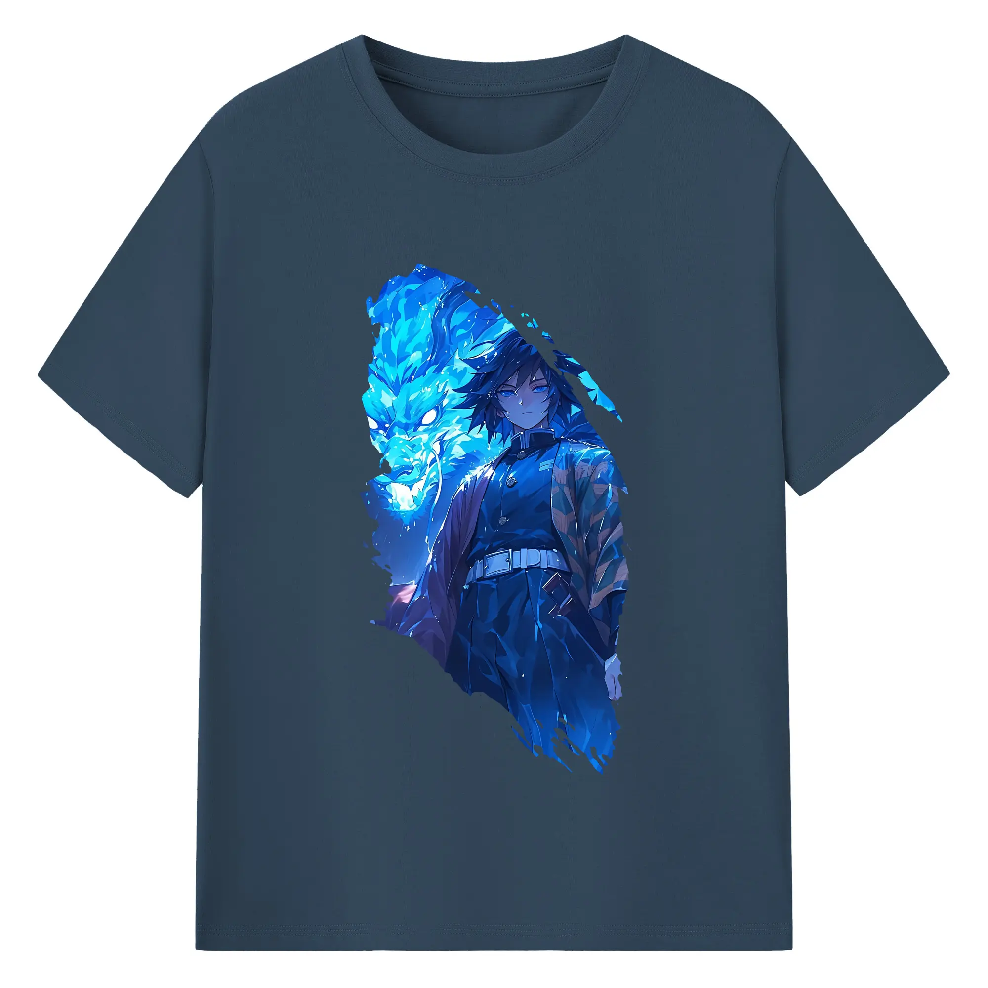 鬼滅の刃 グッズ,冨岡 義勇 - 綿100% 半袖Tシャツ ・ バックプリント ・ 快適 通気性 ・ 日常使い 散歩 スポーツ用