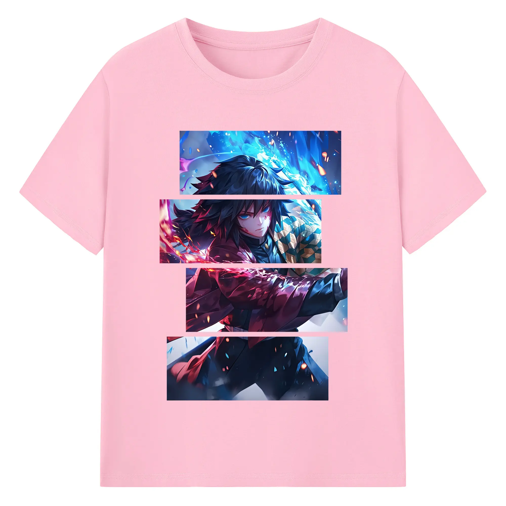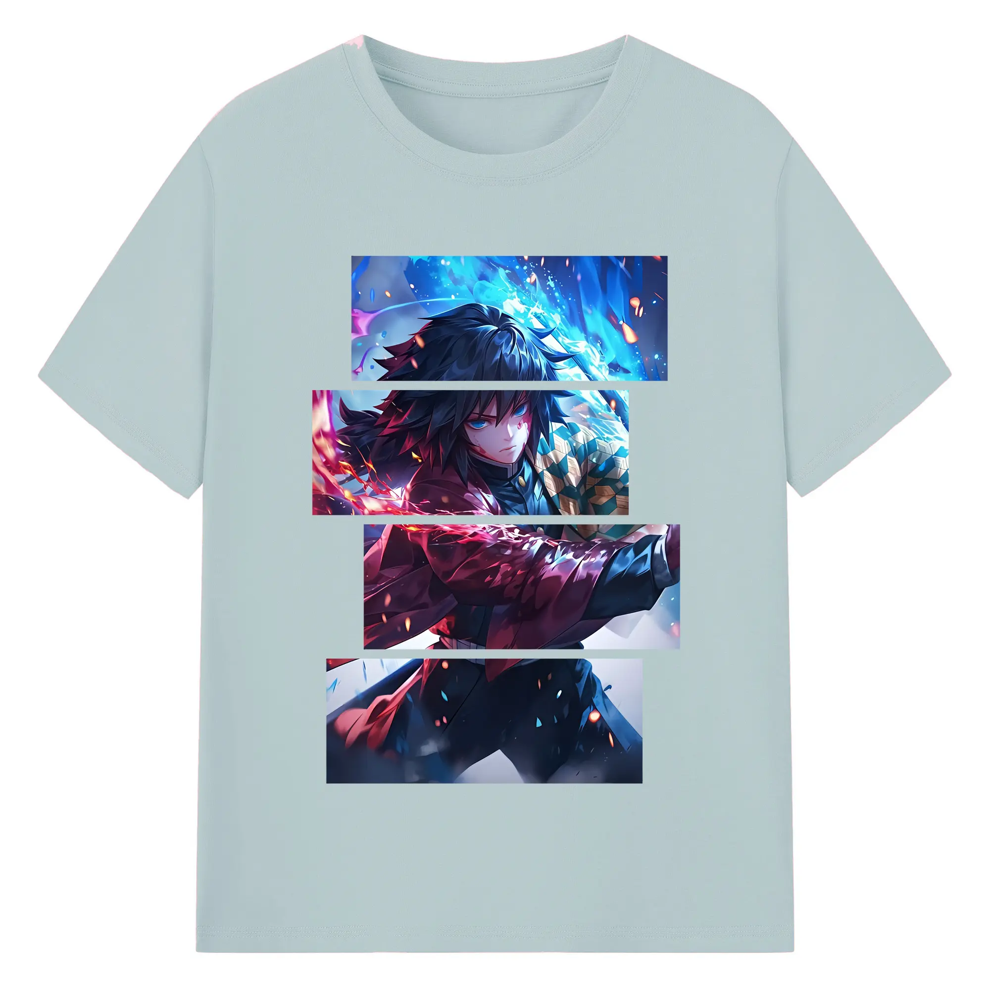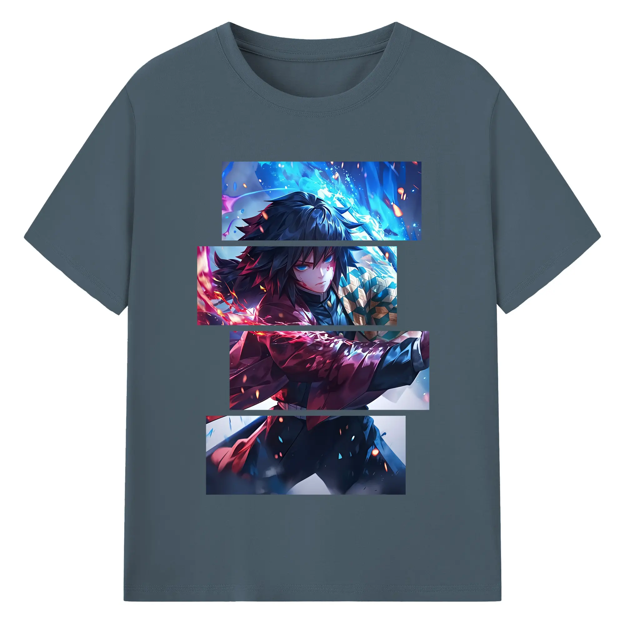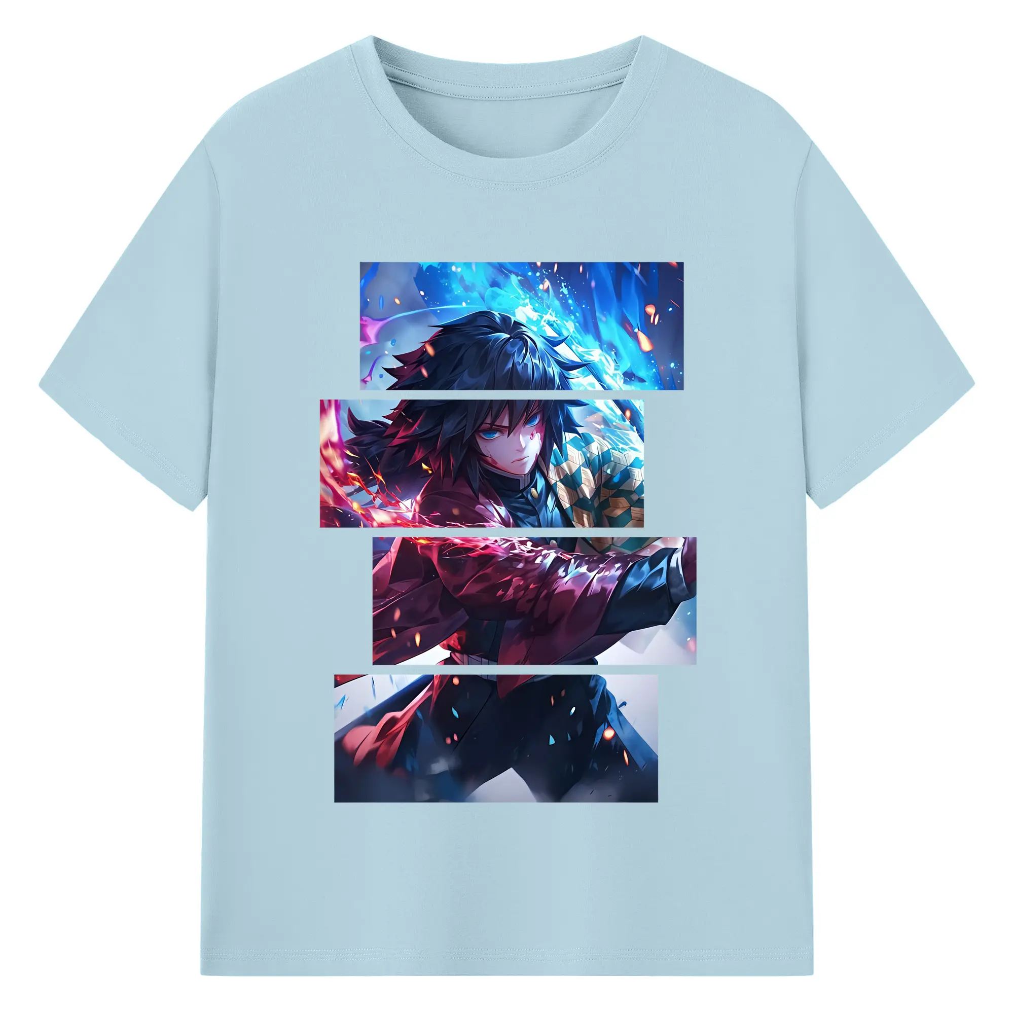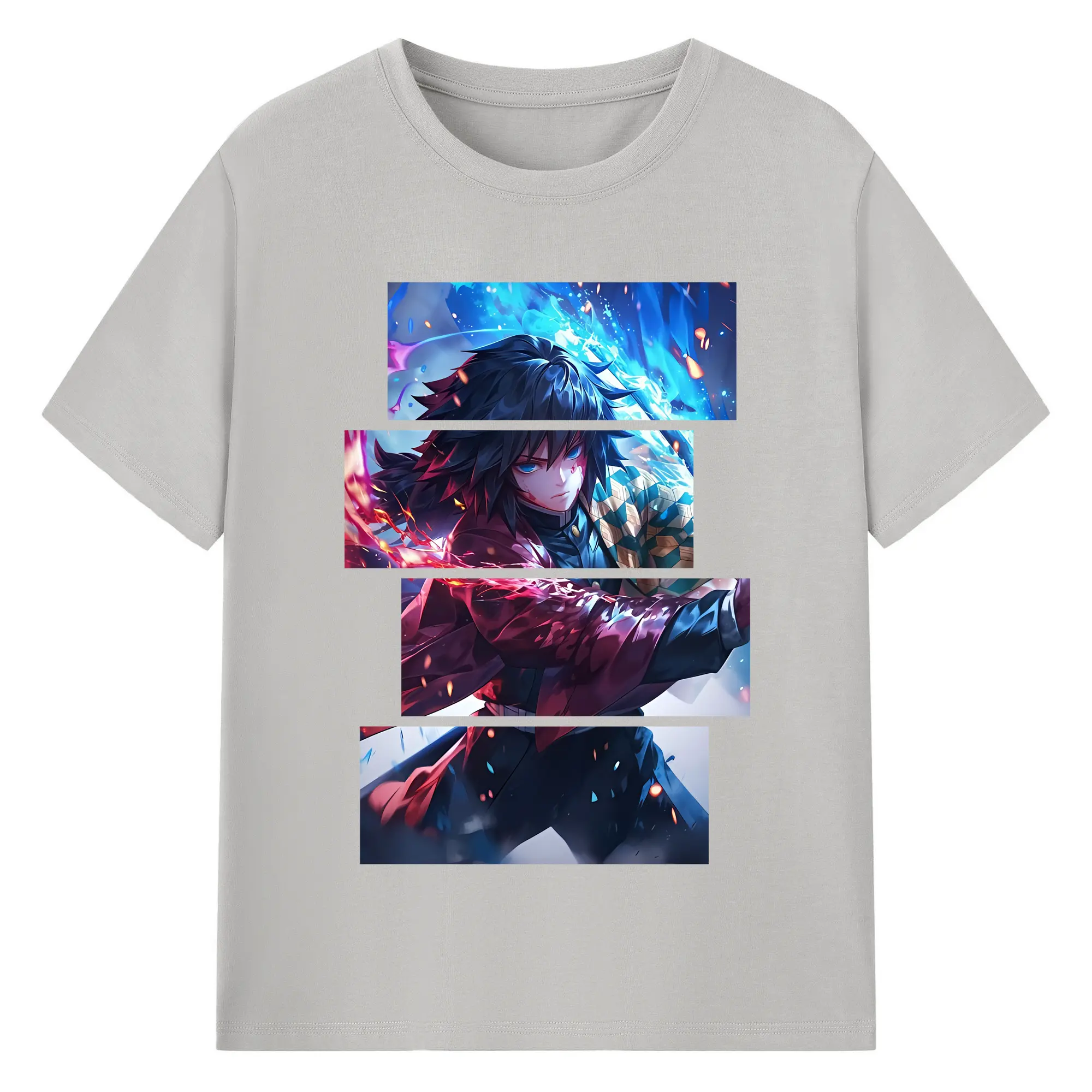 鬼滅の刃 グッズ,冨岡 義勇 - 綿100% 半袖Tシャツ ・ バックプリント ・ 快適 通気性 ・ 日常使い 散歩 スポーツ用