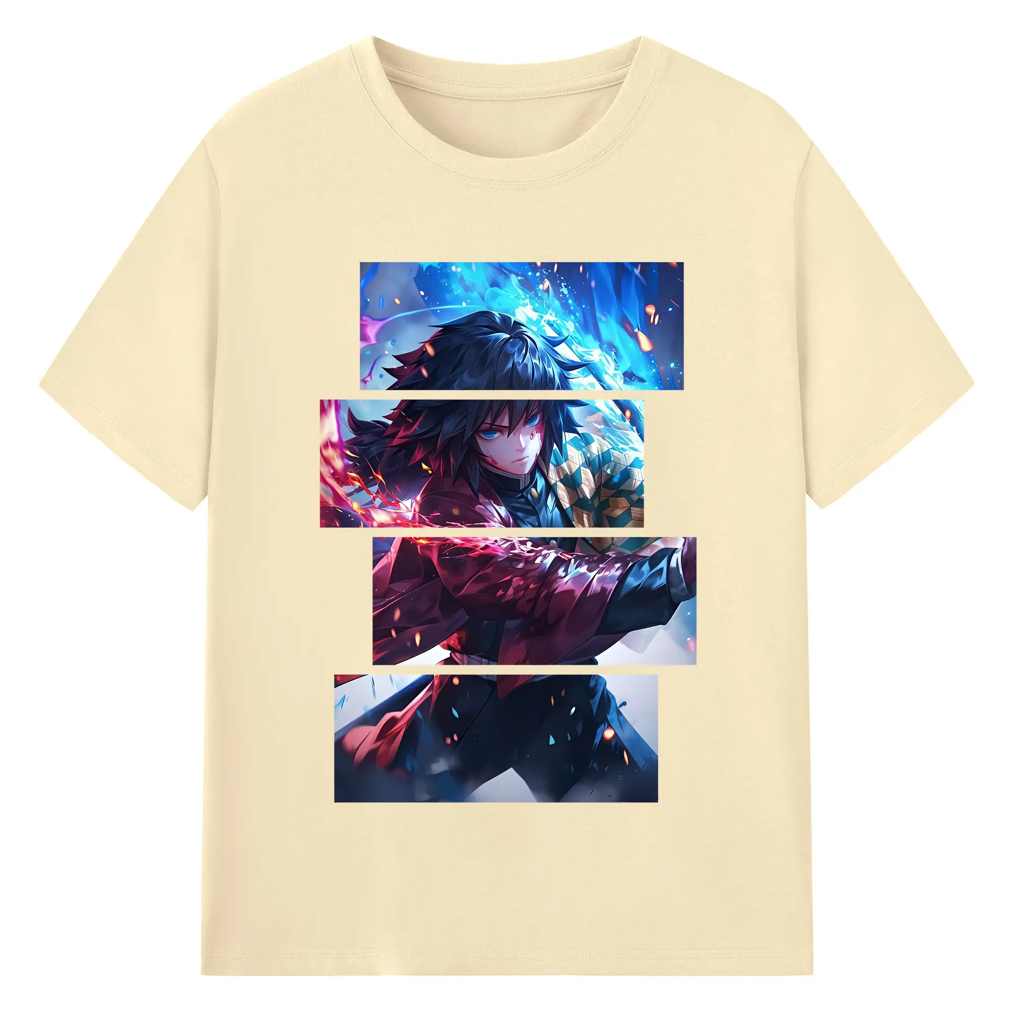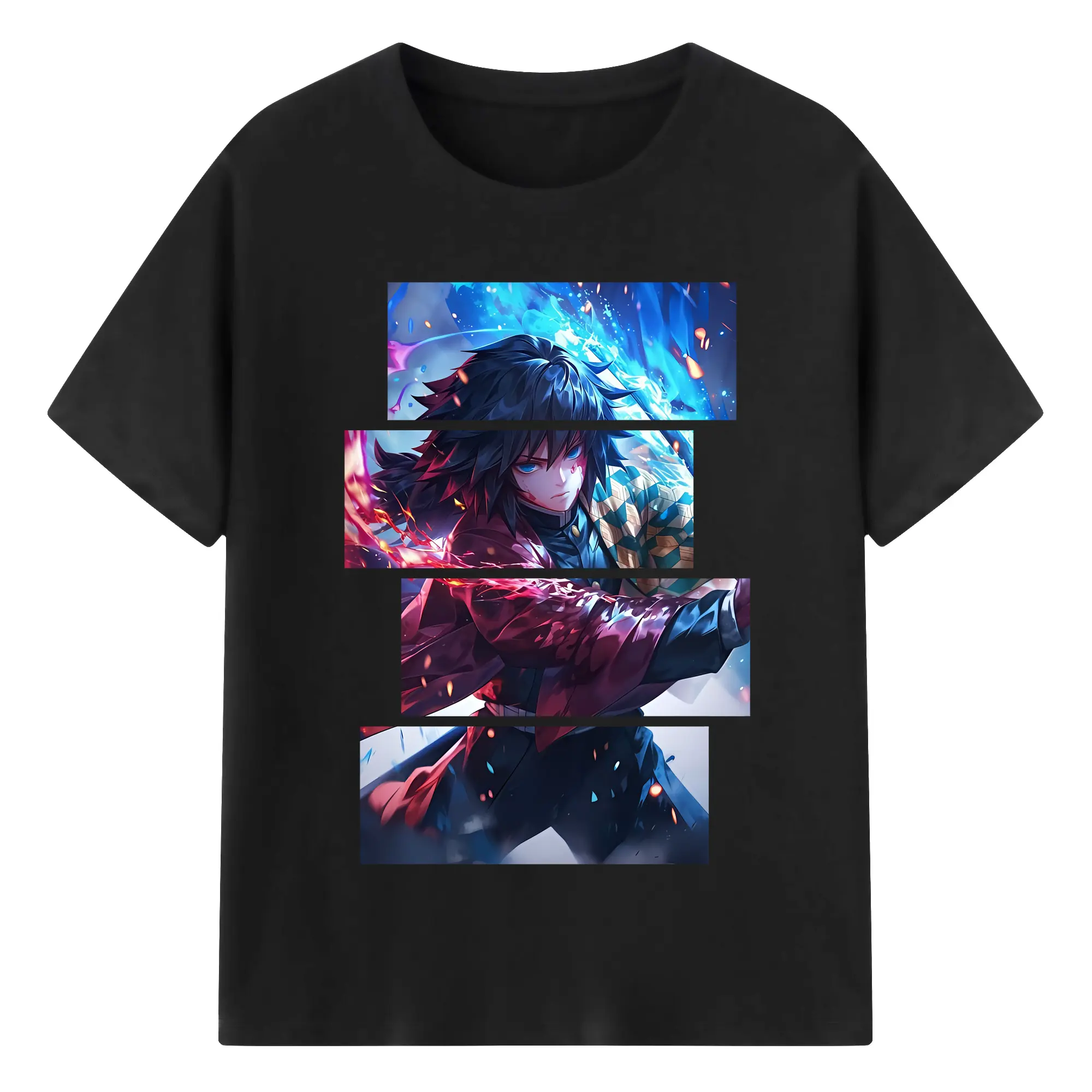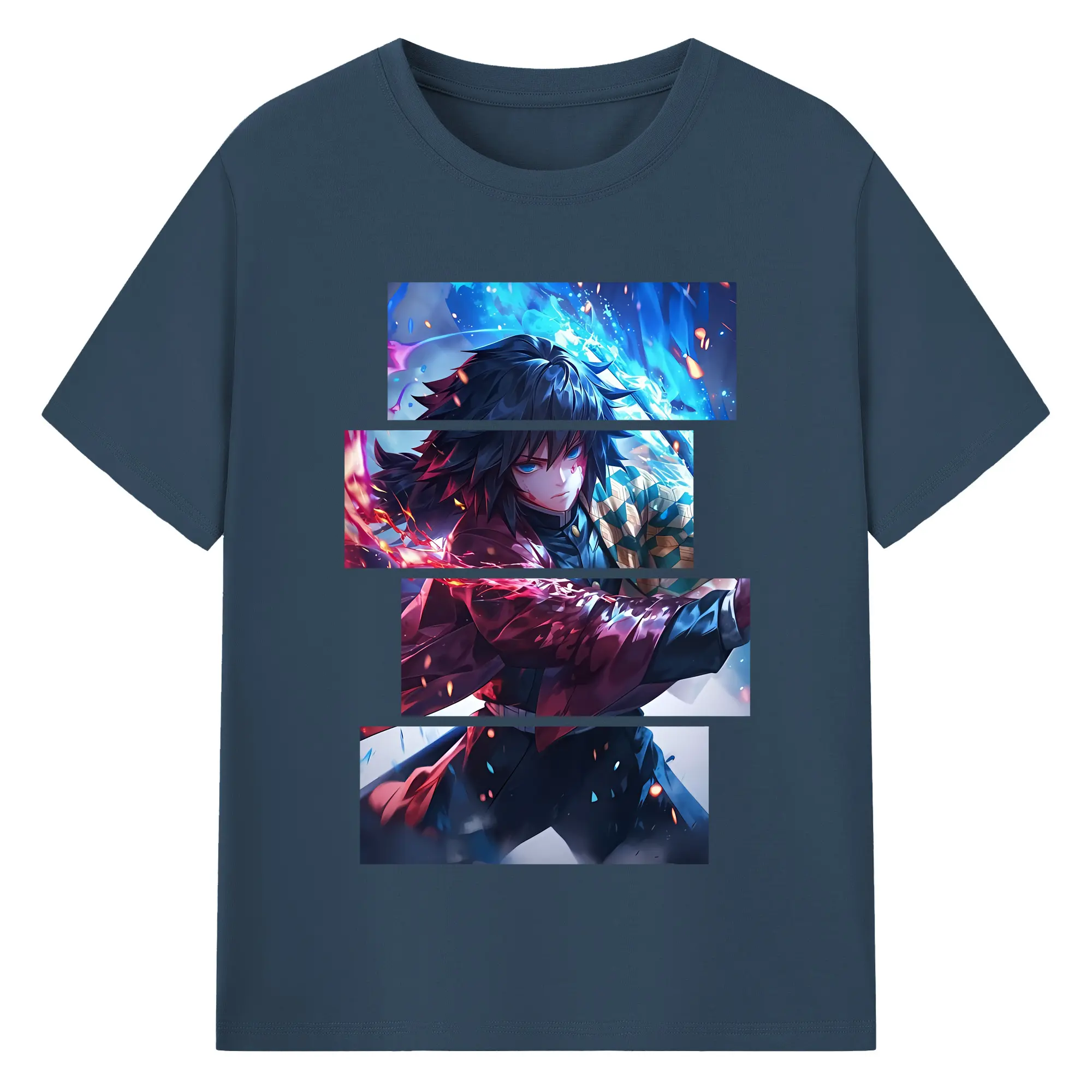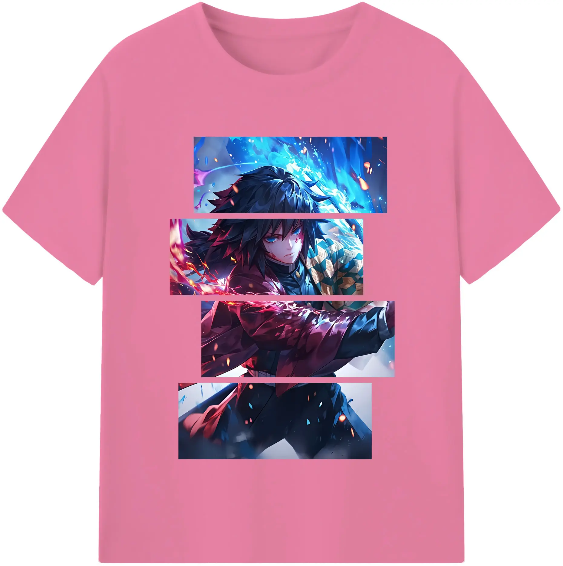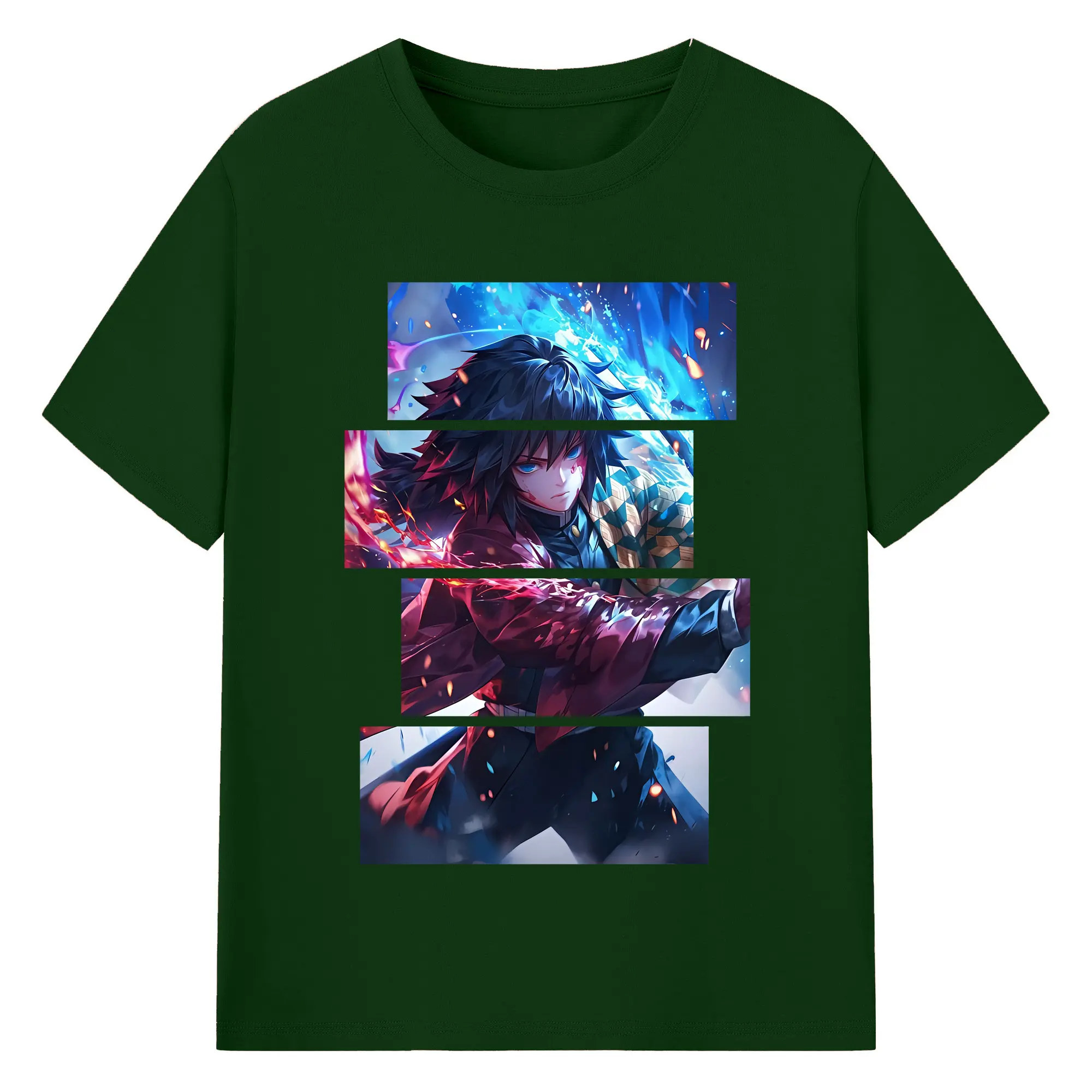 鬼滅の刃 グッズ,冨岡 義勇 - 綿100% 半袖Tシャツ ・ バックプリント ・ 快適 通気性 ・ 日常使い 散歩 スポーツ用
