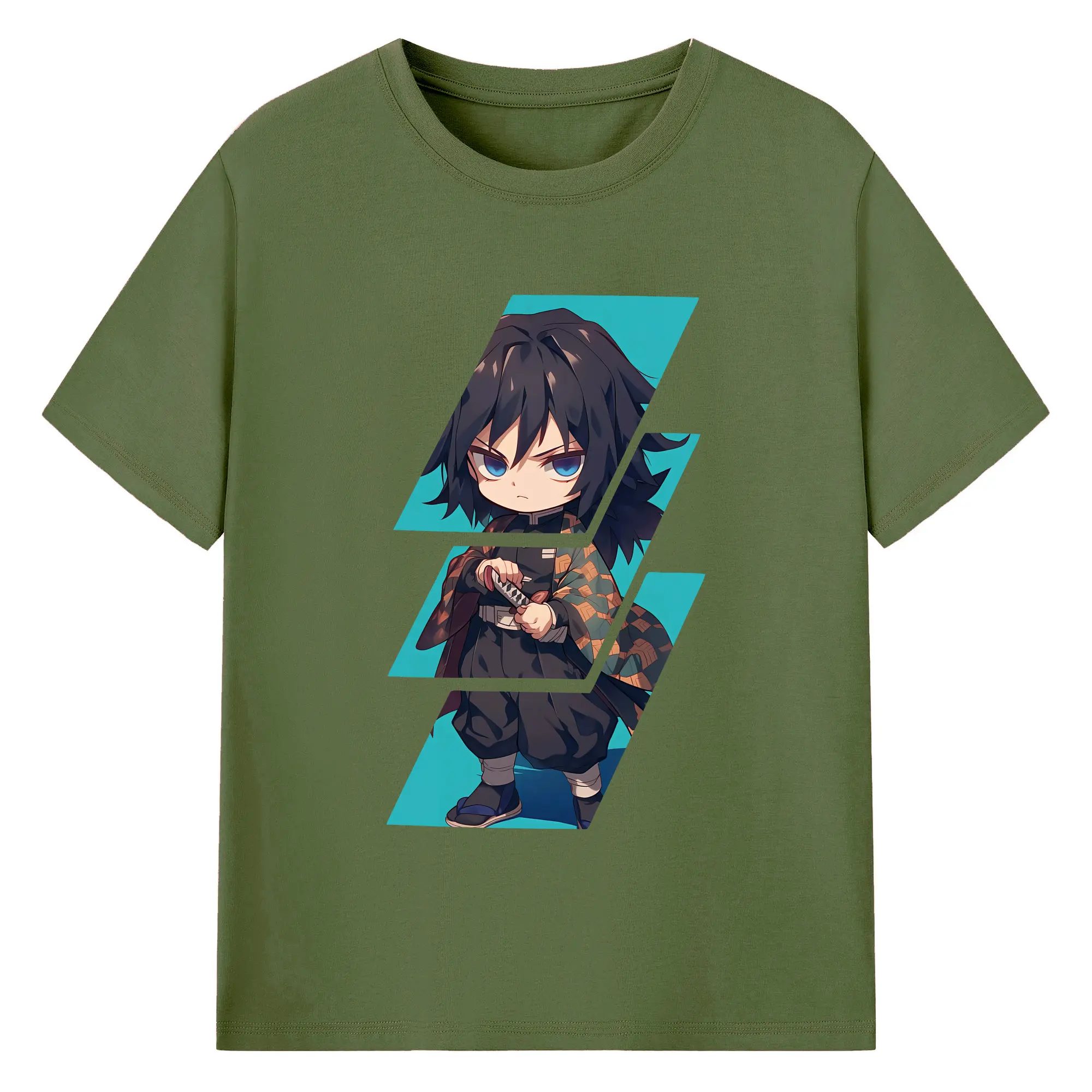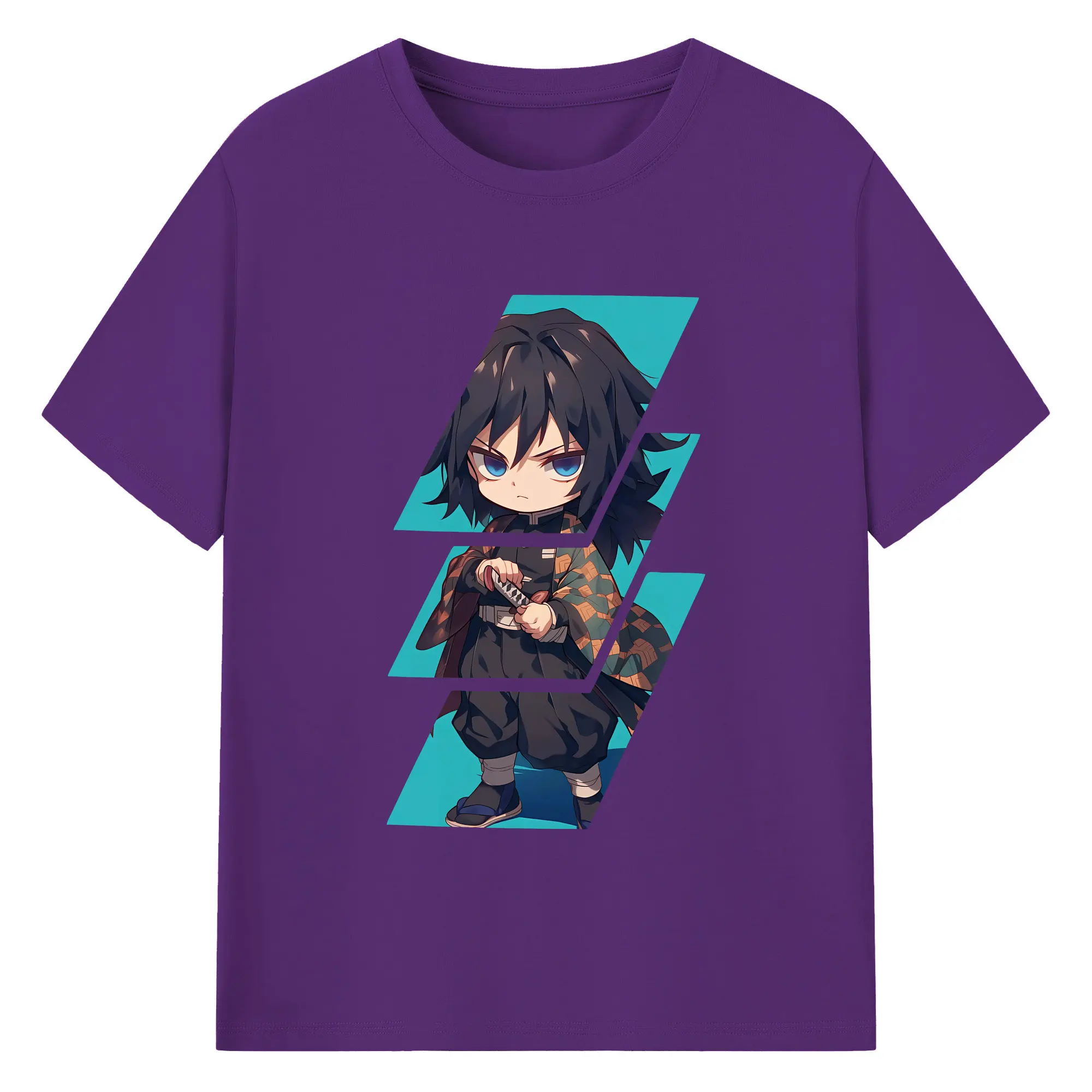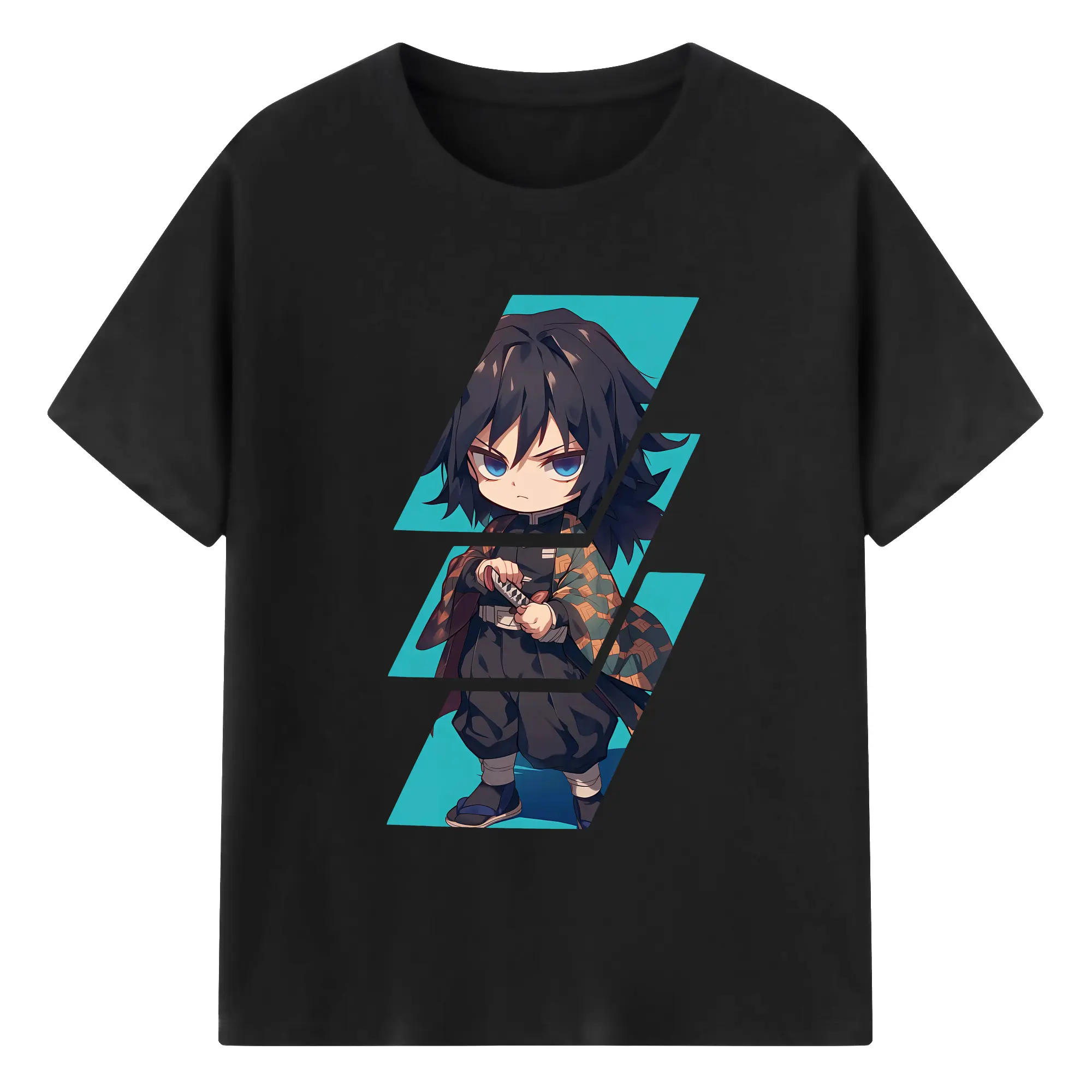 鬼滅の刃 グッズ,冨岡 義勇 - 綿100% 半袖Tシャツ ・ バックプリント ・ 快適 通気性 ・ 日常使い 散歩 スポーツ用
