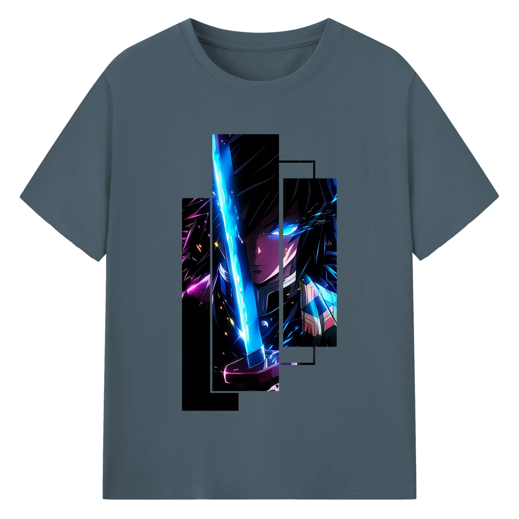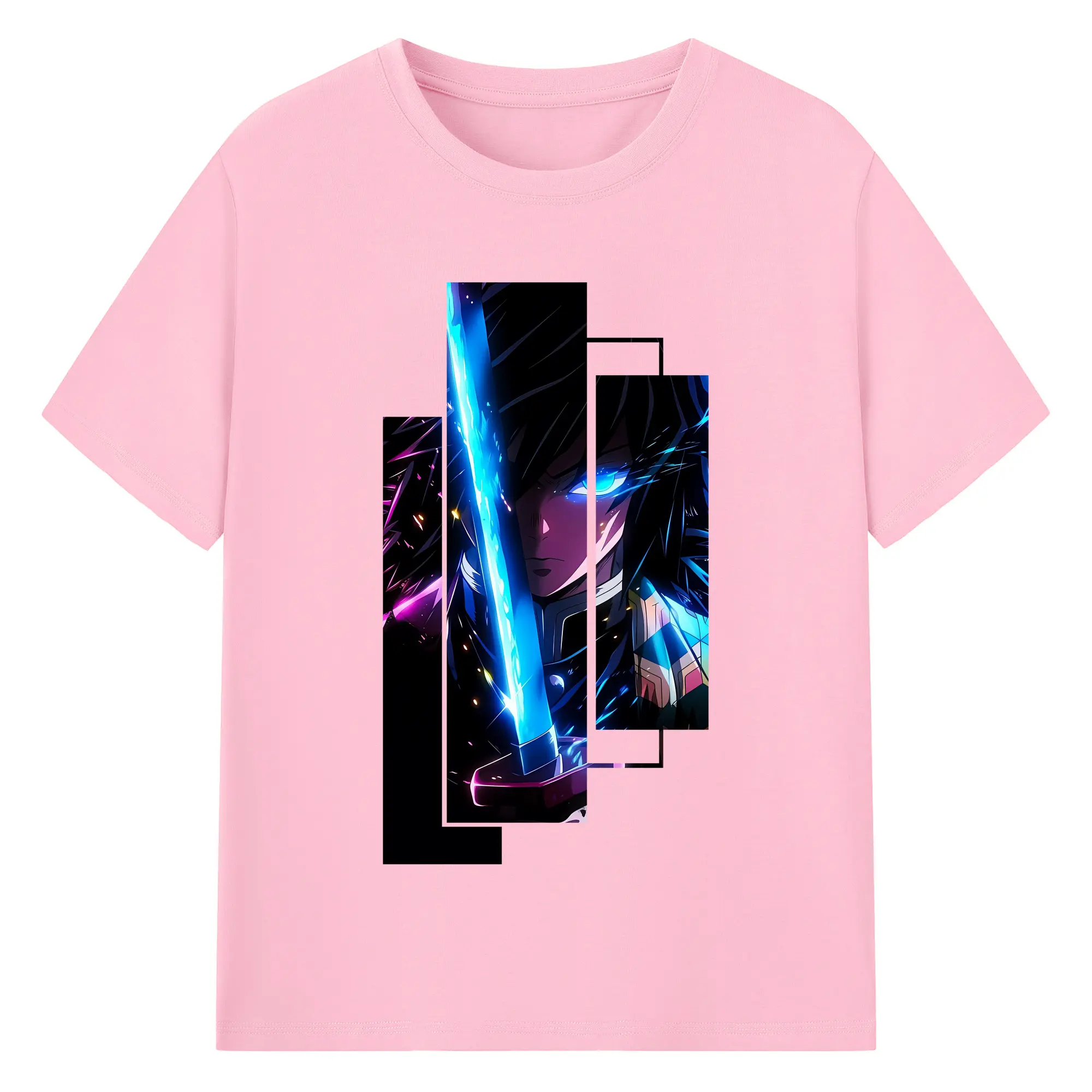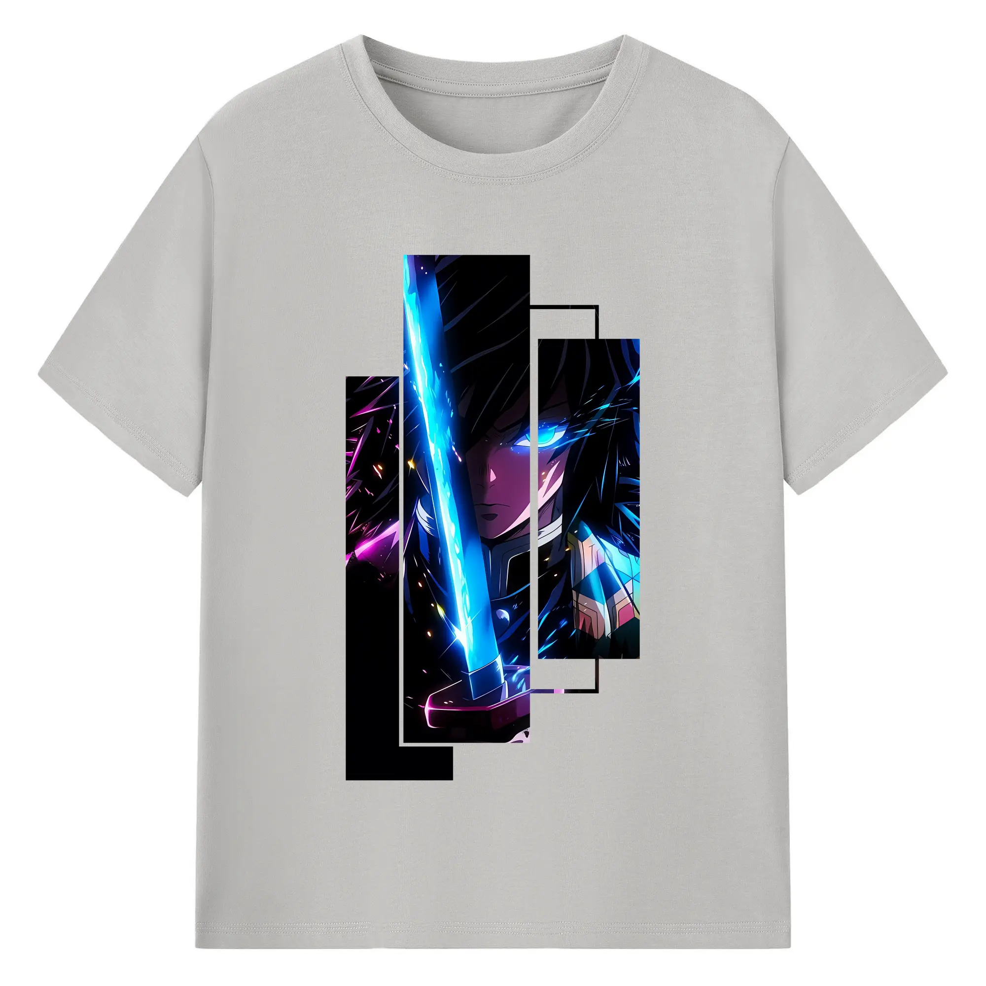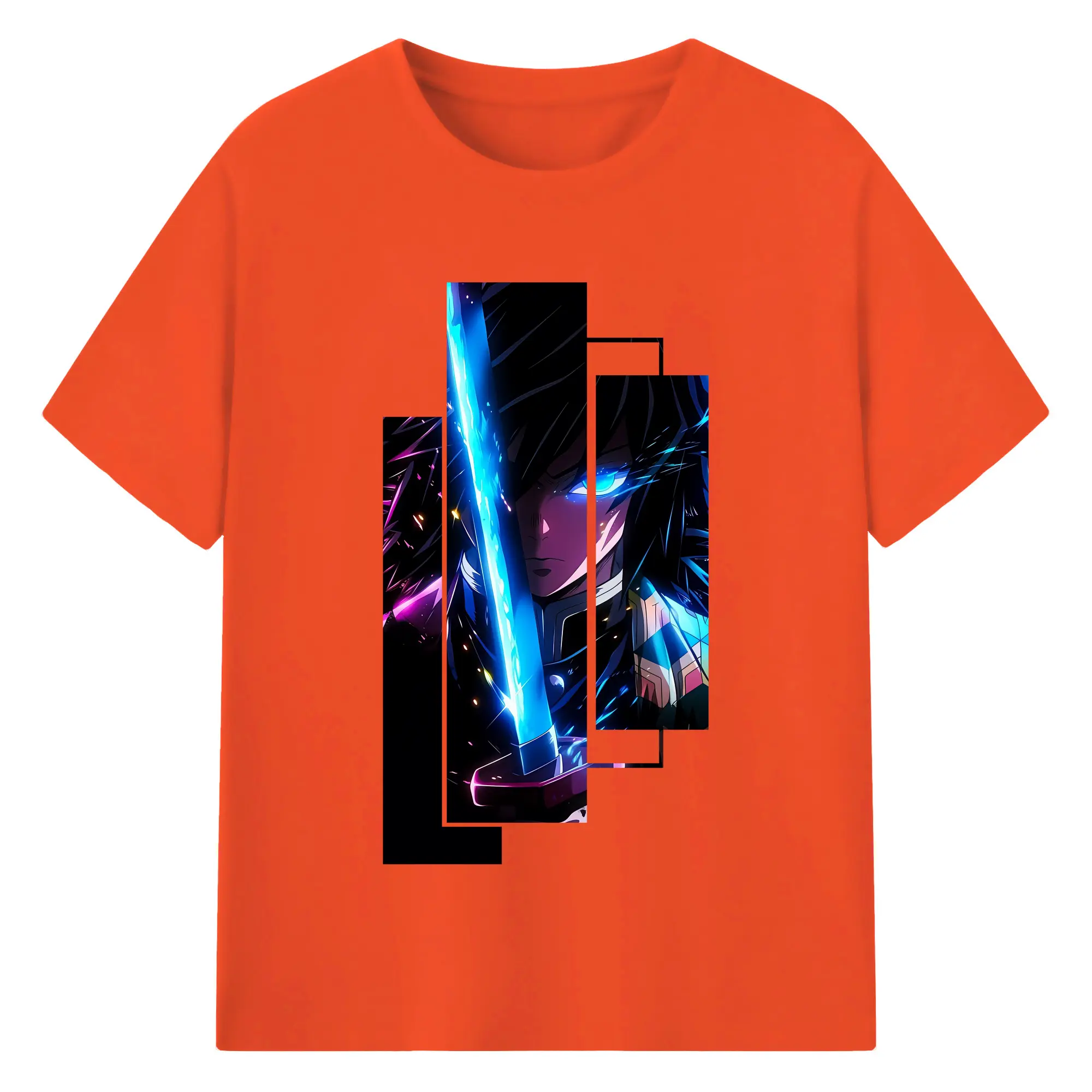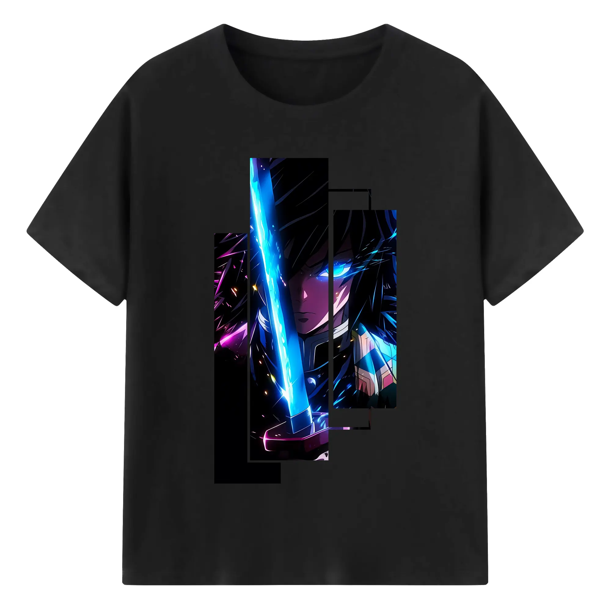鬼滅の刃 グッズ,冨岡 義勇 - 綿100% 半袖Tシャツ ・ バックプリント ・ 快適 通気性 ・ 日常使い 散歩 スポーツ用