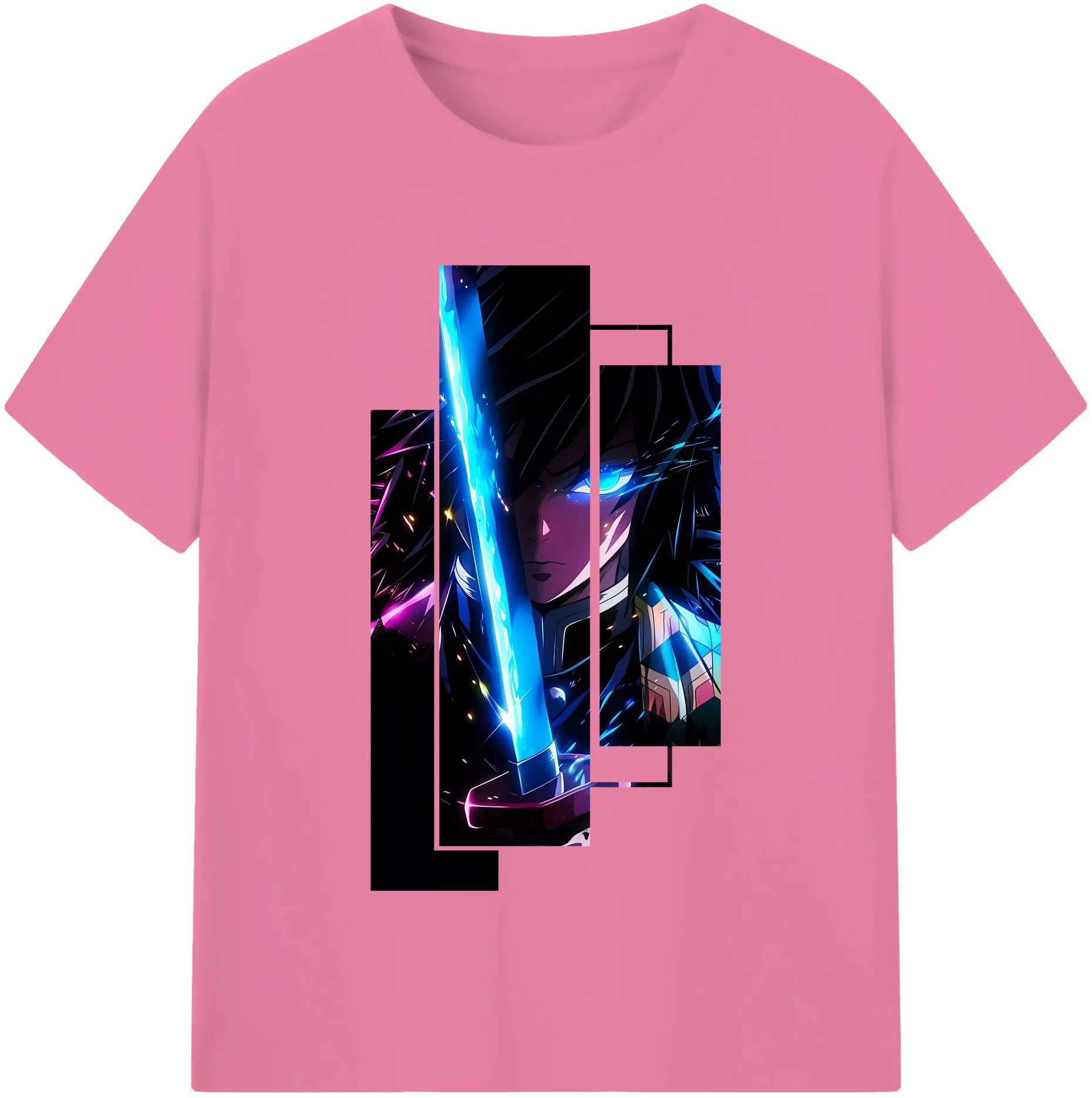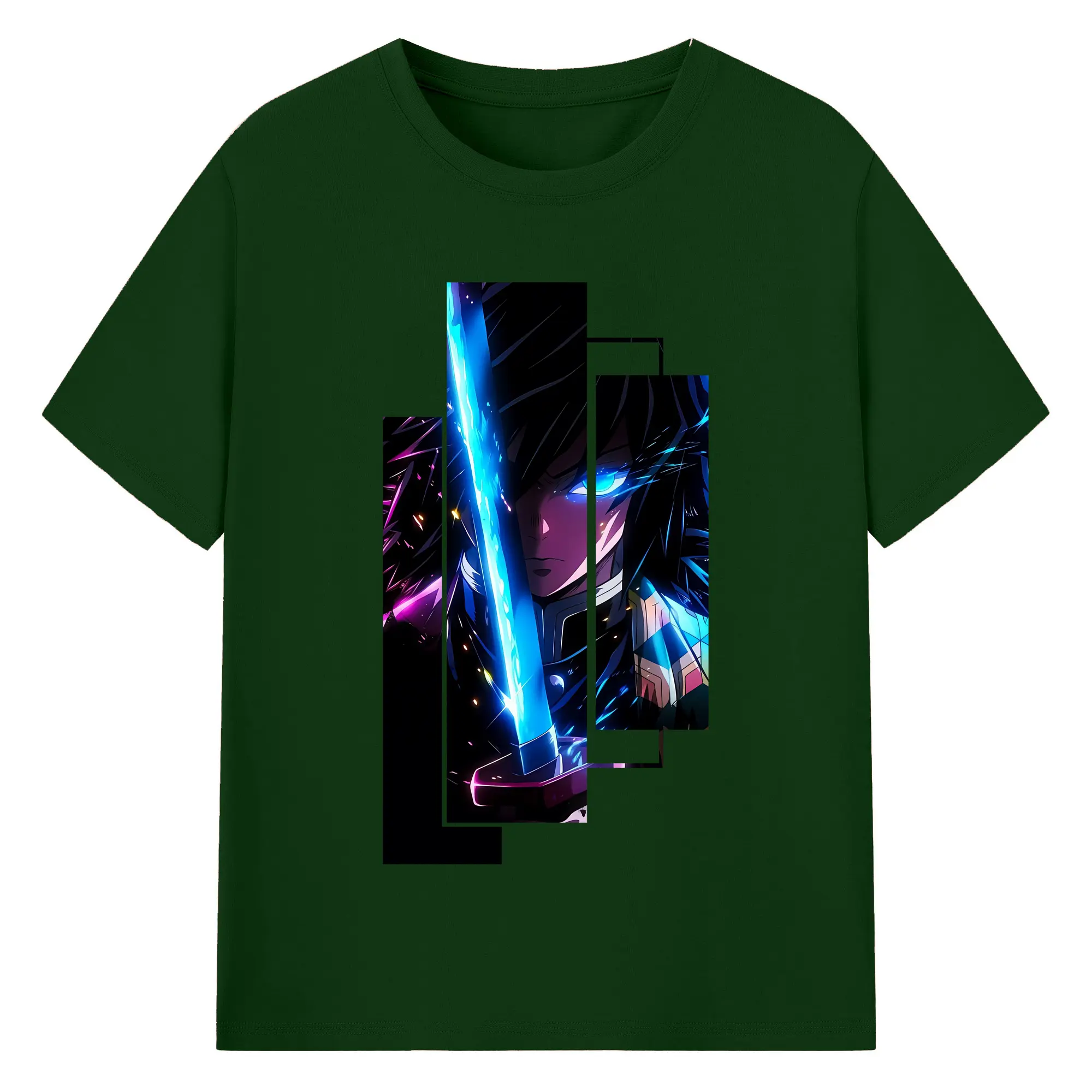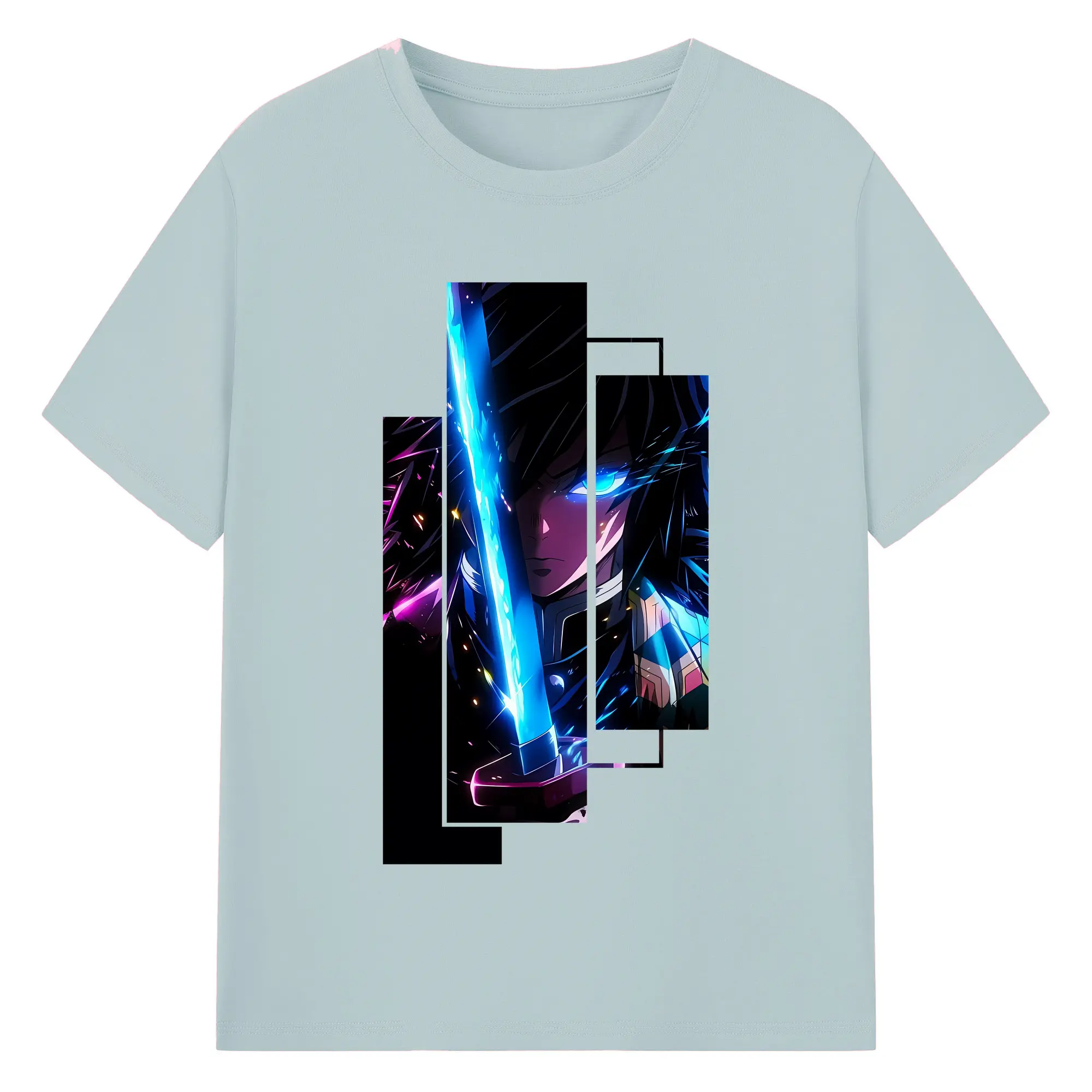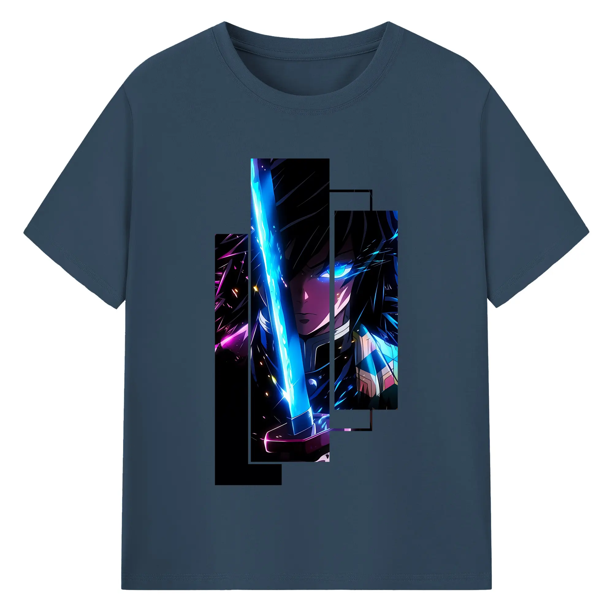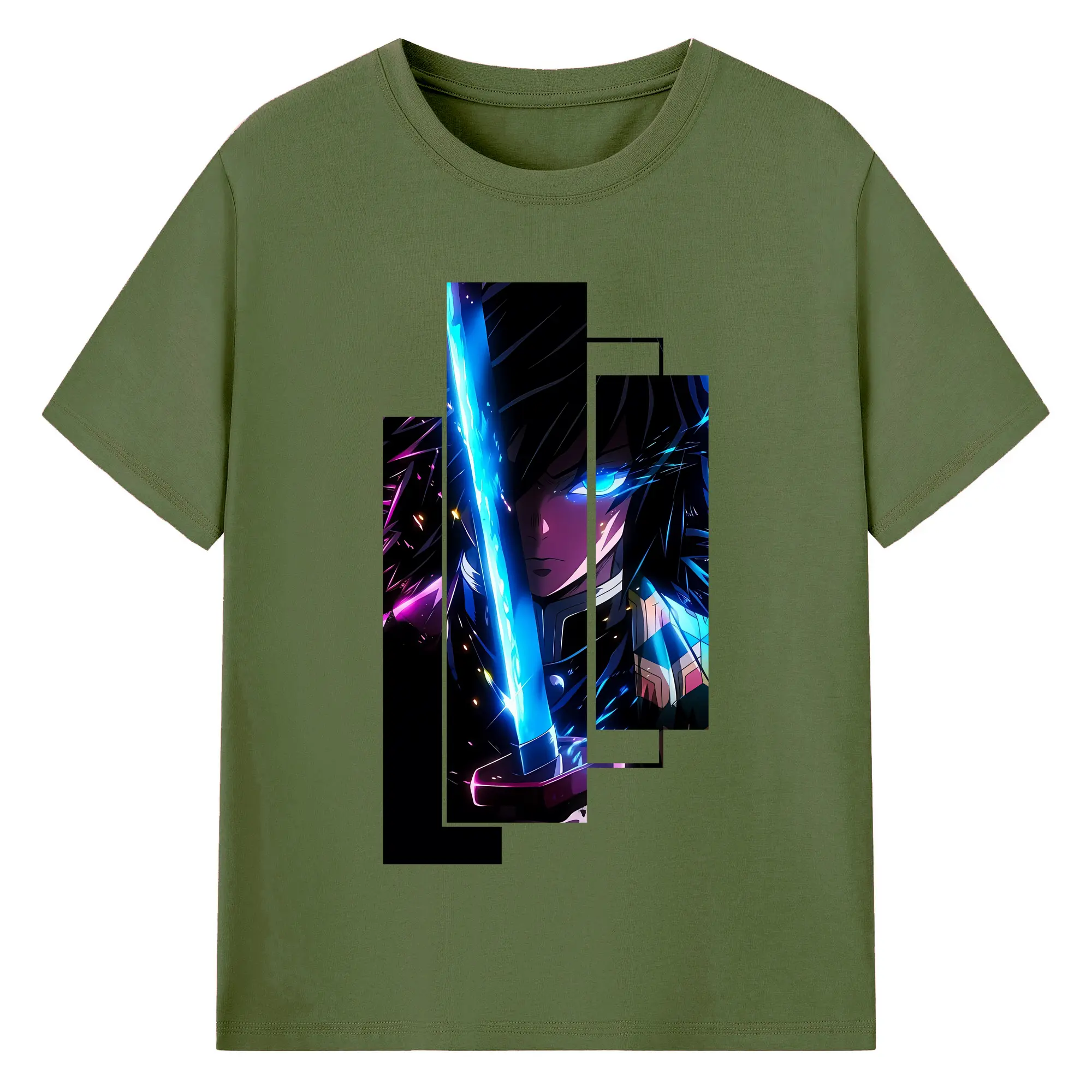 鬼滅の刃 グッズ,冨岡 義勇 - 綿100% 半袖Tシャツ ・ バックプリント ・ 快適 通気性 ・ 日常使い 散歩 スポーツ用