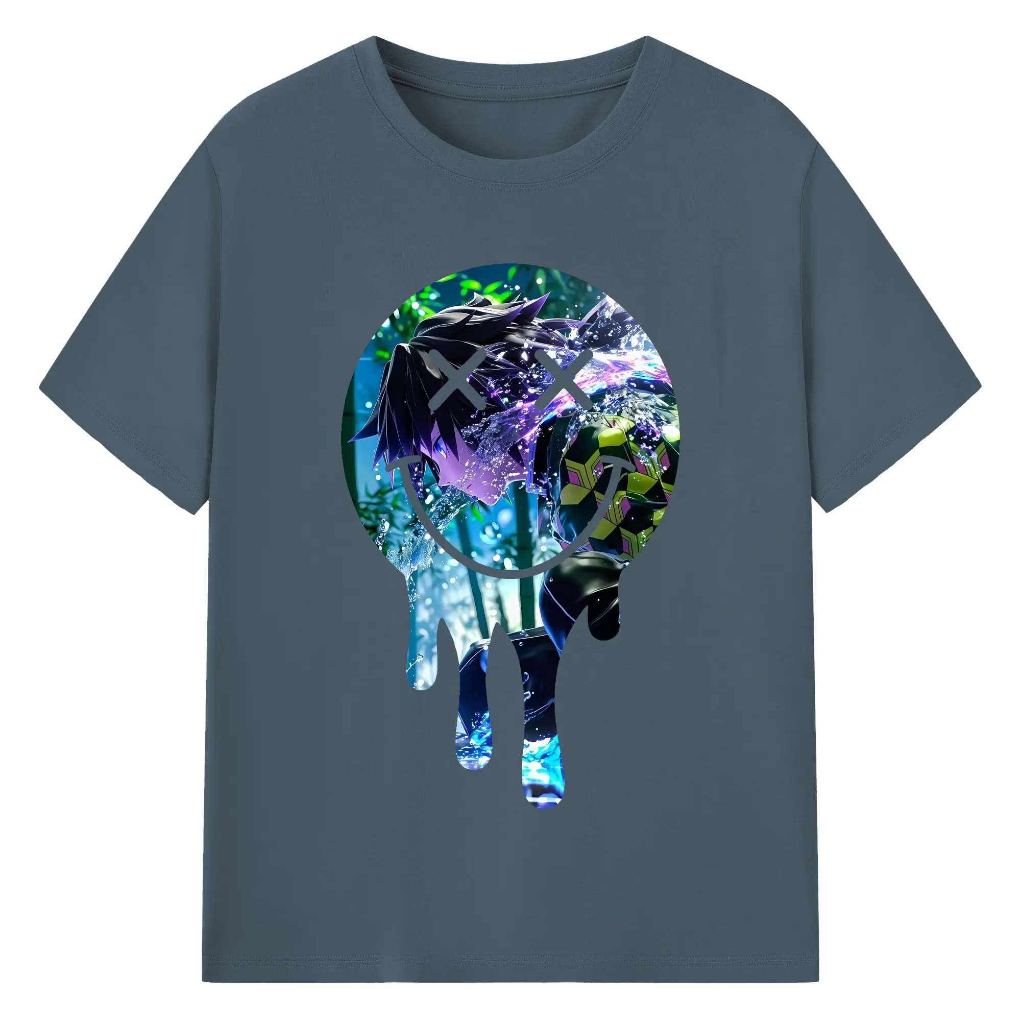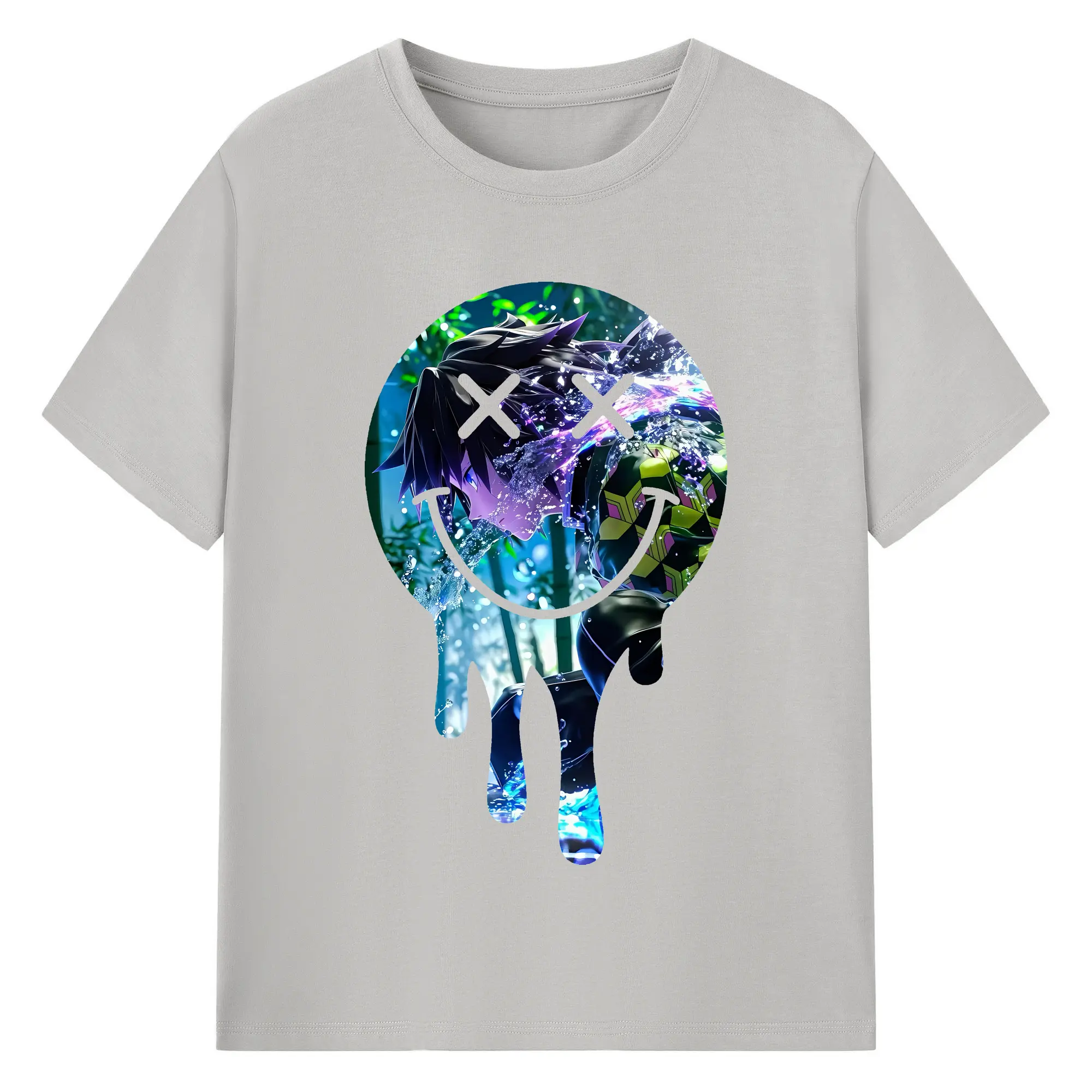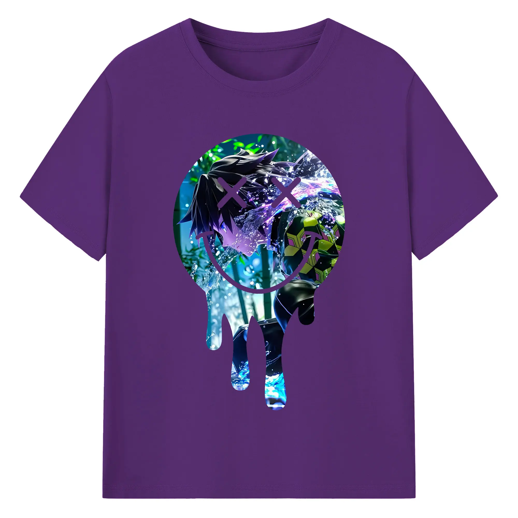 鬼滅の刃 グッズ,冨岡 義勇 - 綿100% 半袖Tシャツ ・ バックプリント ・ 快適 通気性 ・ 日常使い 散歩 スポーツ用