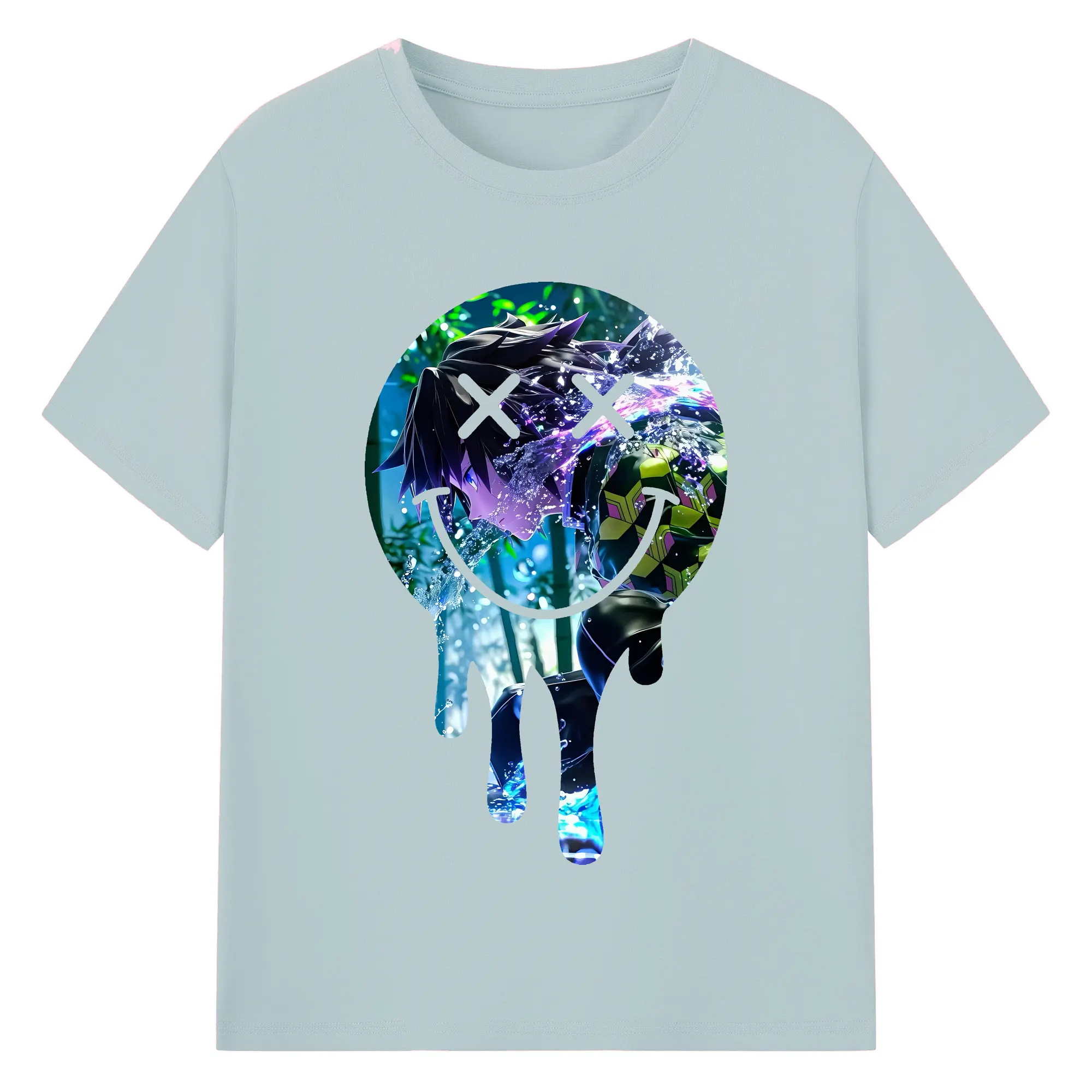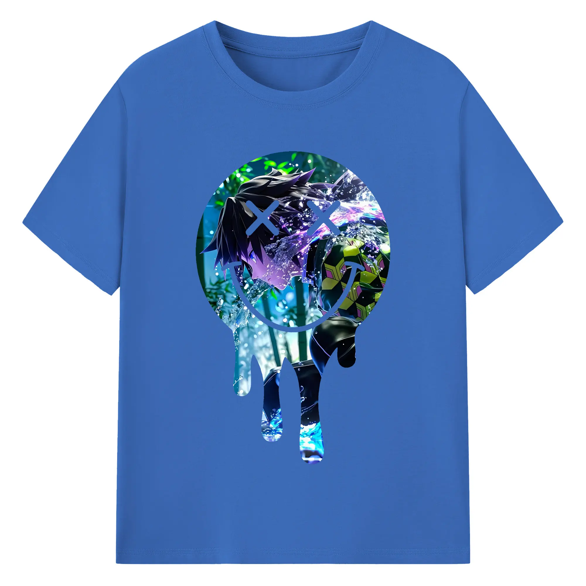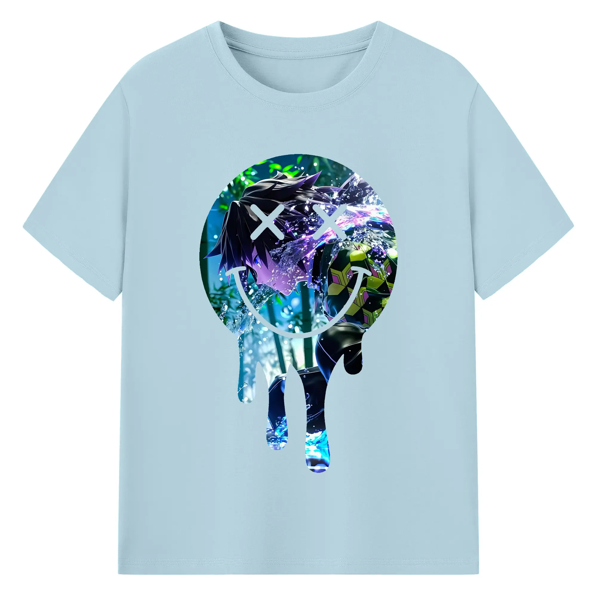 鬼滅の刃 グッズ,冨岡 義勇 - 綿100% 半袖Tシャツ ・ バックプリント ・ 快適 通気性 ・ 日常使い 散歩 スポーツ用