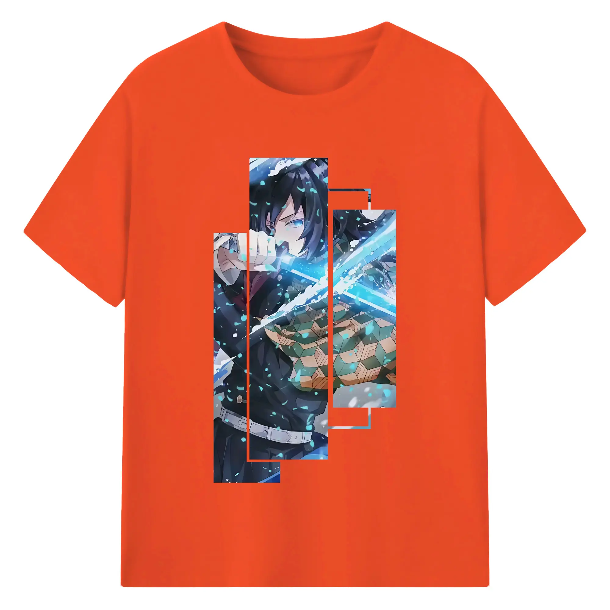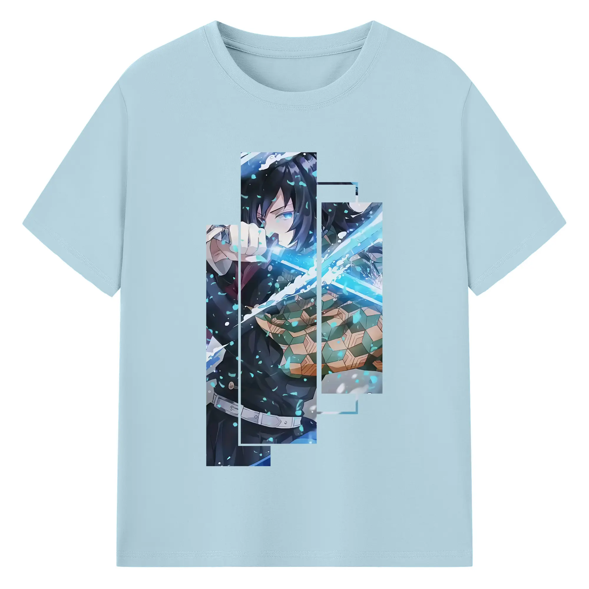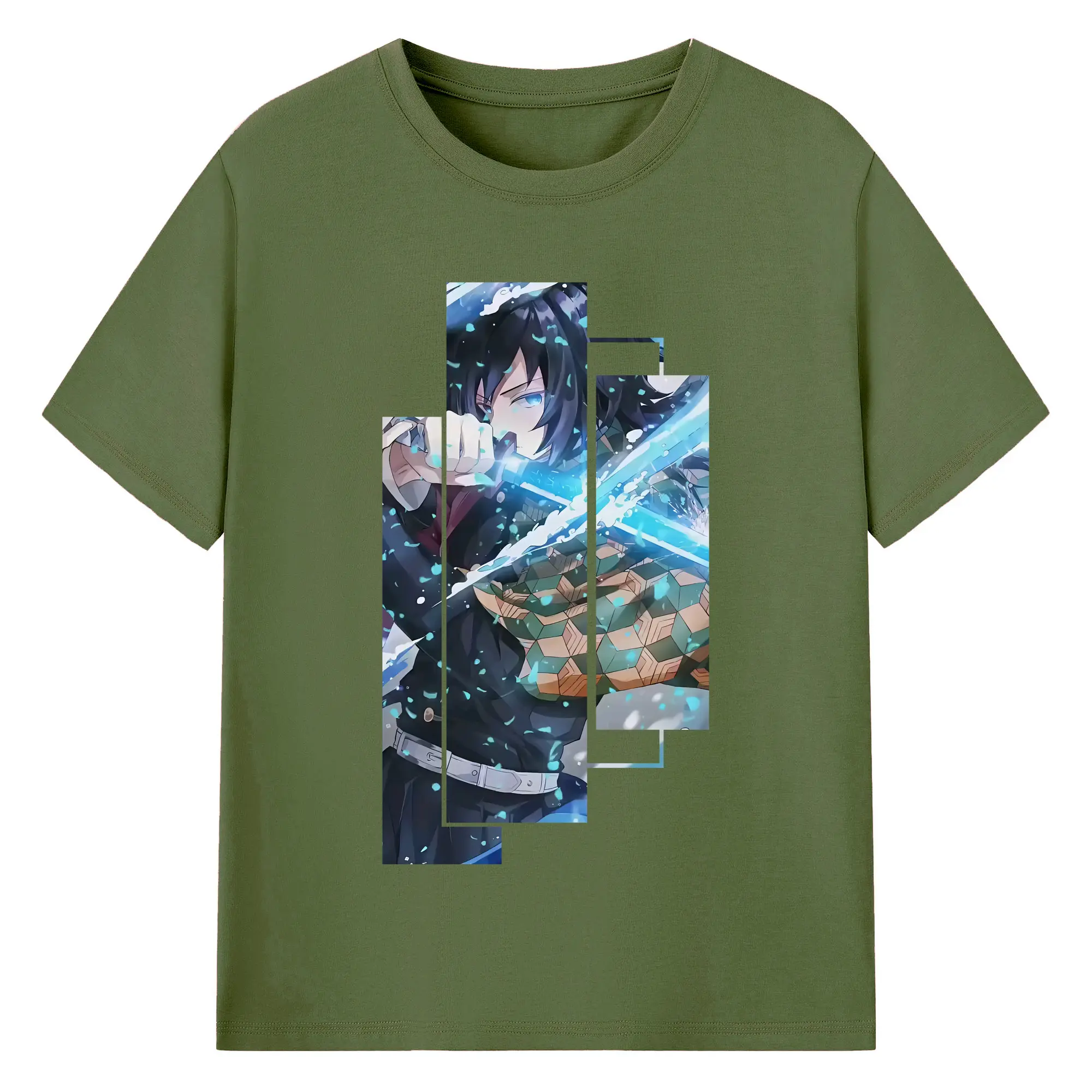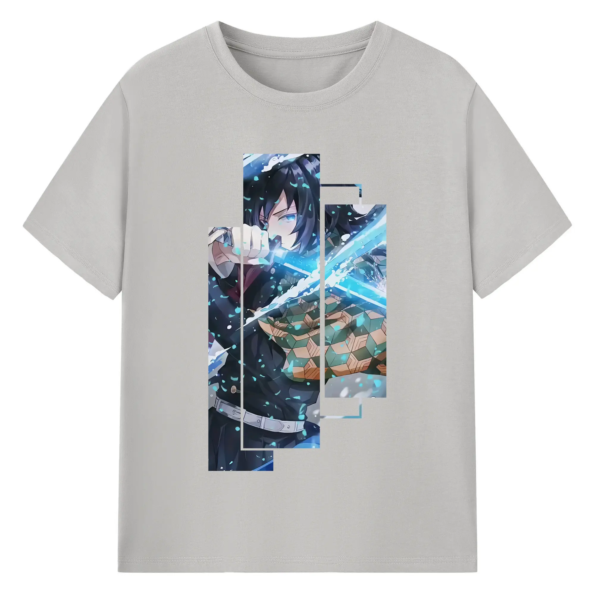 鬼滅の刃 グッズ,冨岡 義勇 - 綿100% 半袖Tシャツ ・ バックプリント ・ 快適 通気性 ・ 日常使い 散歩 スポーツ用