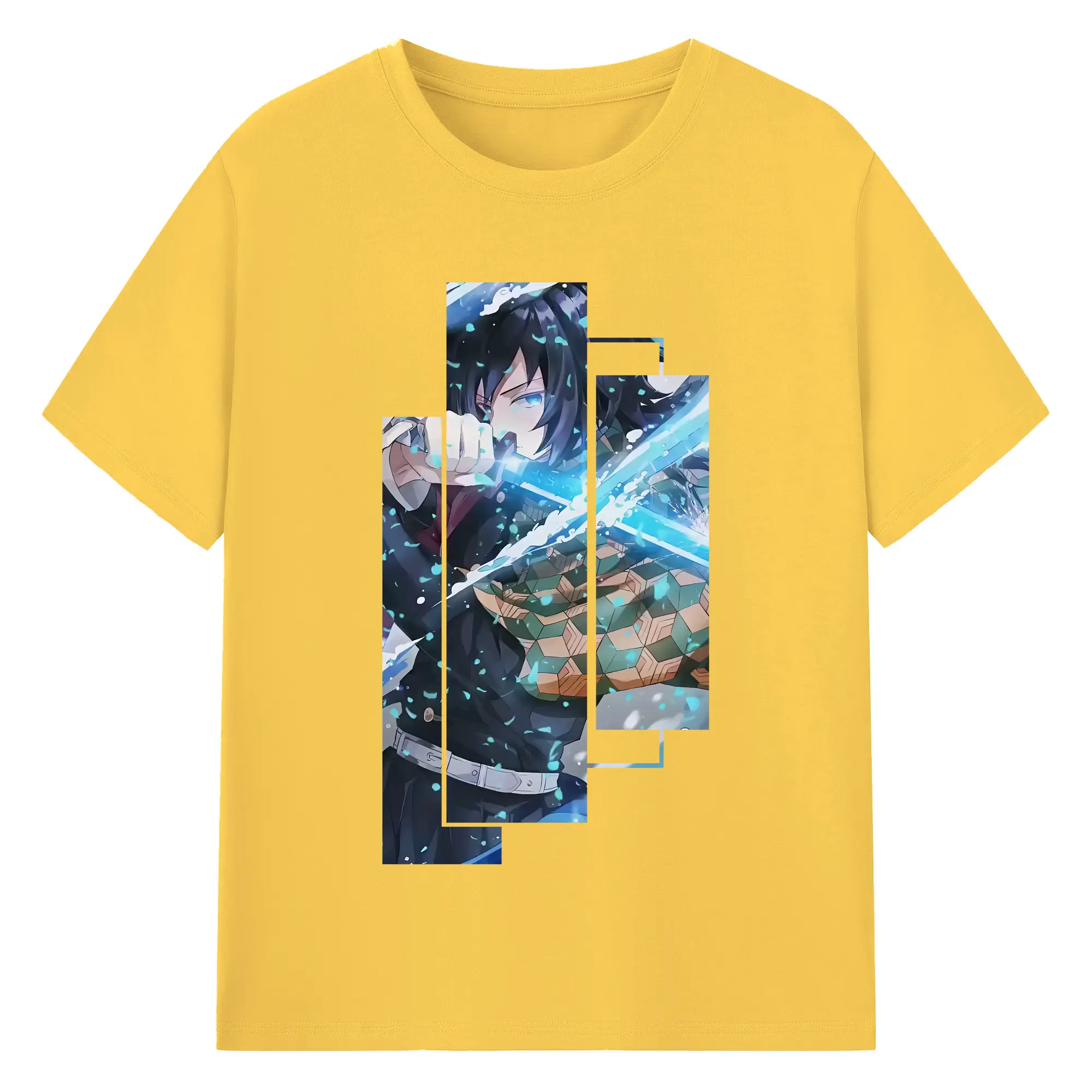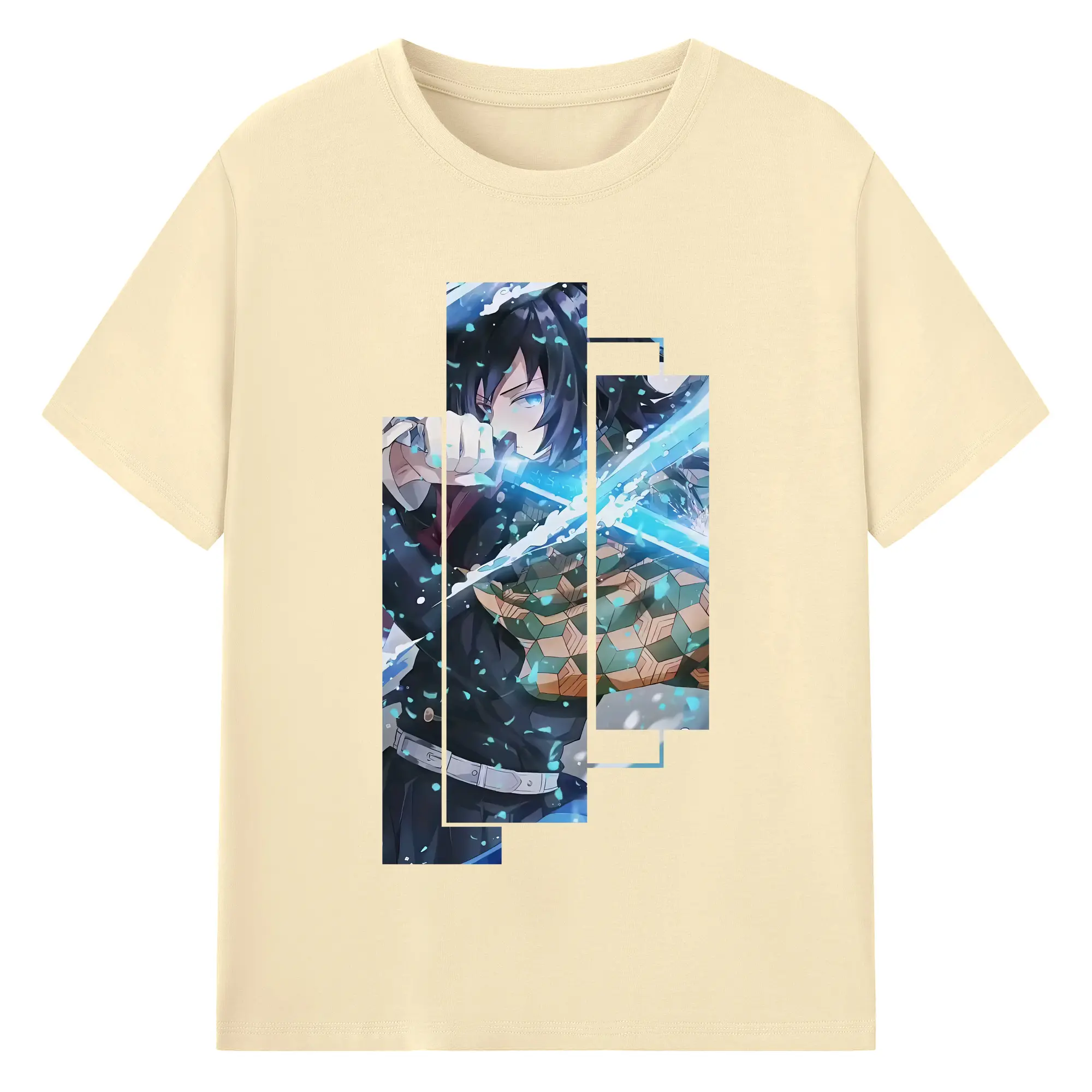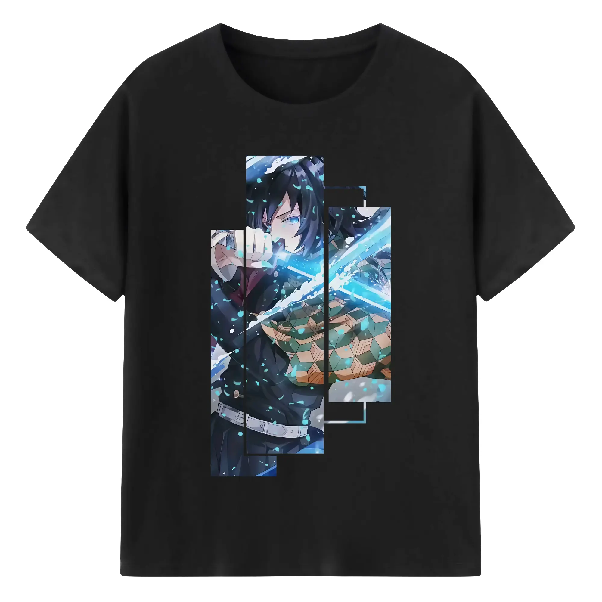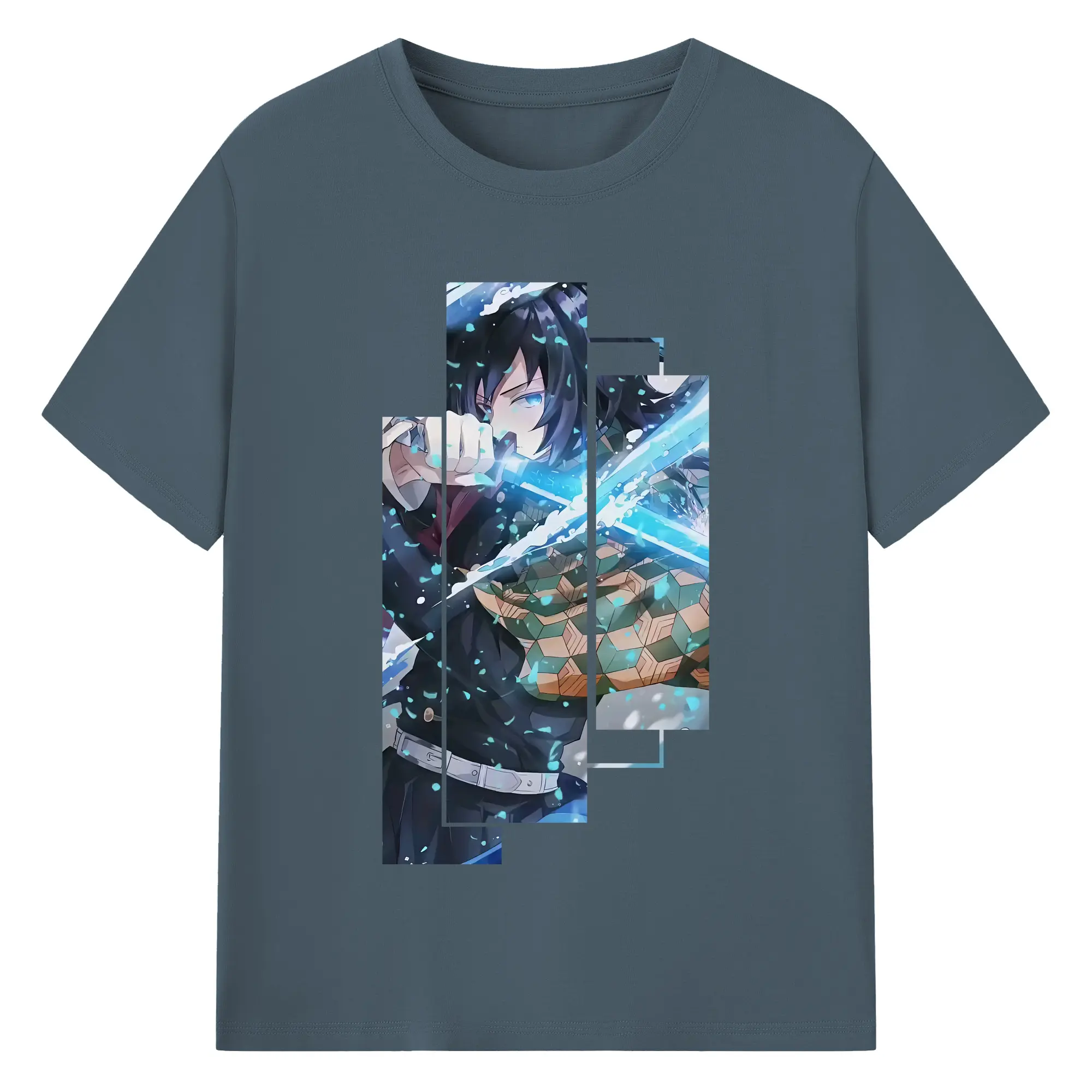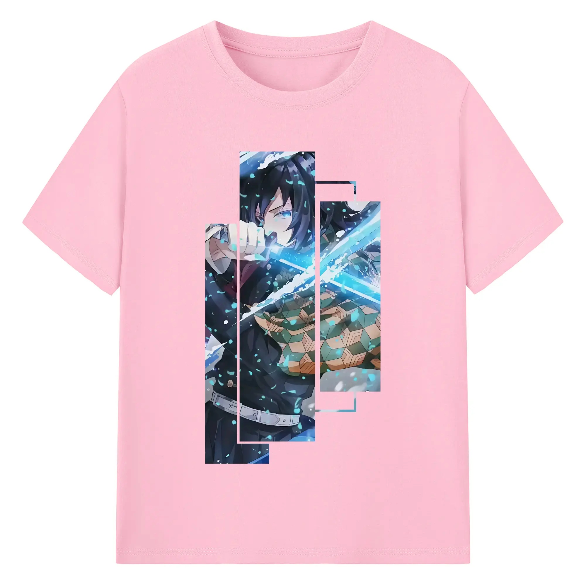 鬼滅の刃 グッズ,冨岡 義勇 - 綿100% 半袖Tシャツ ・ バックプリント ・ 快適 通気性 ・ 日常使い 散歩 スポーツ用