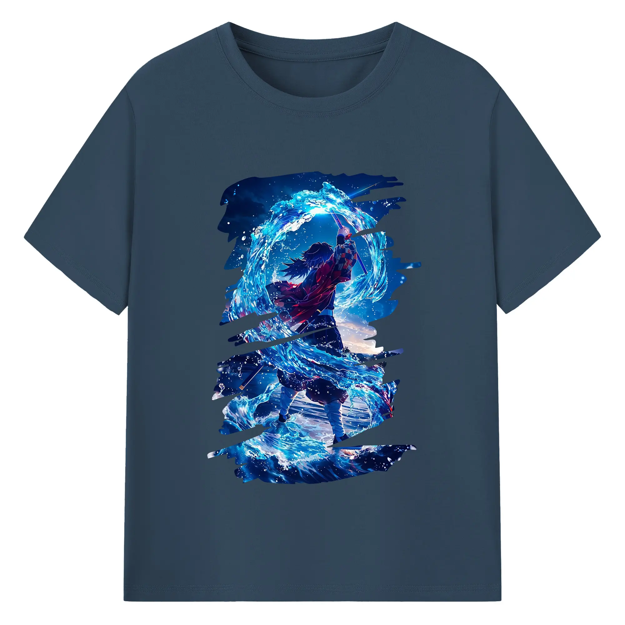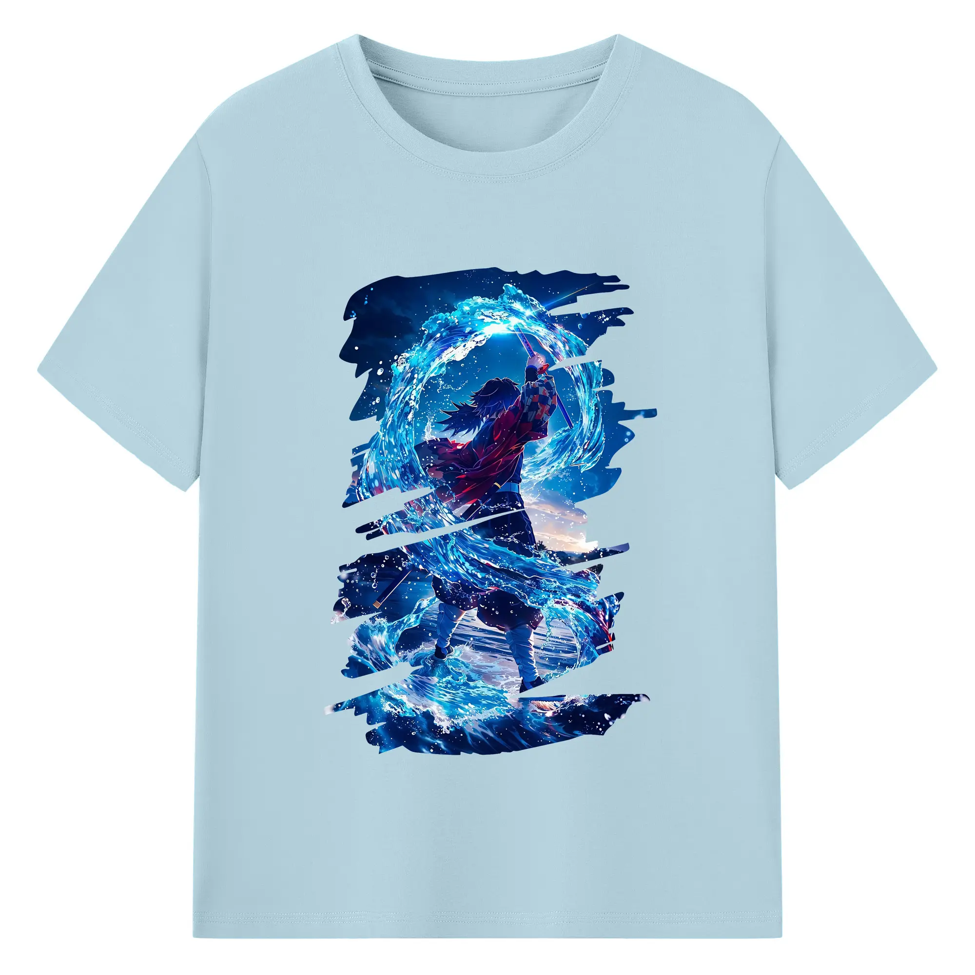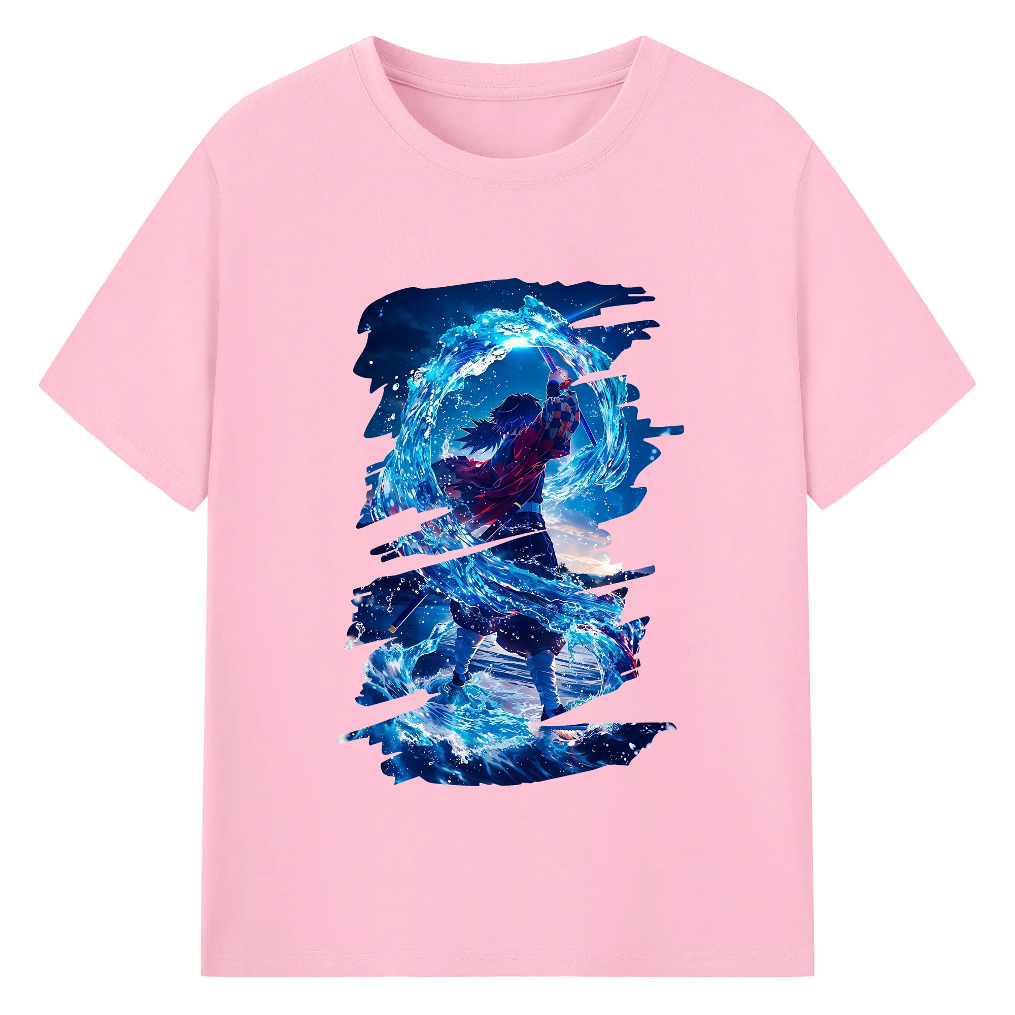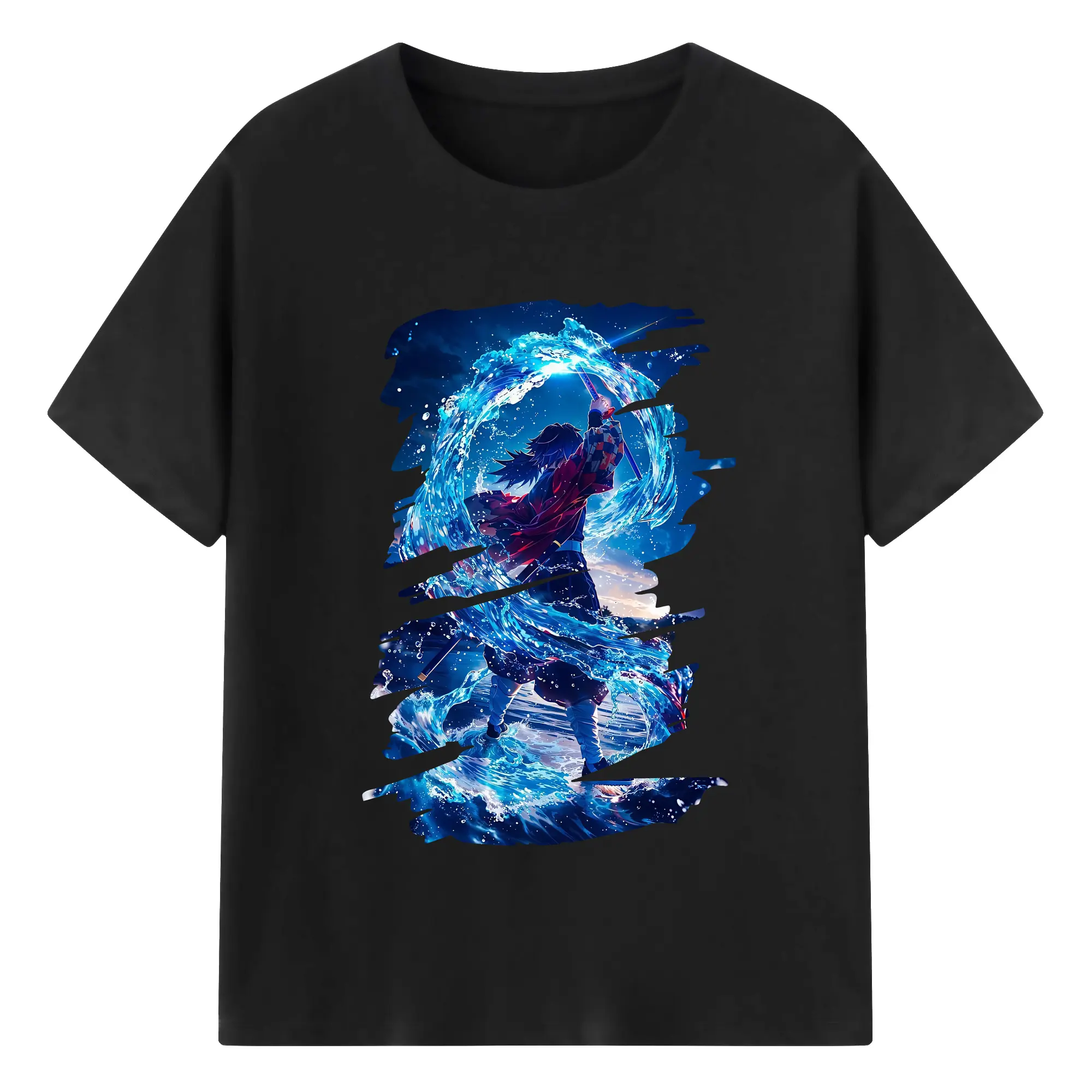 鬼滅の刃 グッズ,冨岡 義勇 - 綿100% 半袖Tシャツ ・ バックプリント ・ 快適 通気性 ・ 日常使い 散歩 スポーツ用