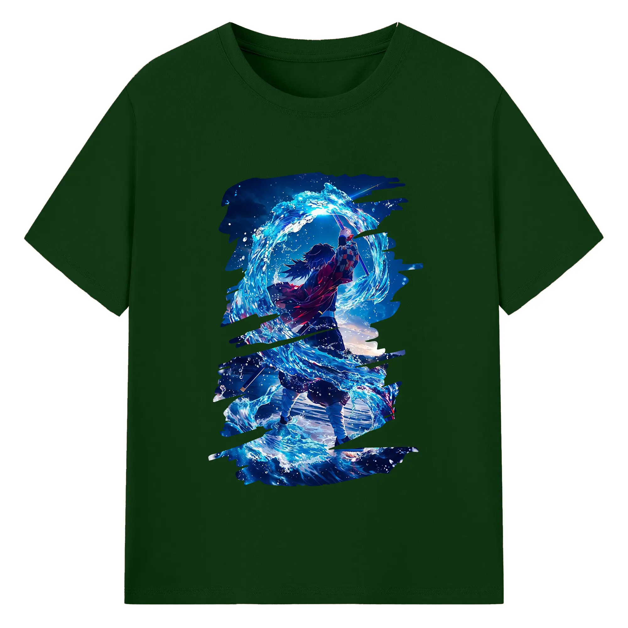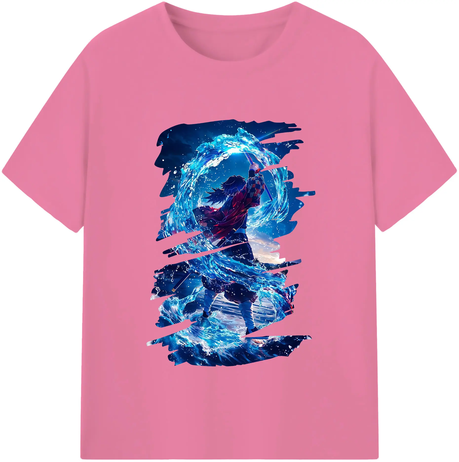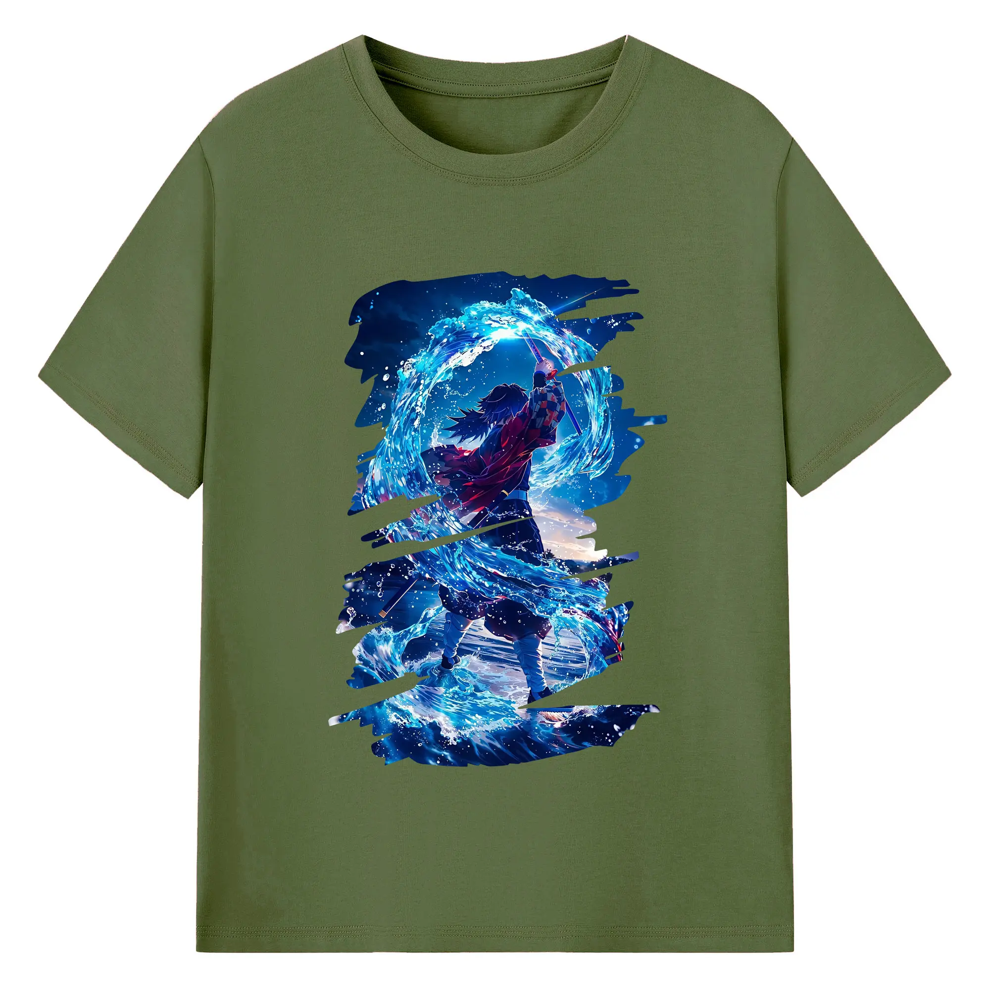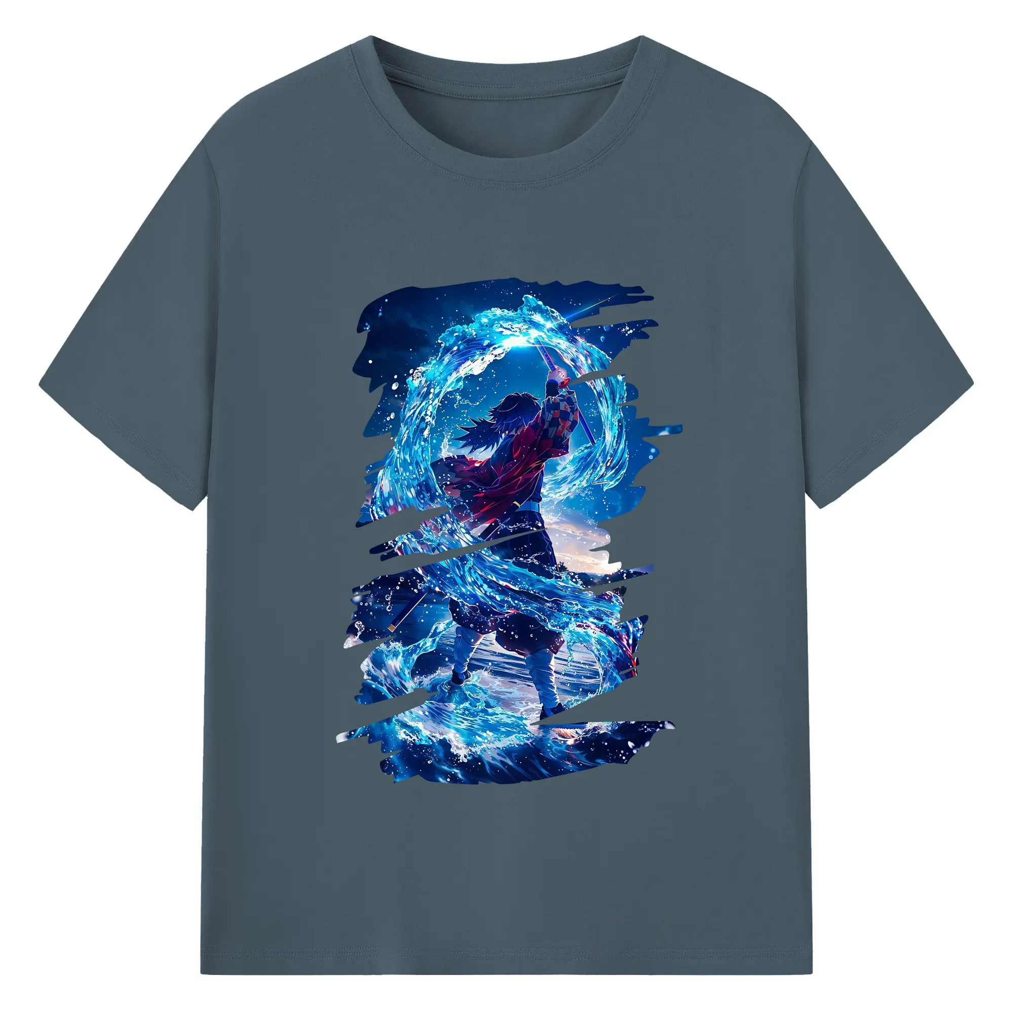 鬼滅の刃 グッズ,冨岡 義勇 - 綿100% 半袖Tシャツ ・ バックプリント ・ 快適 通気性 ・ 日常使い 散歩 スポーツ用