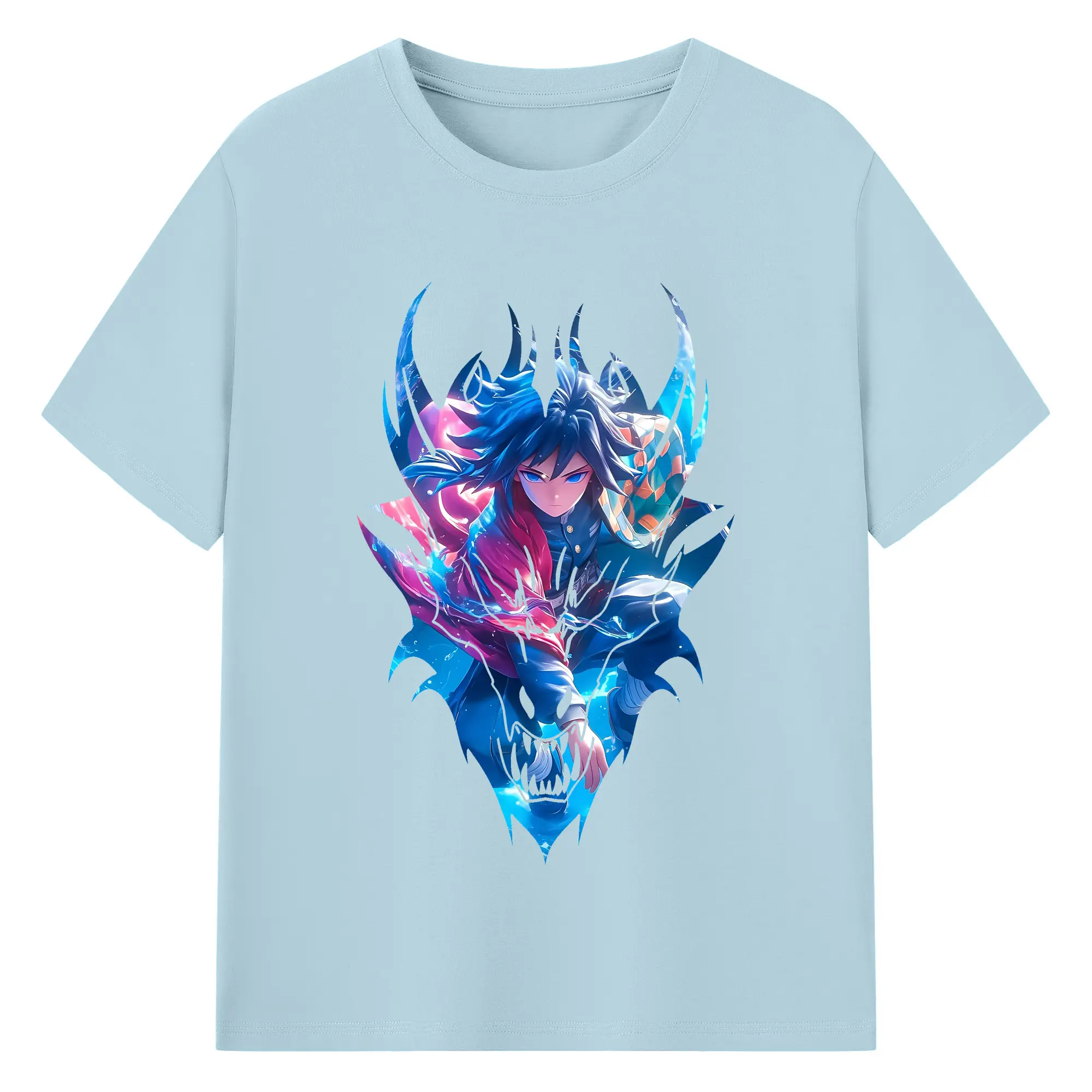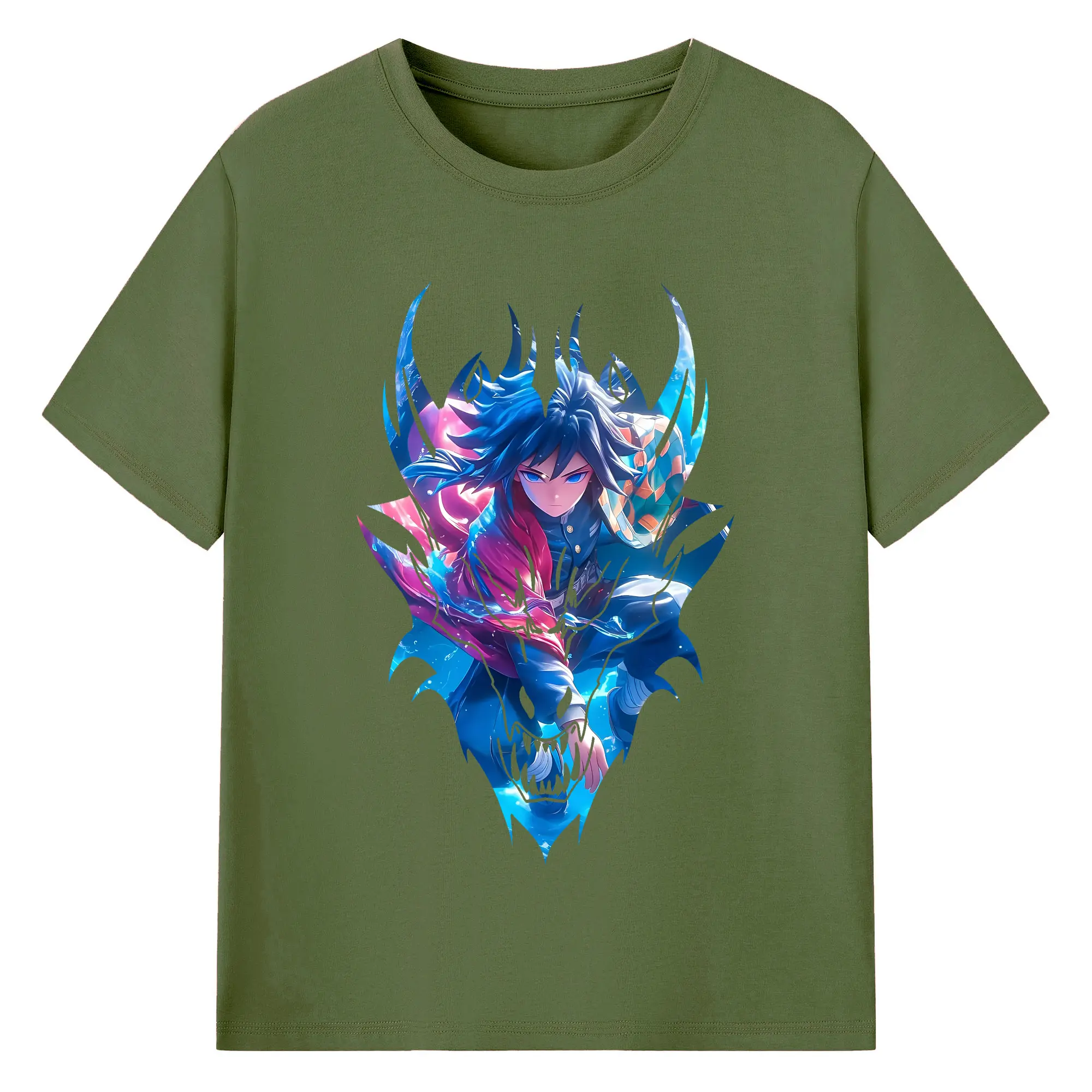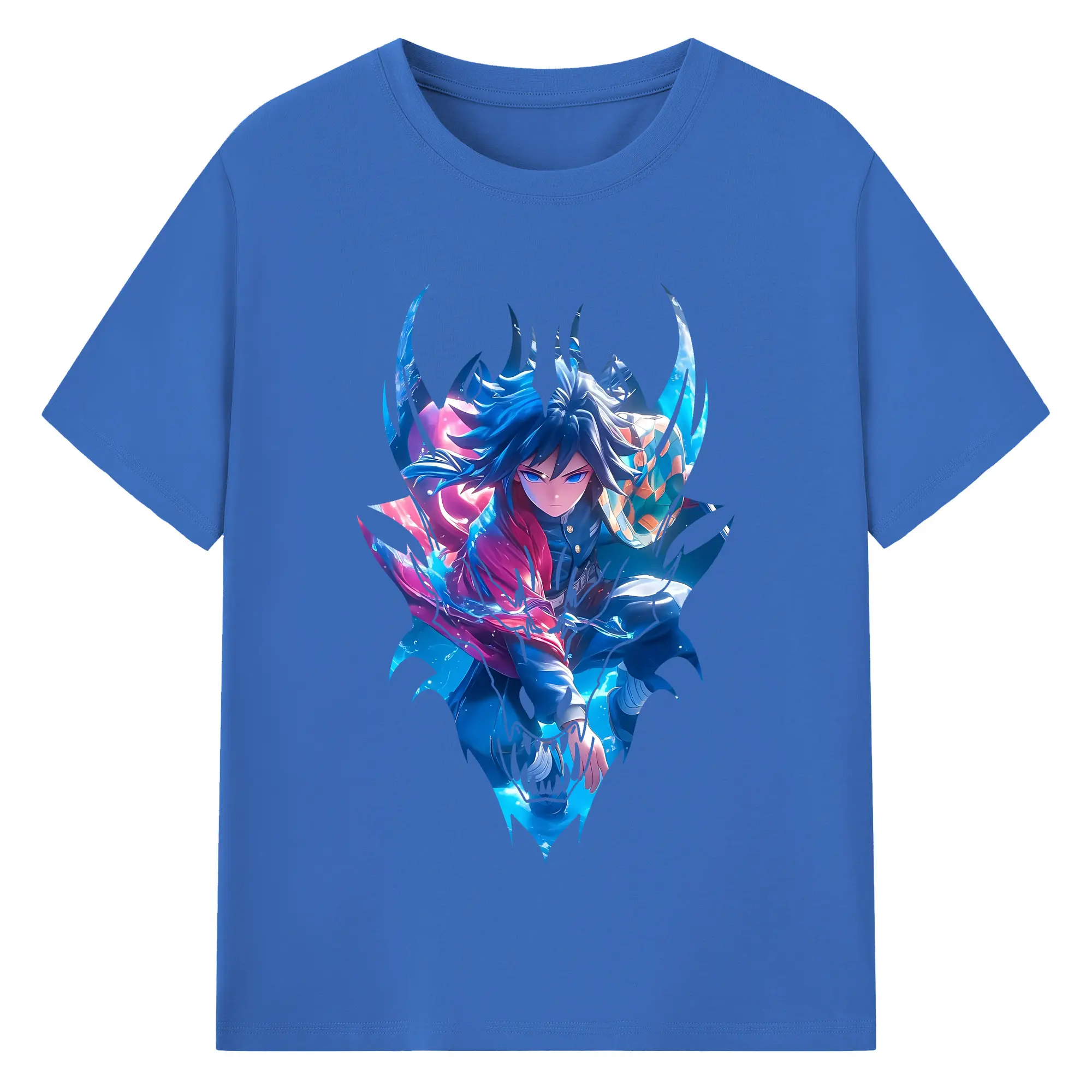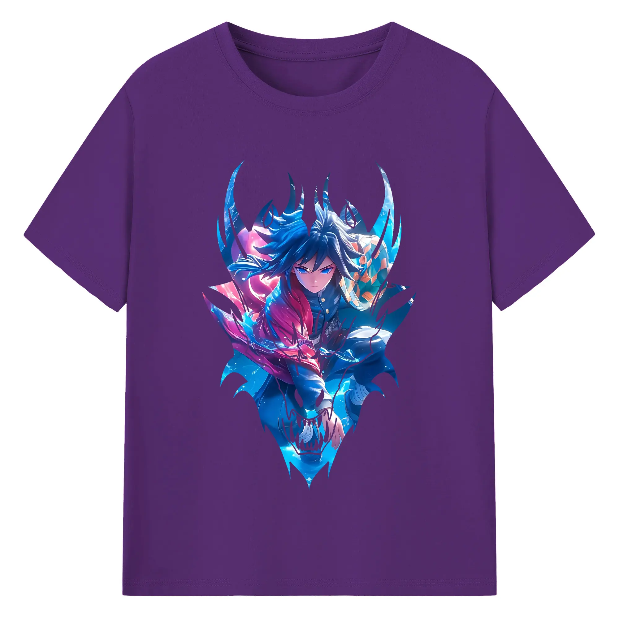 鬼滅の刃 グッズ,冨岡 義勇 - 綿100% 半袖Tシャツ ・ バックプリント ・ 快適 通気性 ・ 日常使い 散歩 スポーツ用
