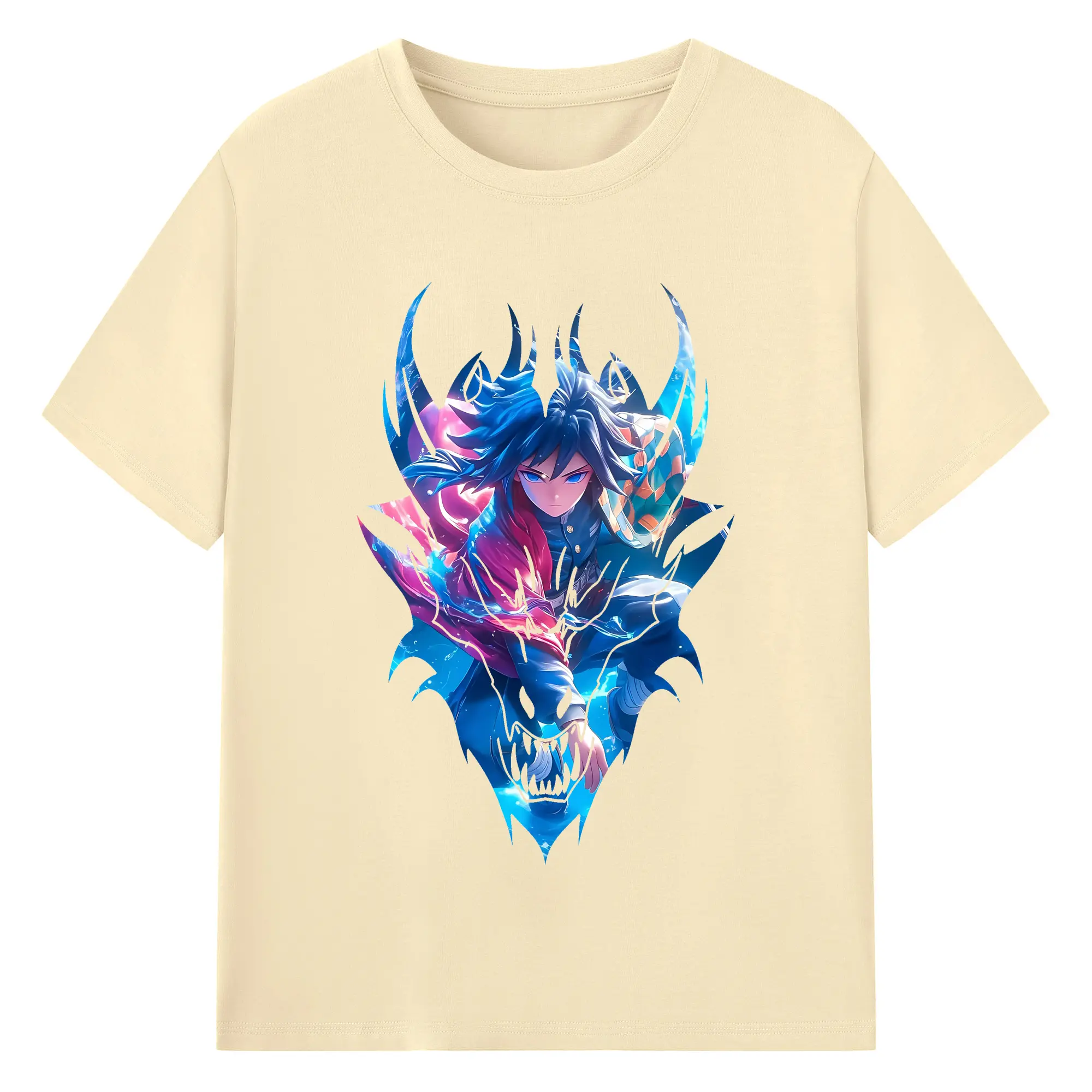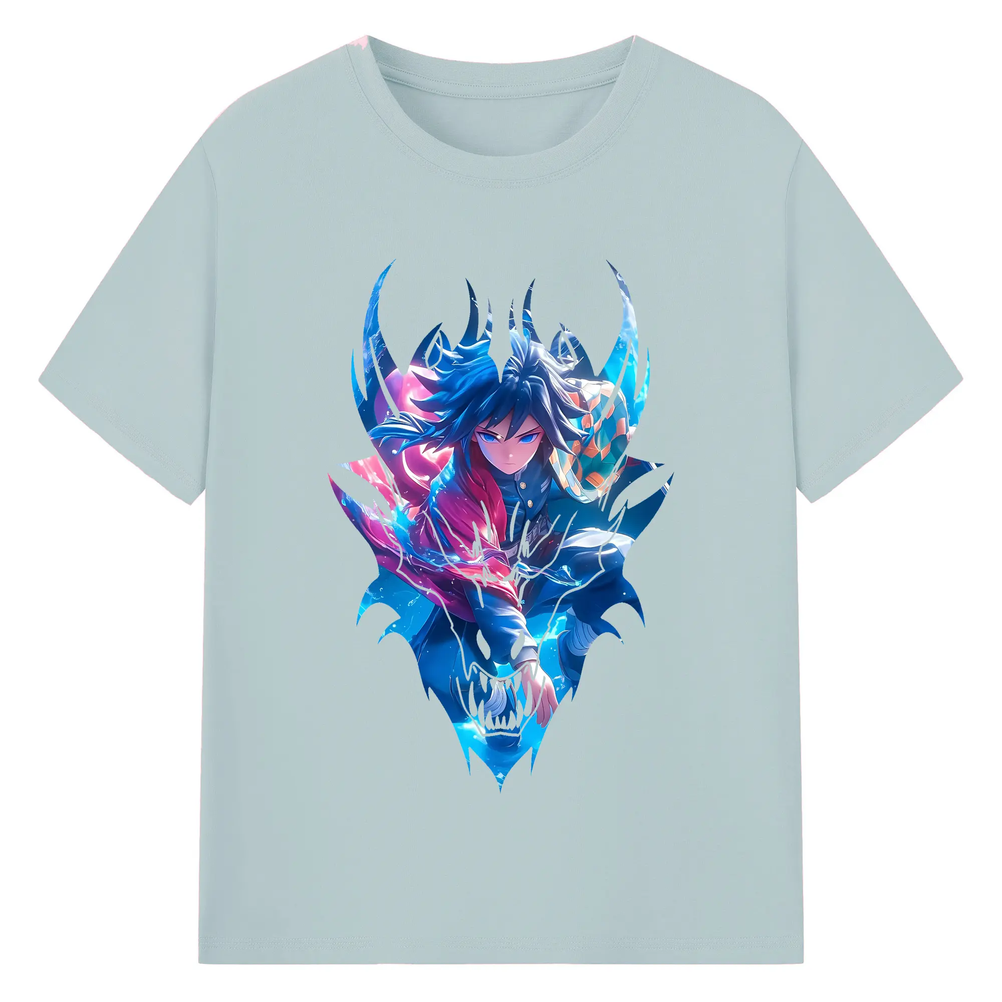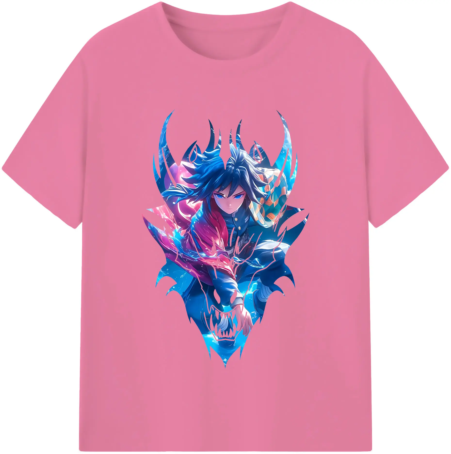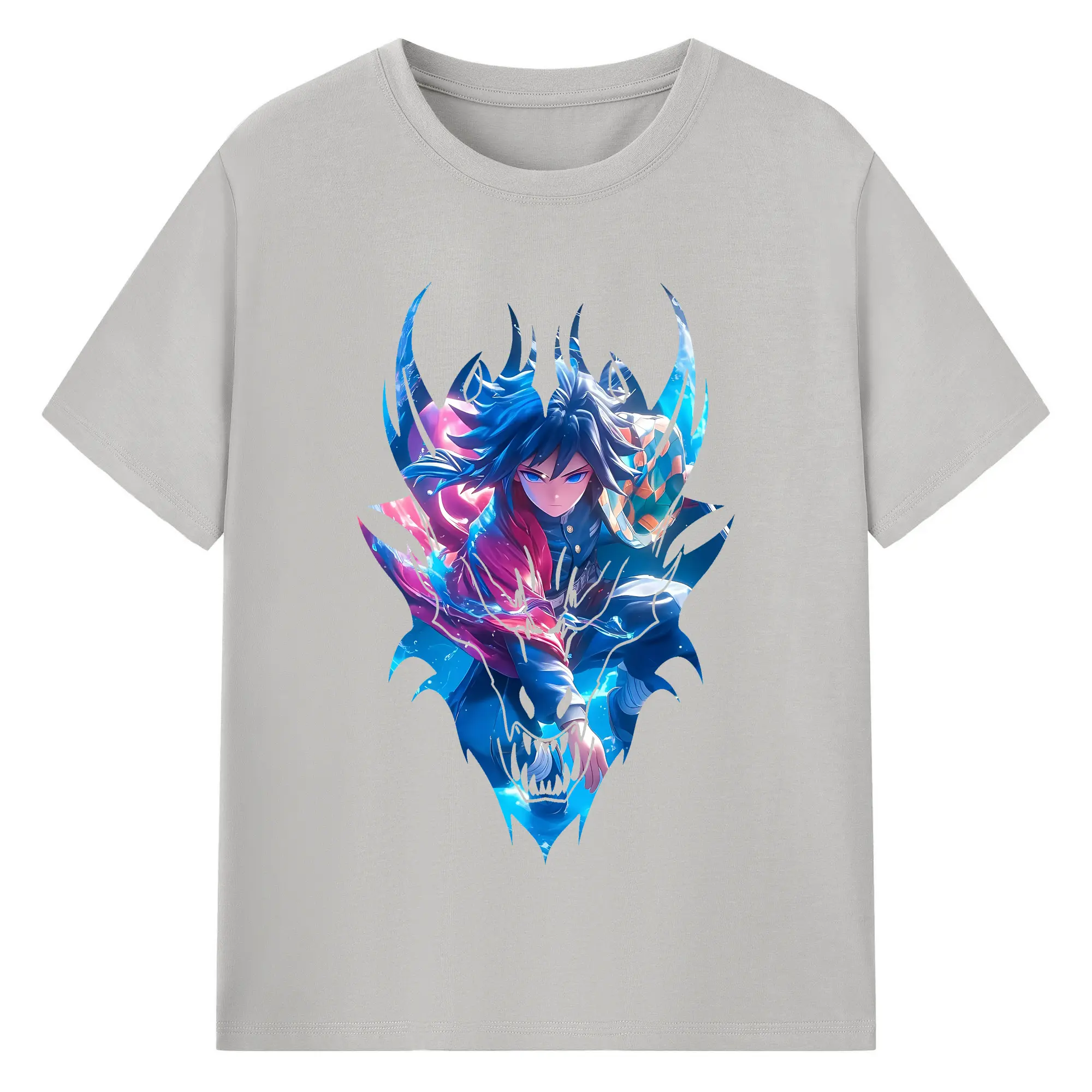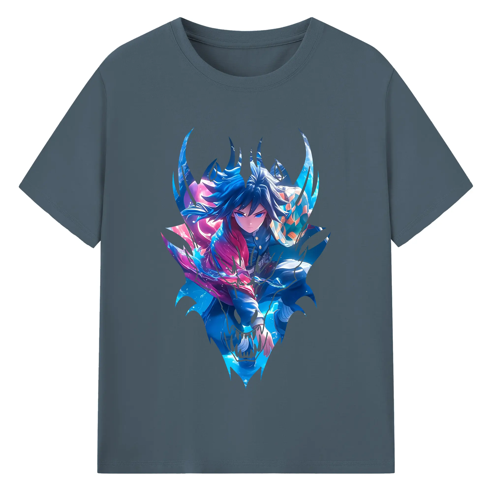鬼滅の刃 グッズ,冨岡 義勇 - 綿100% 半袖Tシャツ ・ バックプリント ・ 快適 通気性 ・ 日常使い 散歩 スポーツ用
