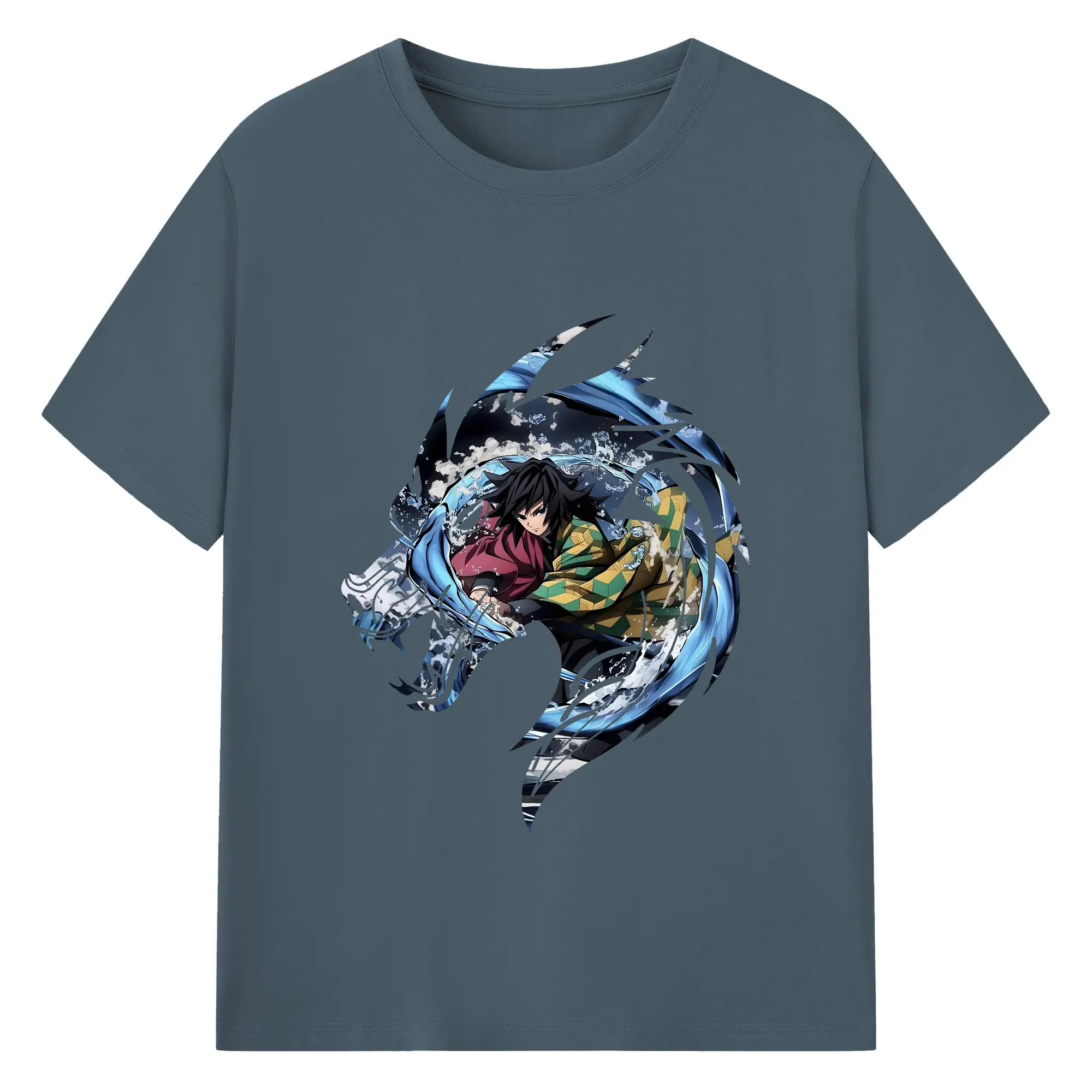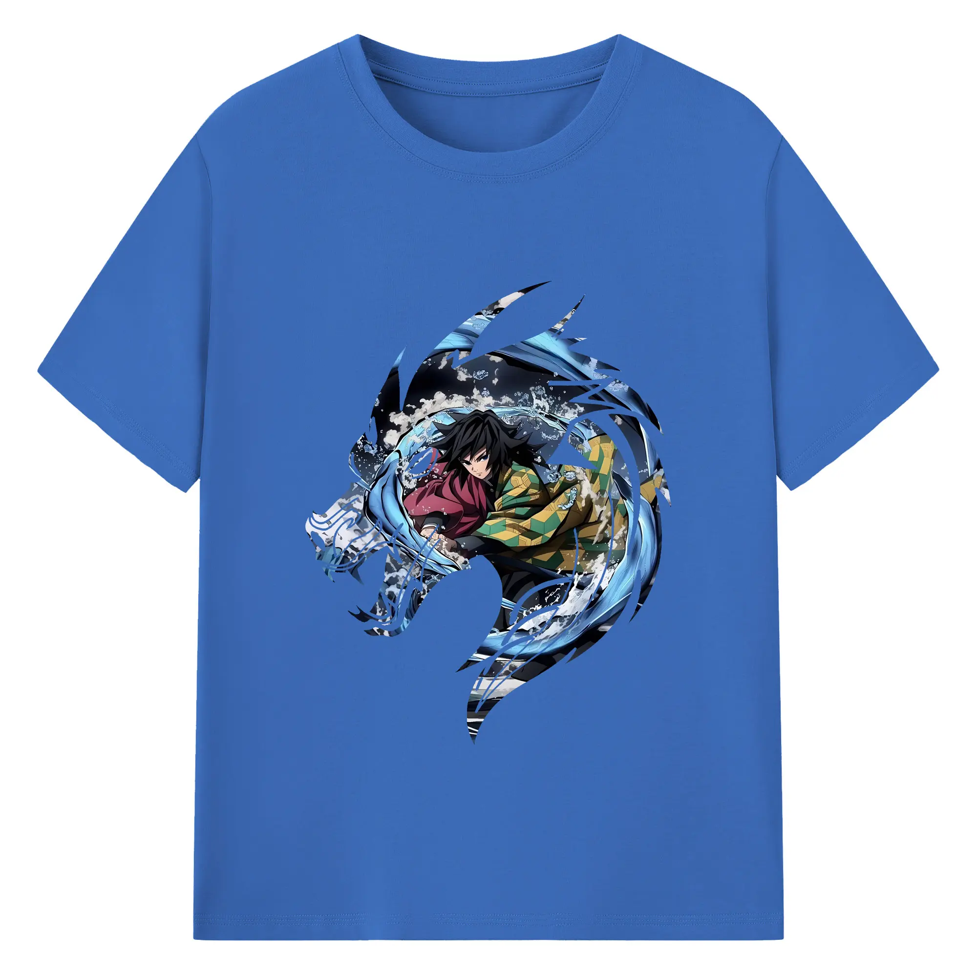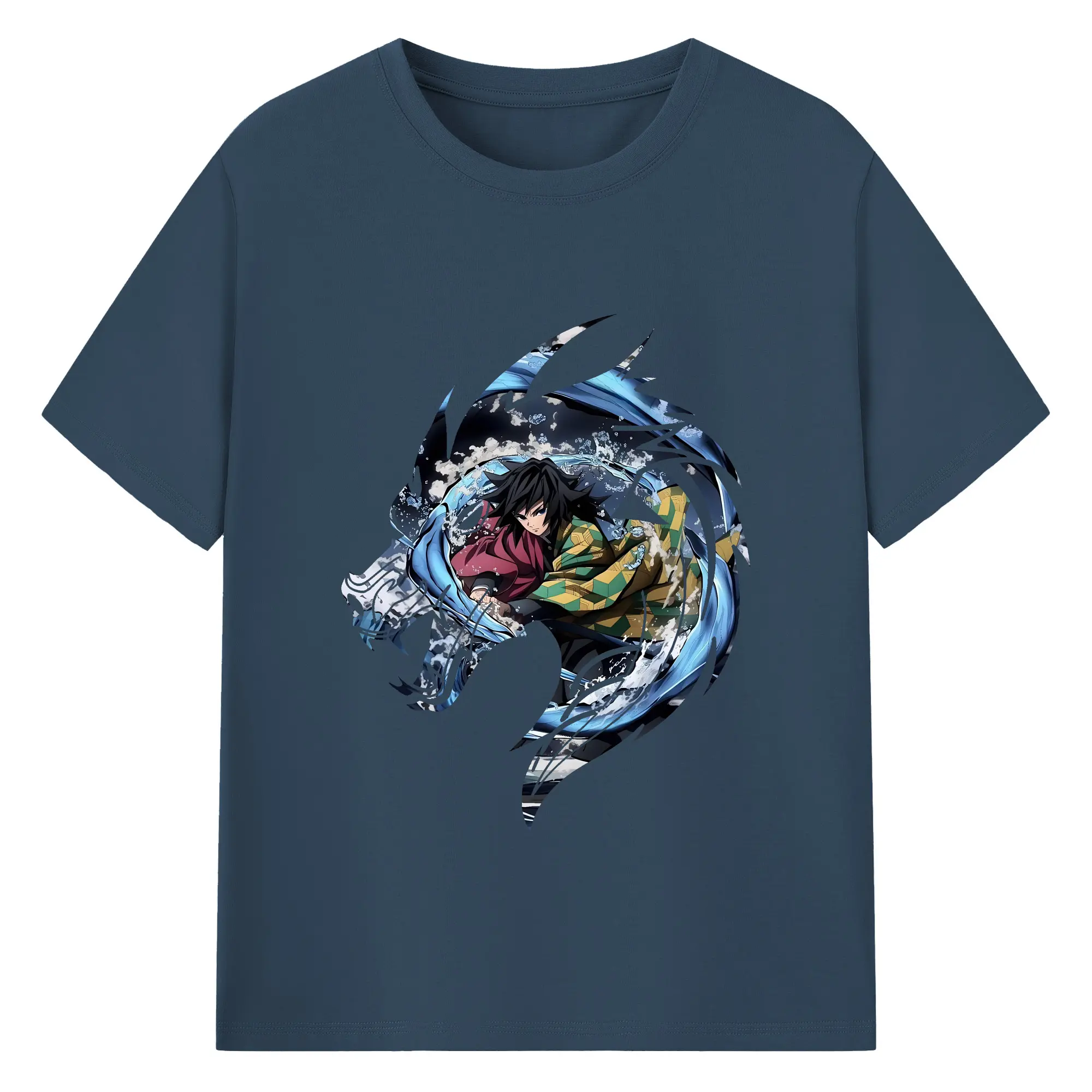 鬼滅の刃 グッズ,冨岡 義勇 - 綿100% 半袖Tシャツ ・ バックプリント ・ 快適 通気性 ・ 日常使い 散歩 スポーツ用