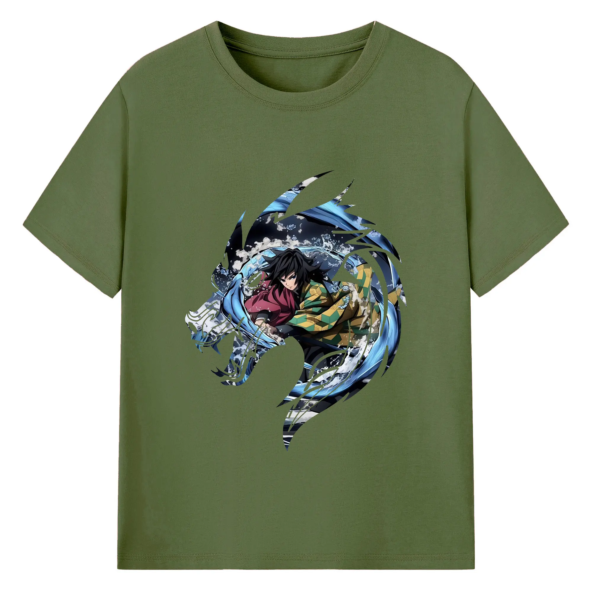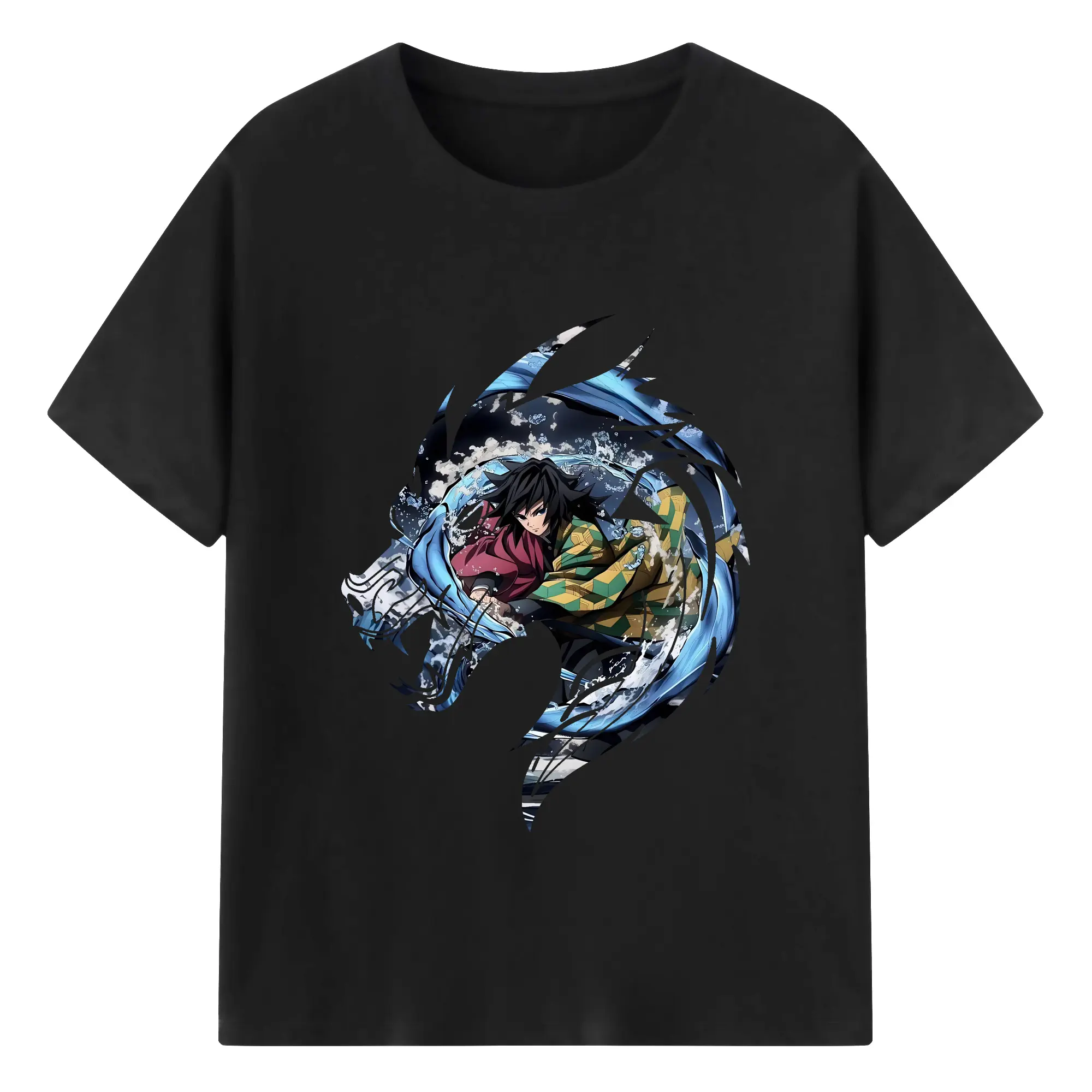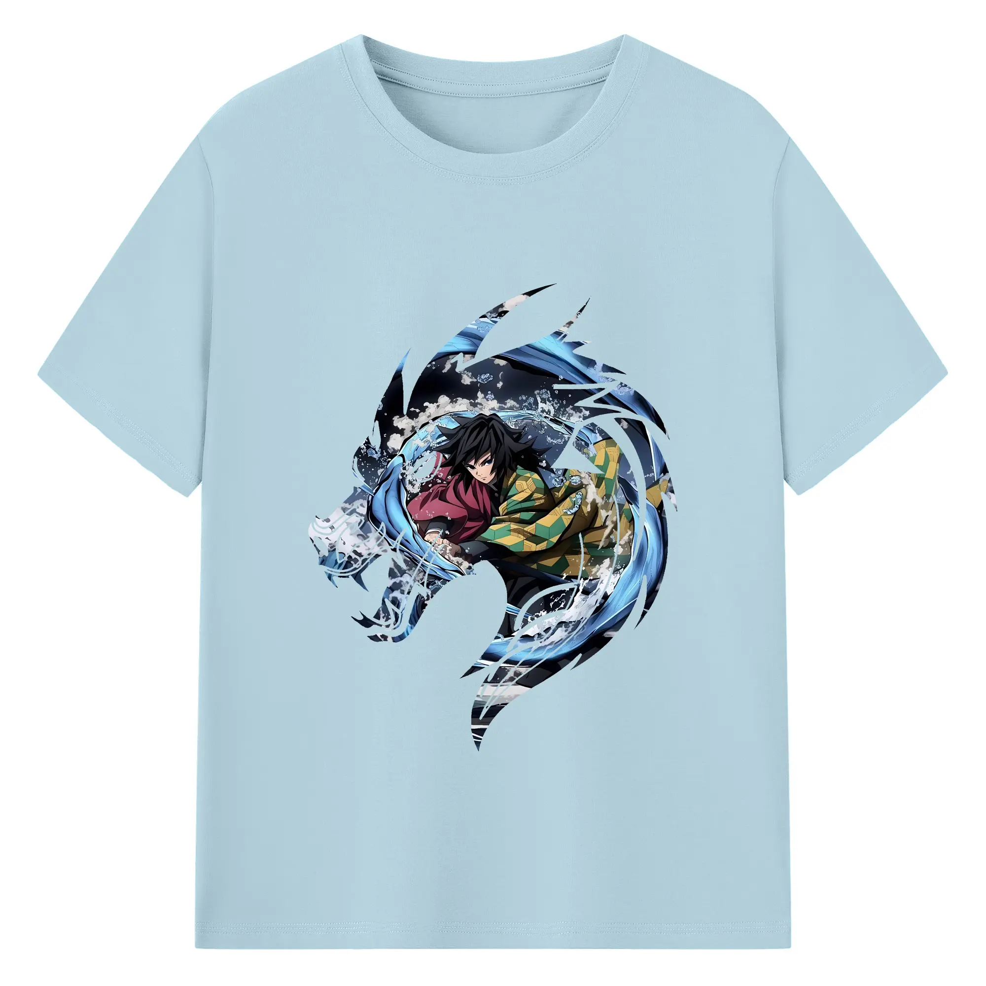 鬼滅の刃 グッズ,冨岡 義勇 - 綿100% 半袖Tシャツ ・ バックプリント ・ 快適 通気性 ・ 日常使い 散歩 スポーツ用