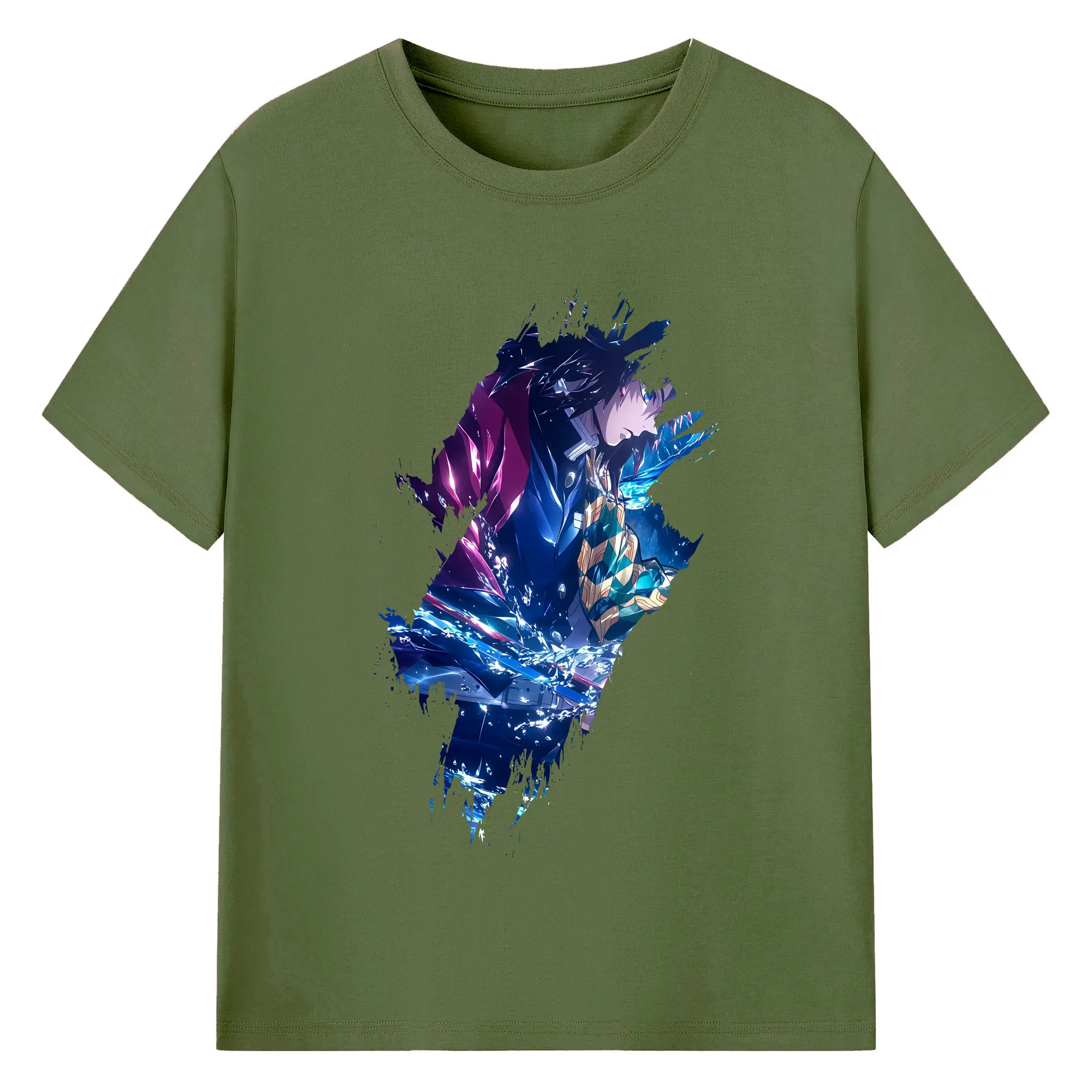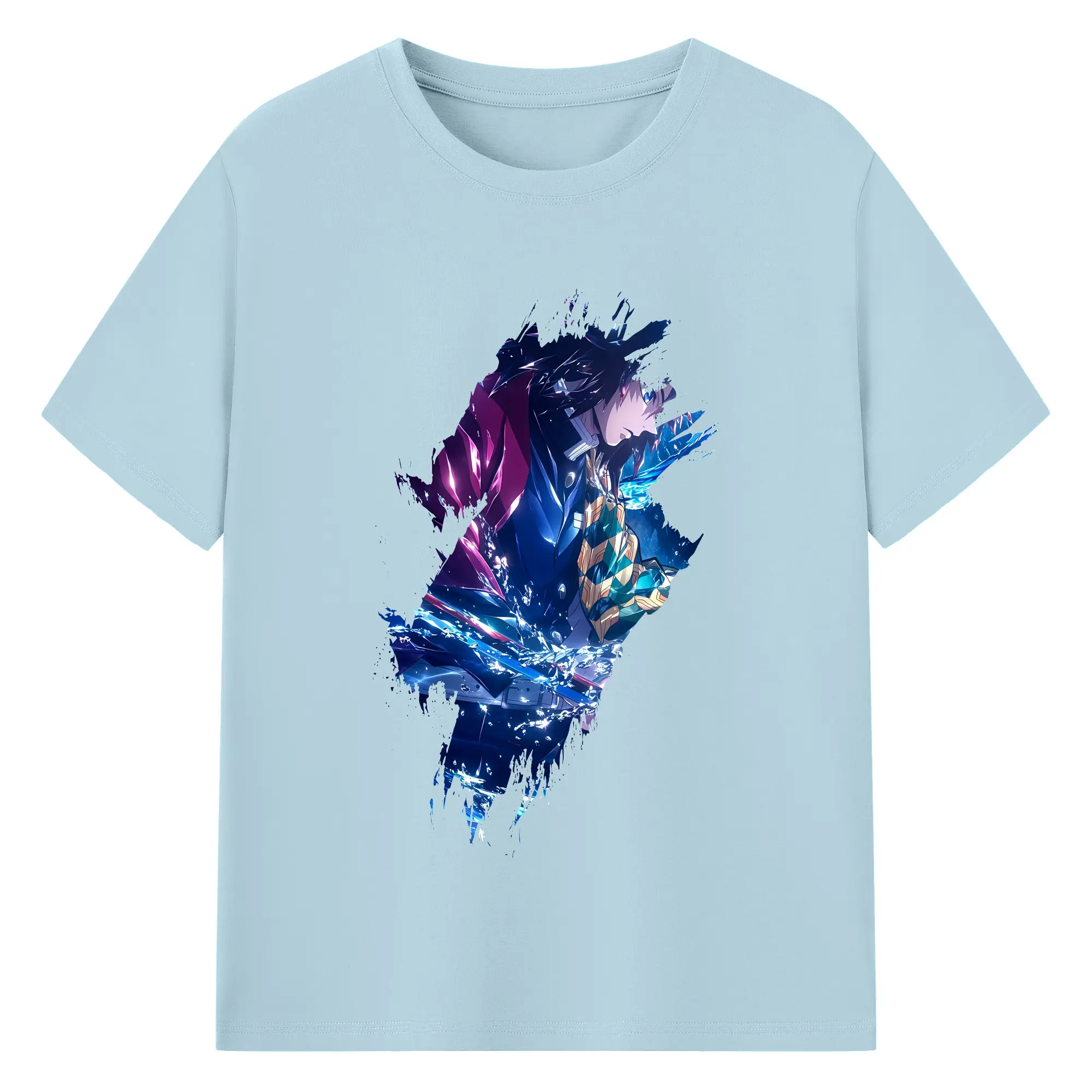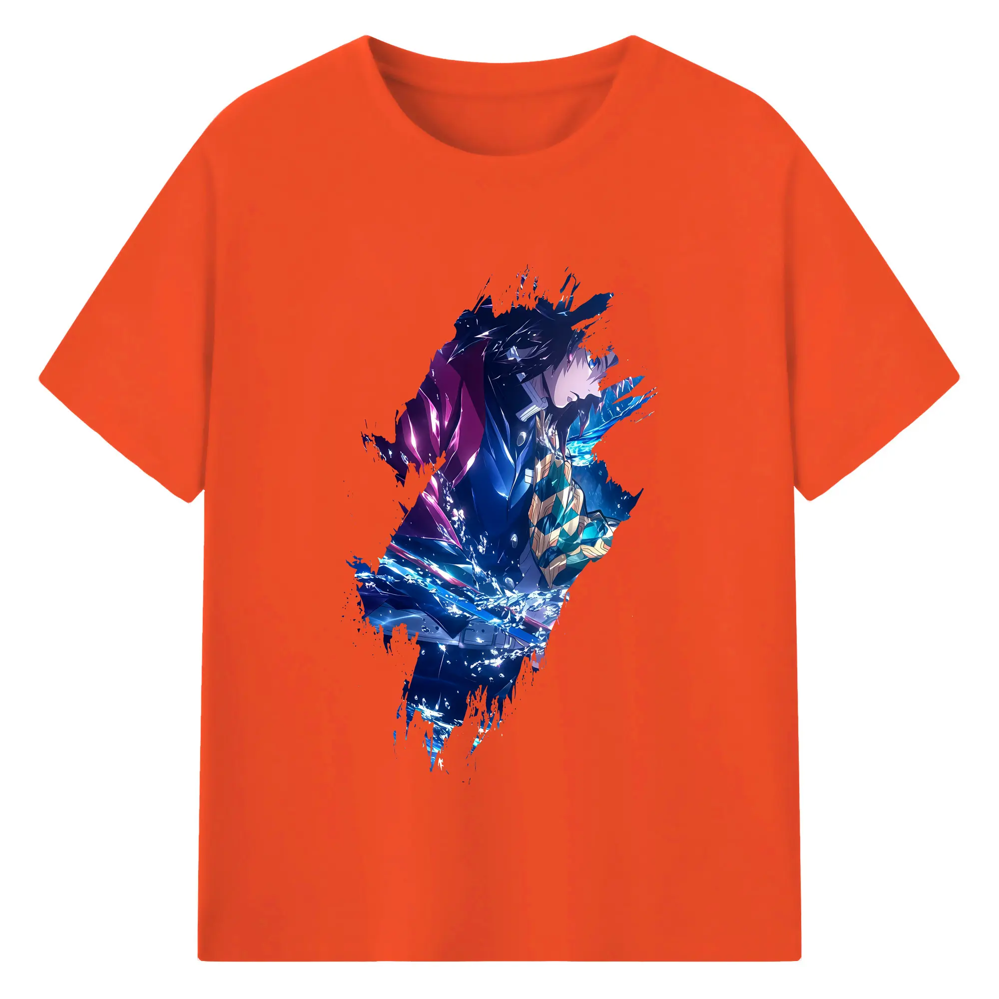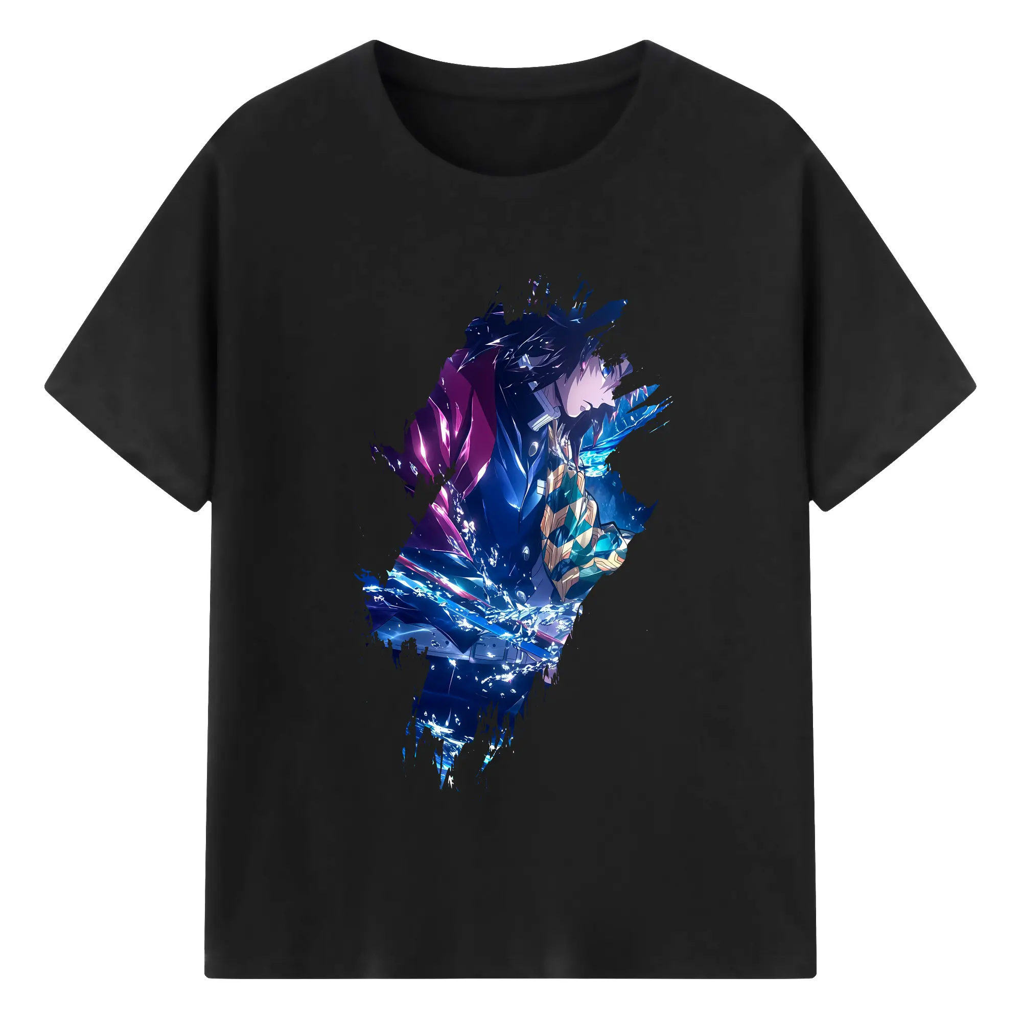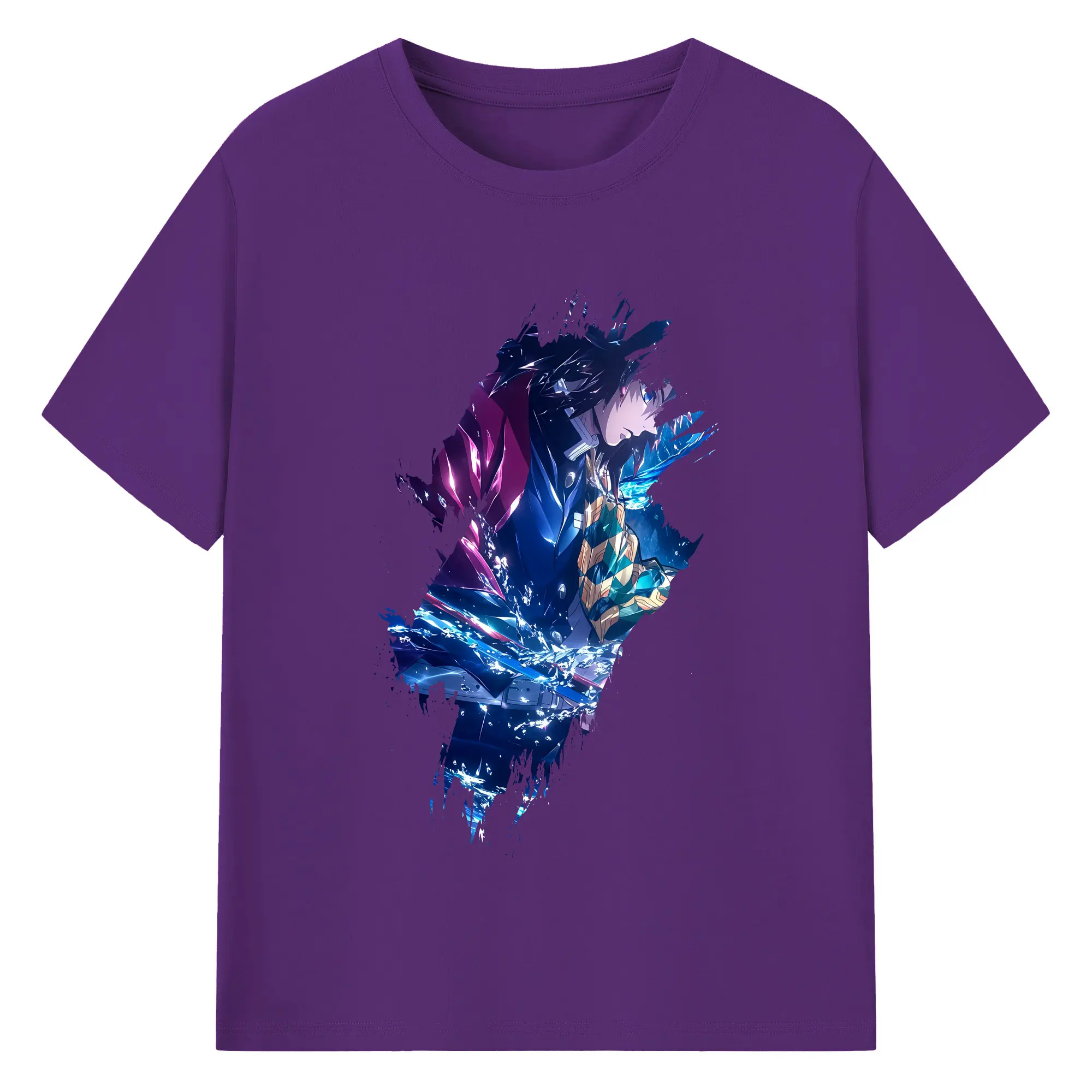 鬼滅の刃 グッズ,冨岡 義勇 - 綿100% 半袖Tシャツ ・ バックプリント ・ 快適 通気性 ・ 日常使い 散歩 スポーツ用