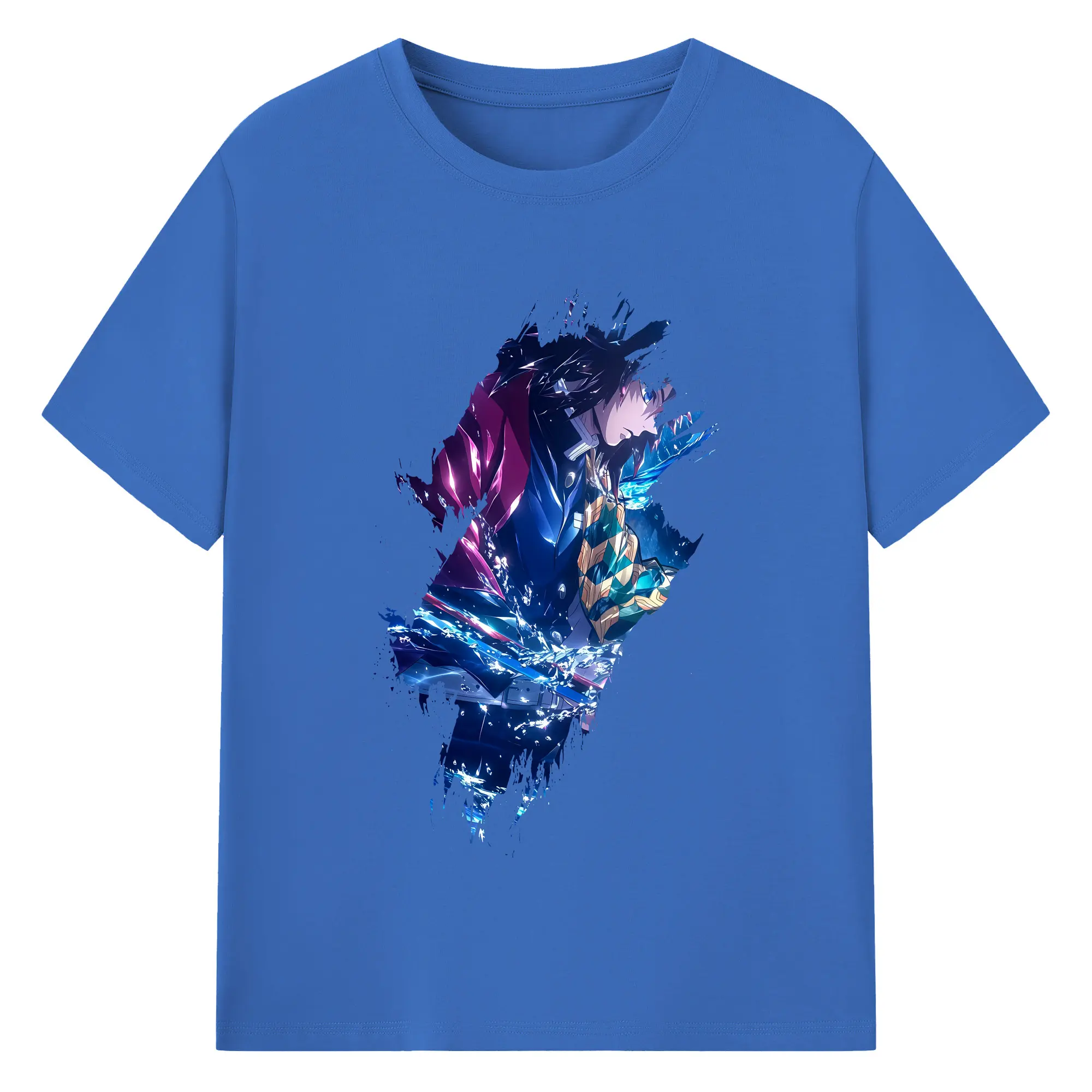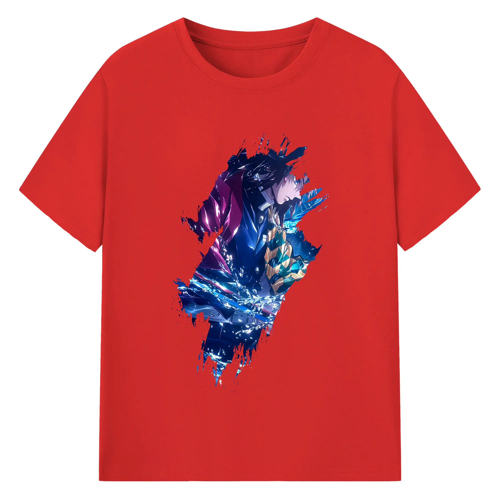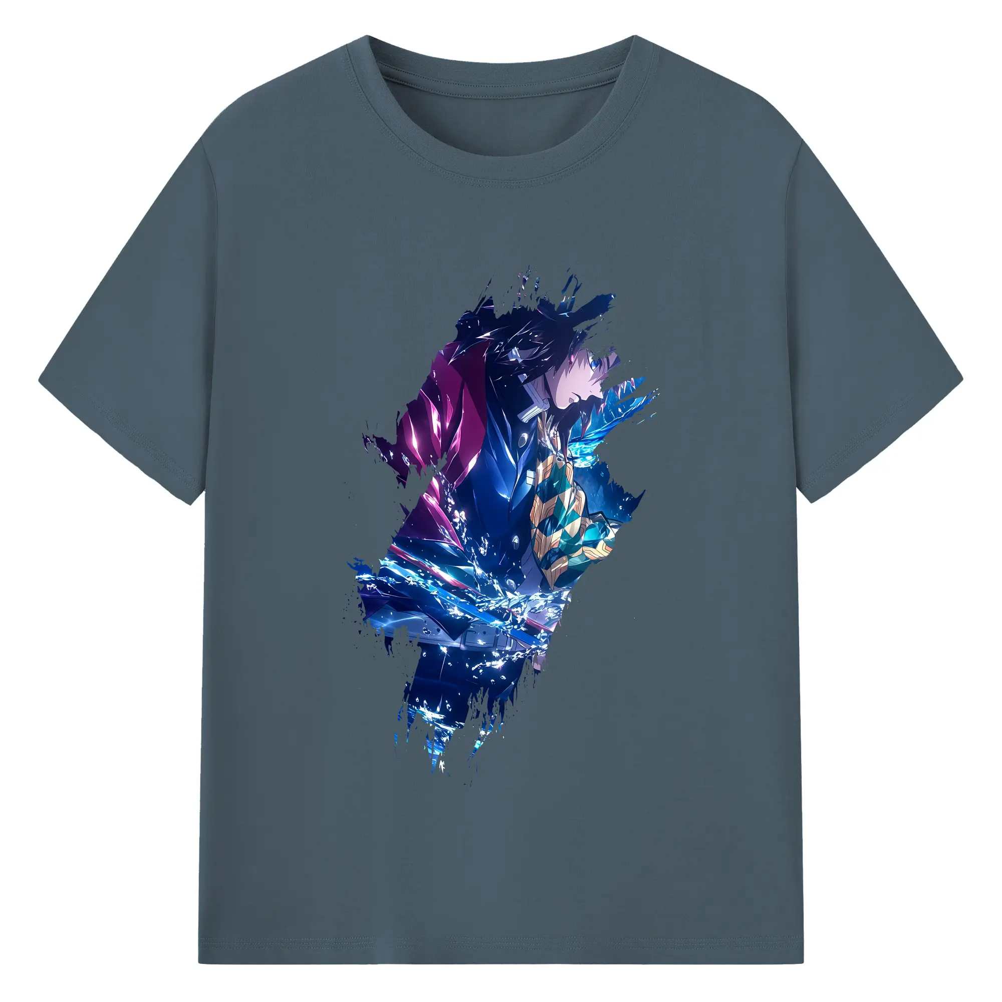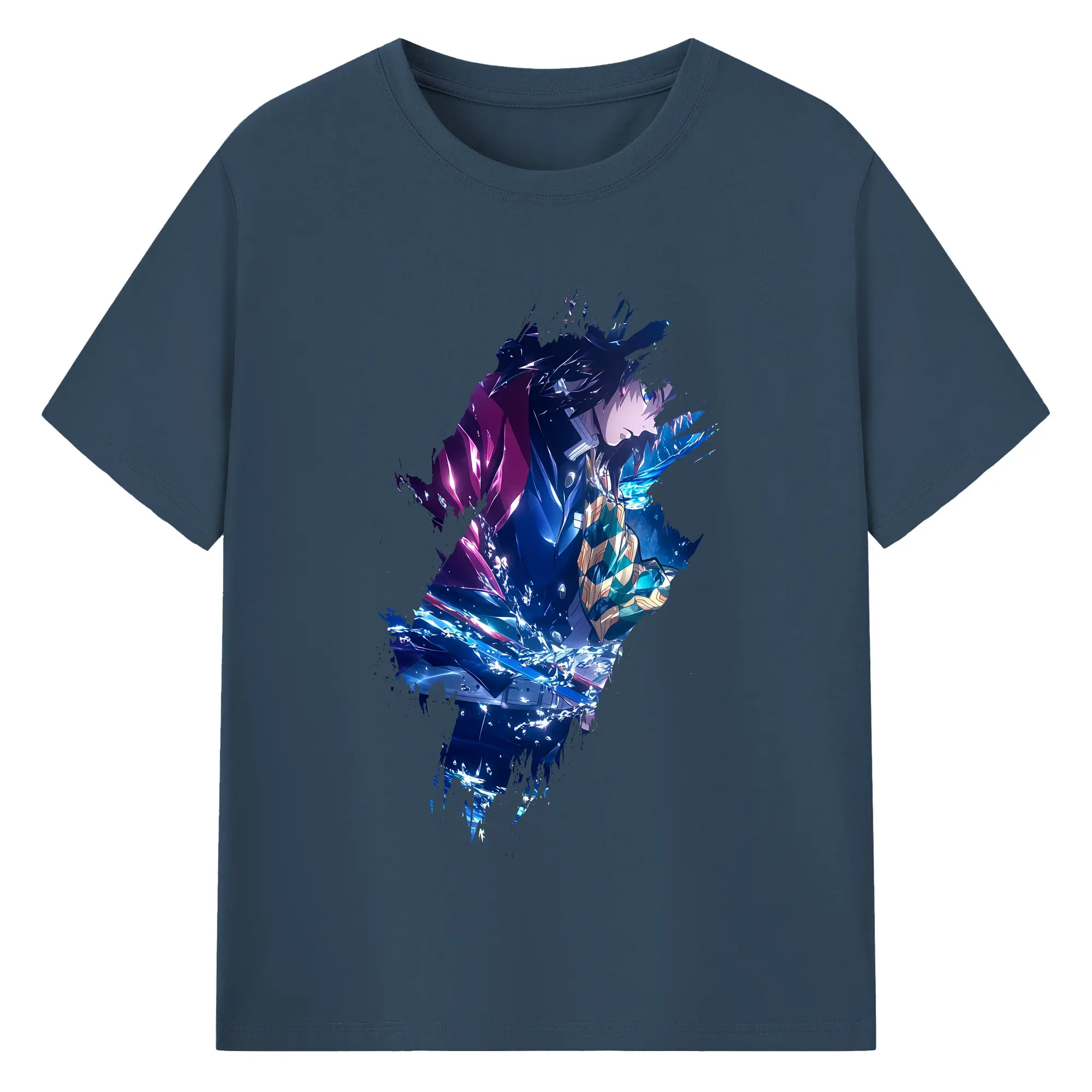 鬼滅の刃 グッズ,冨岡 義勇 - 綿100% 半袖Tシャツ ・ バックプリント ・ 快適 通気性 ・ 日常使い 散歩 スポーツ用