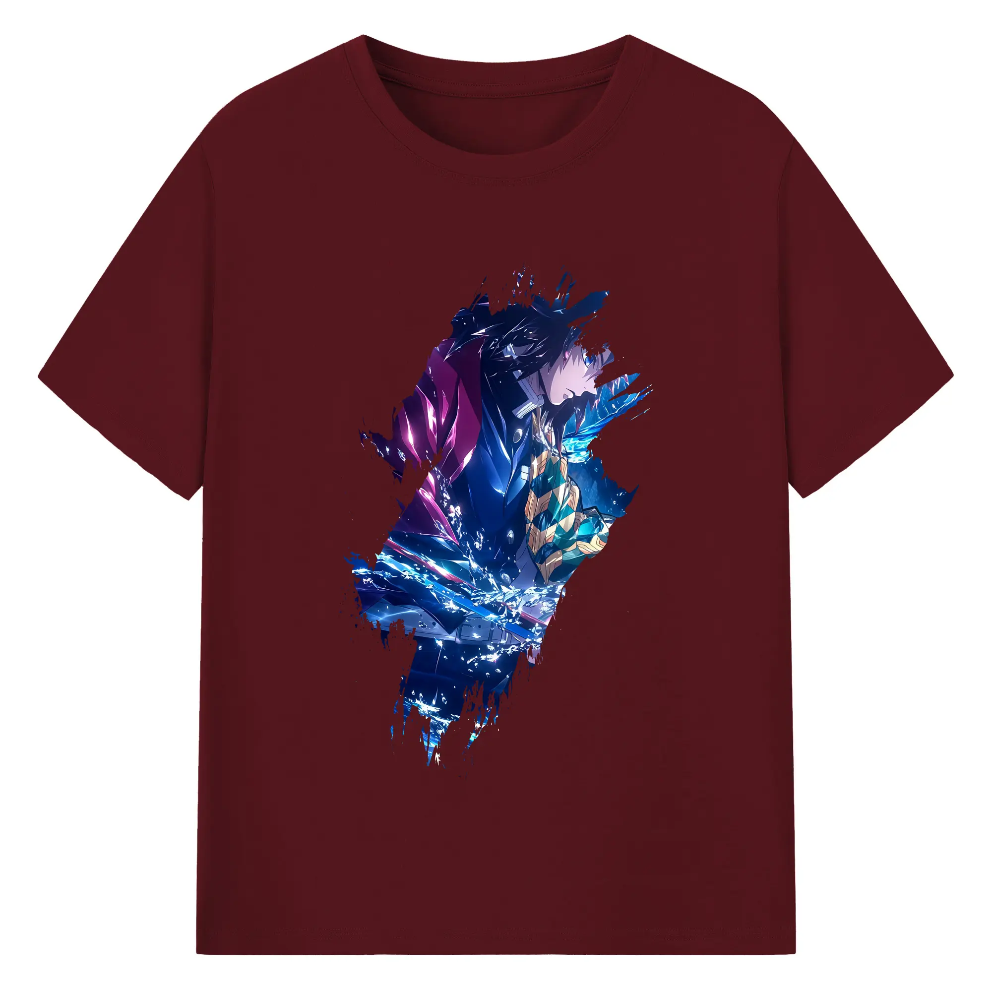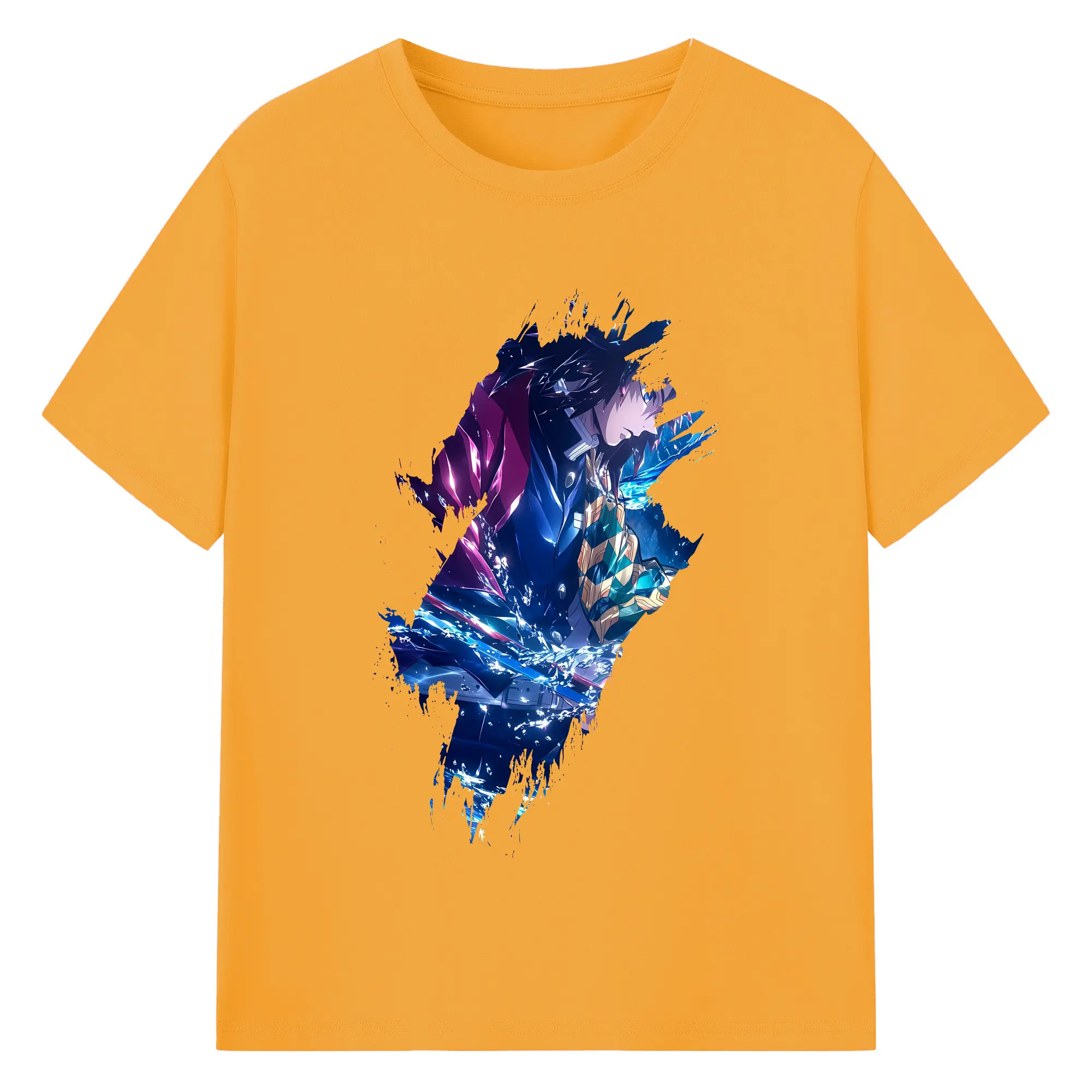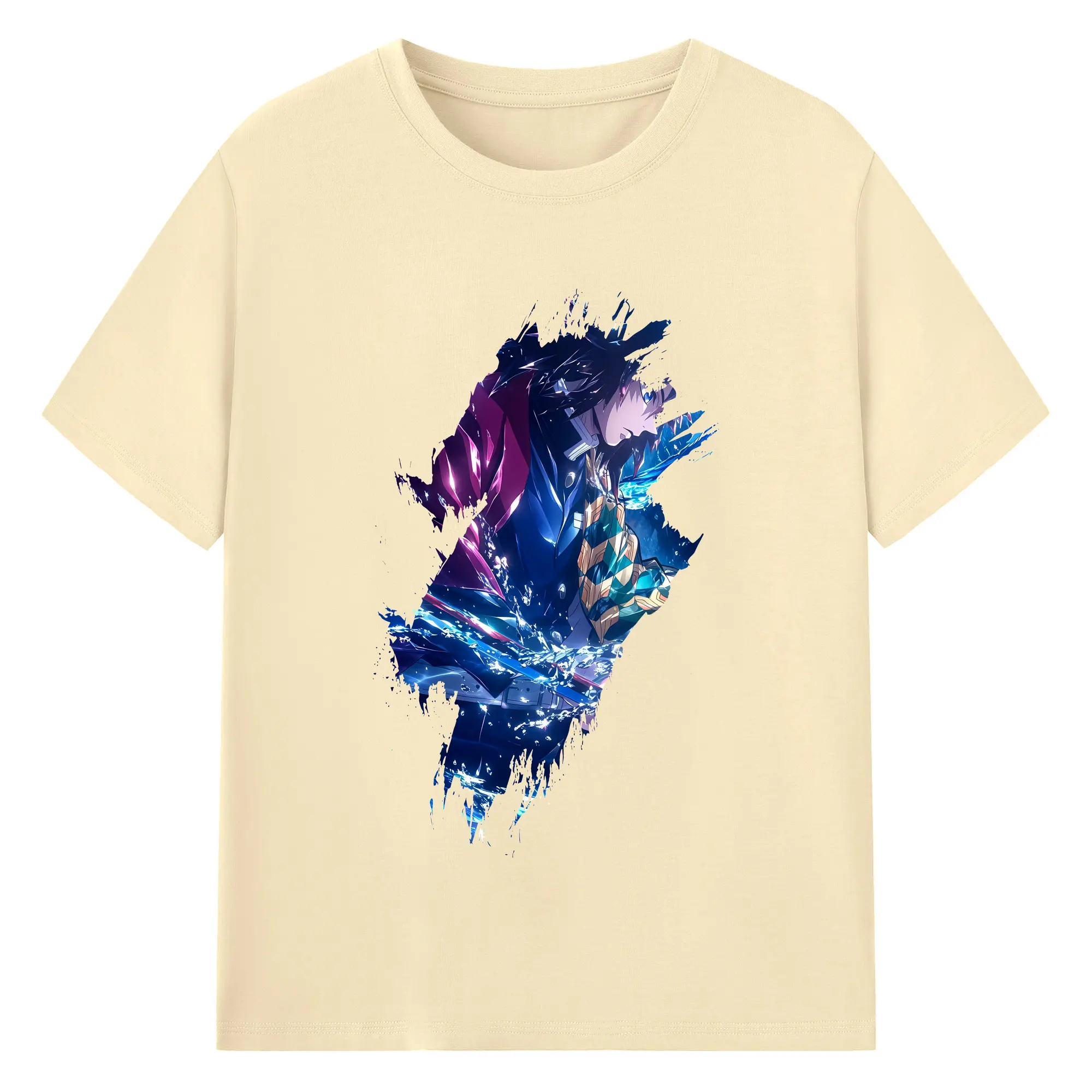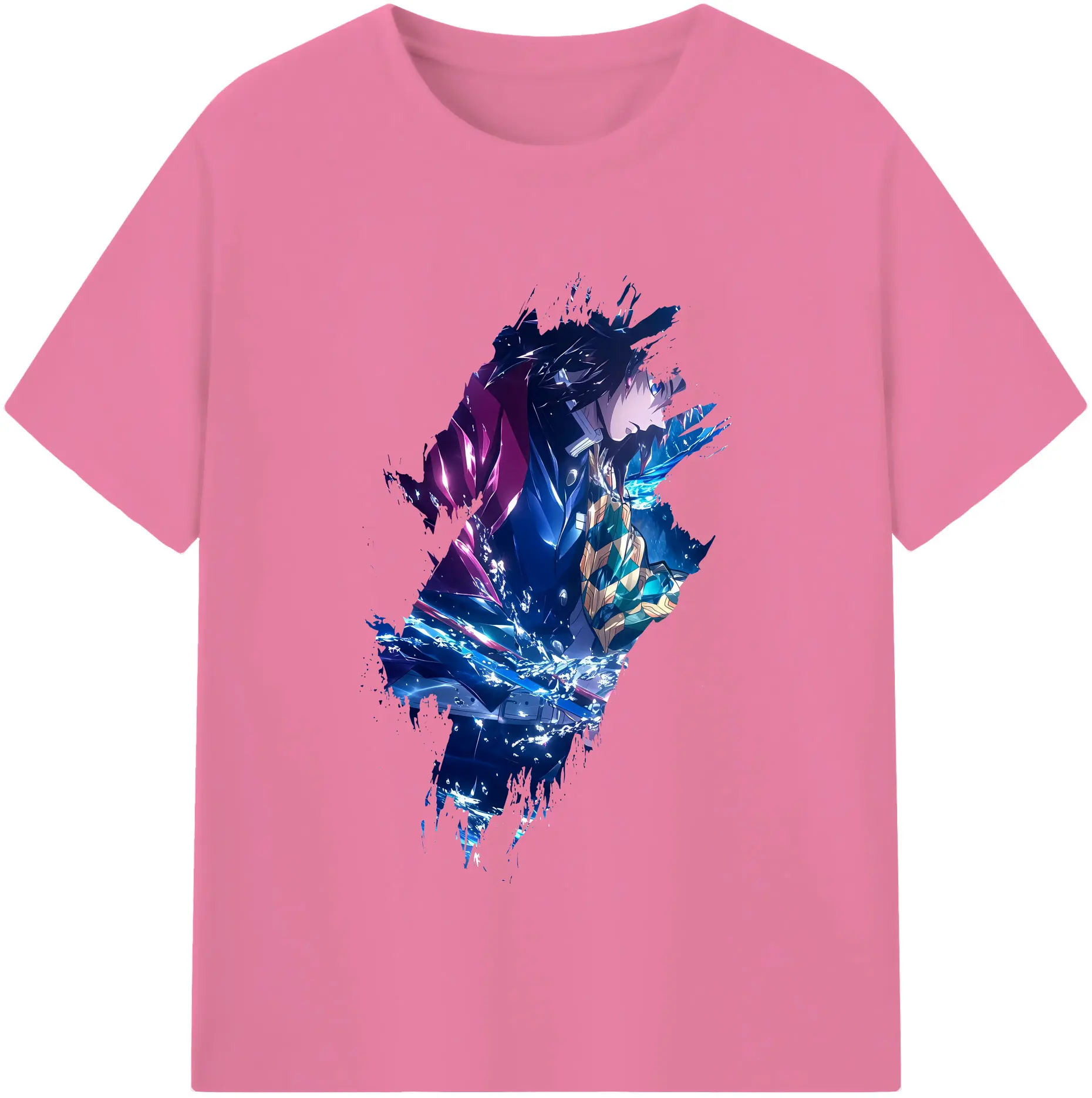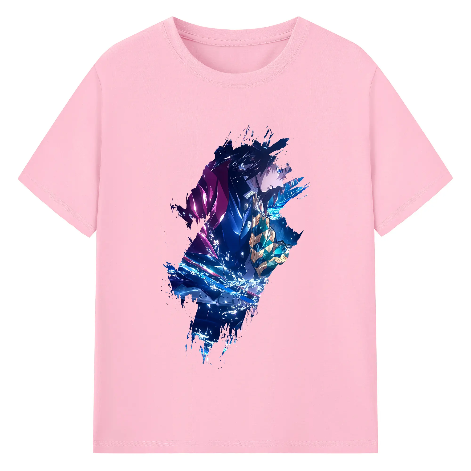 鬼滅の刃 グッズ,冨岡 義勇 - 綿100% 半袖Tシャツ ・ バックプリント ・ 快適 通気性 ・ 日常使い 散歩 スポーツ用
