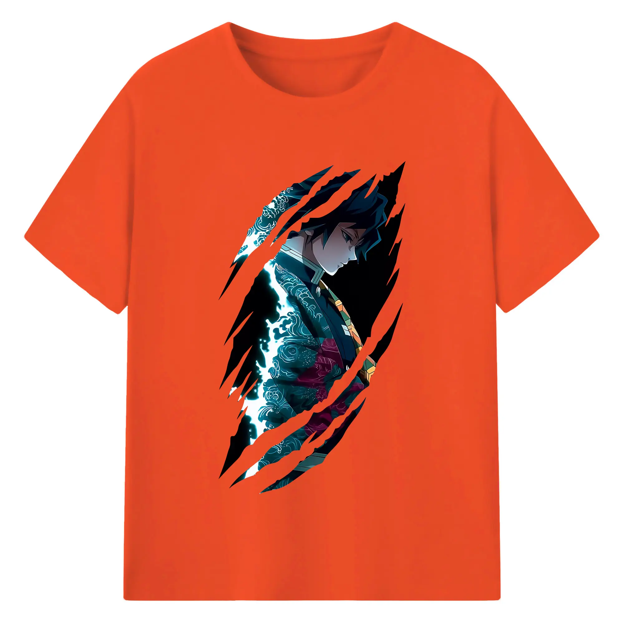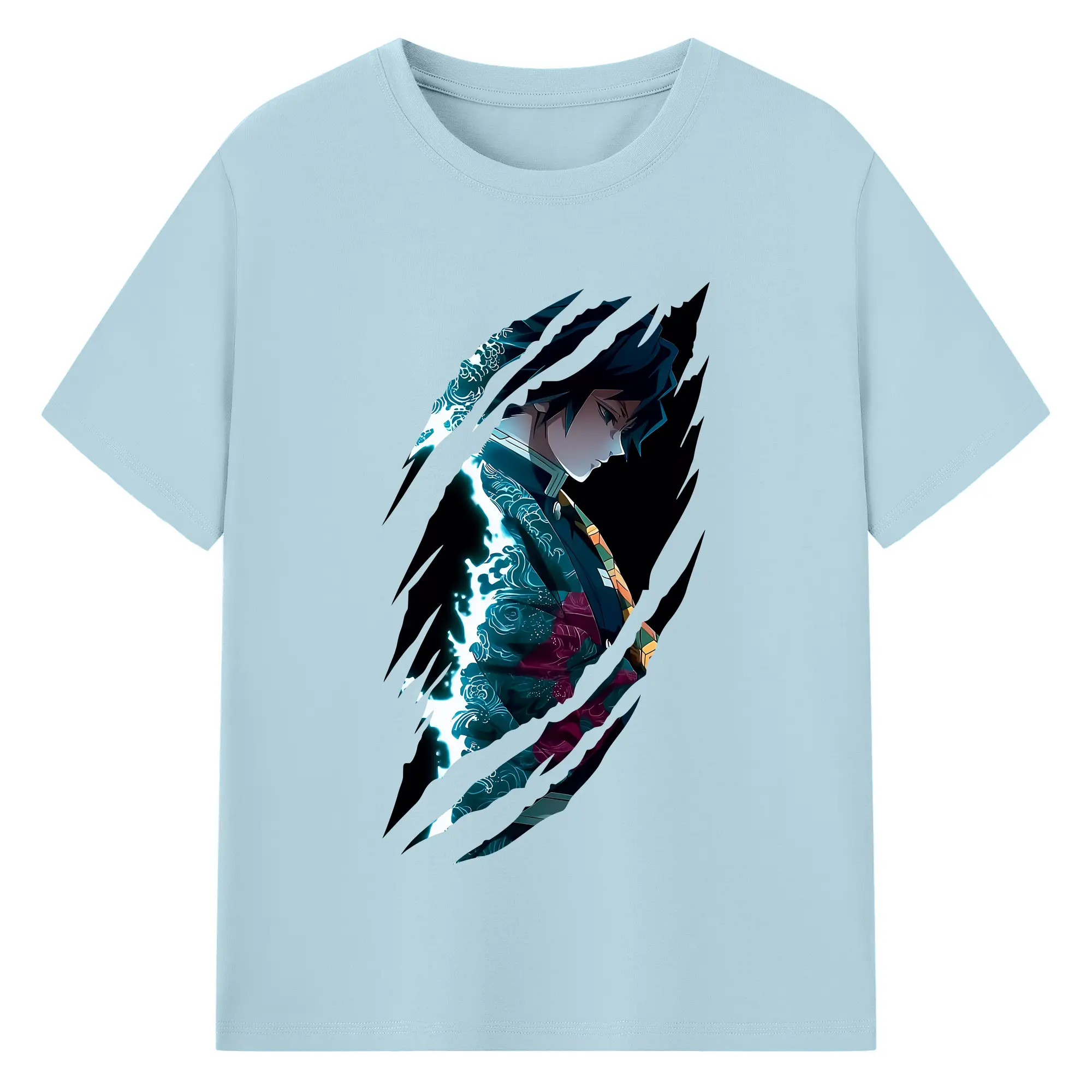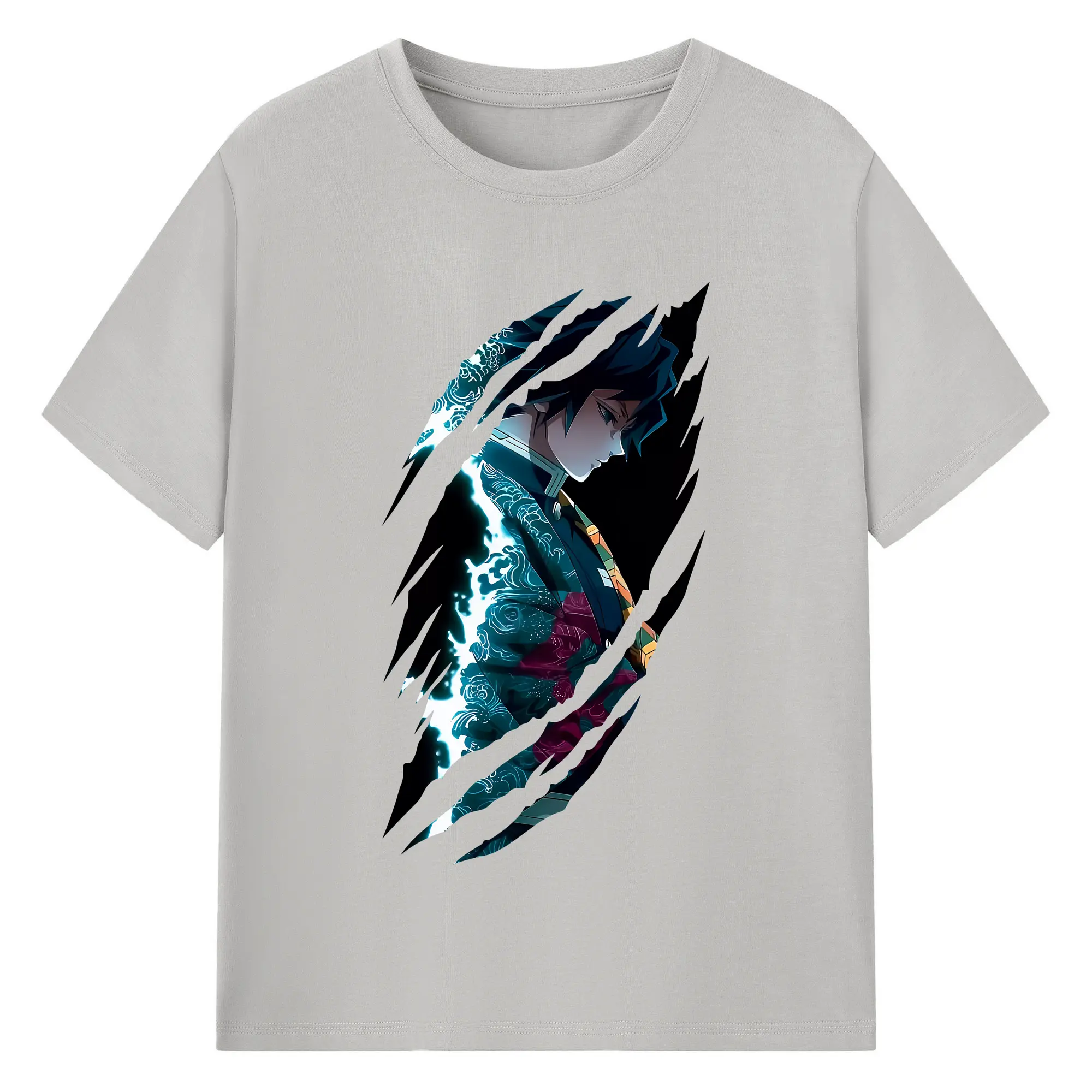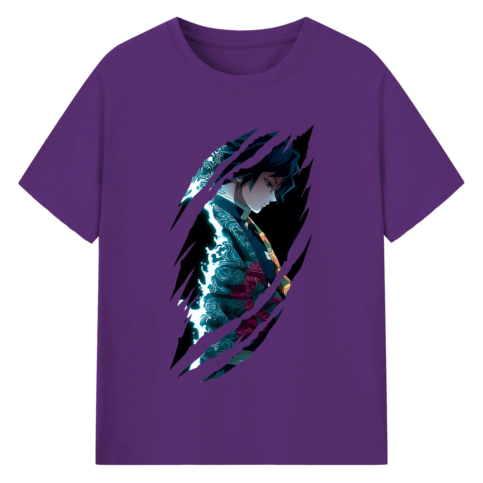 鬼滅の刃 グッズ,冨岡 義勇 - 綿100% 半袖Tシャツ ・ バックプリント ・ 快適 通気性 ・ 日常使い 散歩 スポーツ用