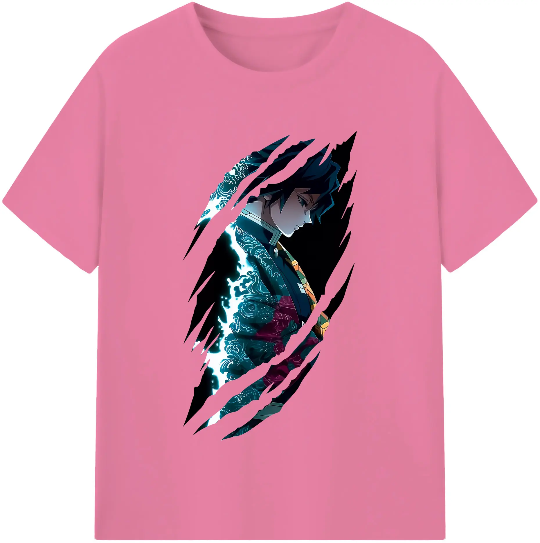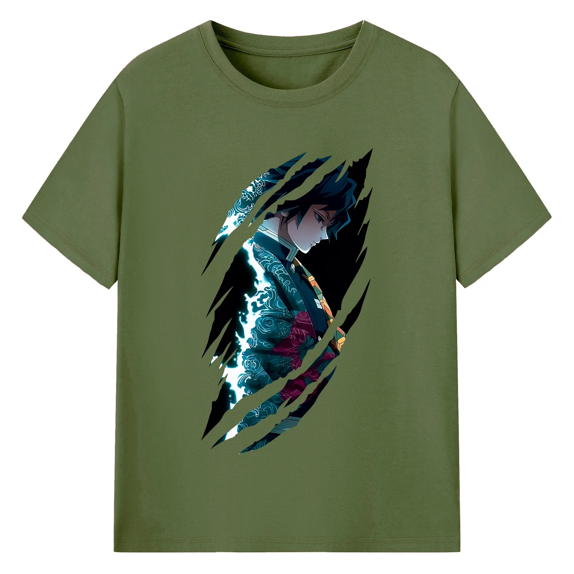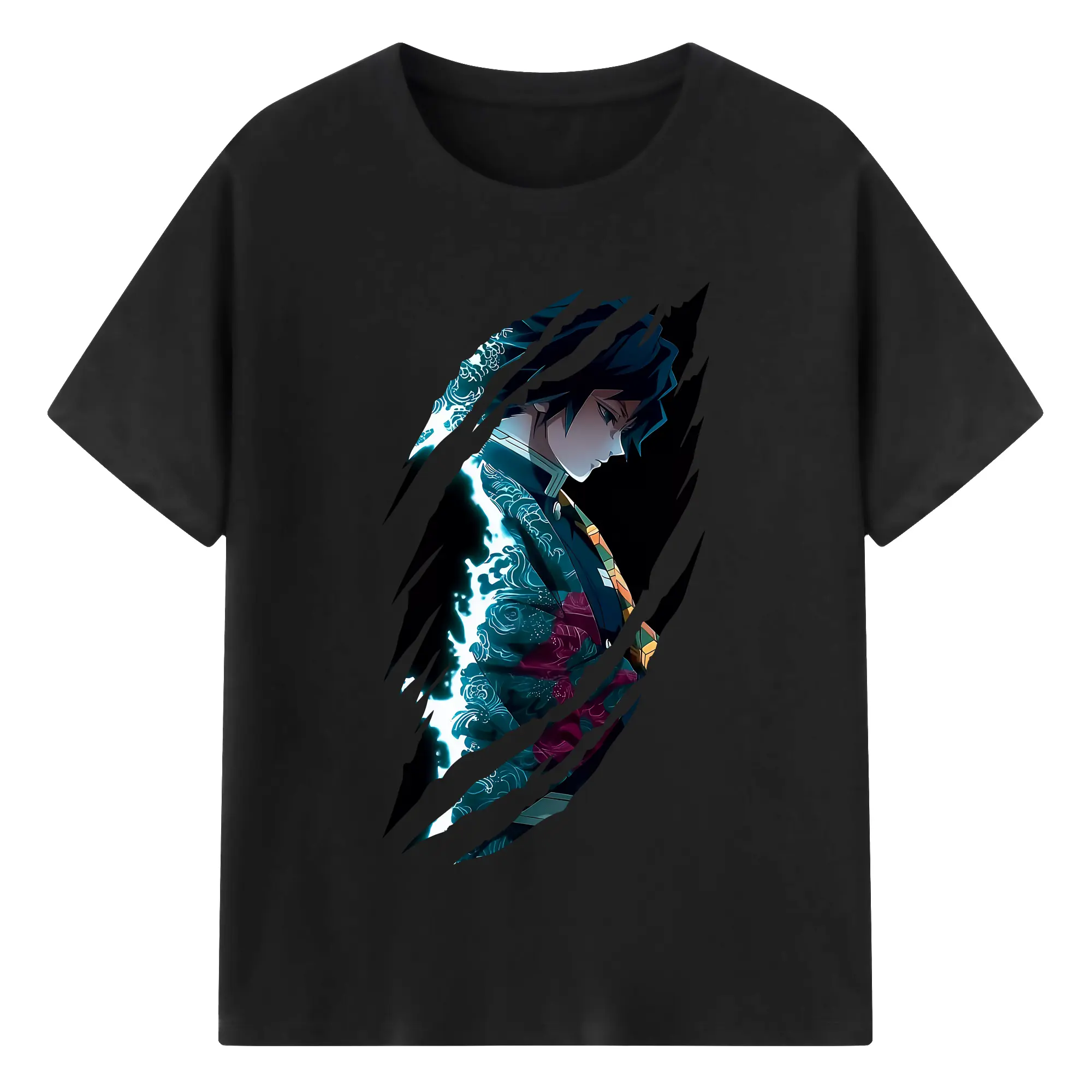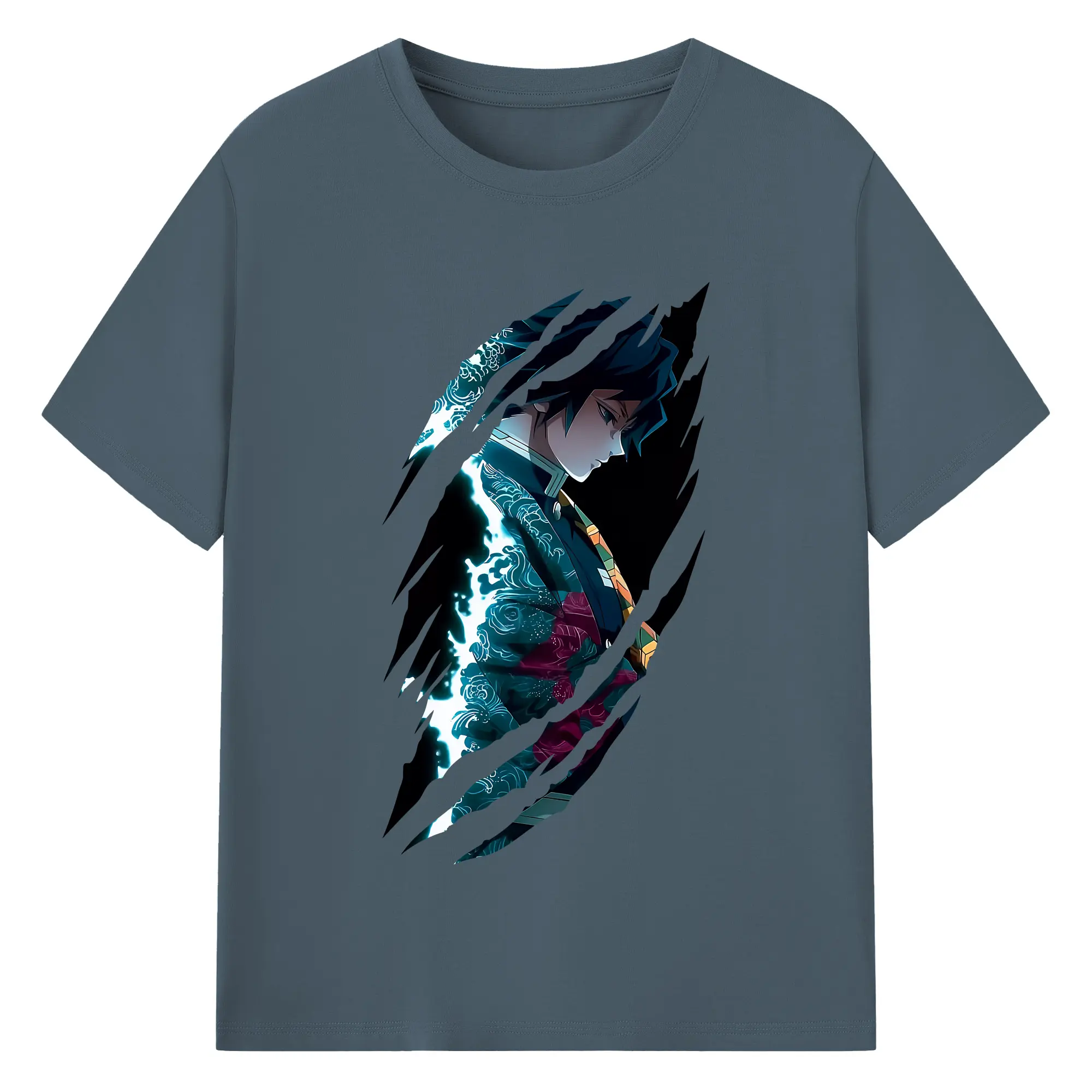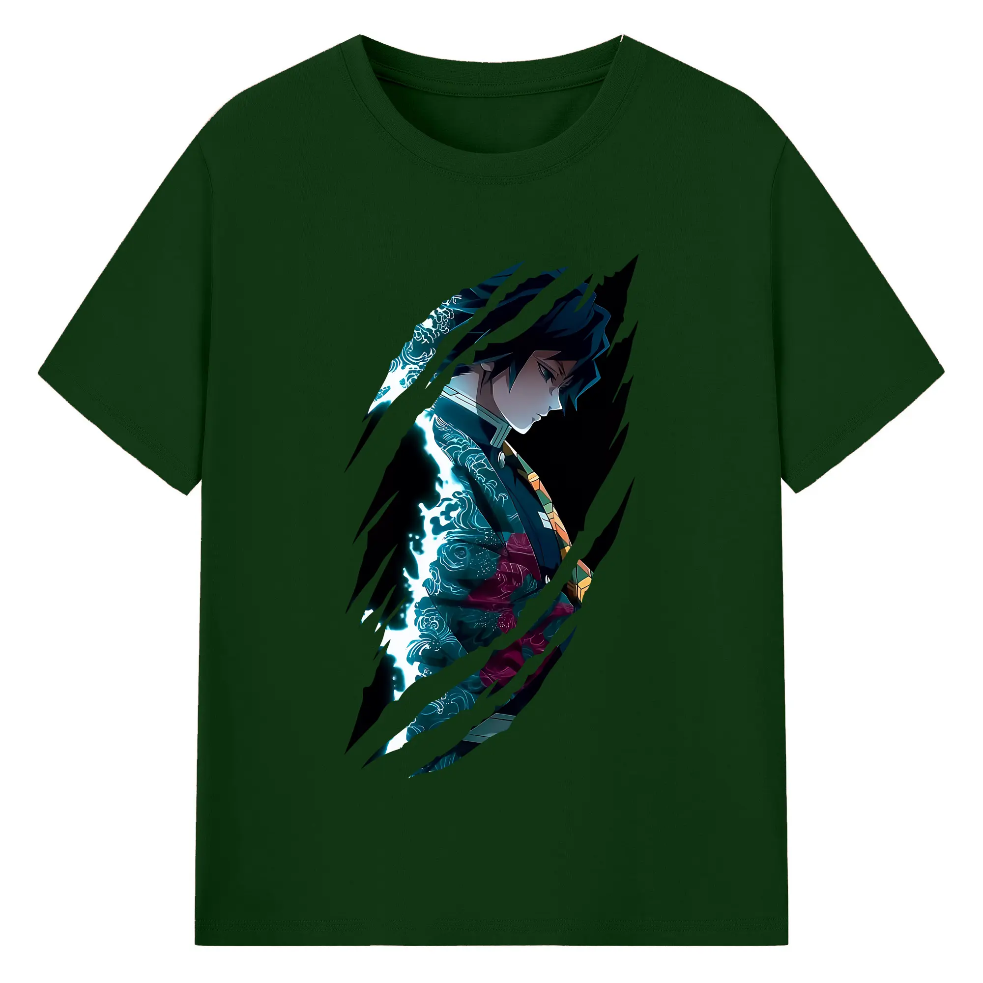 鬼滅の刃 グッズ,冨岡 義勇 - 綿100% 半袖Tシャツ ・ バックプリント ・ 快適 通気性 ・ 日常使い 散歩 スポーツ用