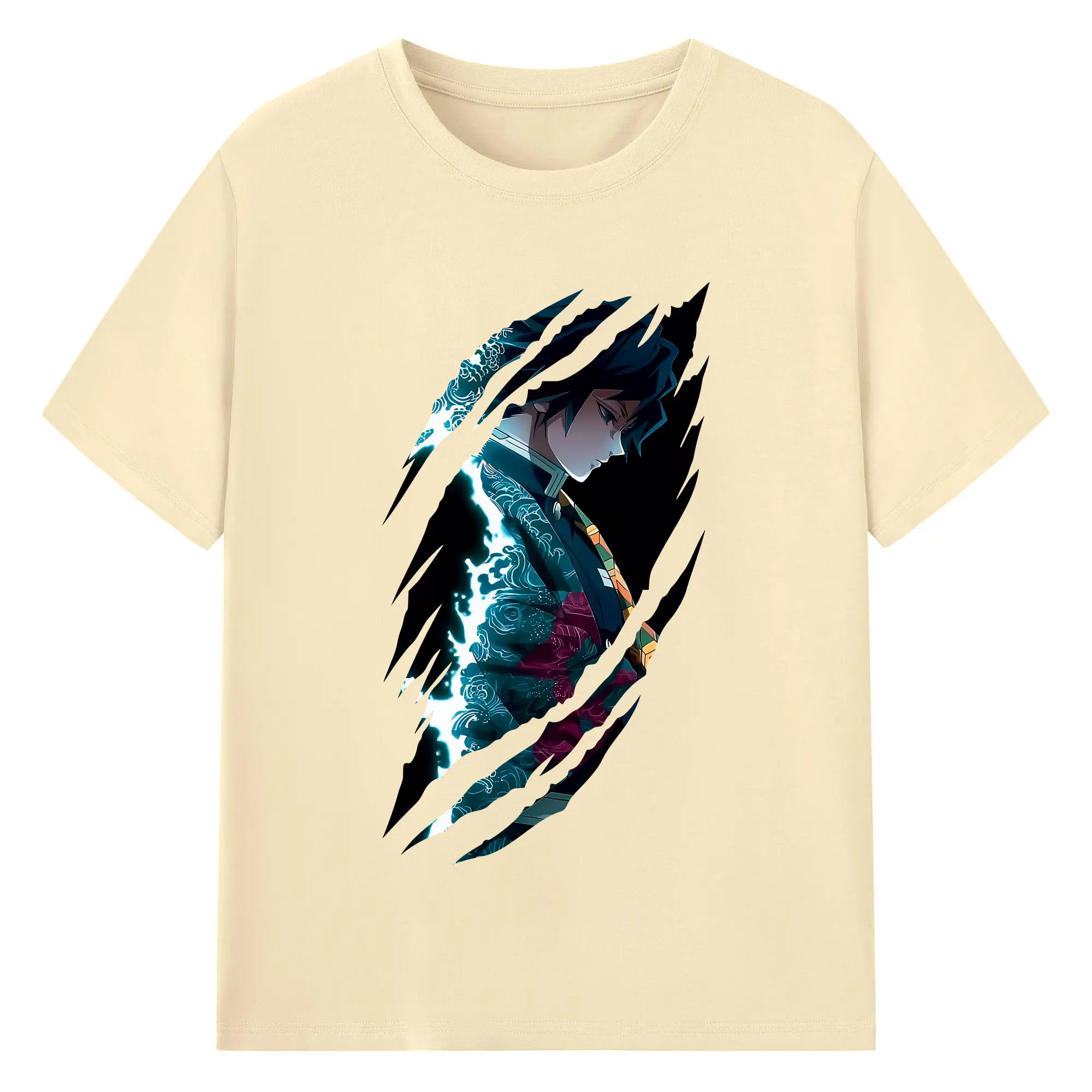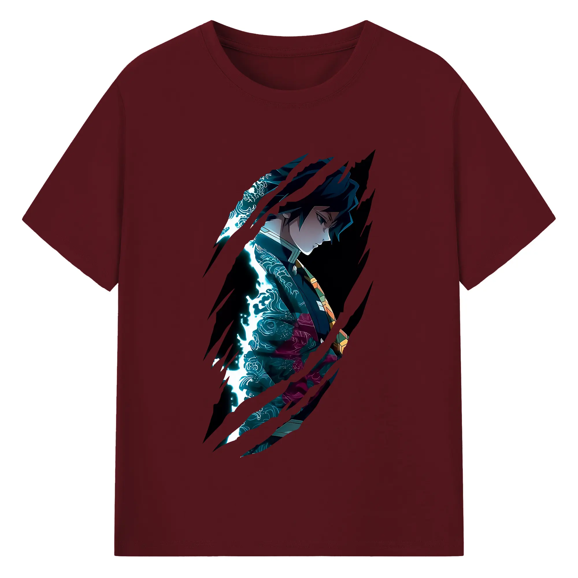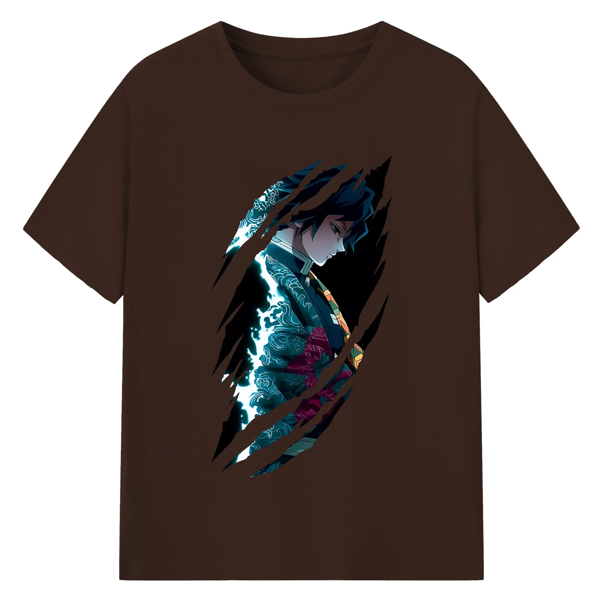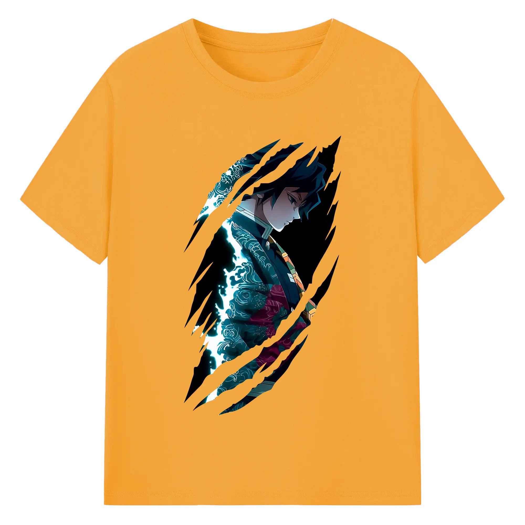 鬼滅の刃 グッズ,冨岡 義勇 - 綿100% 半袖Tシャツ ・ バックプリント ・ 快適 通気性 ・ 日常使い 散歩 スポーツ用