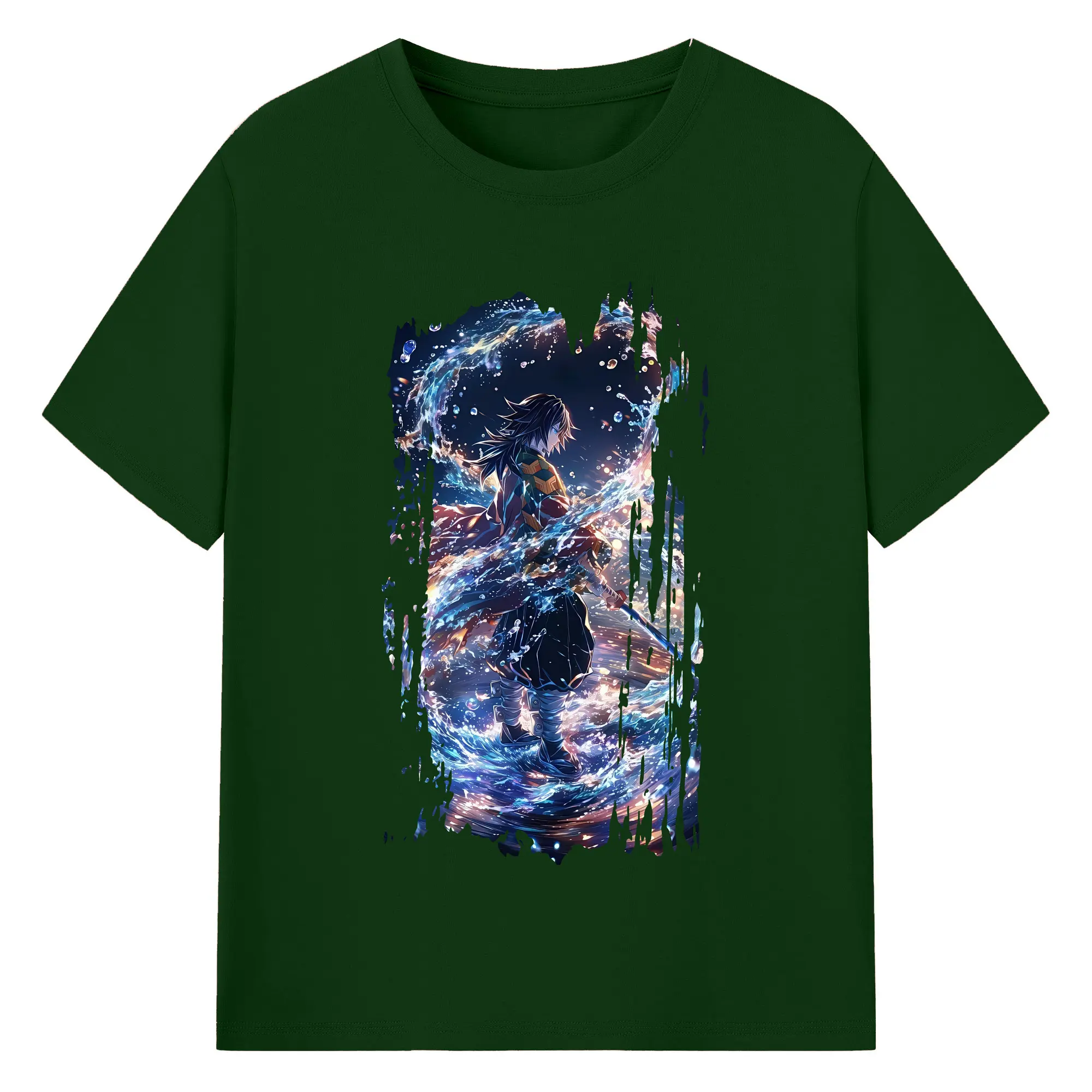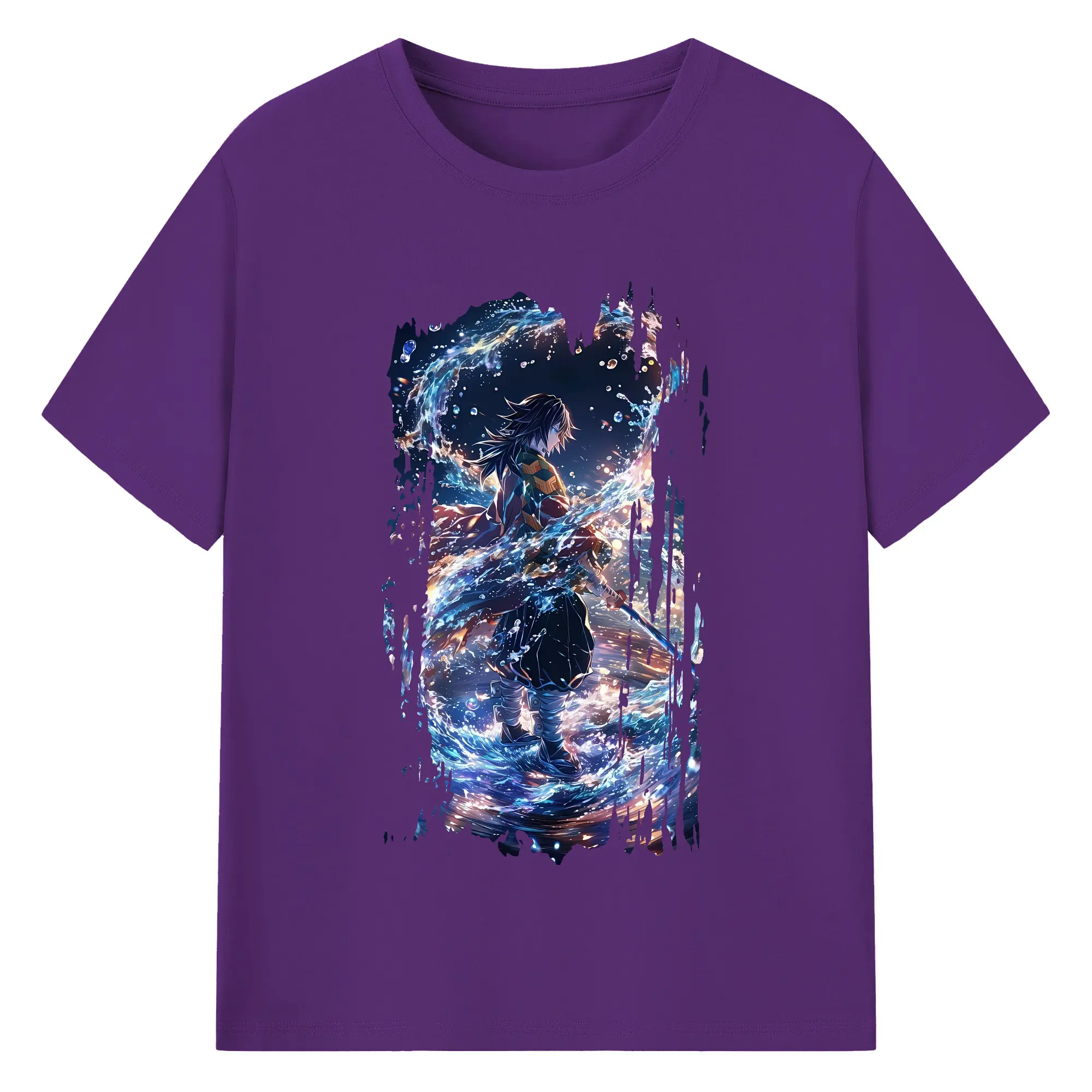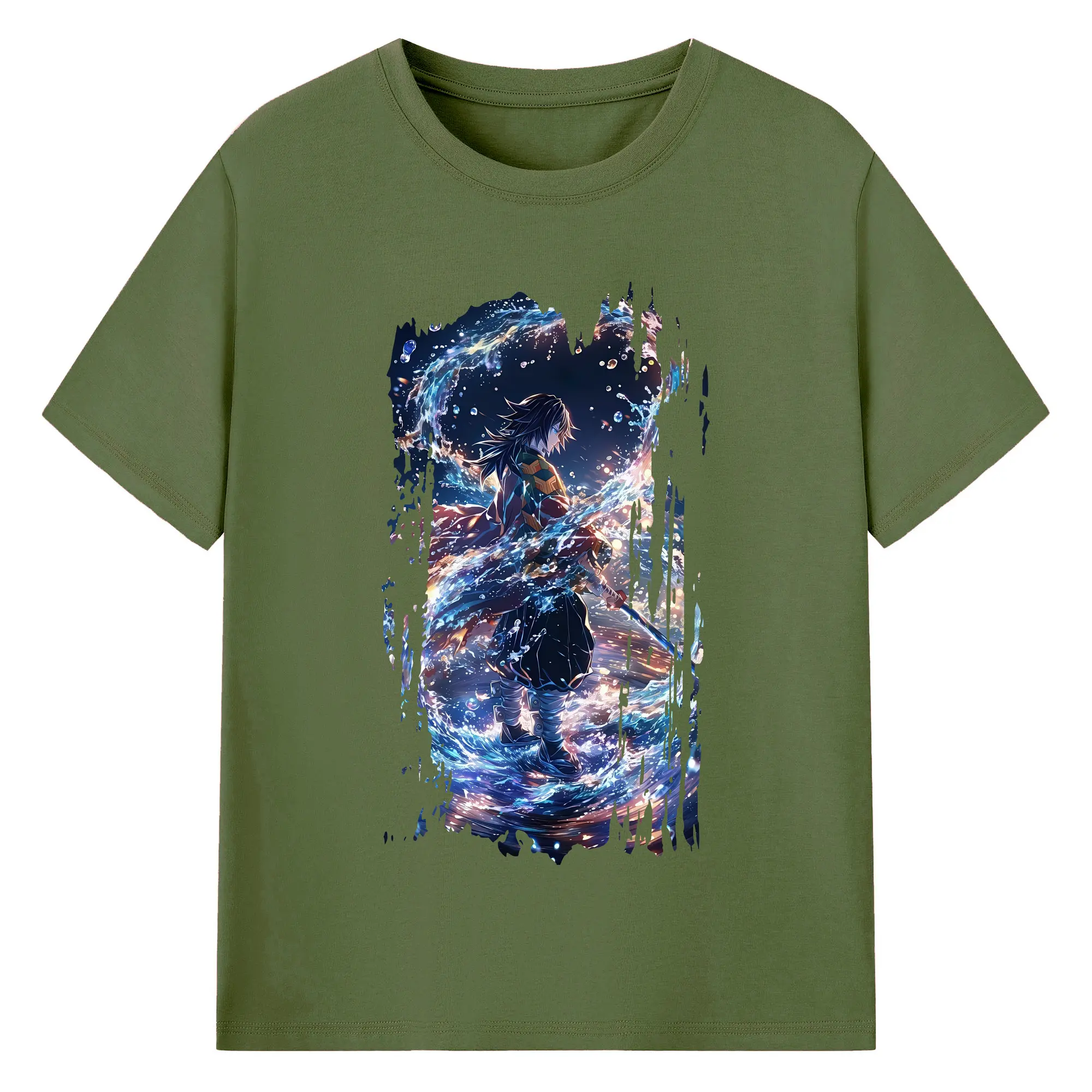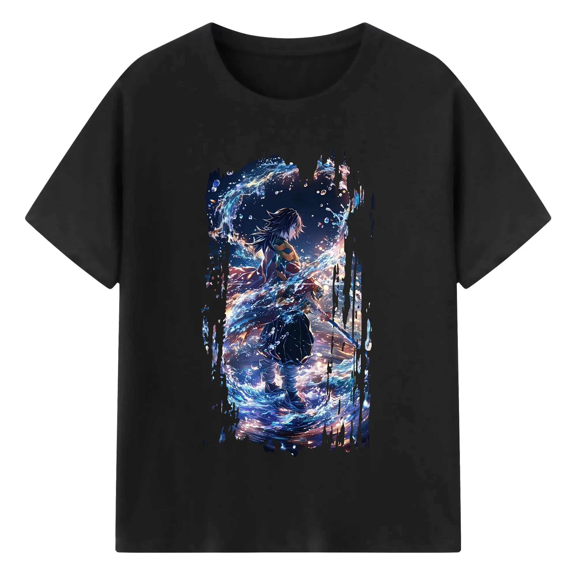 鬼滅の刃 グッズ,冨岡 義勇 - 綿100% 半袖Tシャツ ・ バックプリント ・ 快適 通気性 ・ 日常使い 散歩 スポーツ用