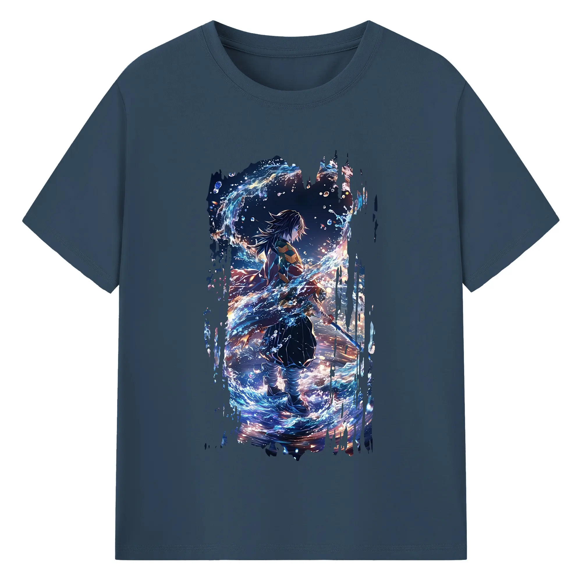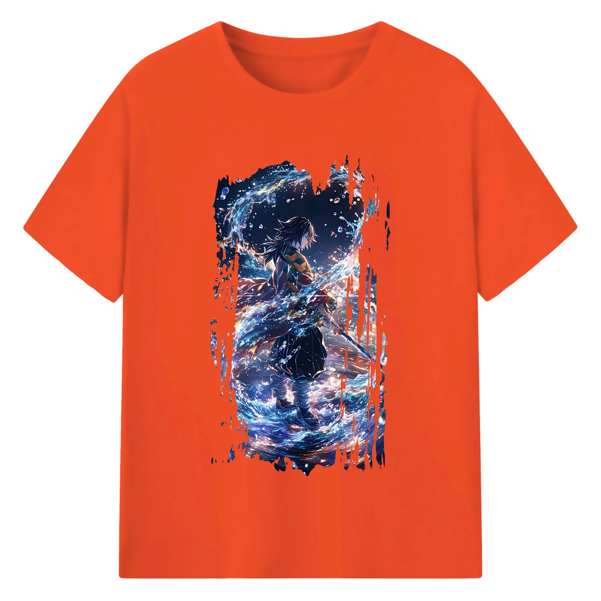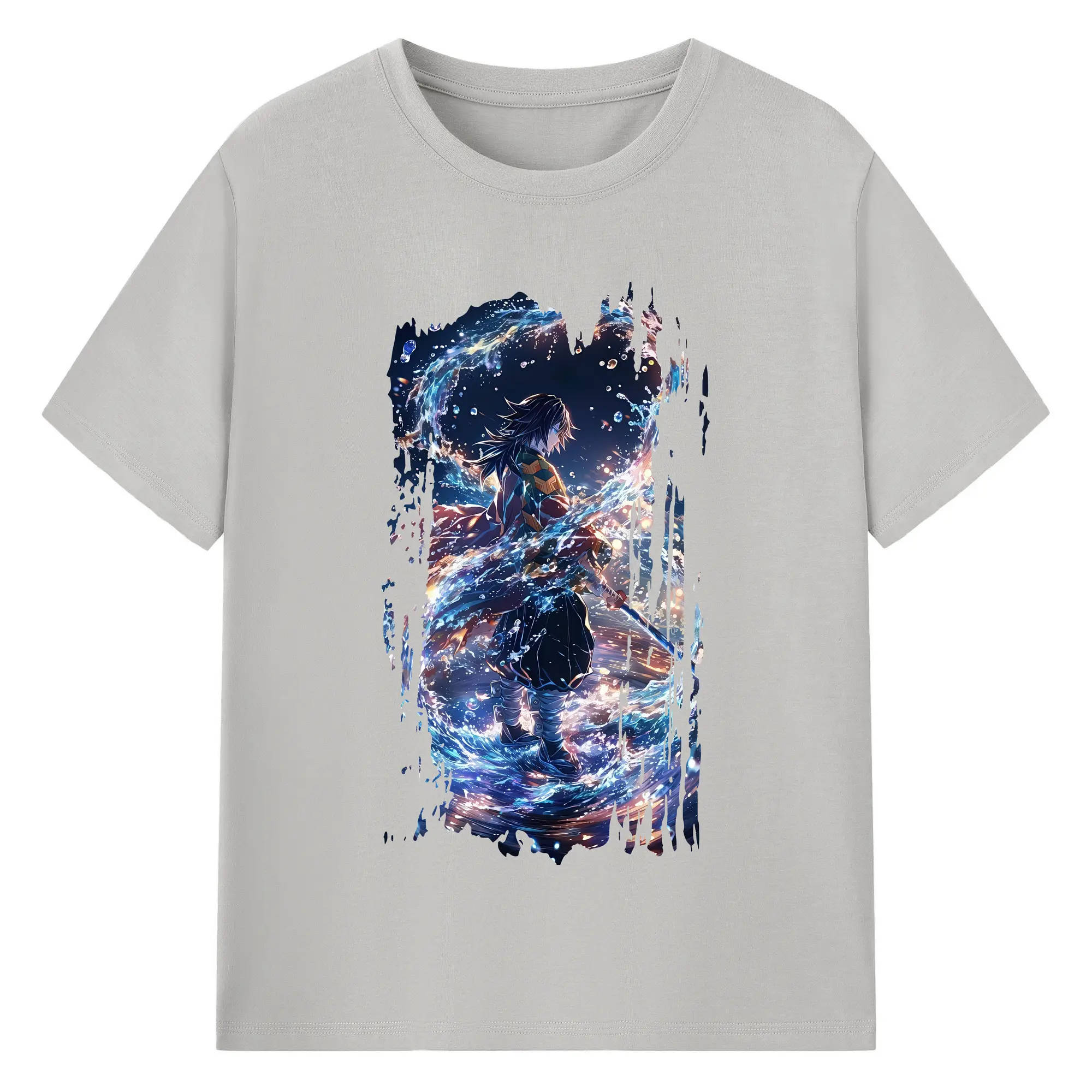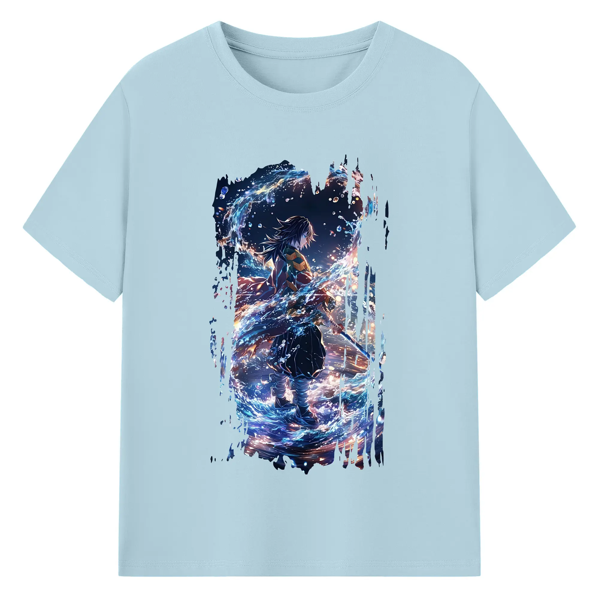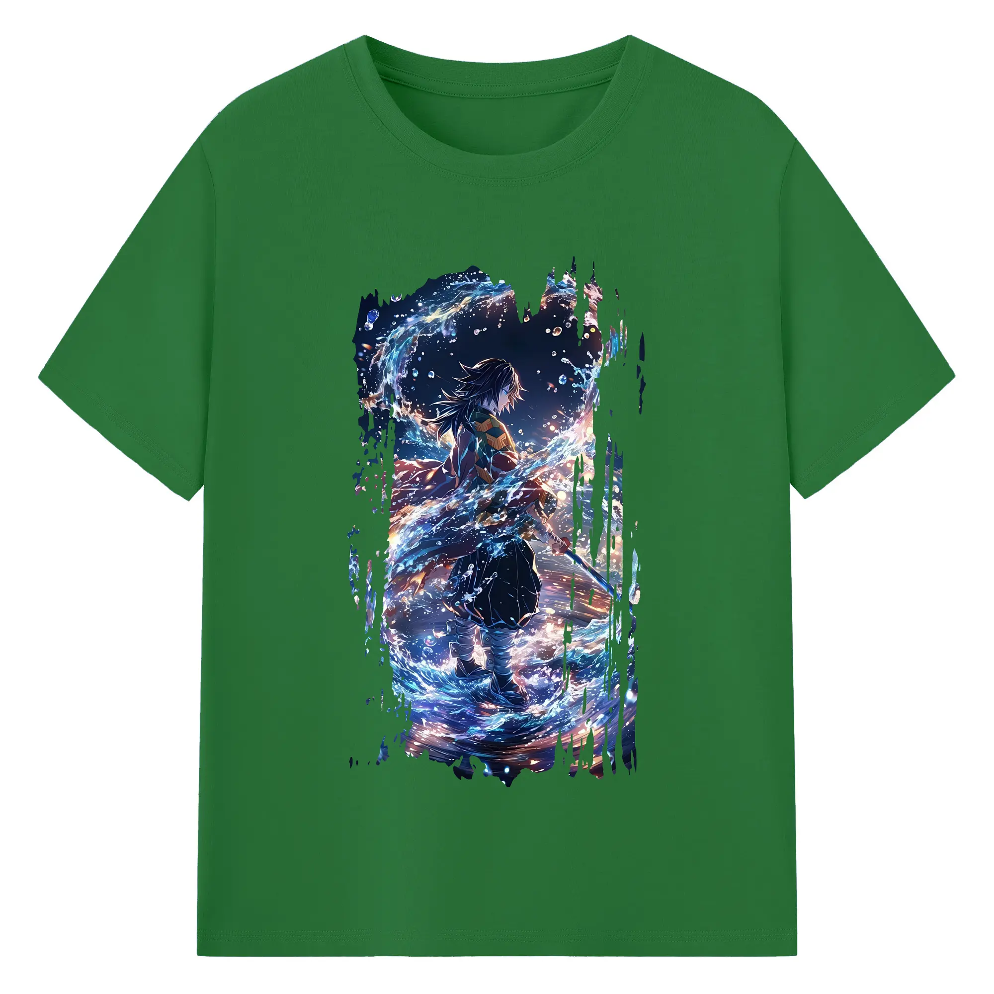 鬼滅の刃 グッズ,冨岡 義勇 - 綿100% 半袖Tシャツ ・ バックプリント ・ 快適 通気性 ・ 日常使い 散歩 スポーツ用