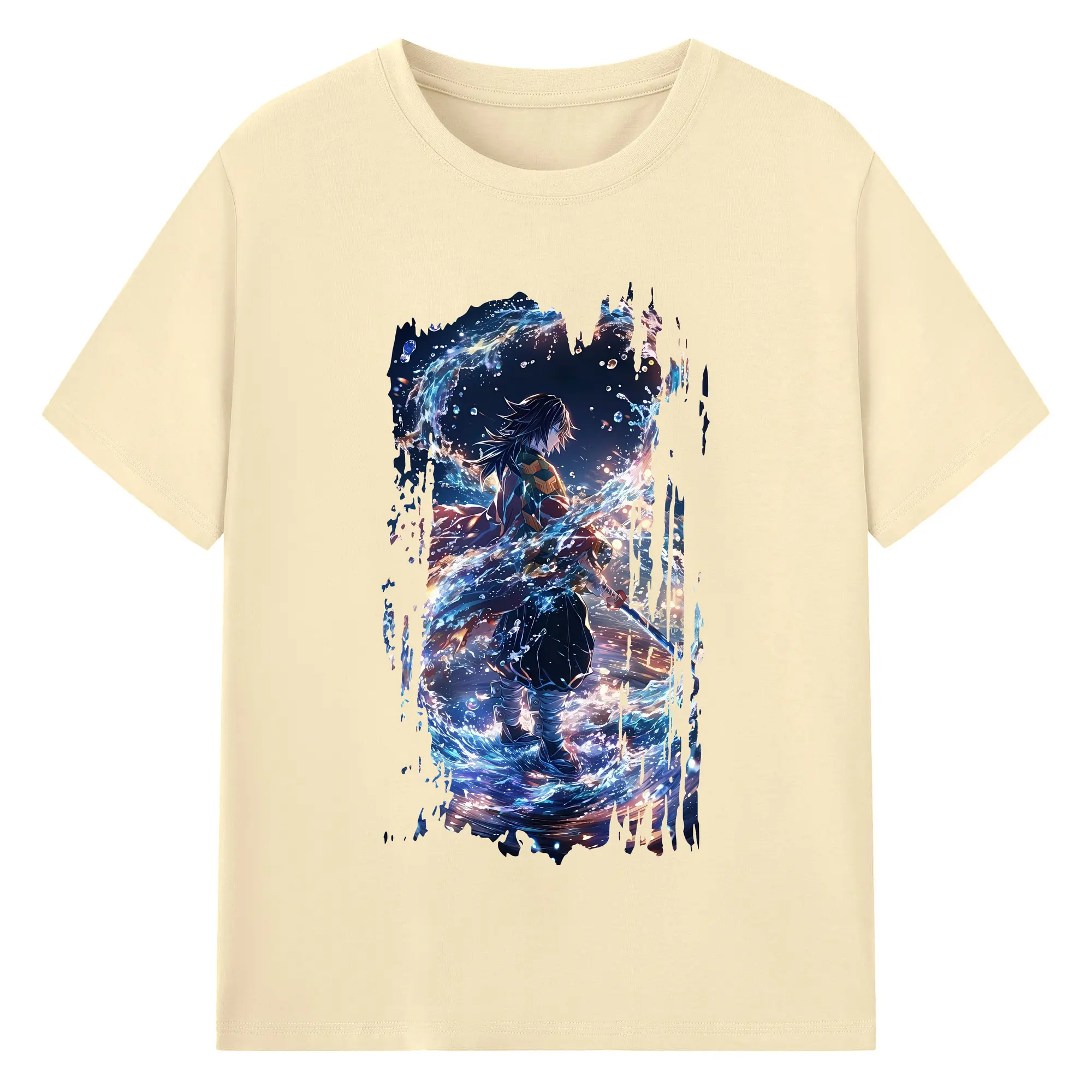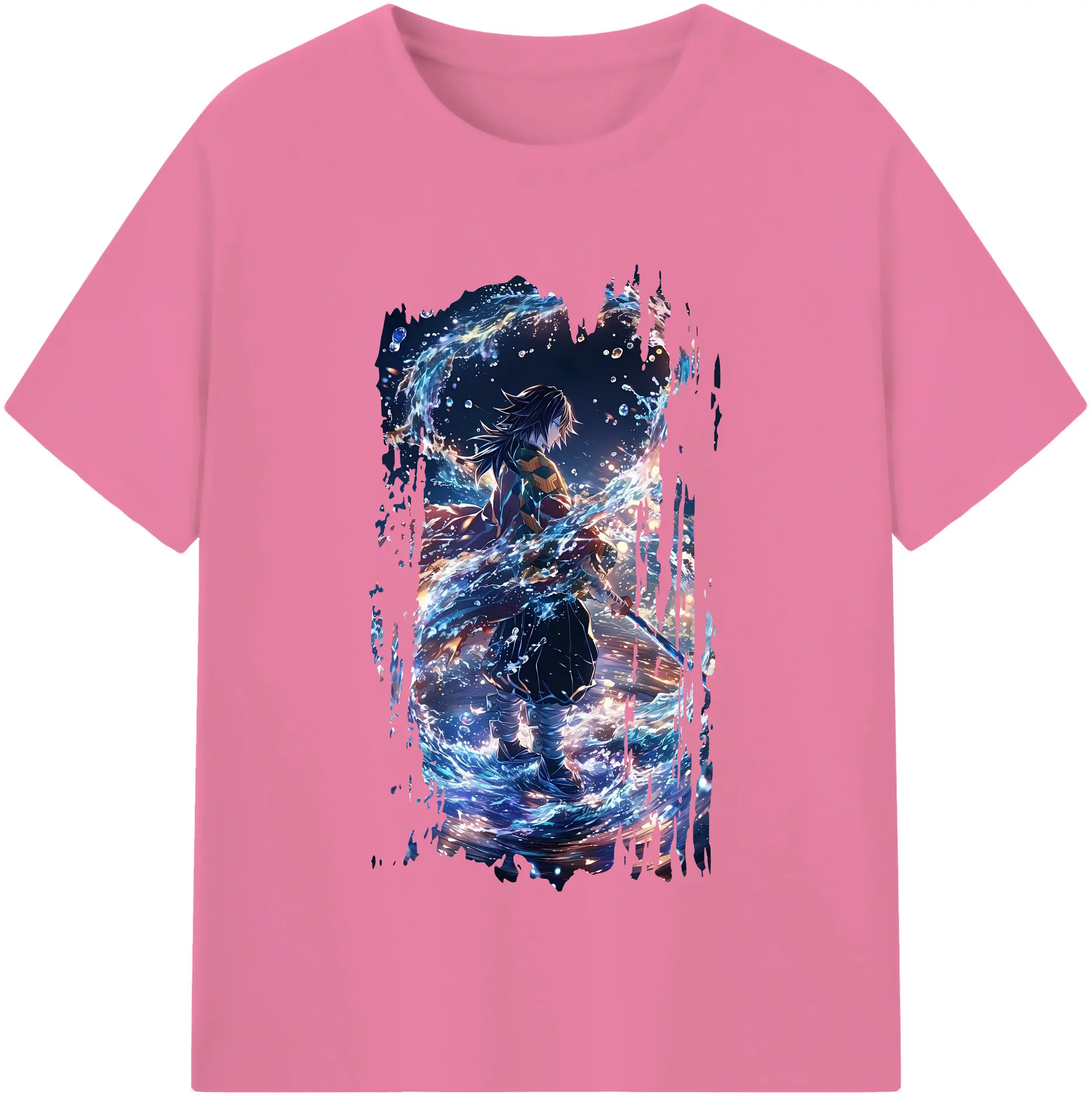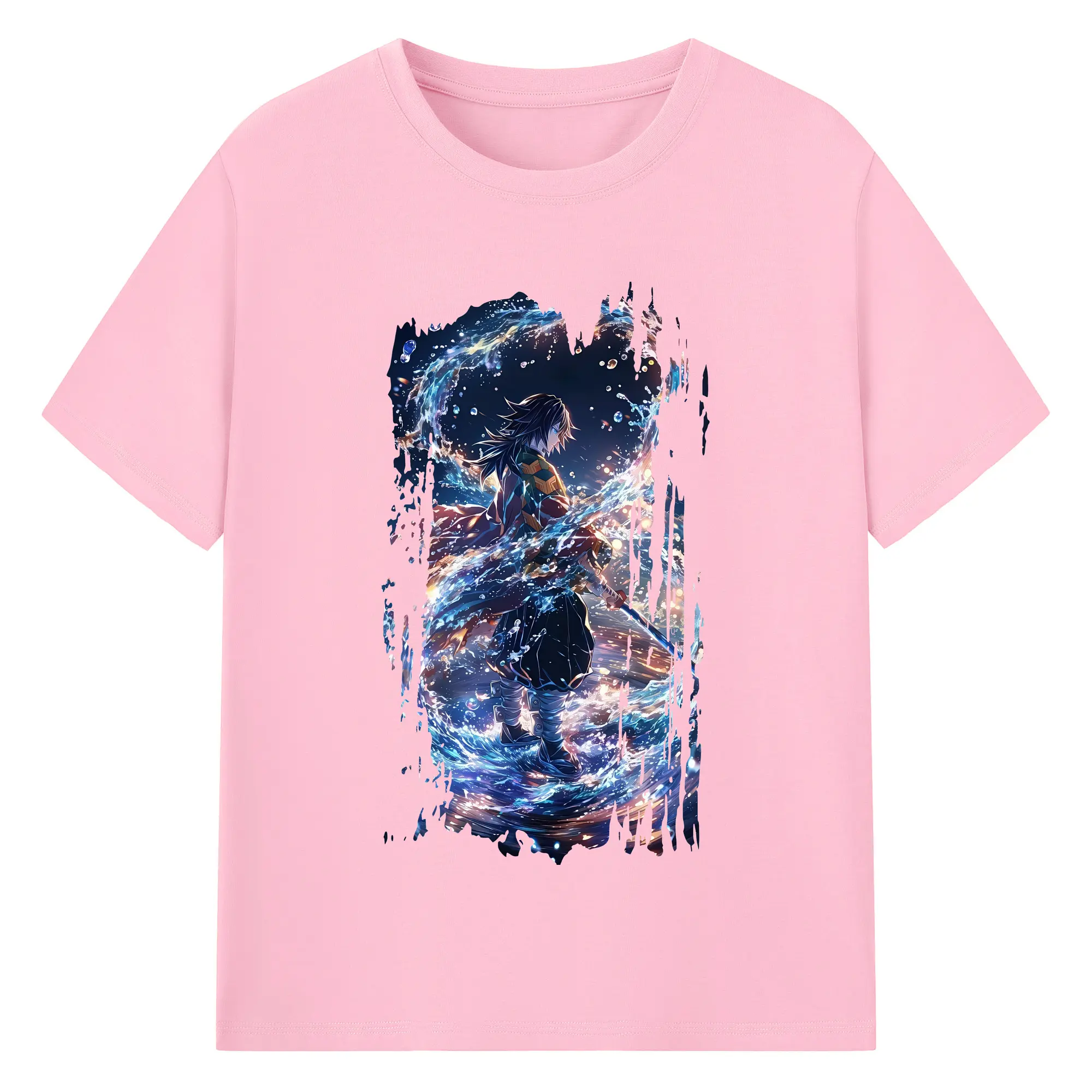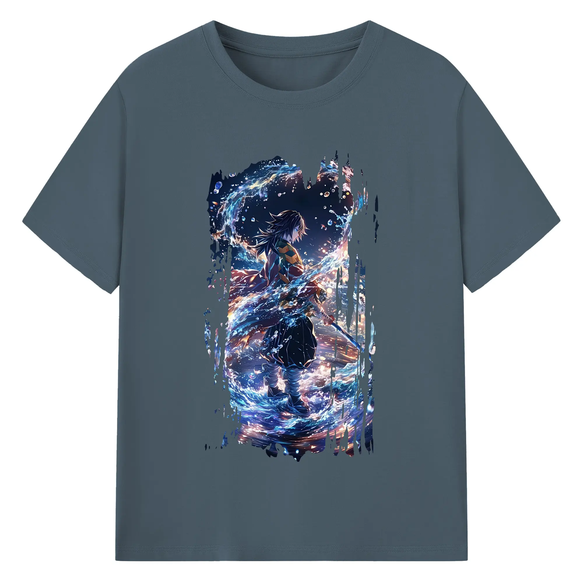 鬼滅の刃 グッズ,冨岡 義勇 - 綿100% 半袖Tシャツ ・ バックプリント ・ 快適 通気性 ・ 日常使い 散歩 スポーツ用