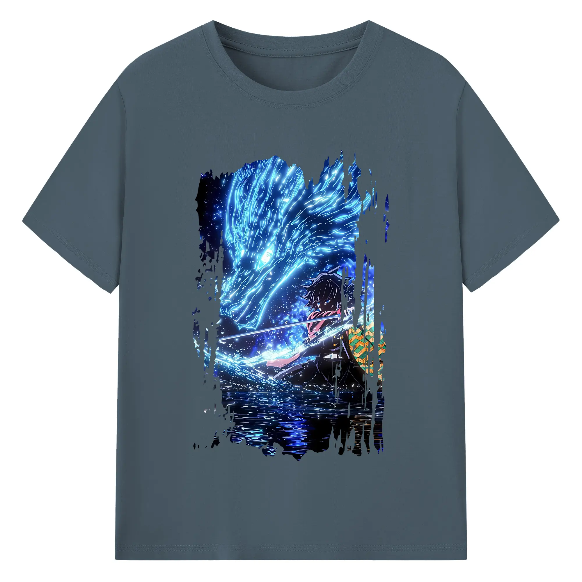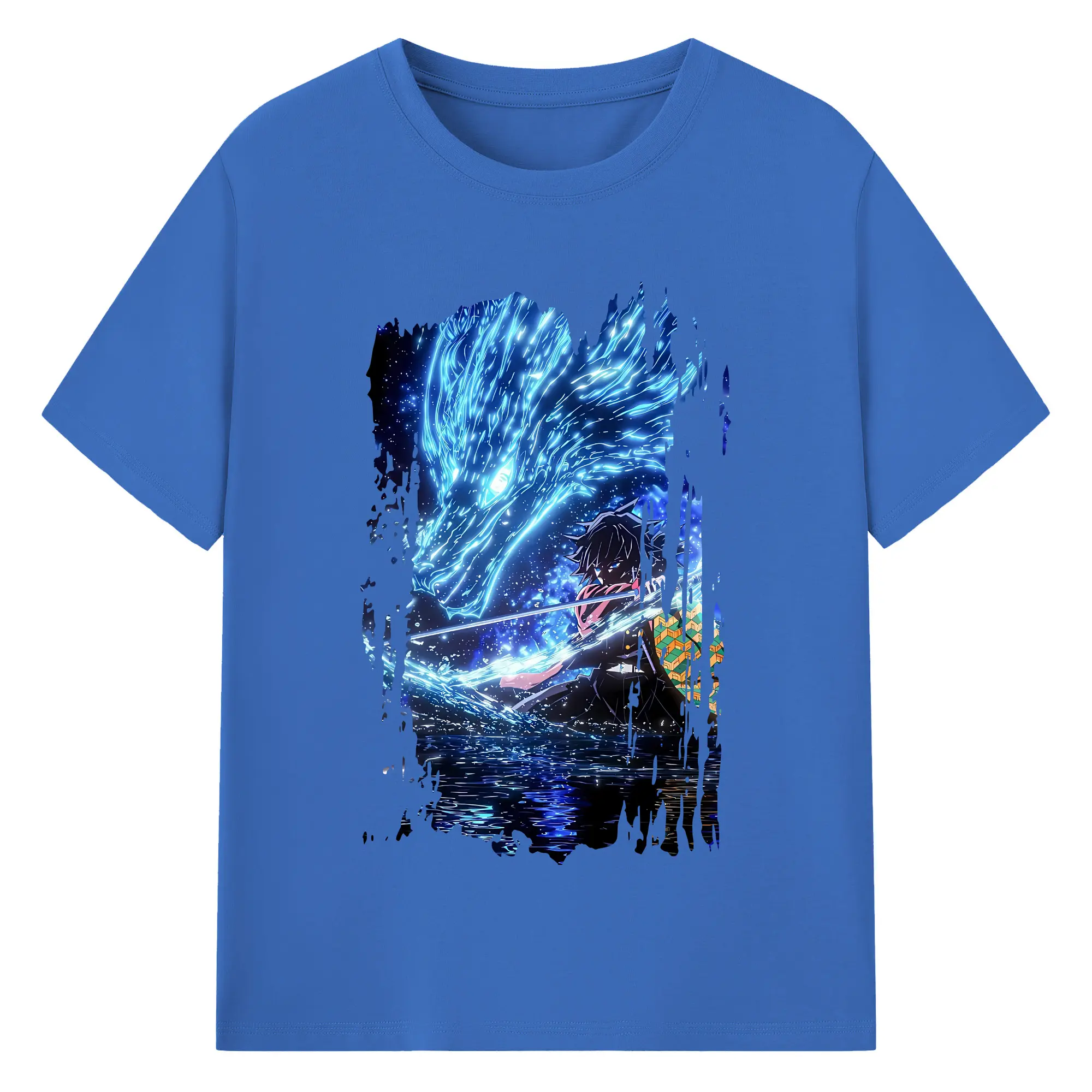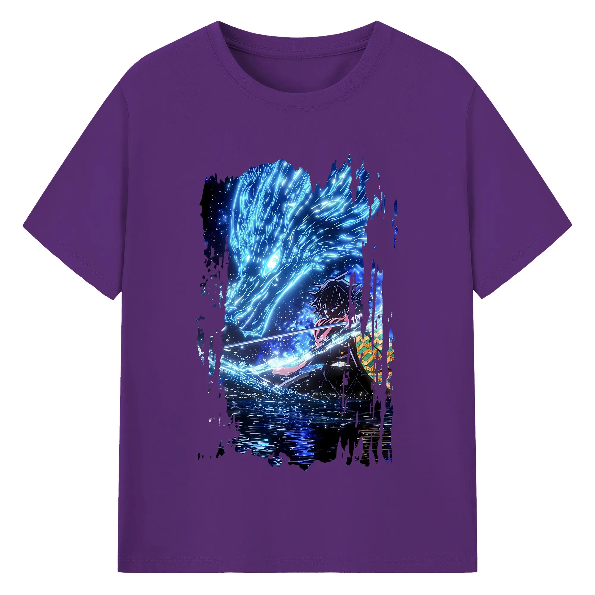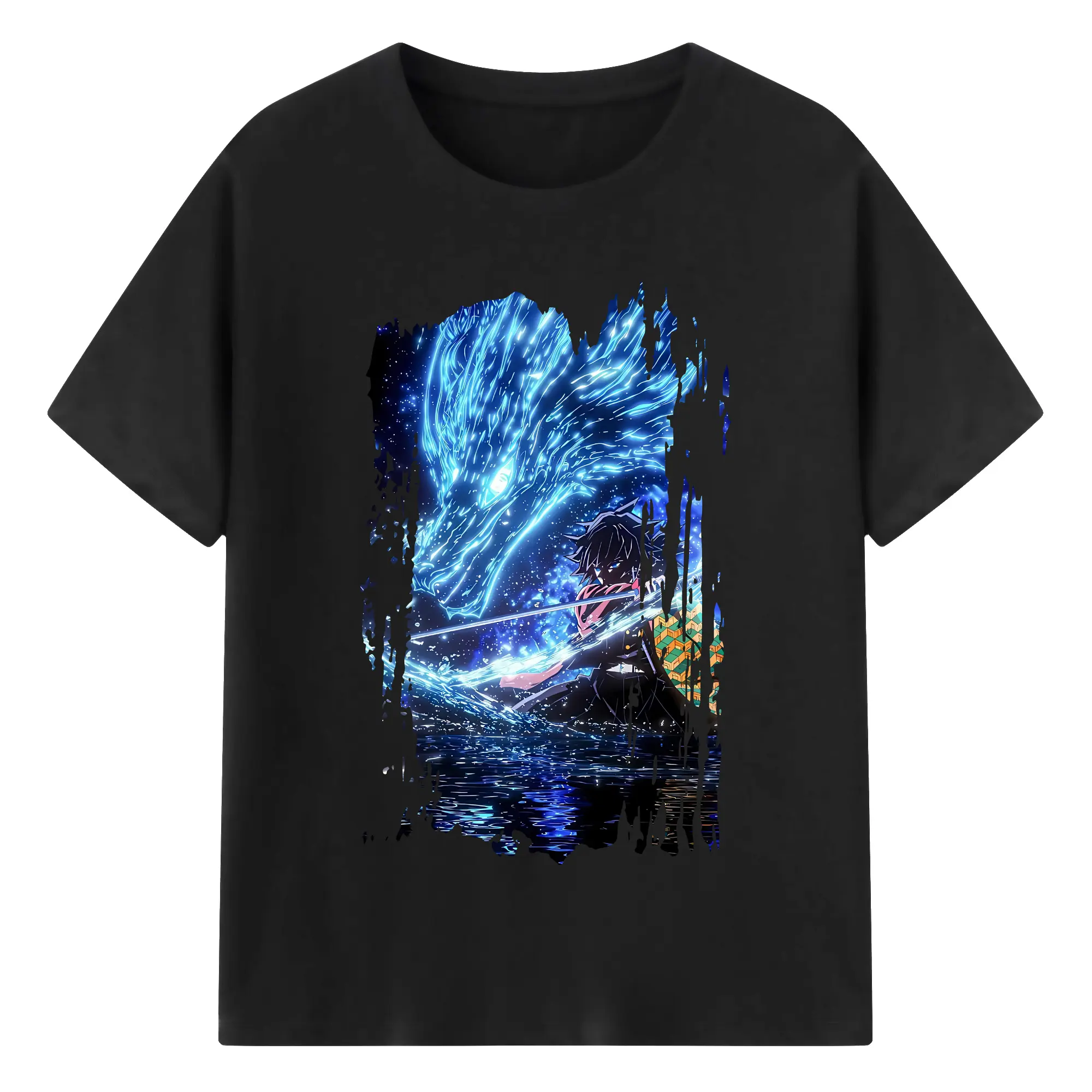 鬼滅の刃 グッズ,冨岡 義勇 - 綿100% 半袖Tシャツ ・ バックプリント ・ 快適 通気性 ・ 日常使い 散歩 スポーツ用