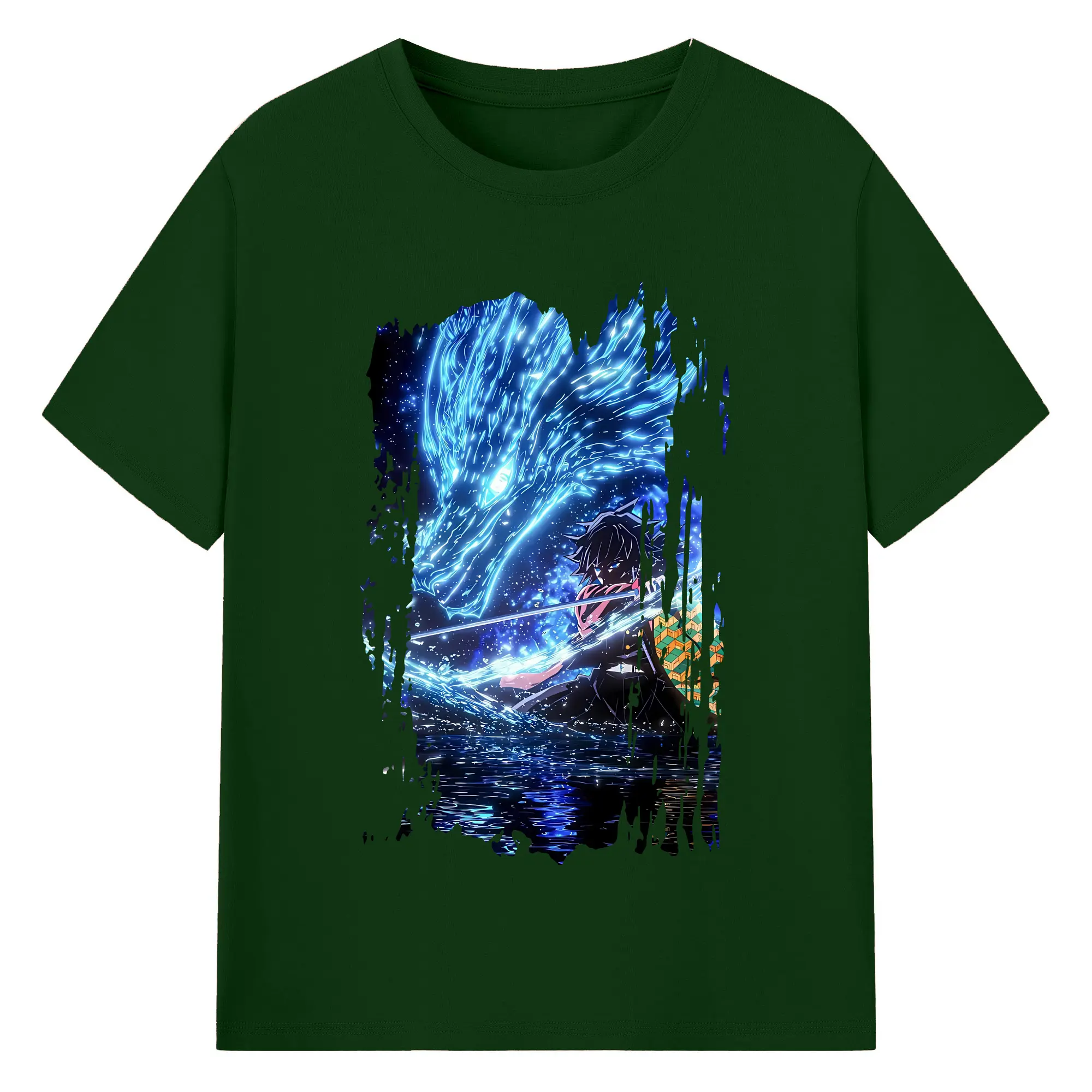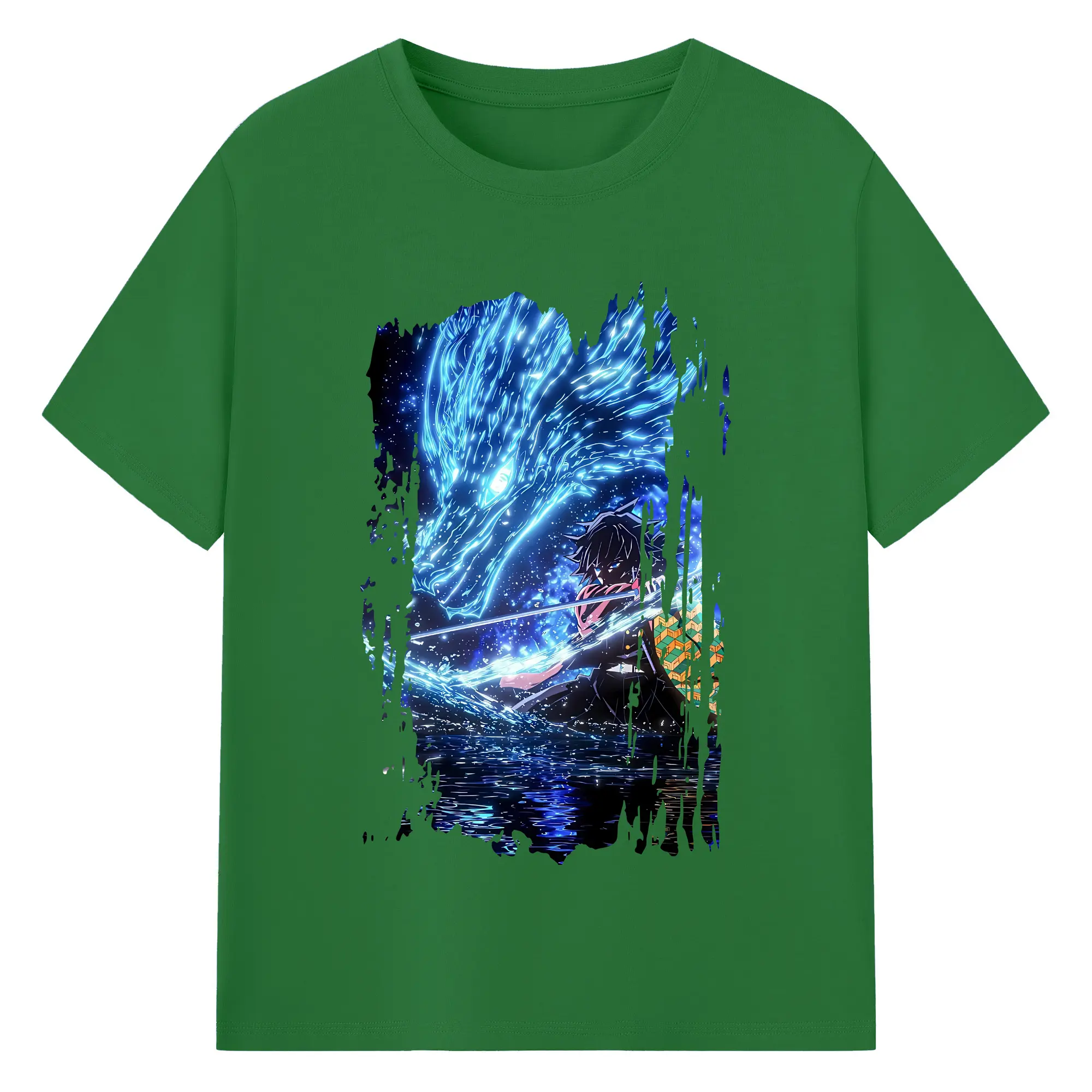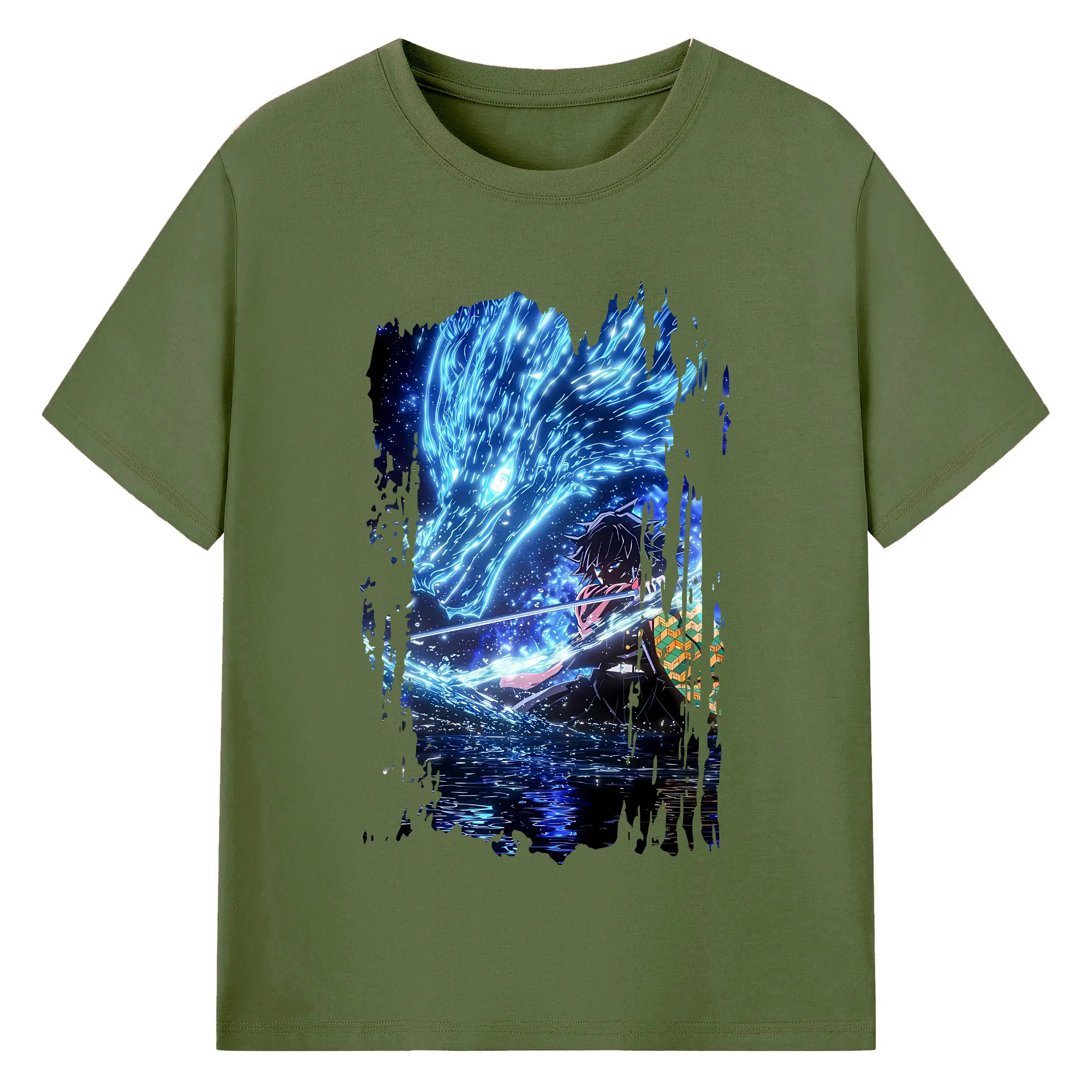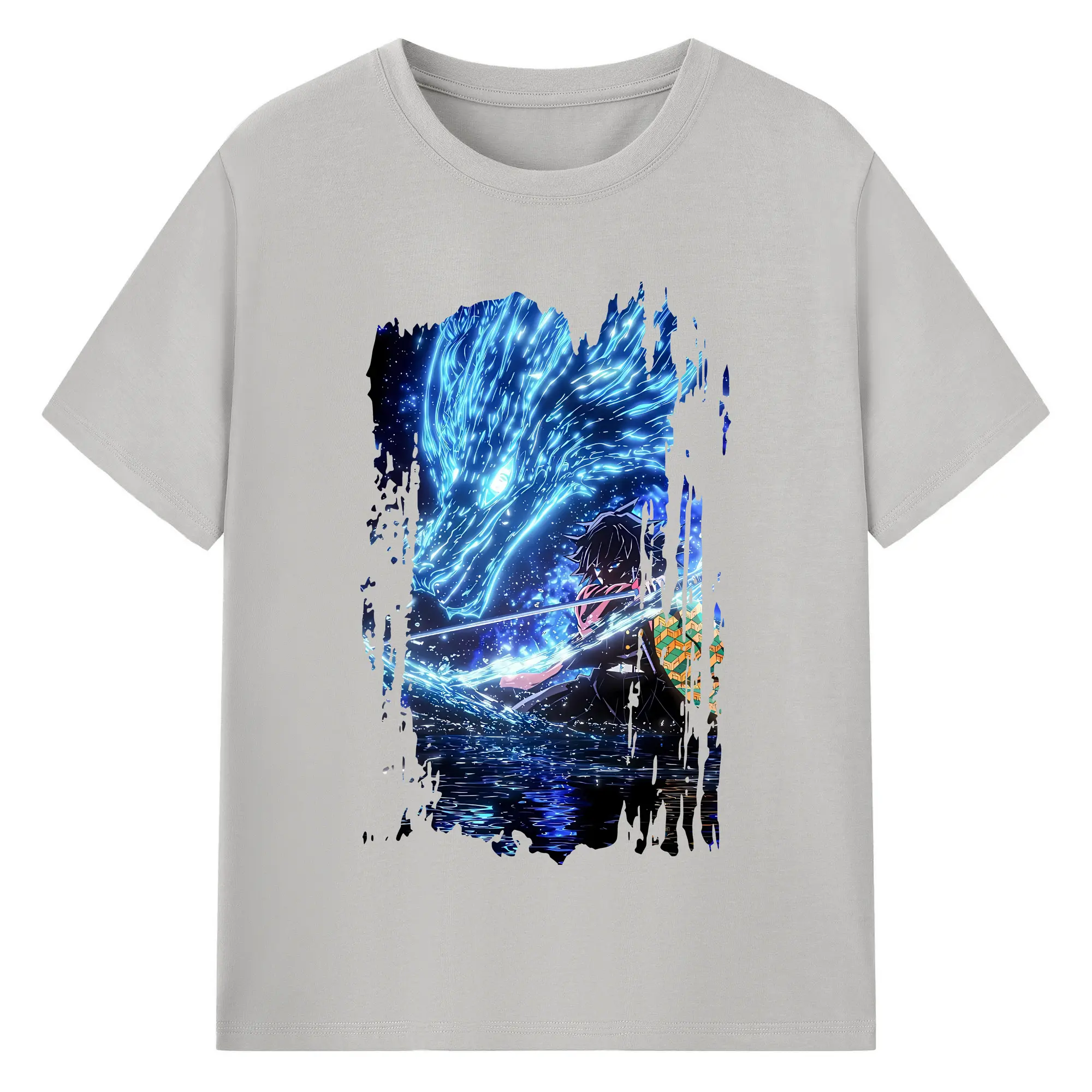 鬼滅の刃 グッズ,冨岡 義勇 - 綿100% 半袖Tシャツ ・ バックプリント ・ 快適 通気性 ・ 日常使い 散歩 スポーツ用