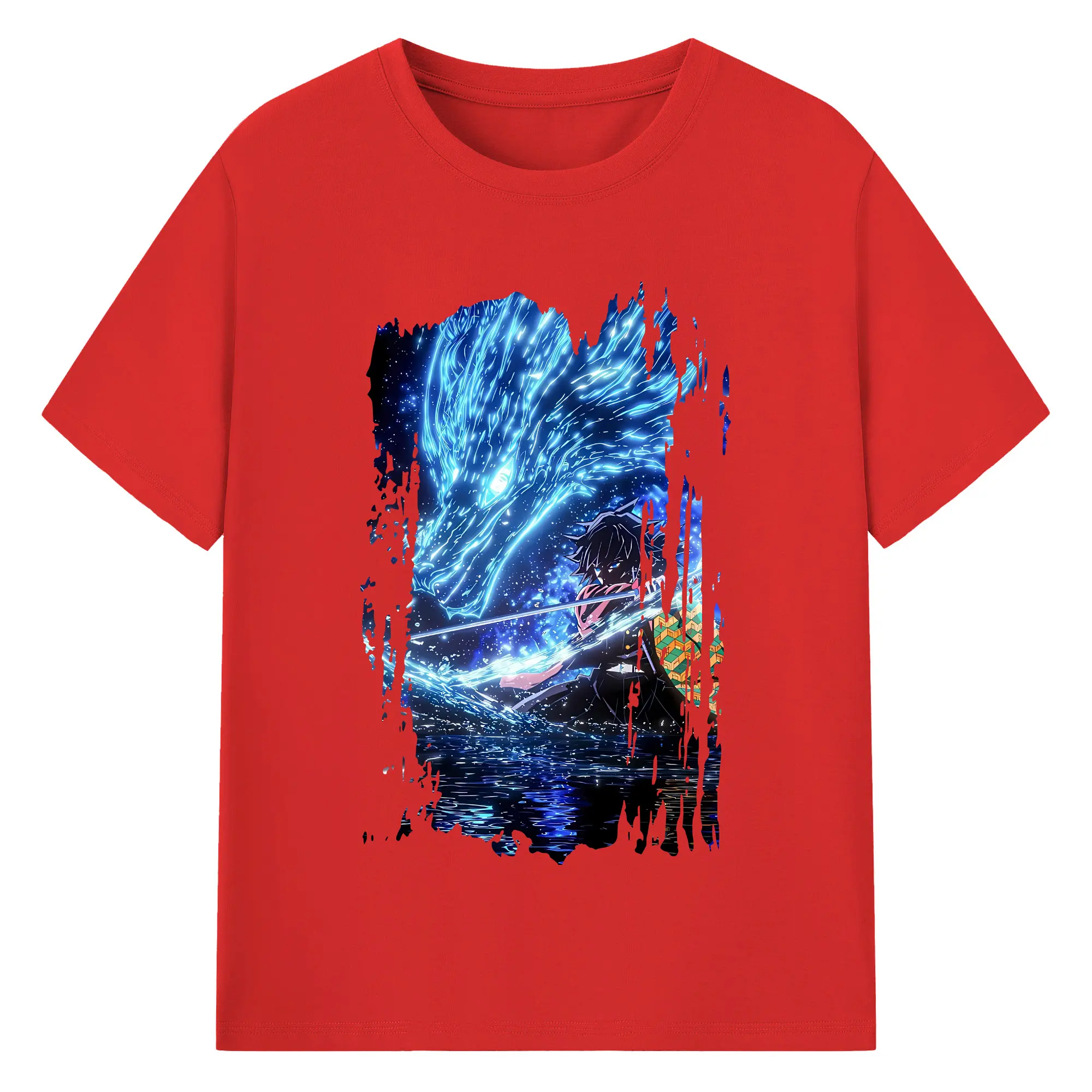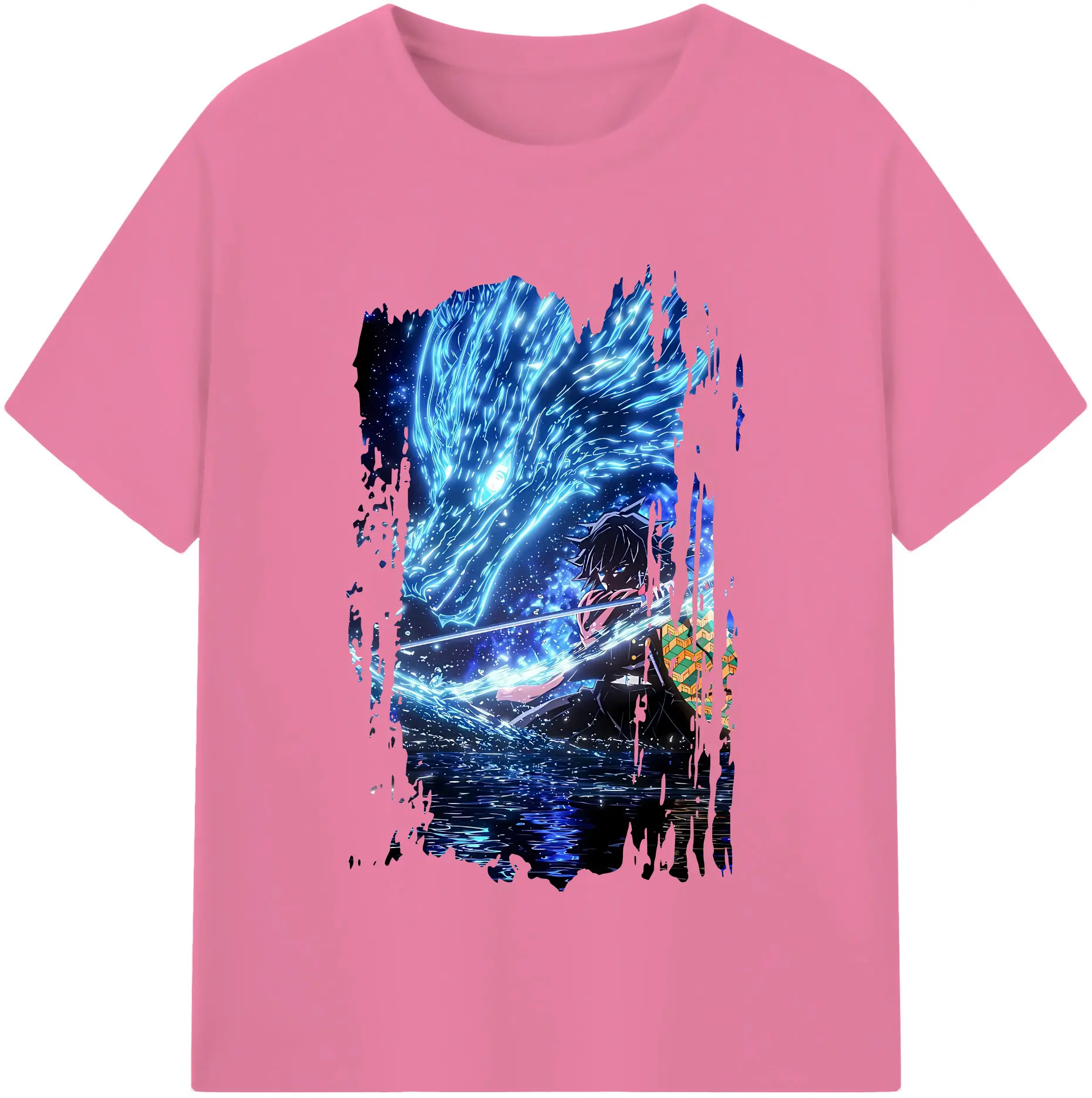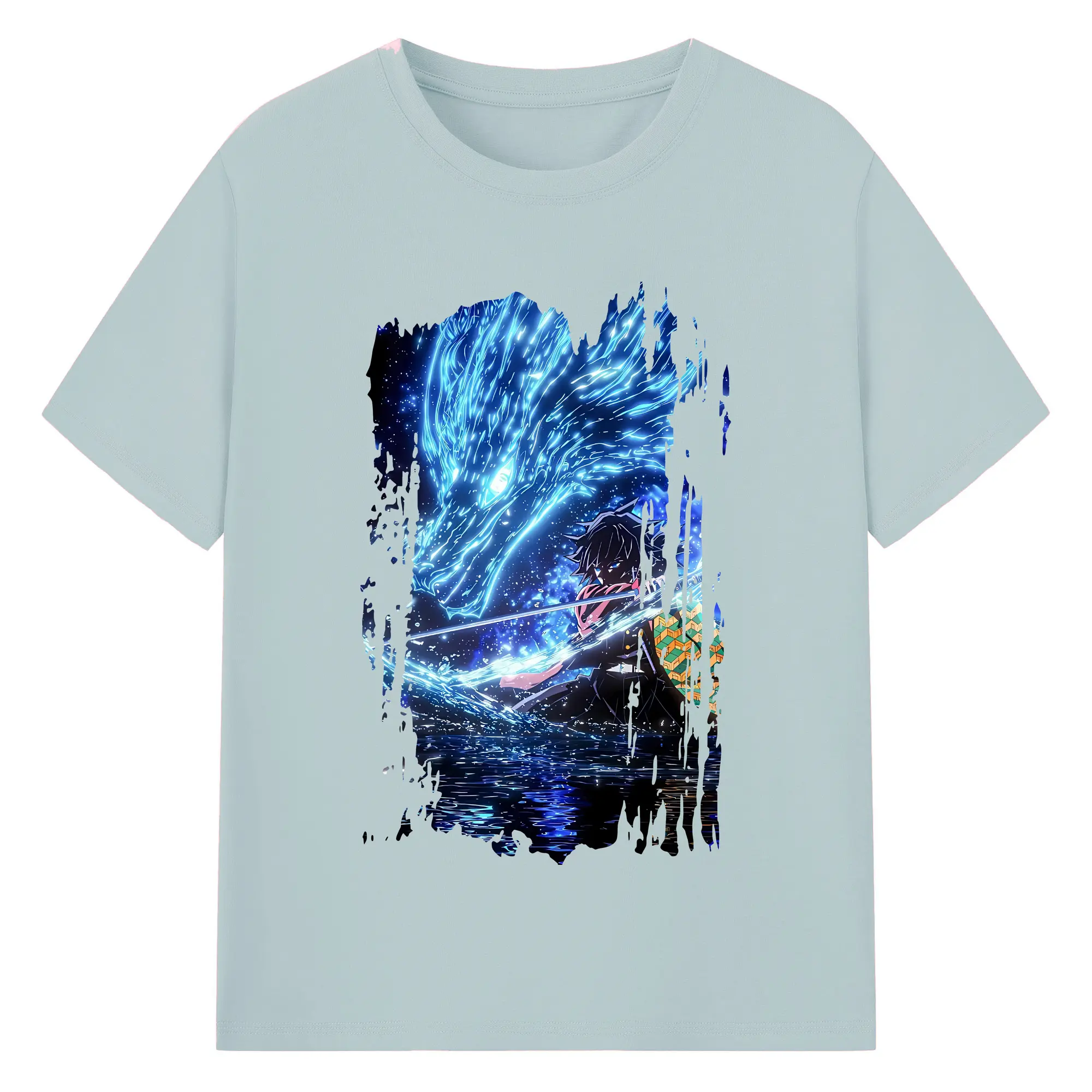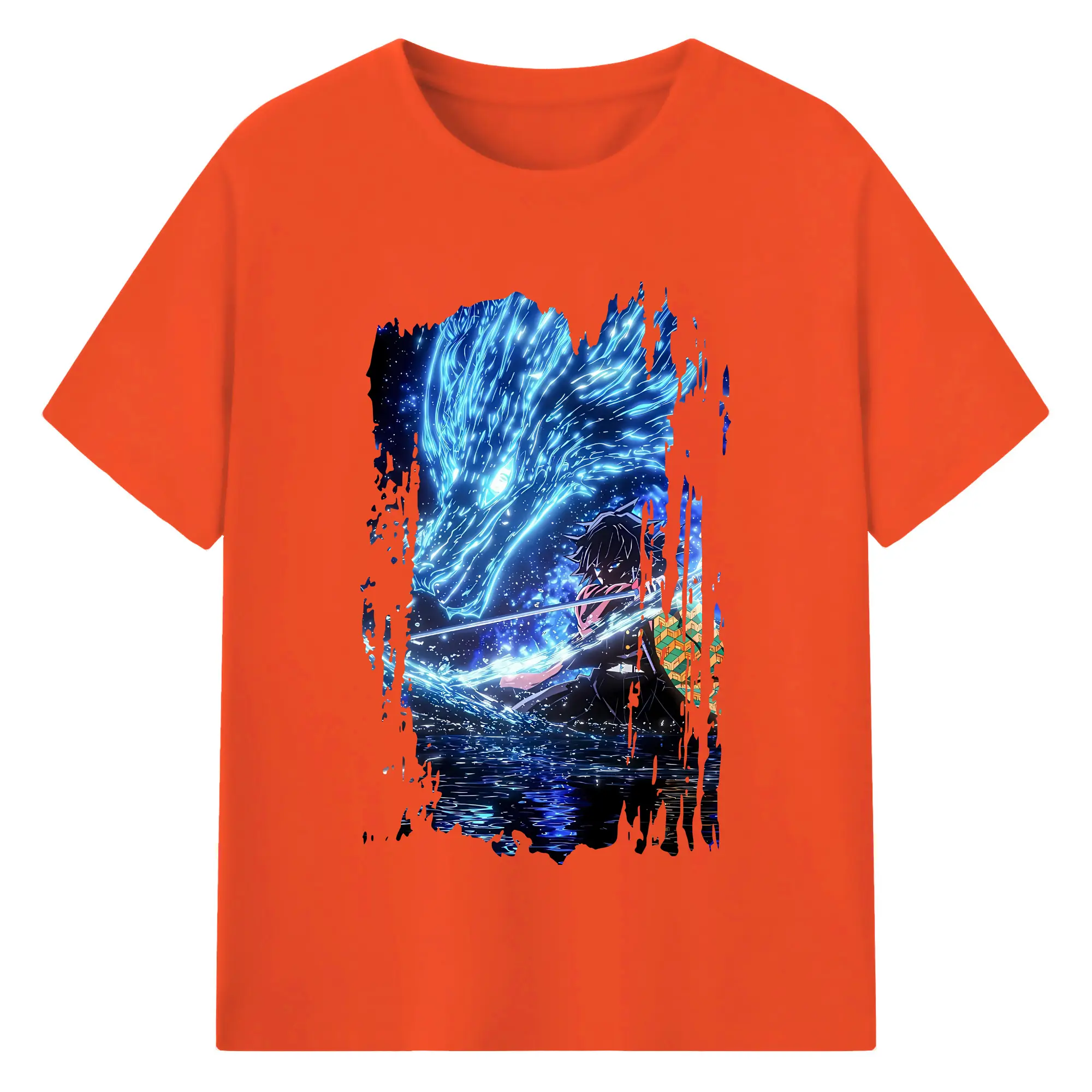 鬼滅の刃 グッズ,冨岡 義勇 - 綿100% 半袖Tシャツ ・ バックプリント ・ 快適 通気性 ・ 日常使い 散歩 スポーツ用