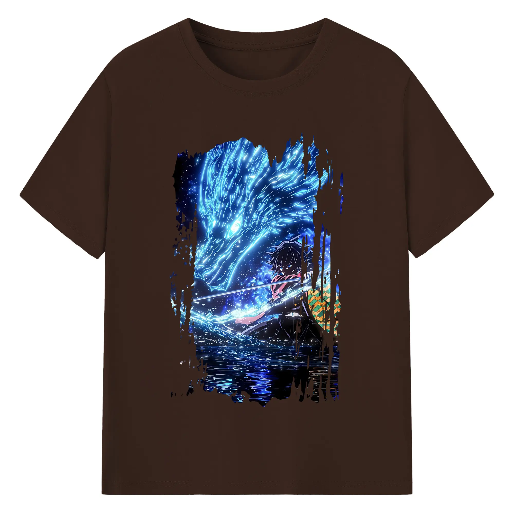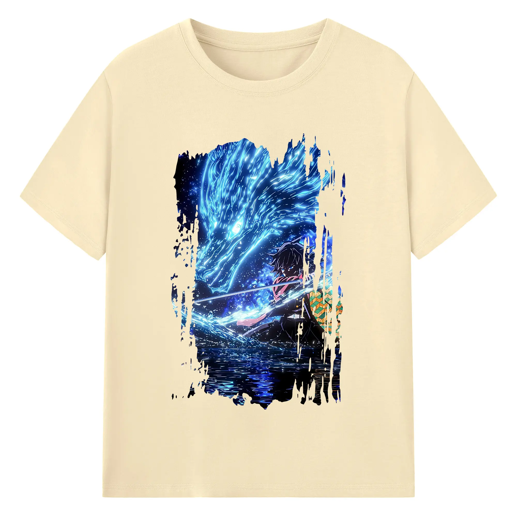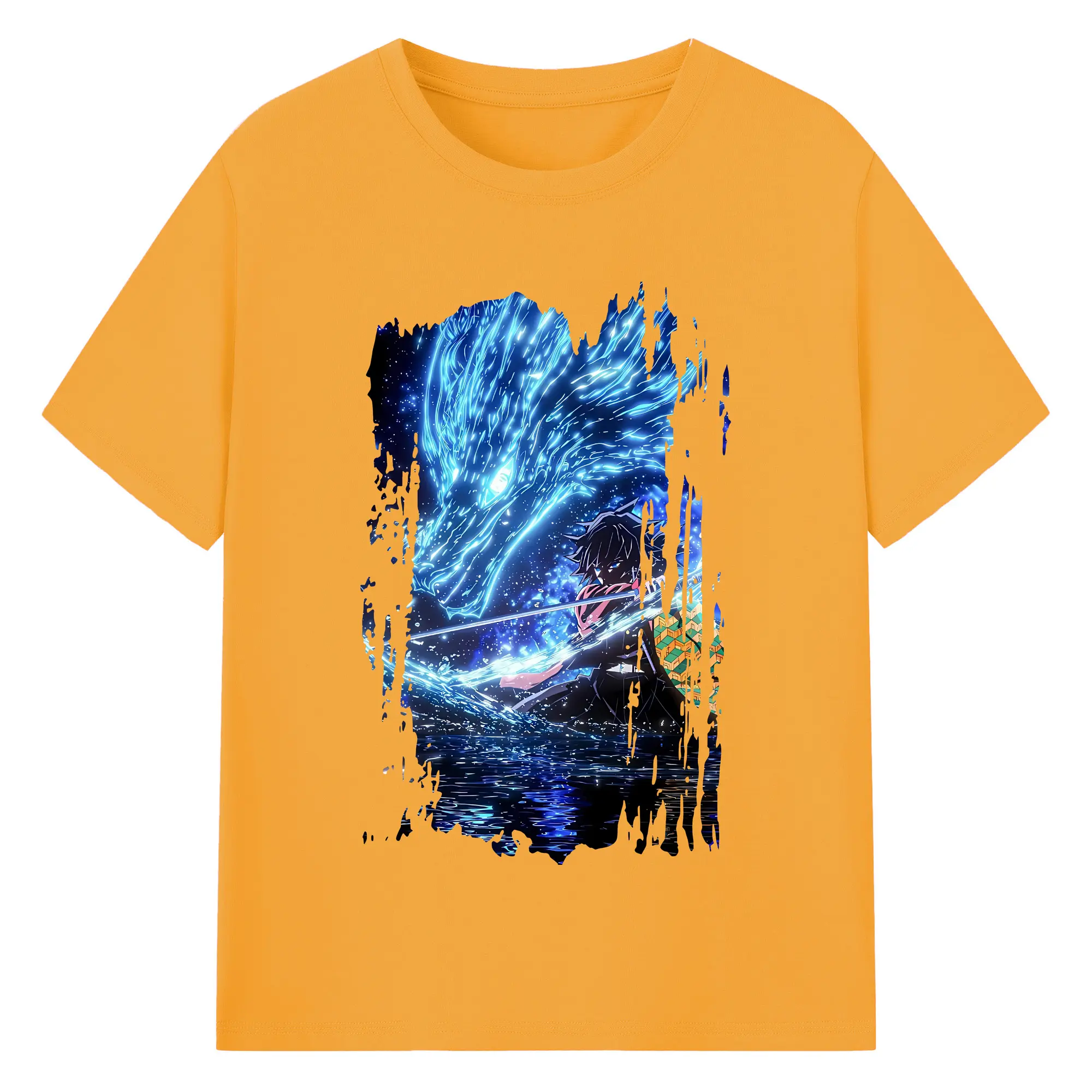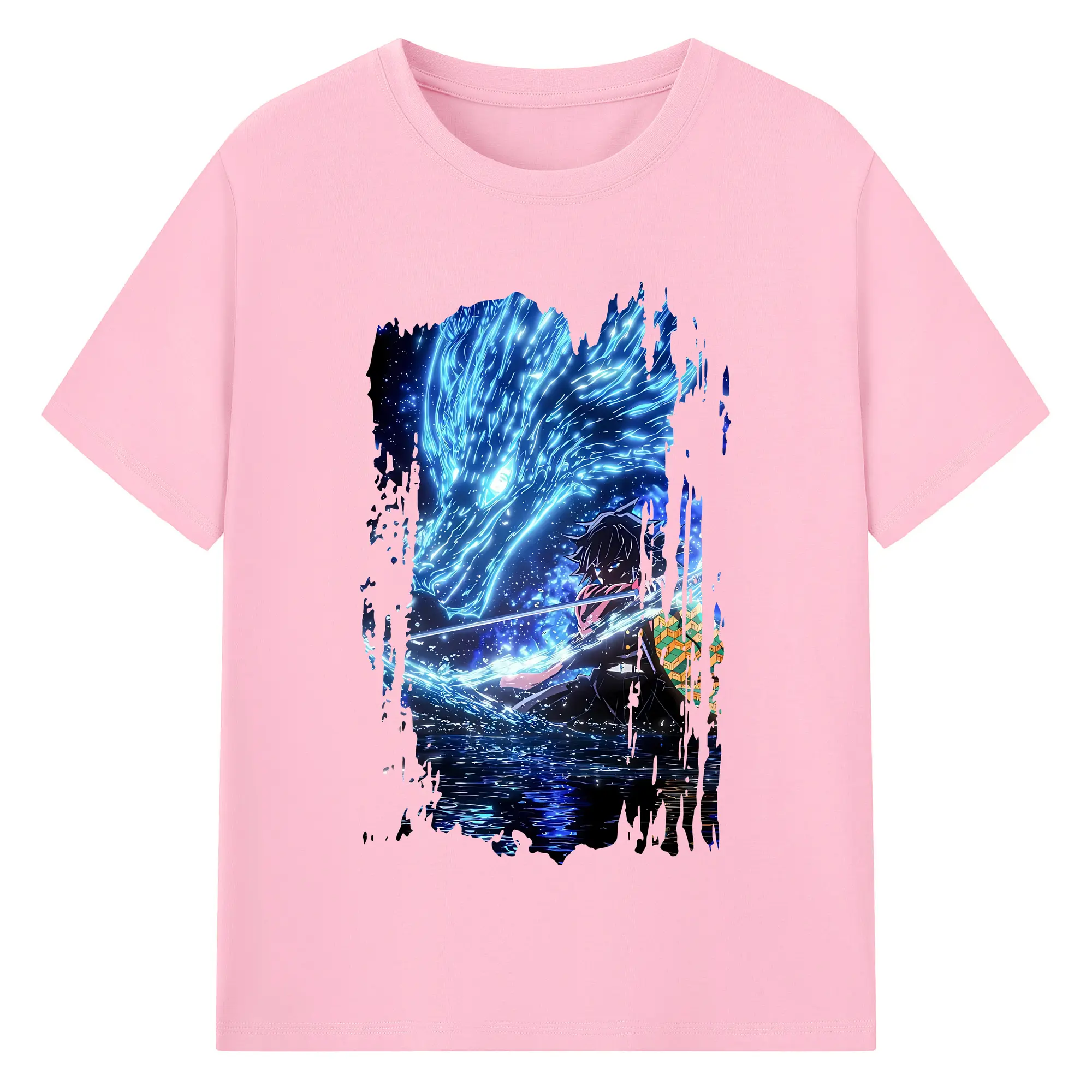 鬼滅の刃 グッズ,冨岡 義勇 - 綿100% 半袖Tシャツ ・ バックプリント ・ 快適 通気性 ・ 日常使い 散歩 スポーツ用