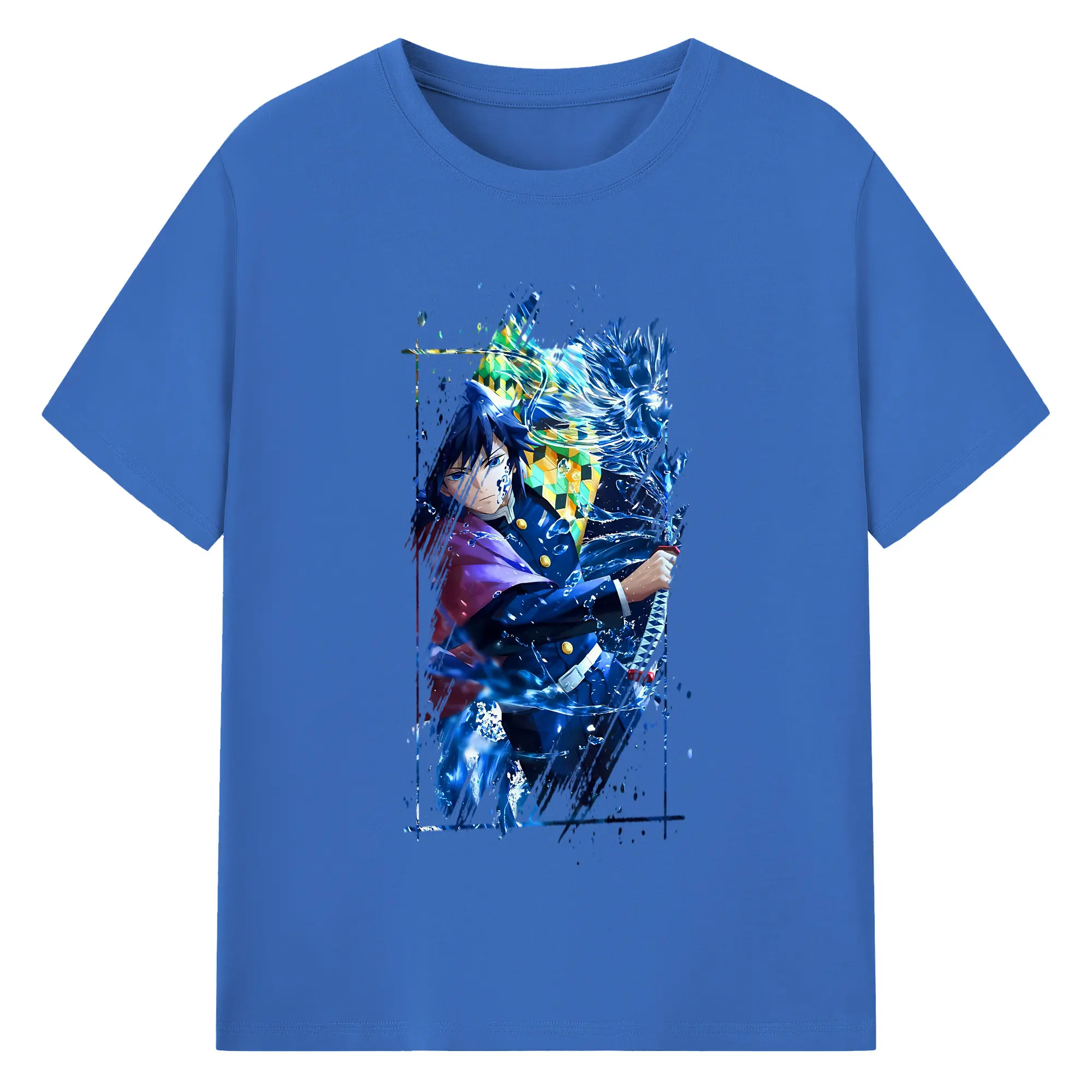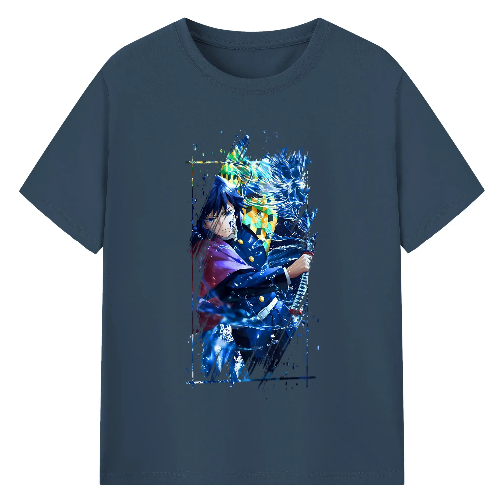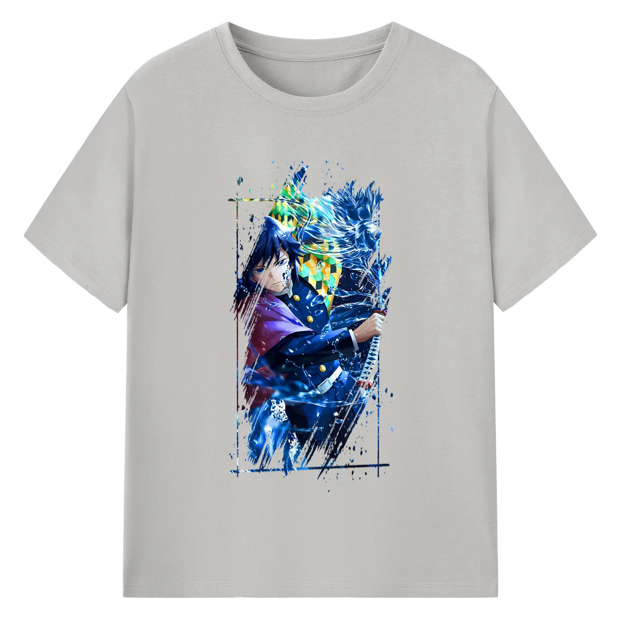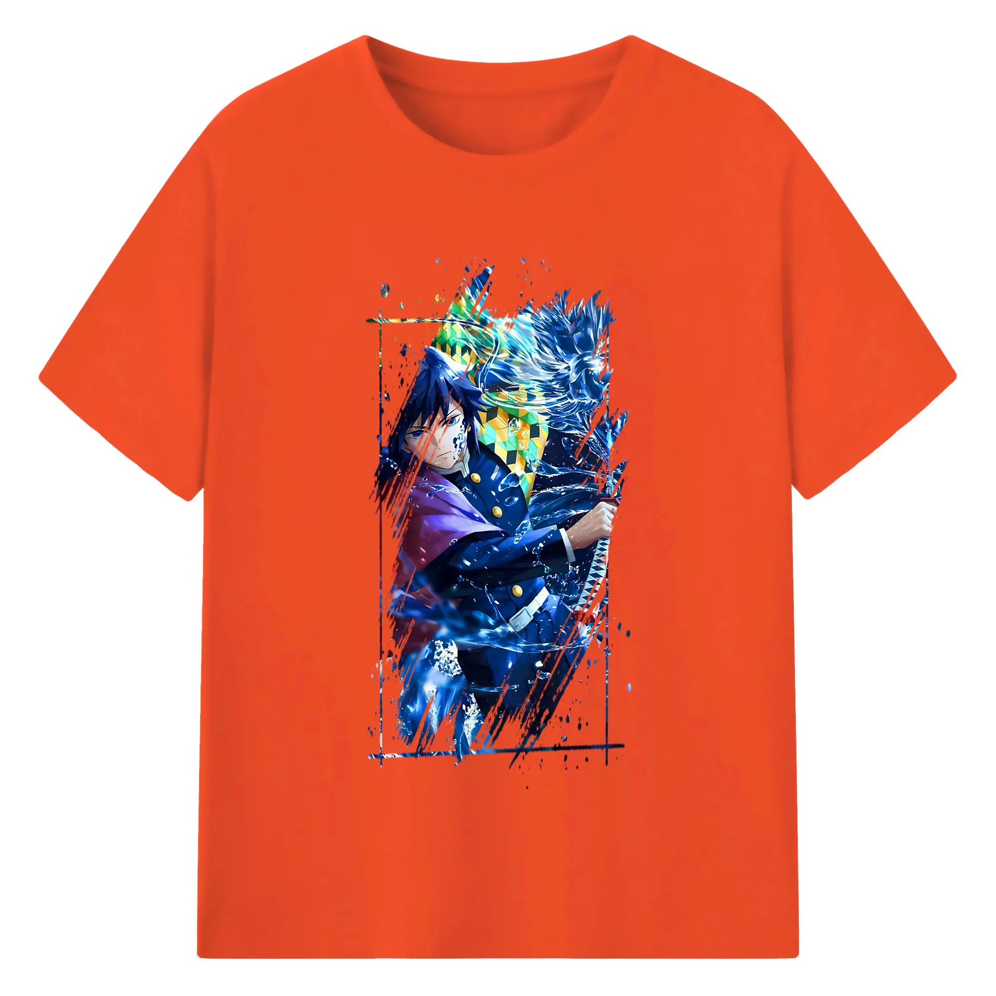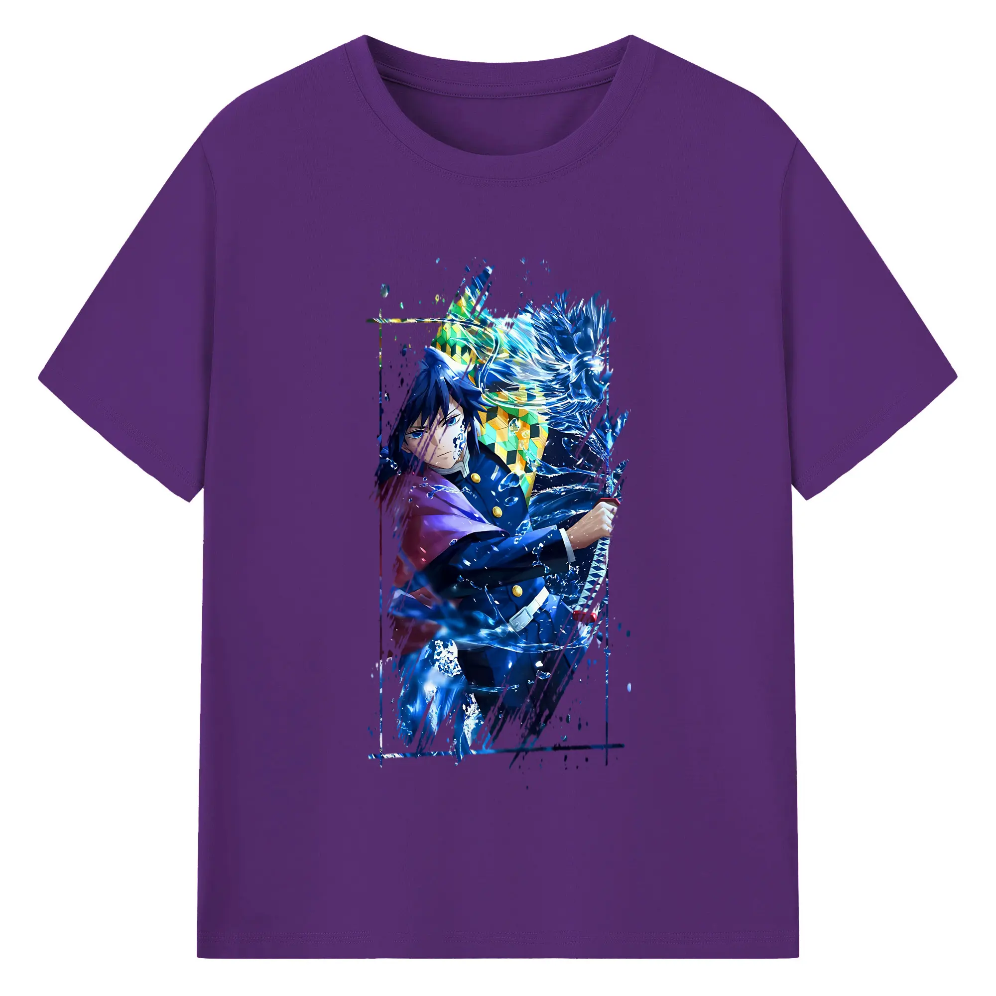 鬼滅の刃 グッズ,冨岡 義勇 - 綿100% 半袖Tシャツ ・ バックプリント ・ 快適 通気性 ・ 日常使い 散歩 スポーツ用