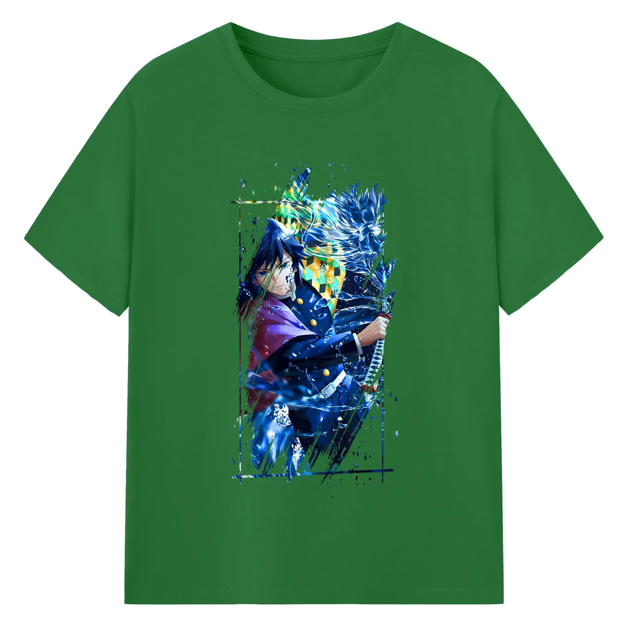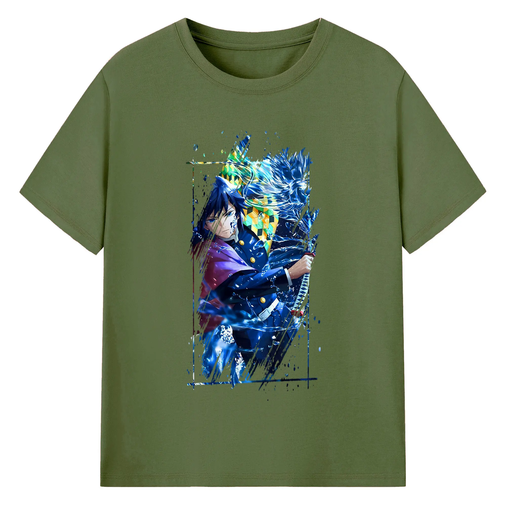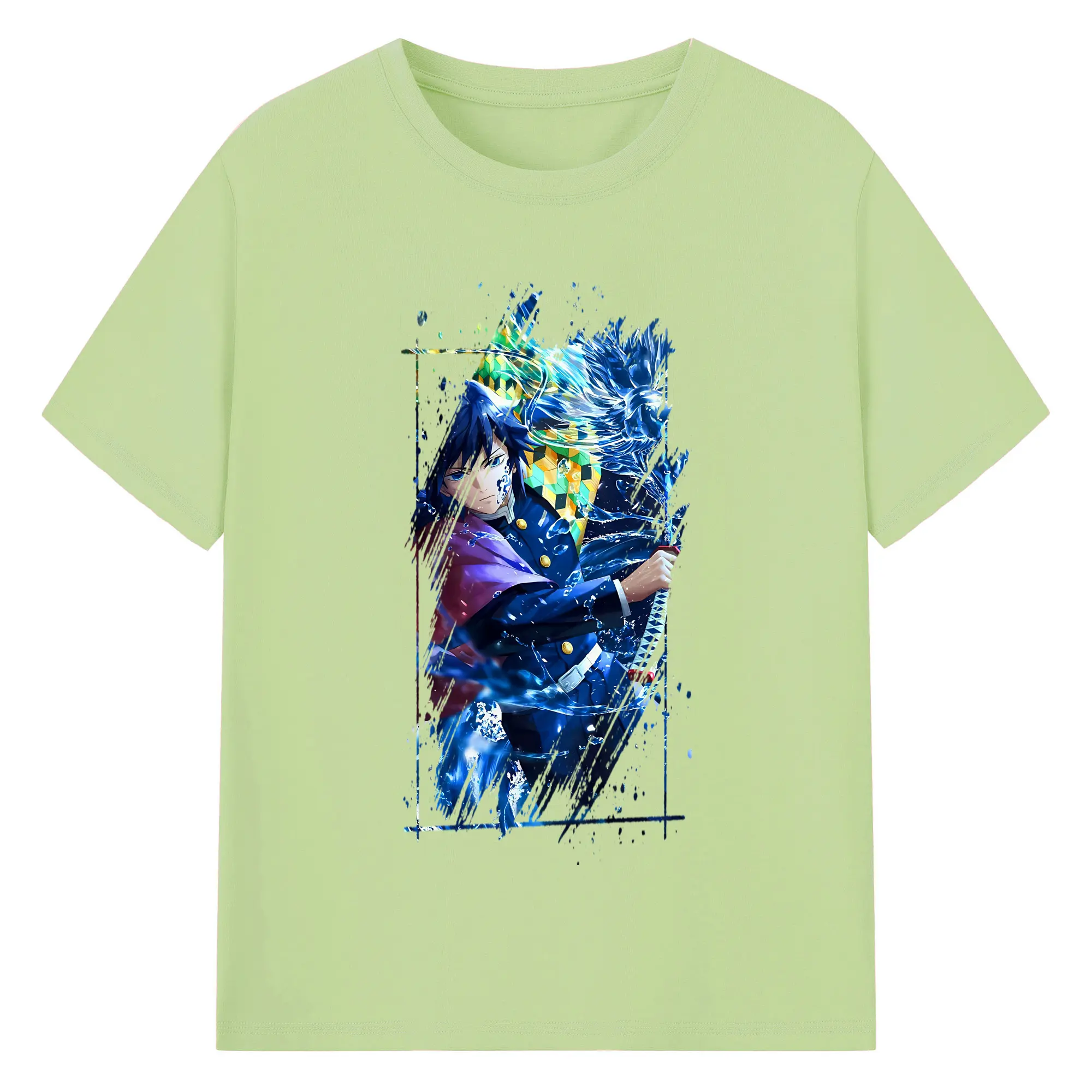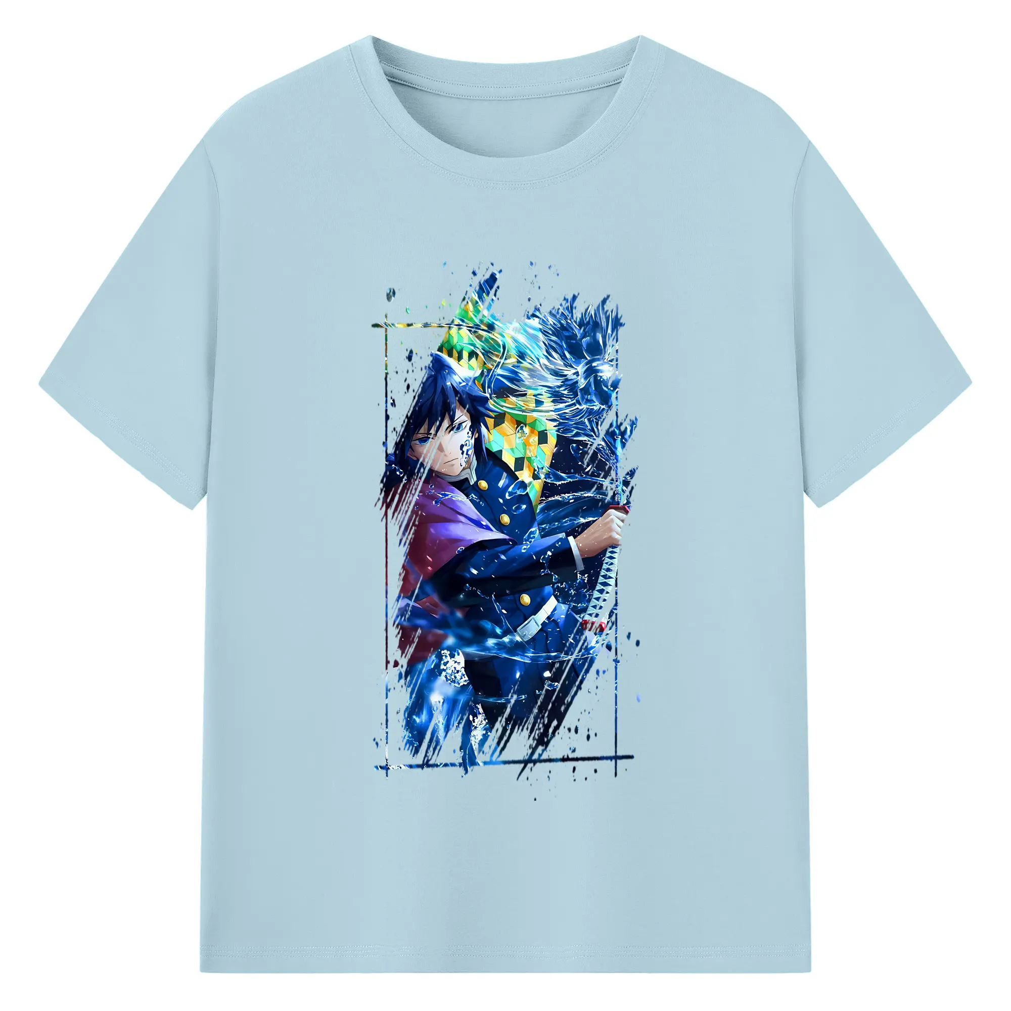 鬼滅の刃 グッズ,冨岡 義勇 - 綿100% 半袖Tシャツ ・ バックプリント ・ 快適 通気性 ・ 日常使い 散歩 スポーツ用