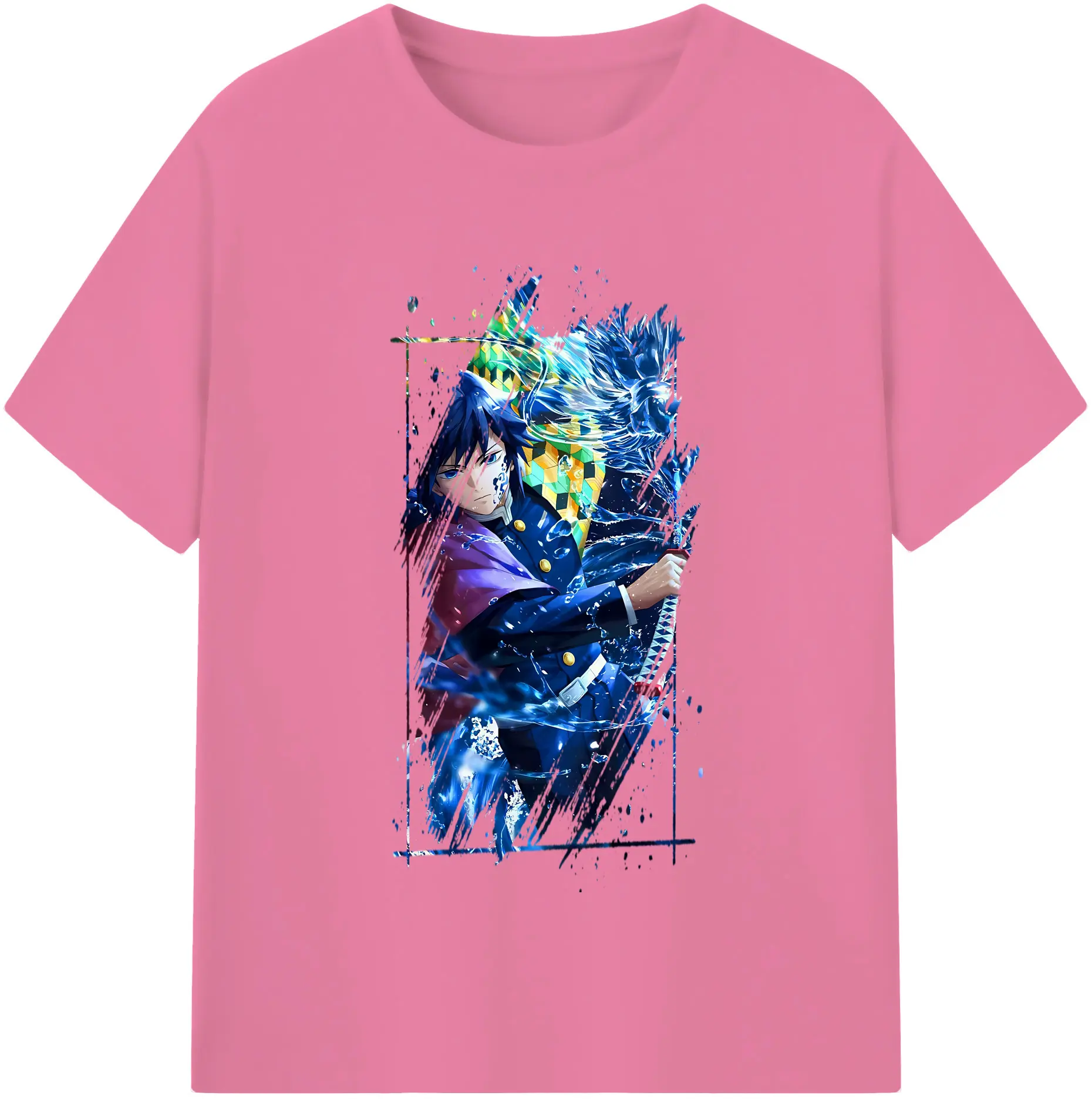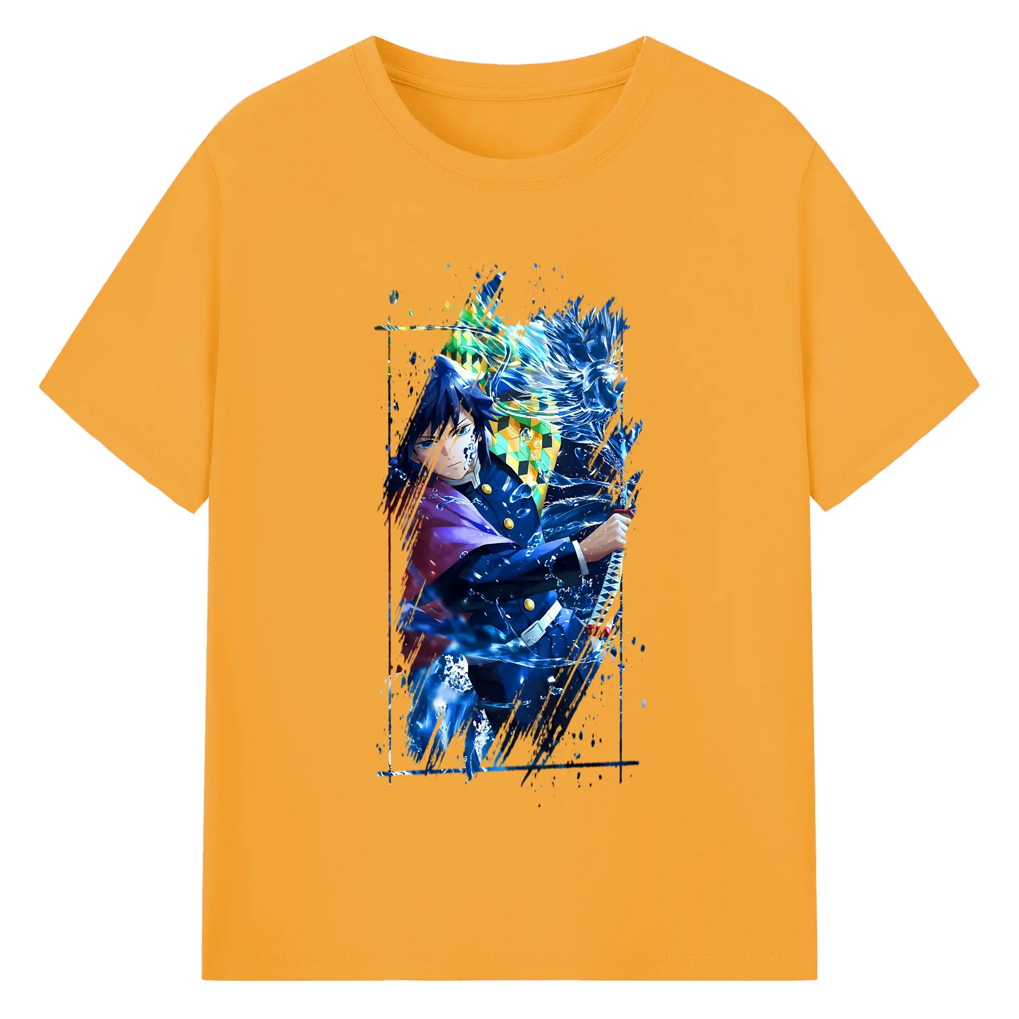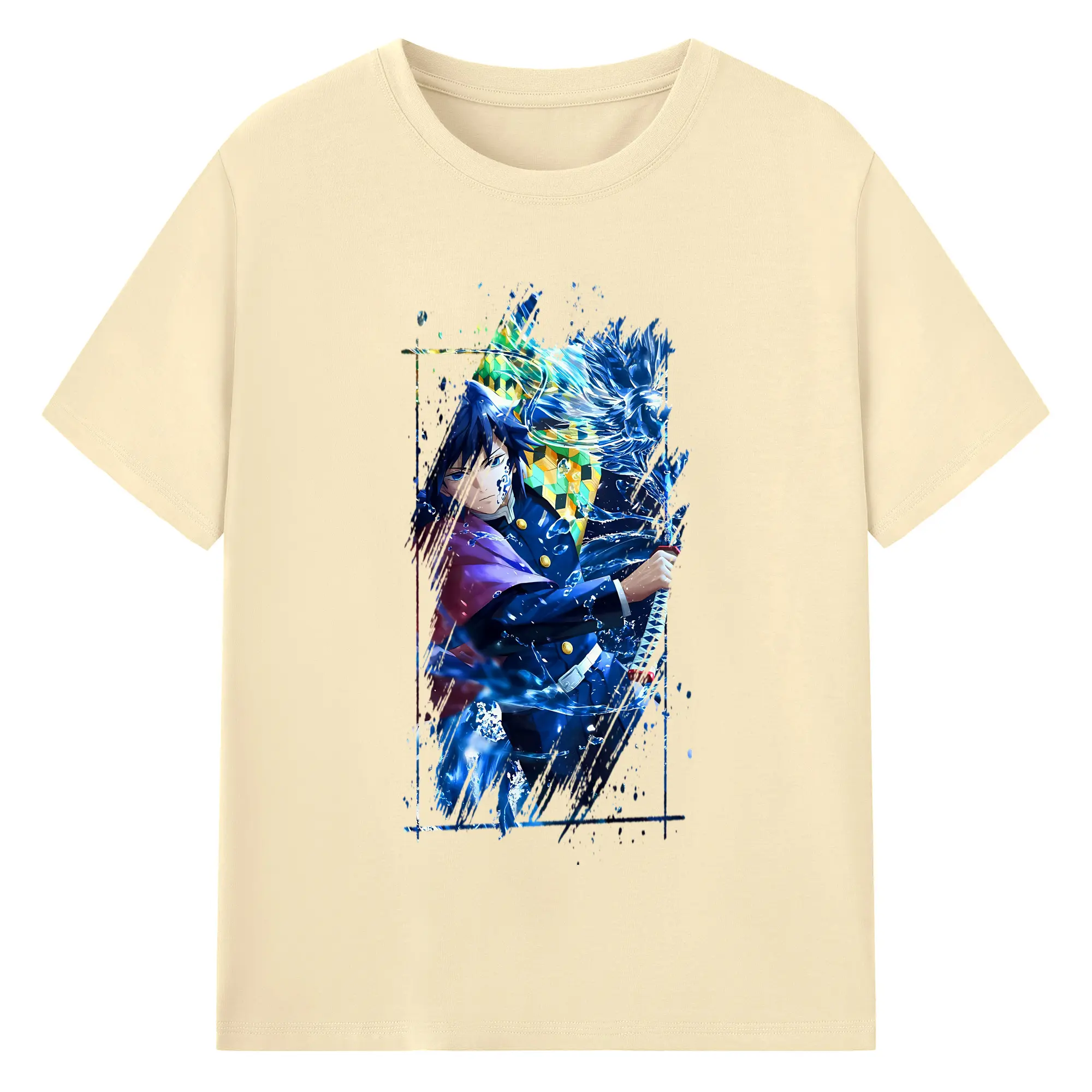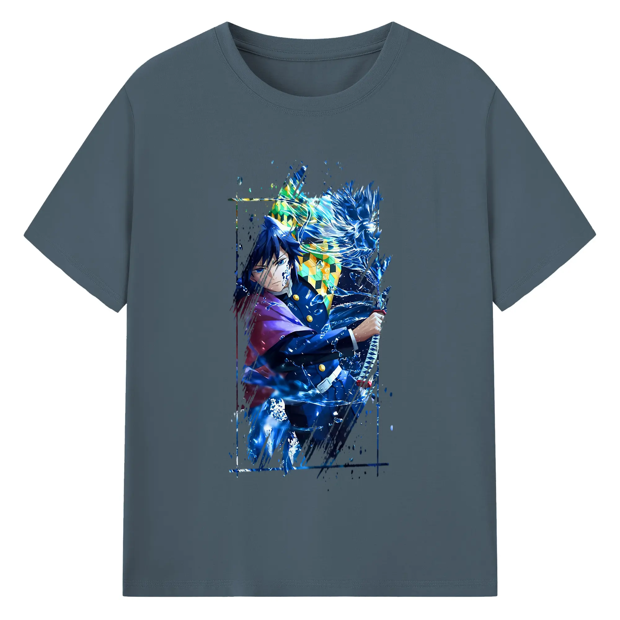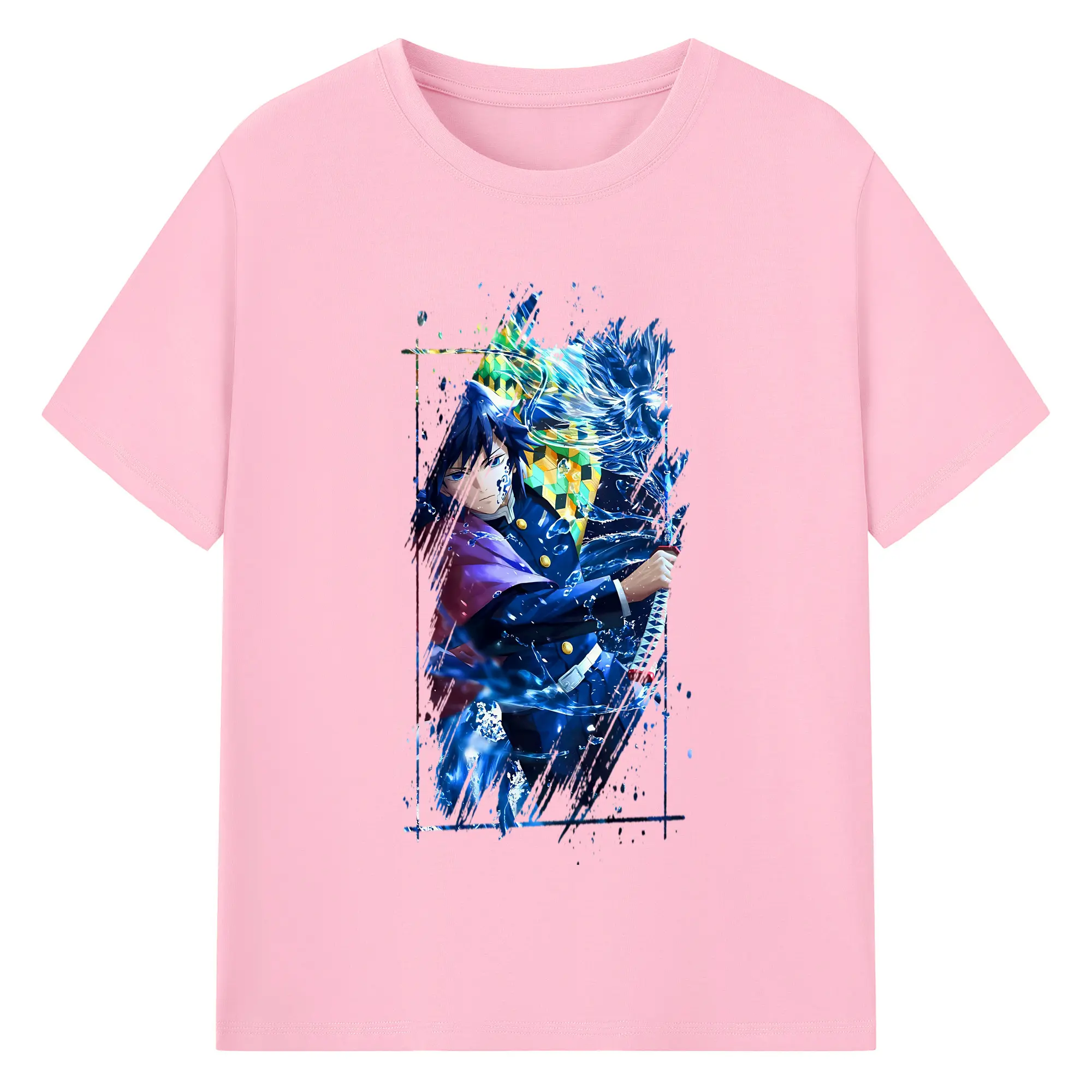 鬼滅の刃 グッズ,冨岡 義勇 - 綿100% 半袖Tシャツ ・ バックプリント ・ 快適 通気性 ・ 日常使い 散歩 スポーツ用
