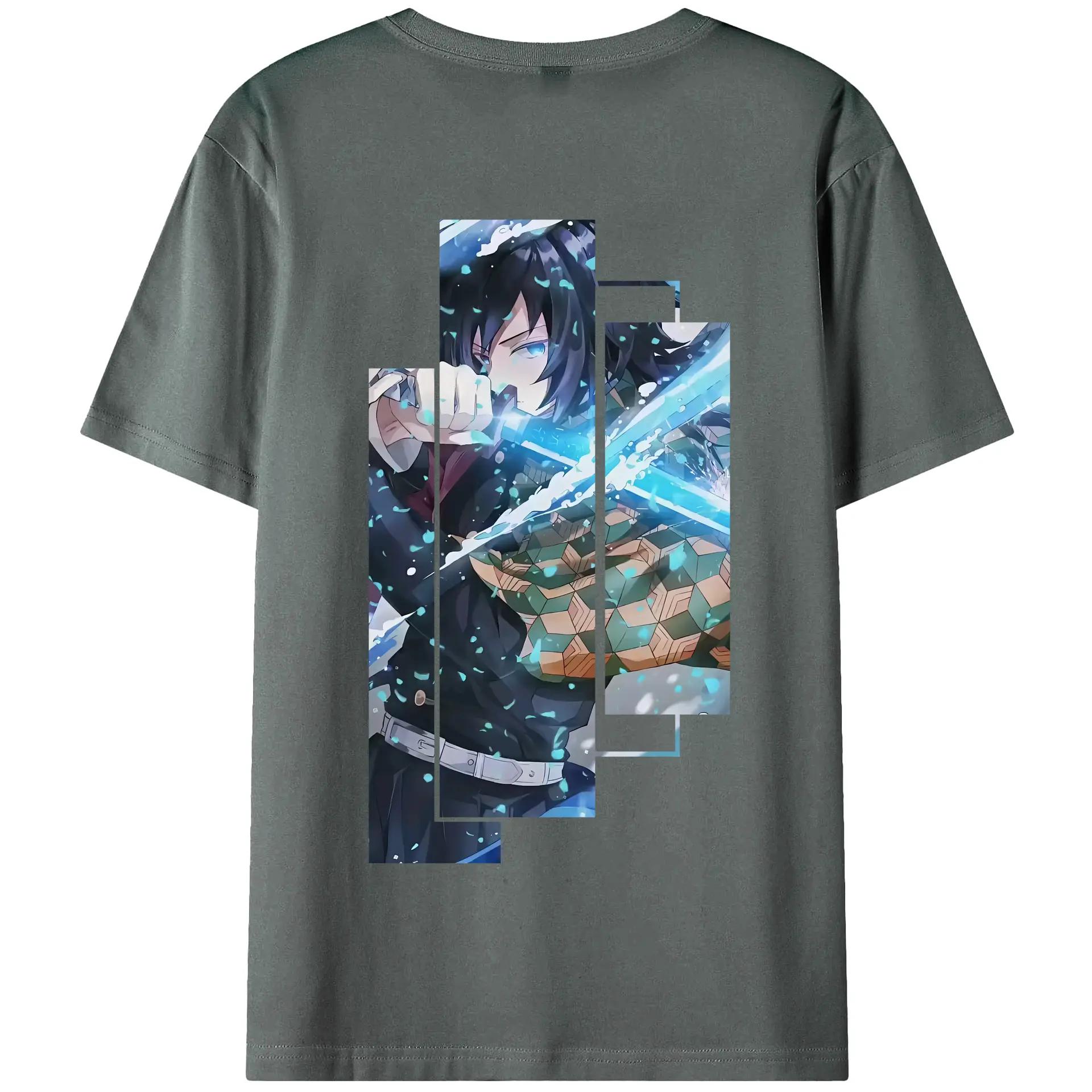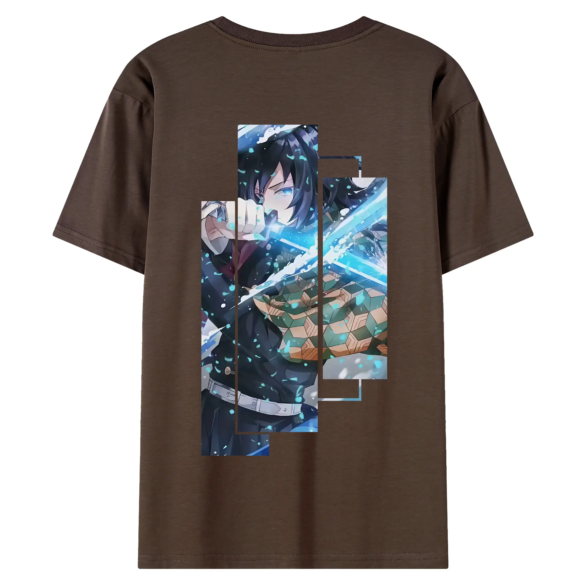 鬼滅の刃 グッズ,冨岡 義勇 - 綿100% 半袖Tシャツ ・ フロントプリント ・ 快適 通気性 ・ 日常使い 散歩 スポーツ用