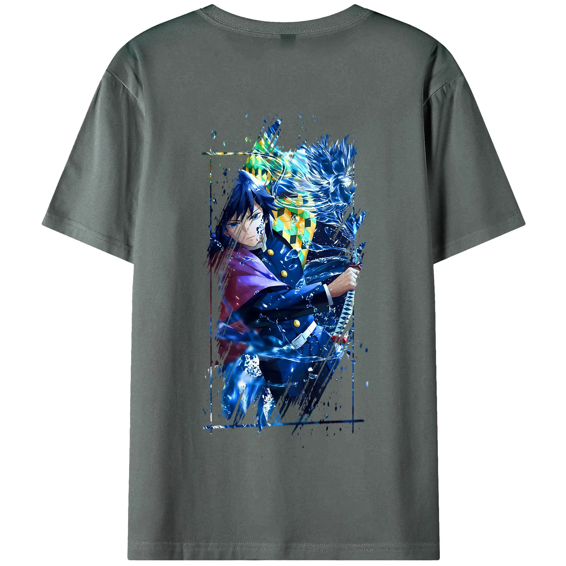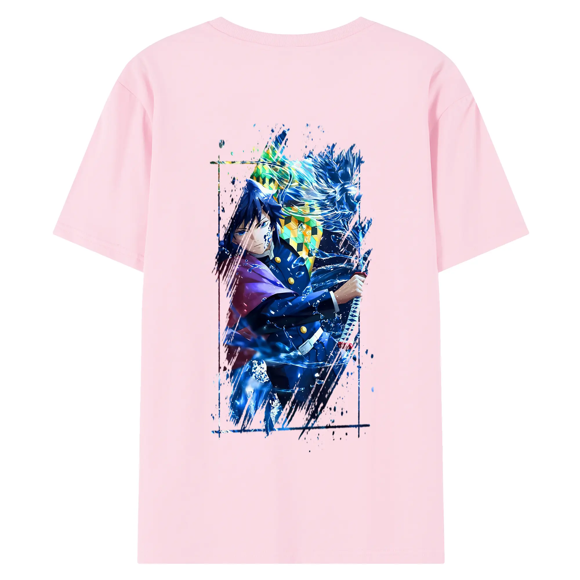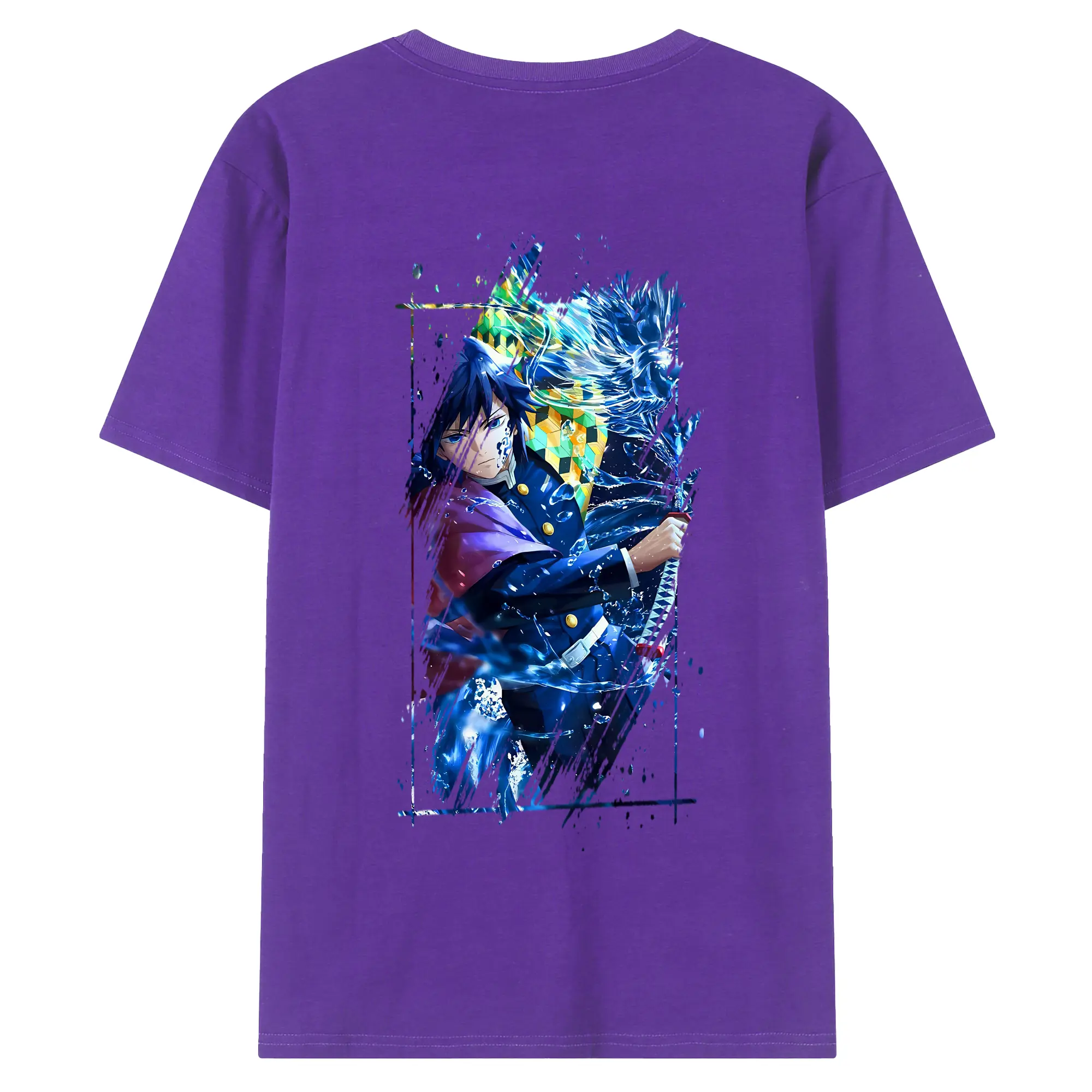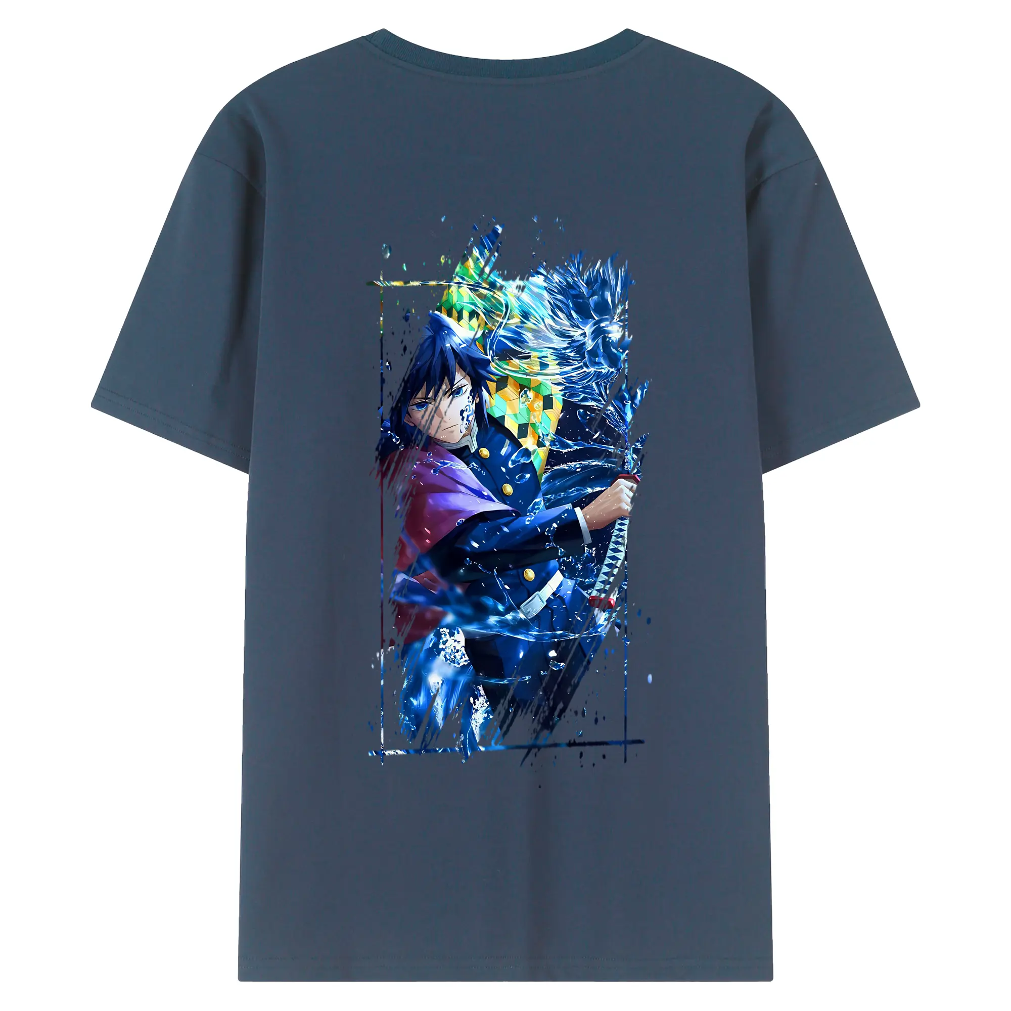 鬼滅の刃 グッズ,冨岡 義勇 - 綿100% 半袖Tシャツ ・ フロントプリント ・ 快適 通気性 ・ 日常使い 散歩 スポーツ用