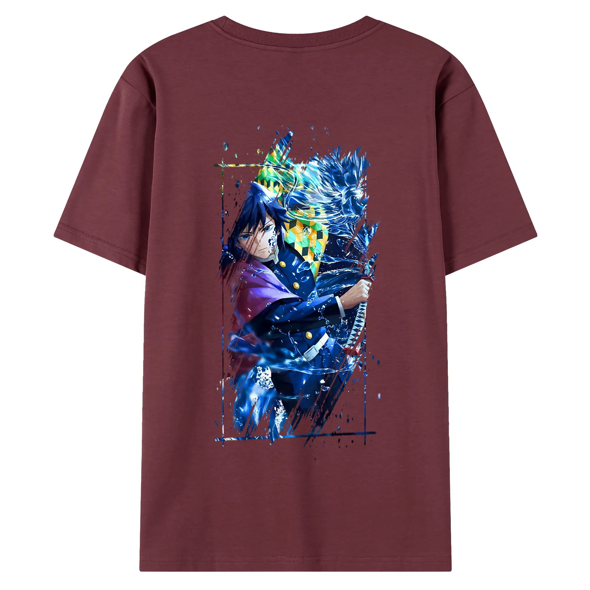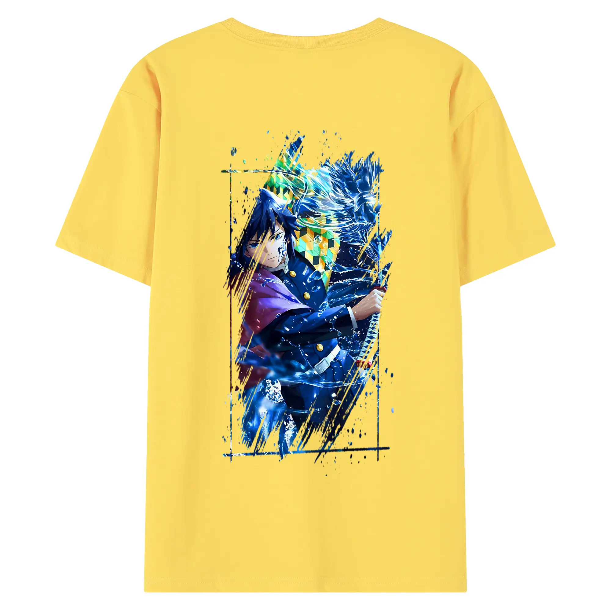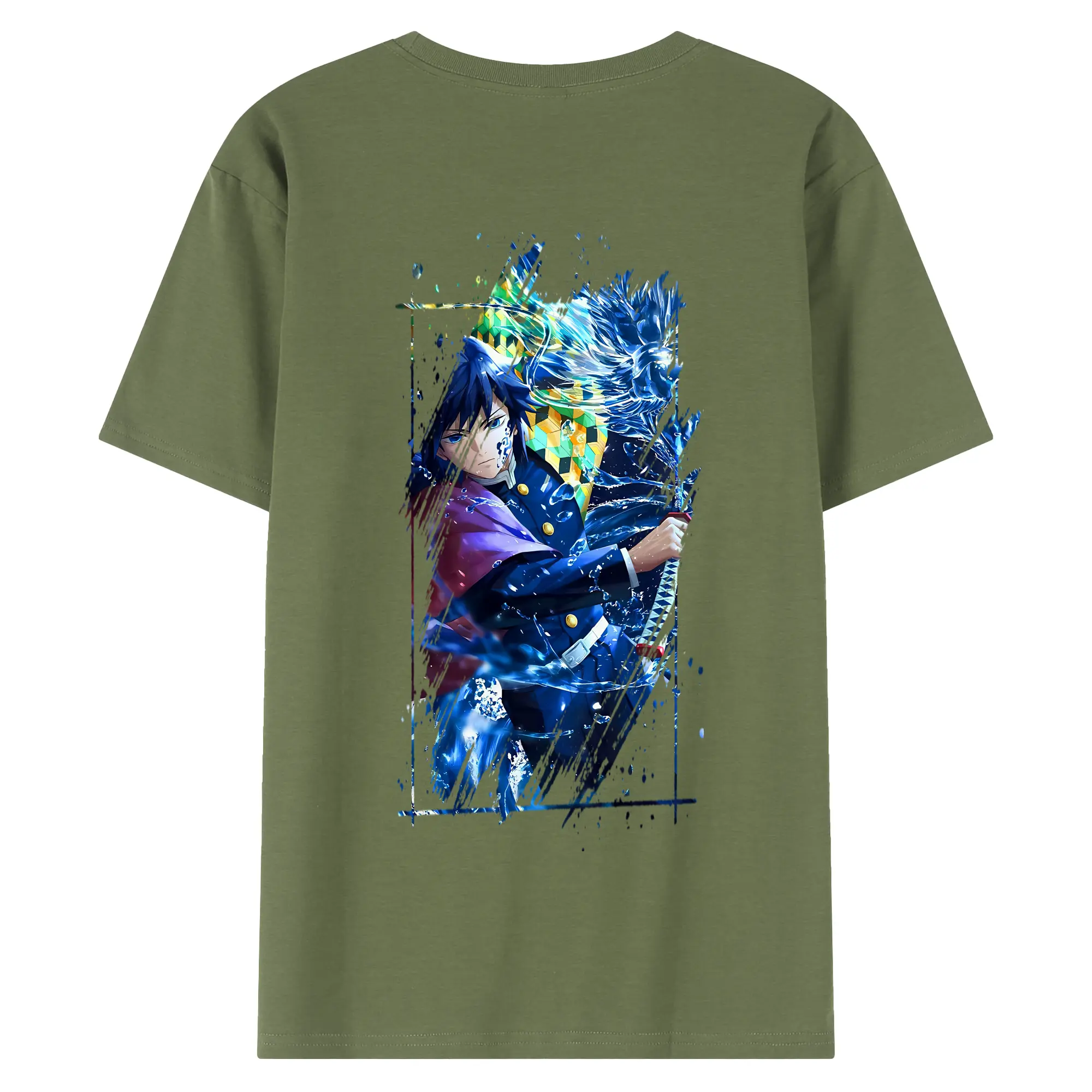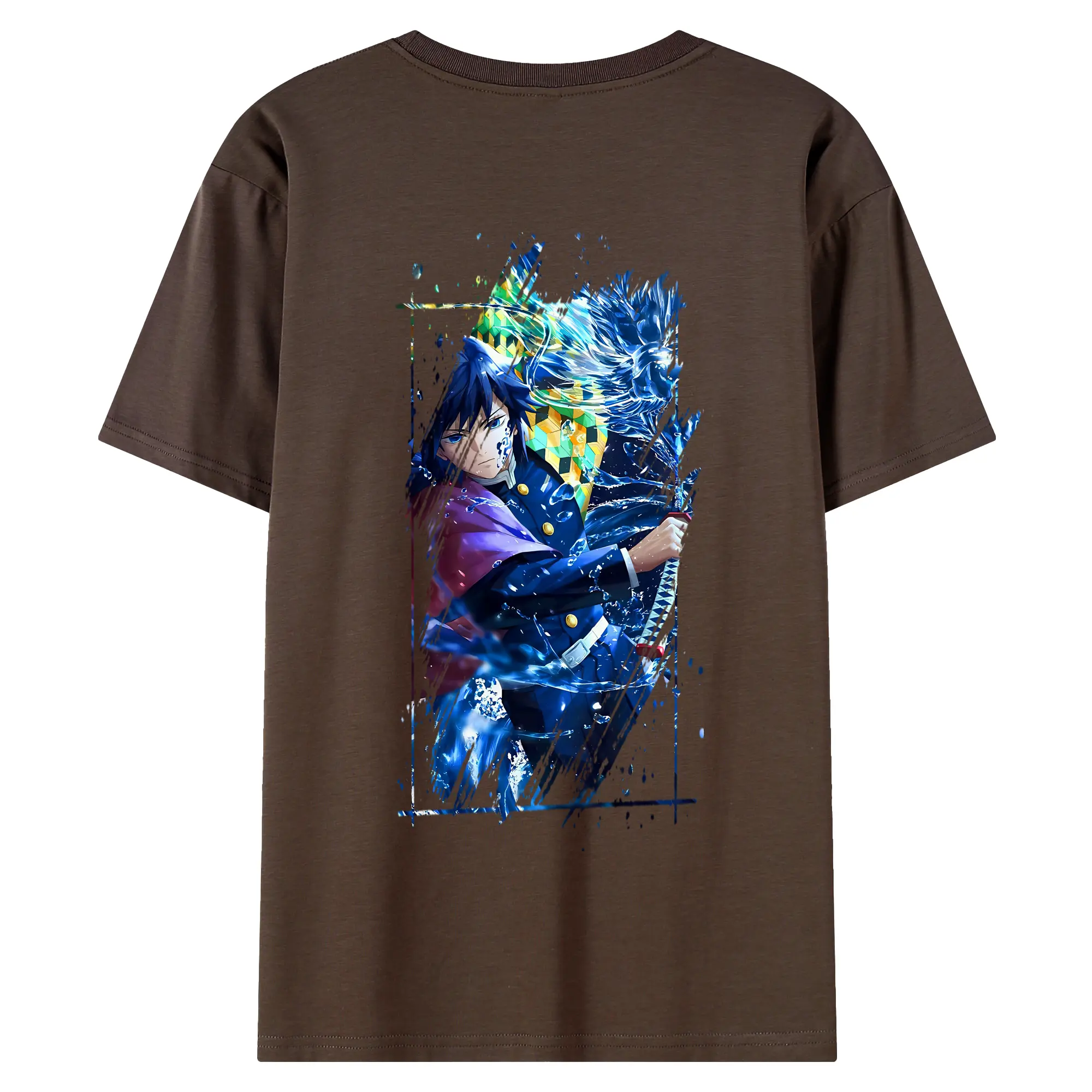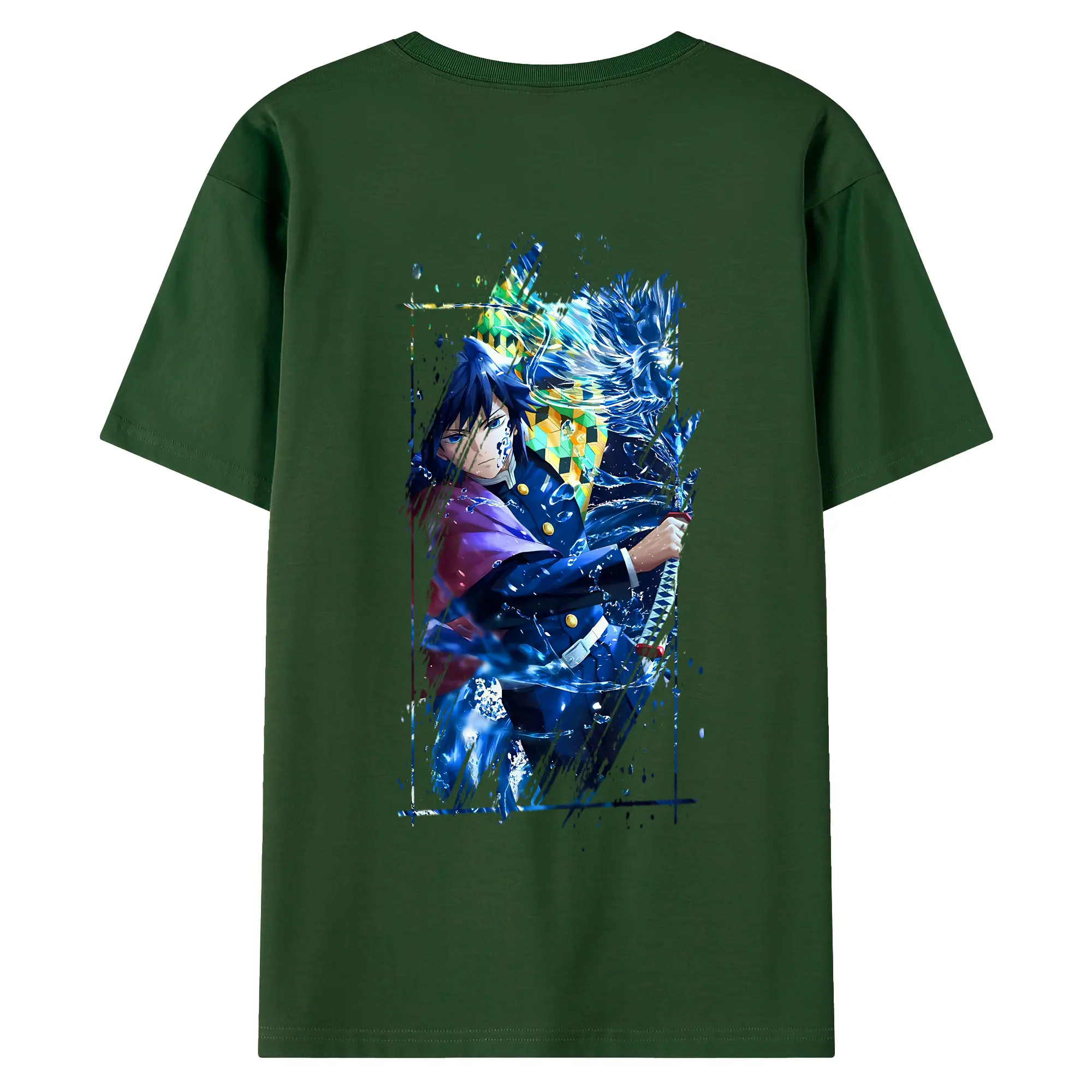 鬼滅の刃 グッズ,冨岡 義勇 - 綿100% 半袖Tシャツ ・ フロントプリント ・ 快適 通気性 ・ 日常使い 散歩 スポーツ用
