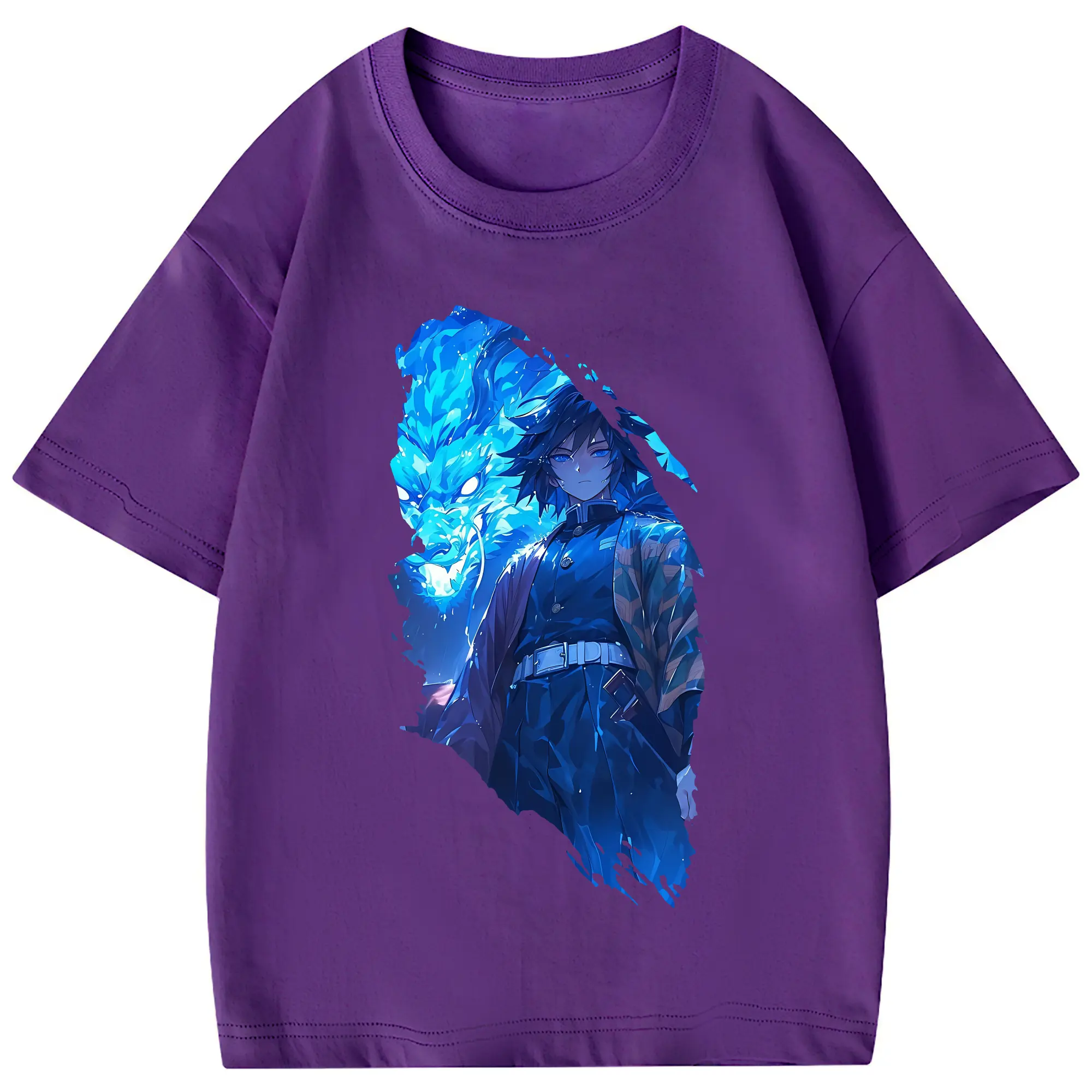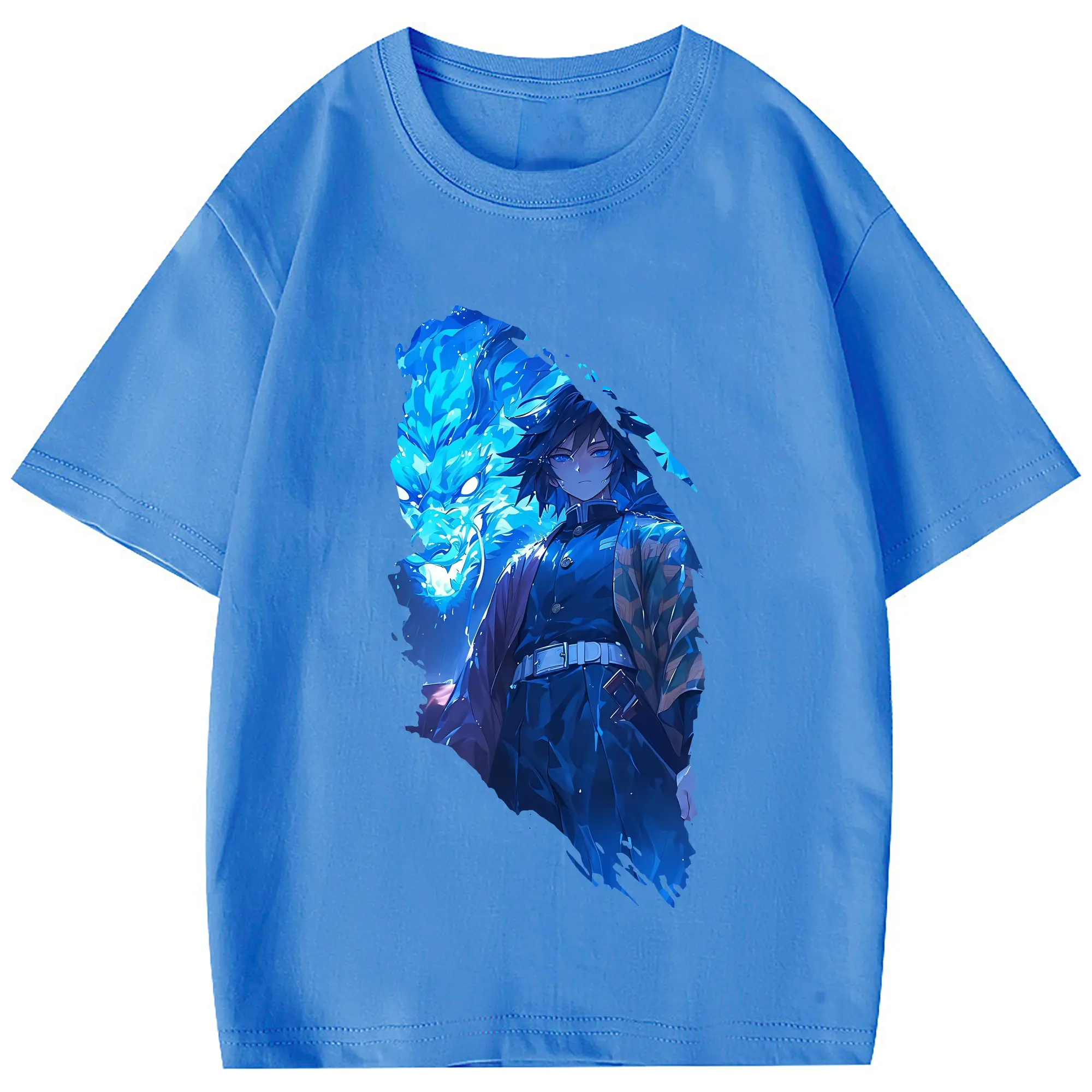 鬼滅の刃 グッズ,冨岡 義勇 - 綿100% 半袖Tシャツ ・ フロントプリント ・ 快適 通気性 ・ 日常使い 散歩 スポーツ用
