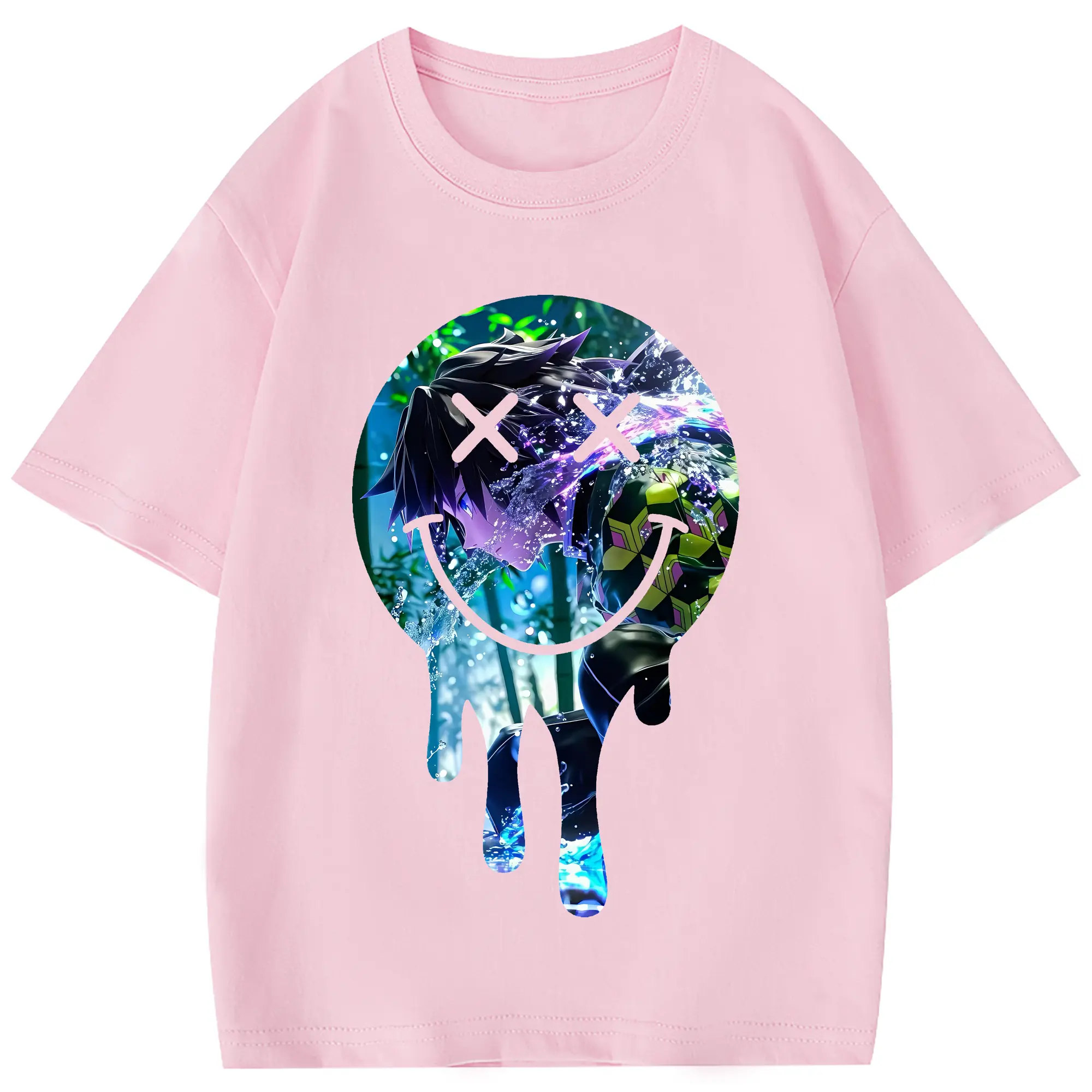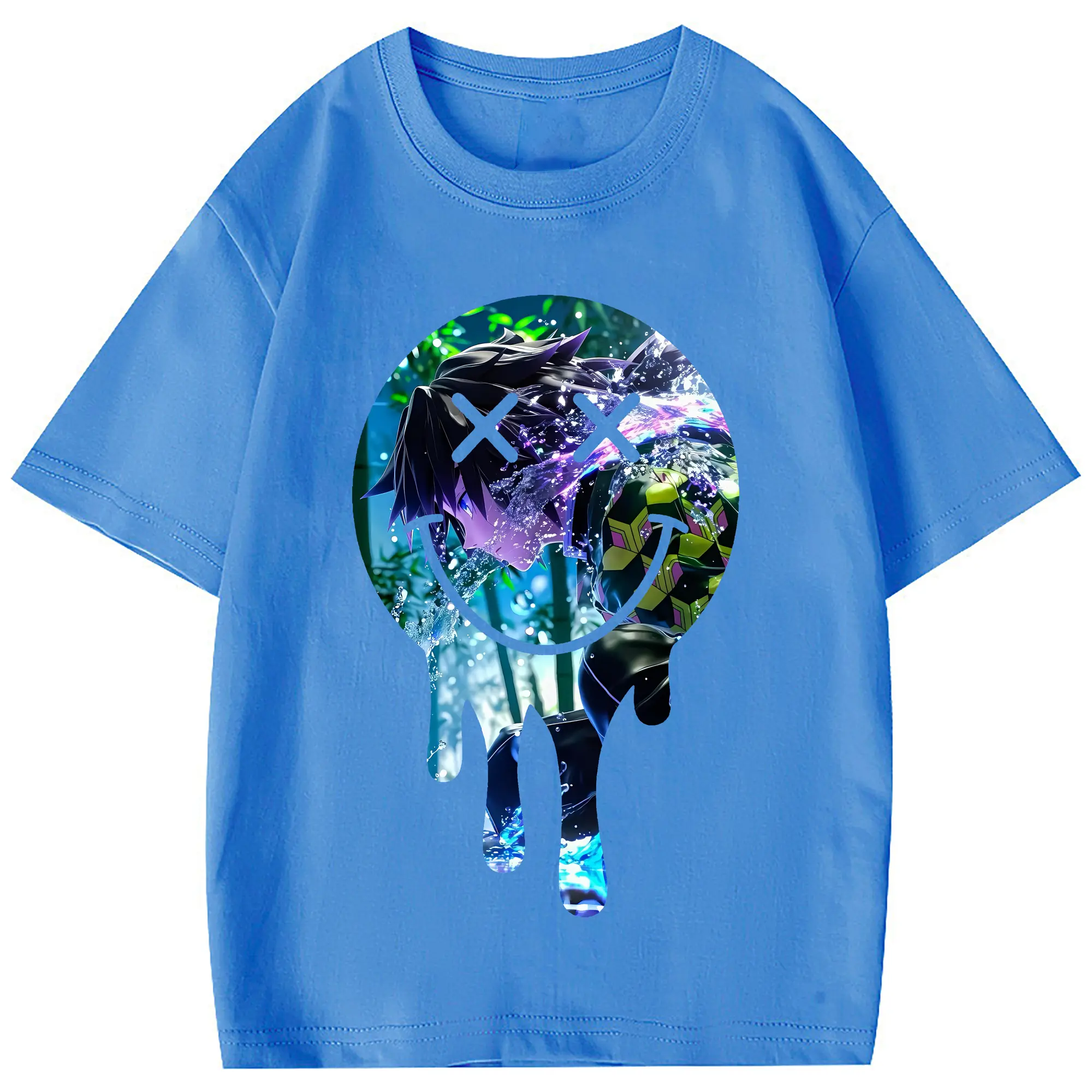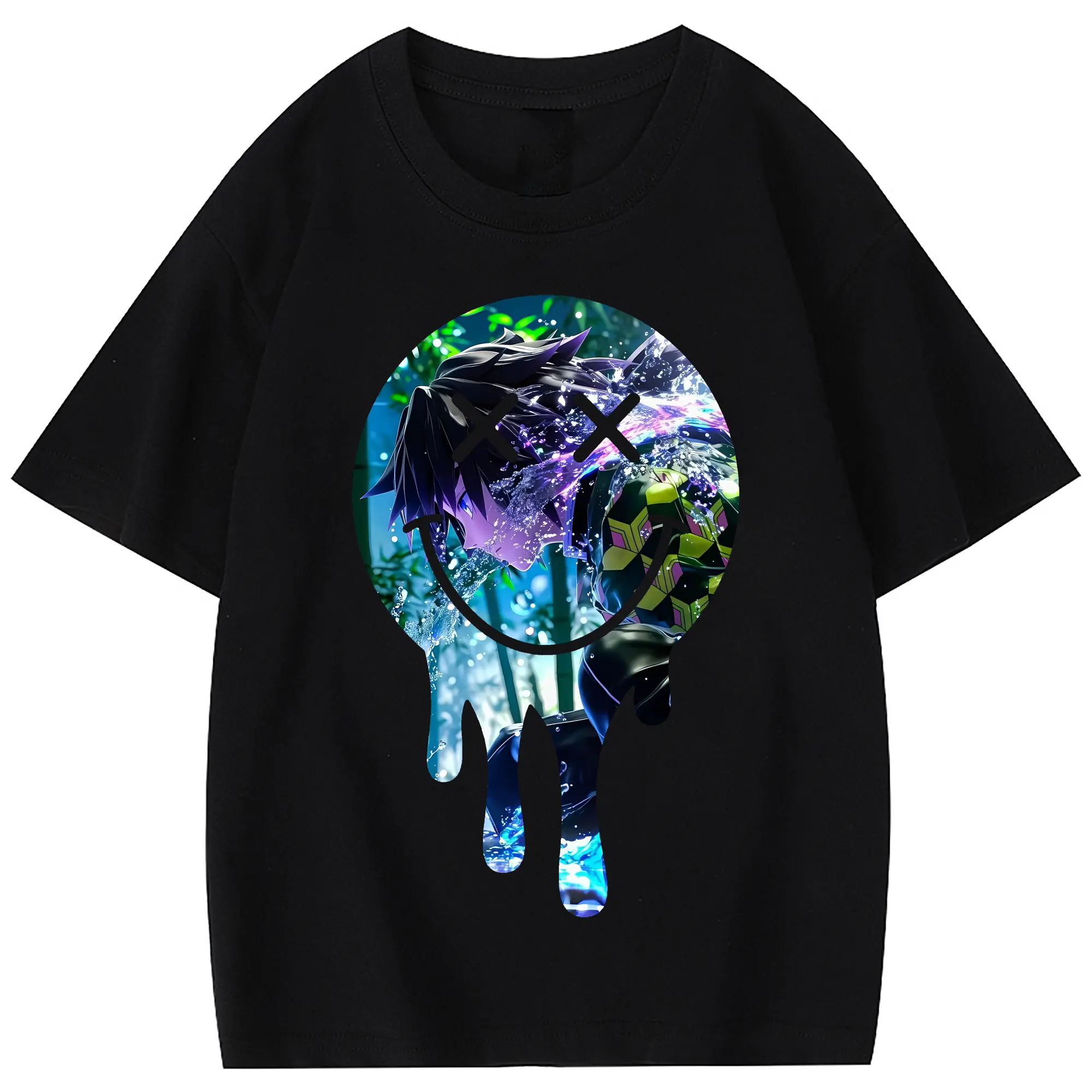 鬼滅の刃 グッズ,冨岡 義勇 - 綿100% 半袖Tシャツ ・ フロントプリント ・ 快適 通気性 ・ 日常使い 散歩 スポーツ用