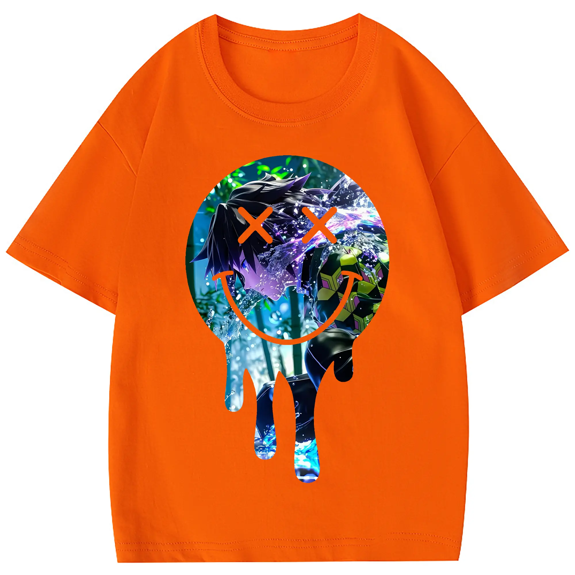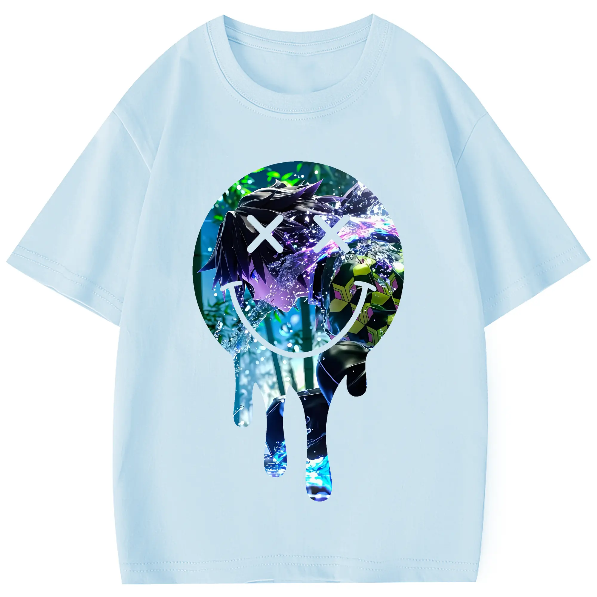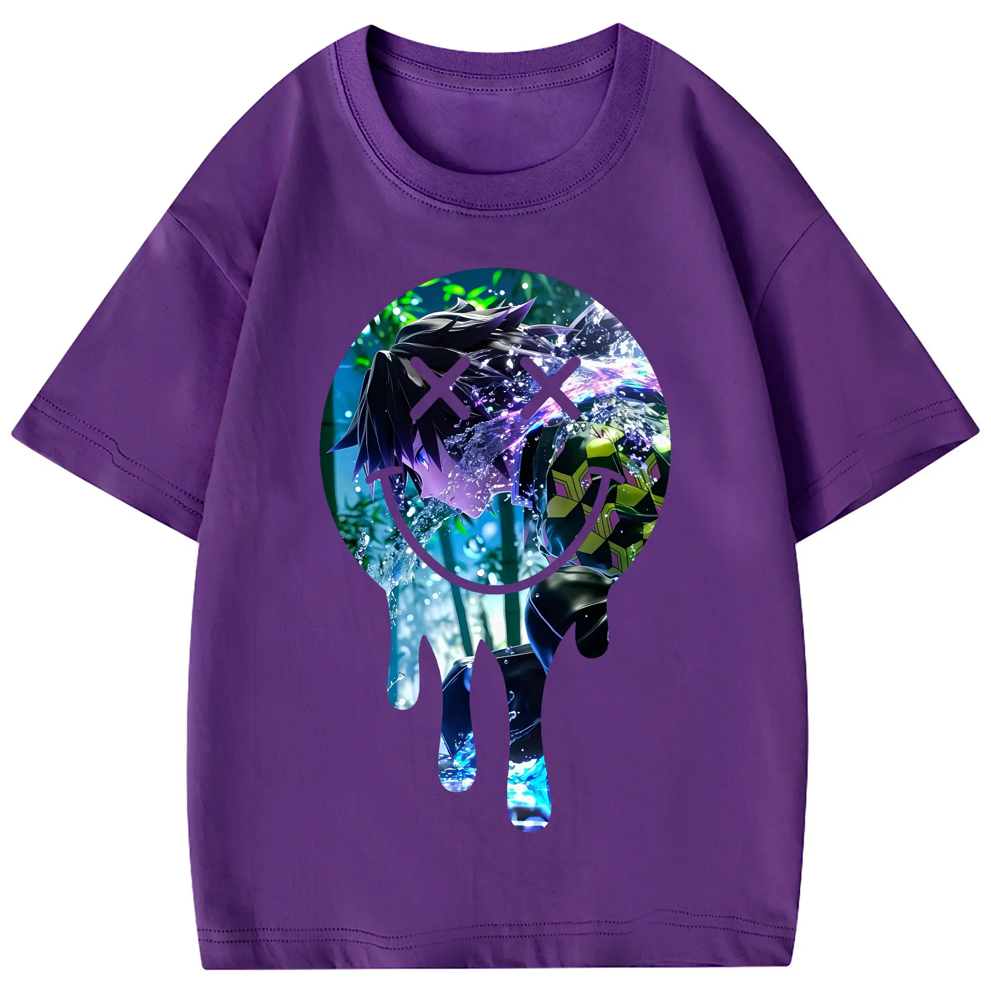 鬼滅の刃 グッズ,冨岡 義勇 - 綿100% 半袖Tシャツ ・ フロントプリント ・ 快適 通気性 ・ 日常使い 散歩 スポーツ用