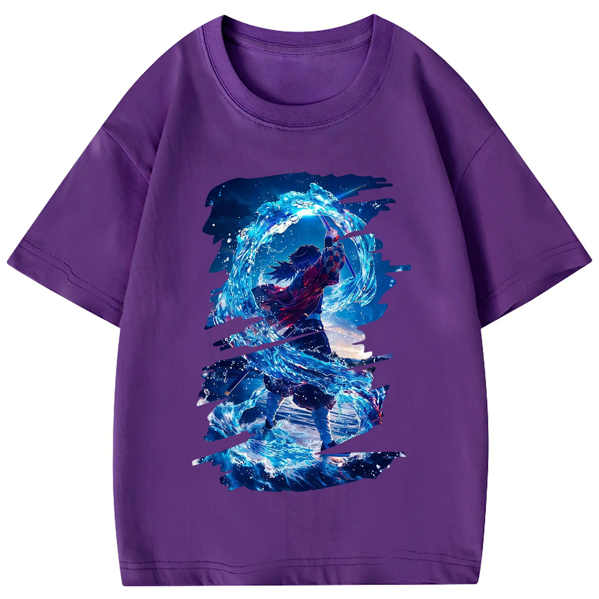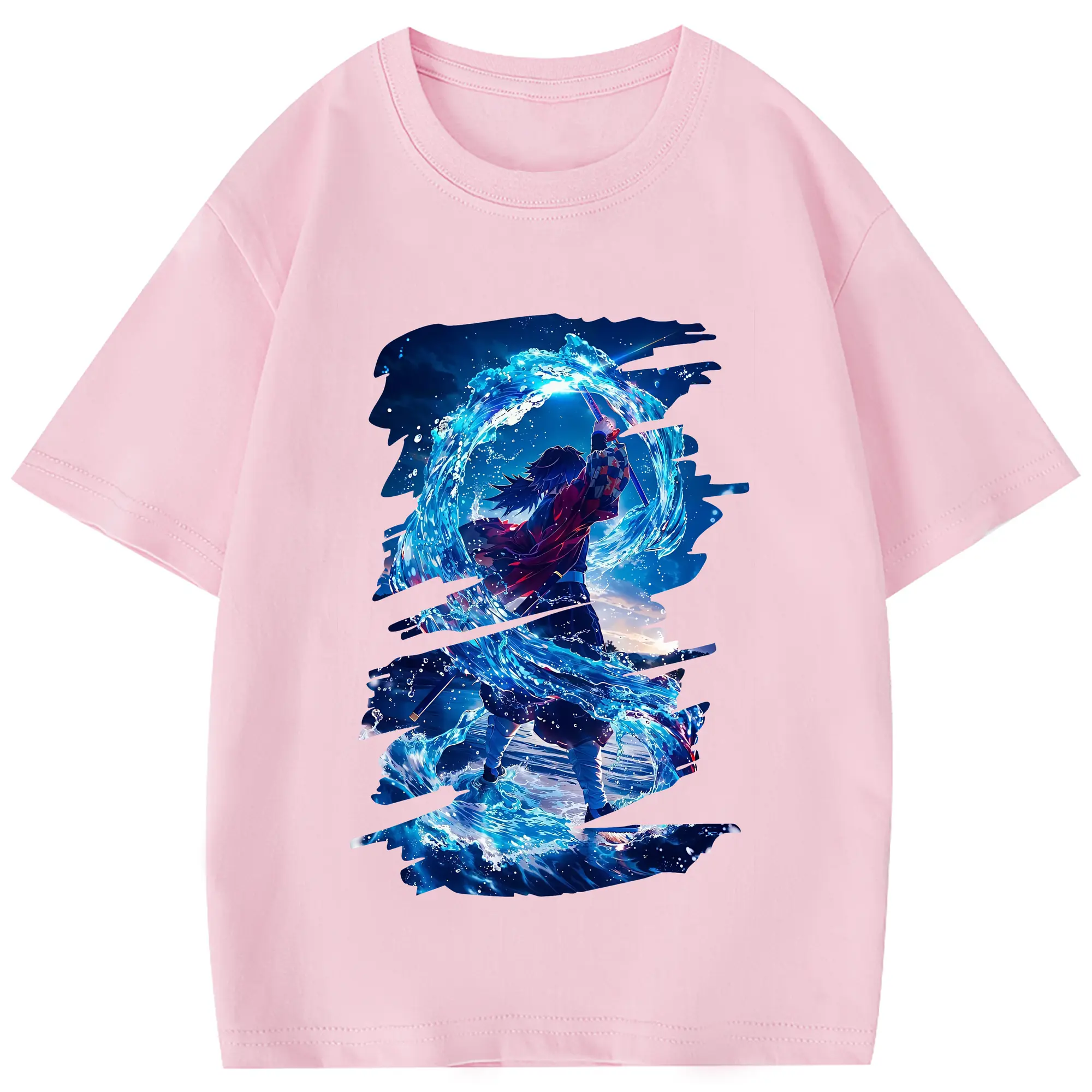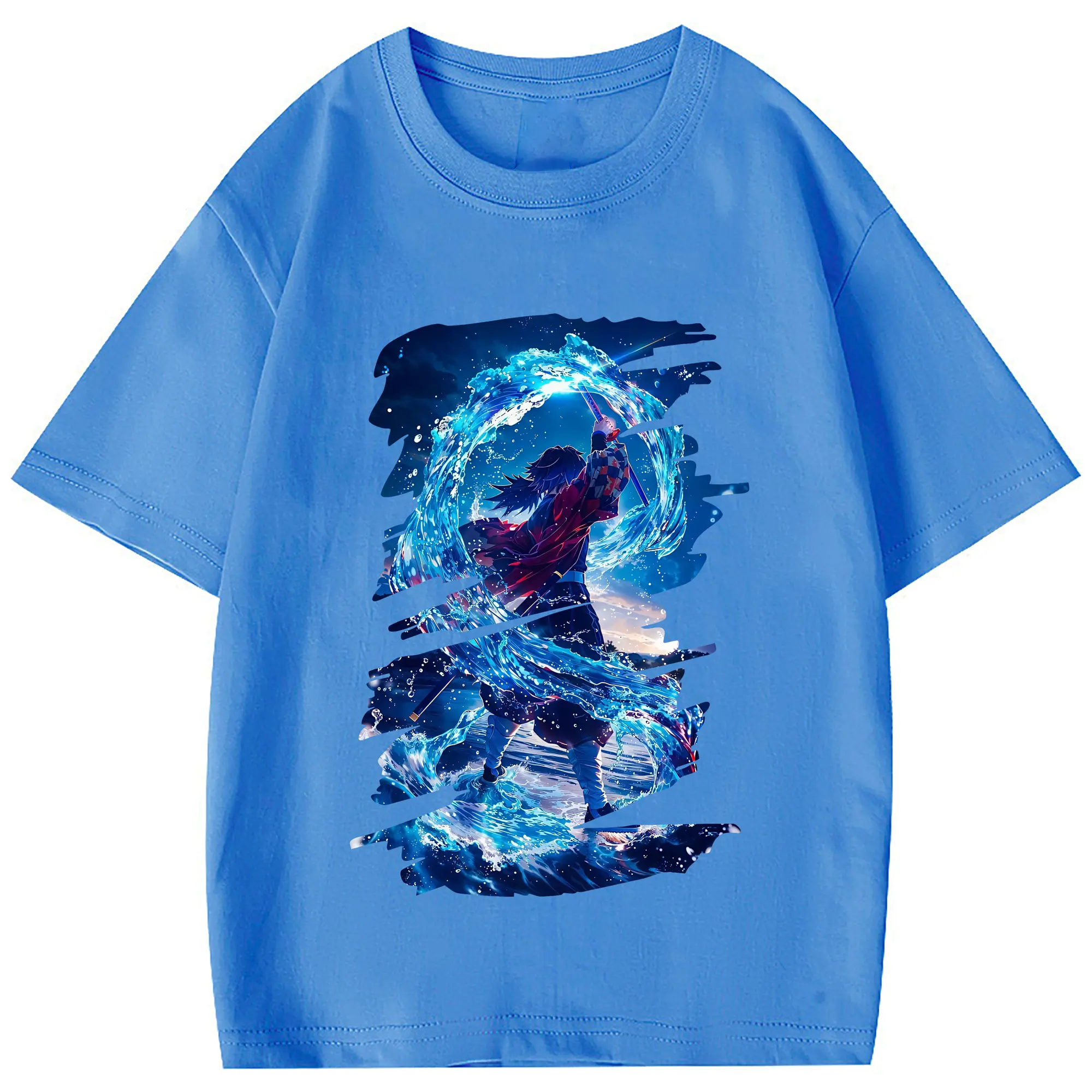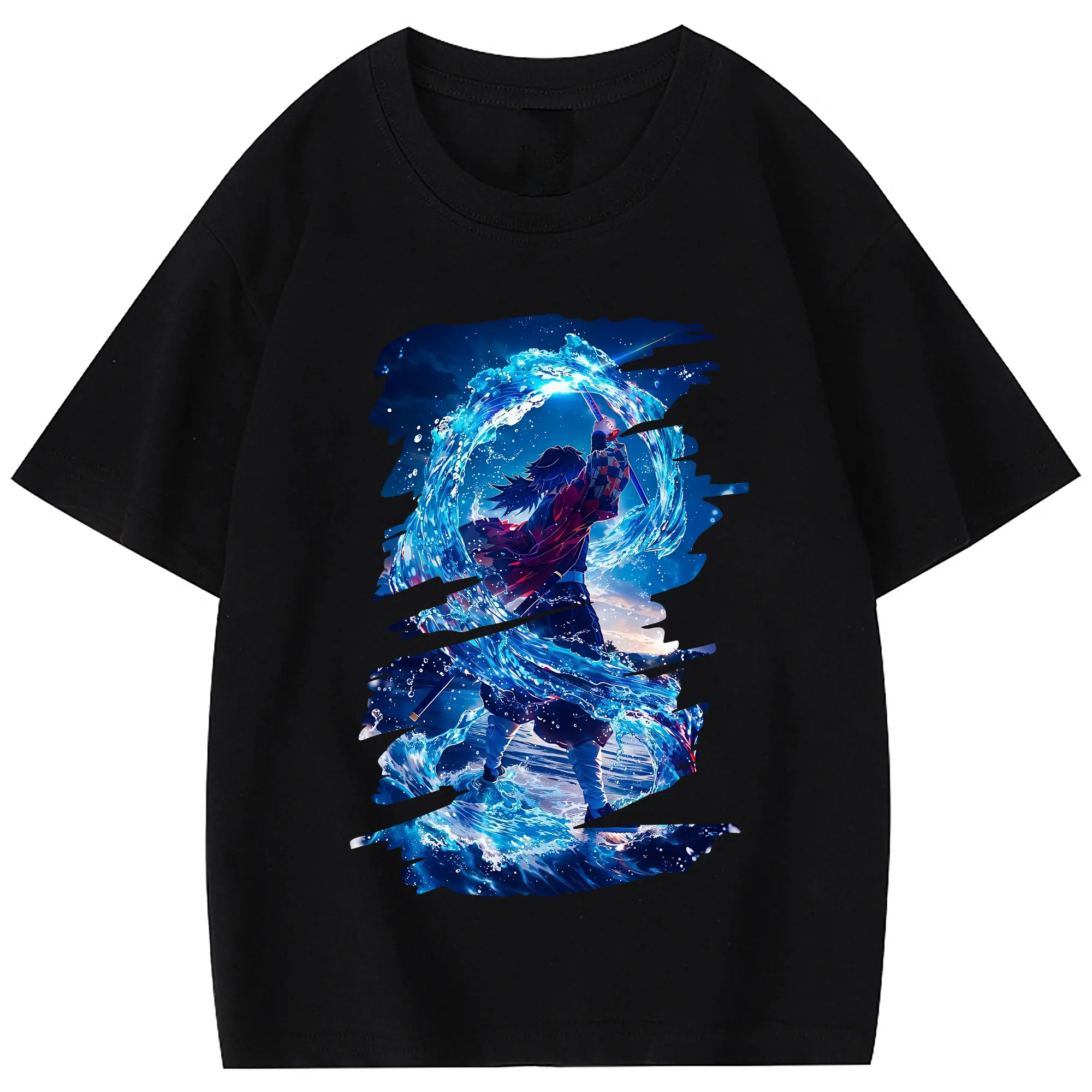 鬼滅の刃 グッズ,冨岡 義勇 - 綿100% 半袖Tシャツ ・ フロントプリント ・ 快適 通気性 ・ 日常使い 散歩 スポーツ用