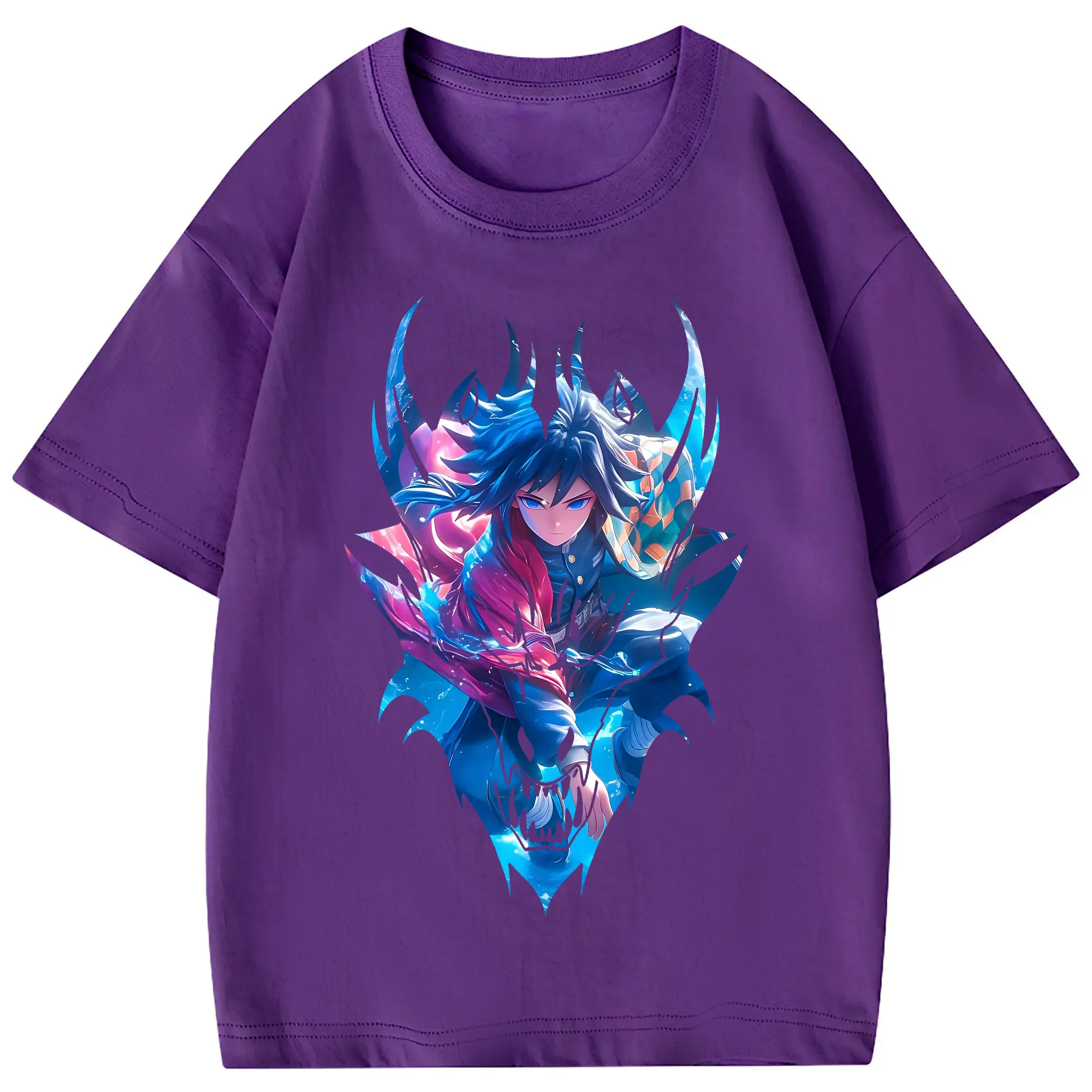 鬼滅の刃 グッズ,冨岡 義勇 - 綿100% 半袖Tシャツ ・ フロントプリント ・ 快適 通気性 ・ 日常使い 散歩 スポーツ用