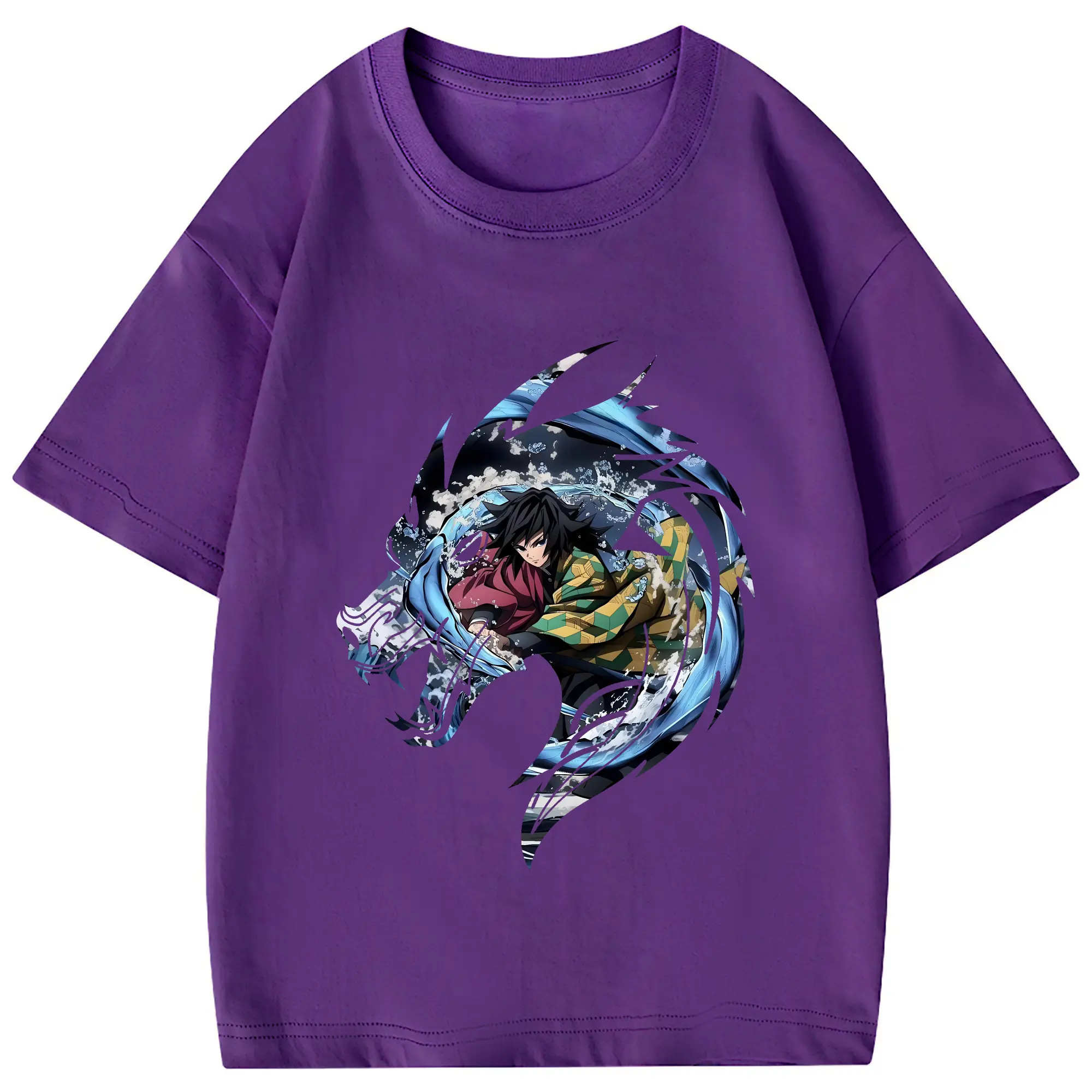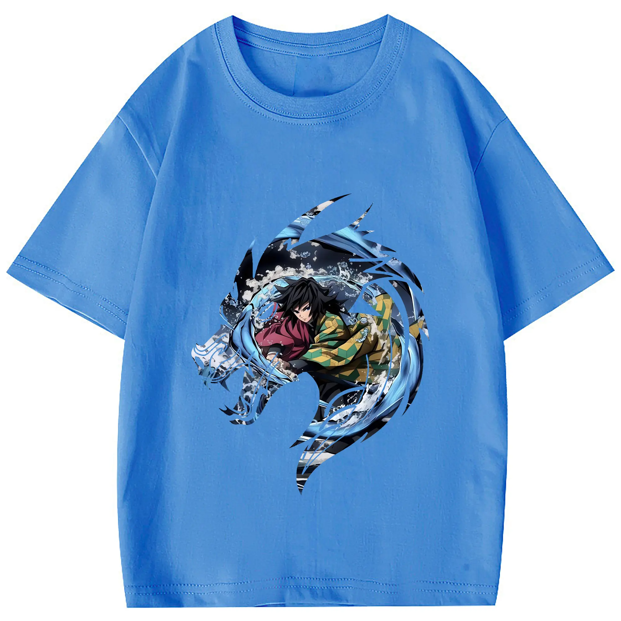 鬼滅の刃 グッズ,冨岡 義勇 - 綿100% 半袖Tシャツ ・ フロントプリント ・ 快適 通気性 ・ 日常使い 散歩 スポーツ用