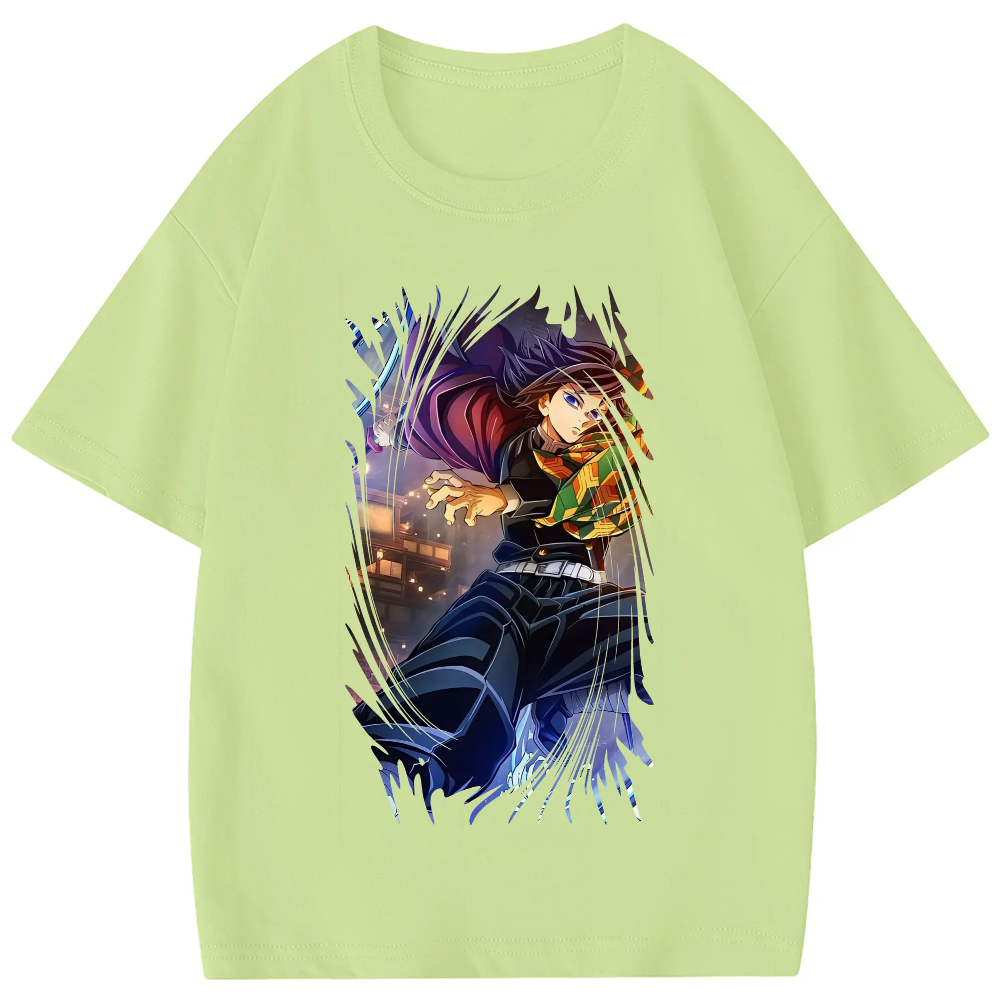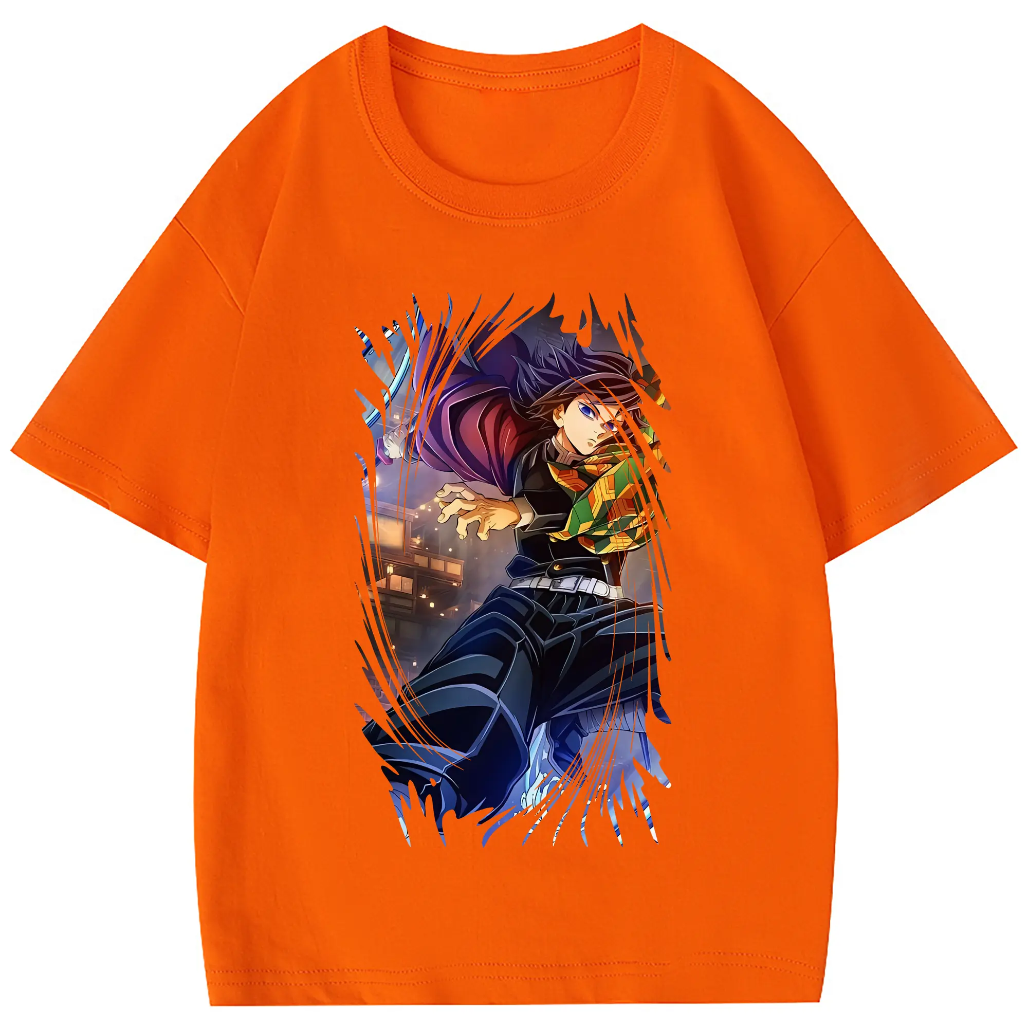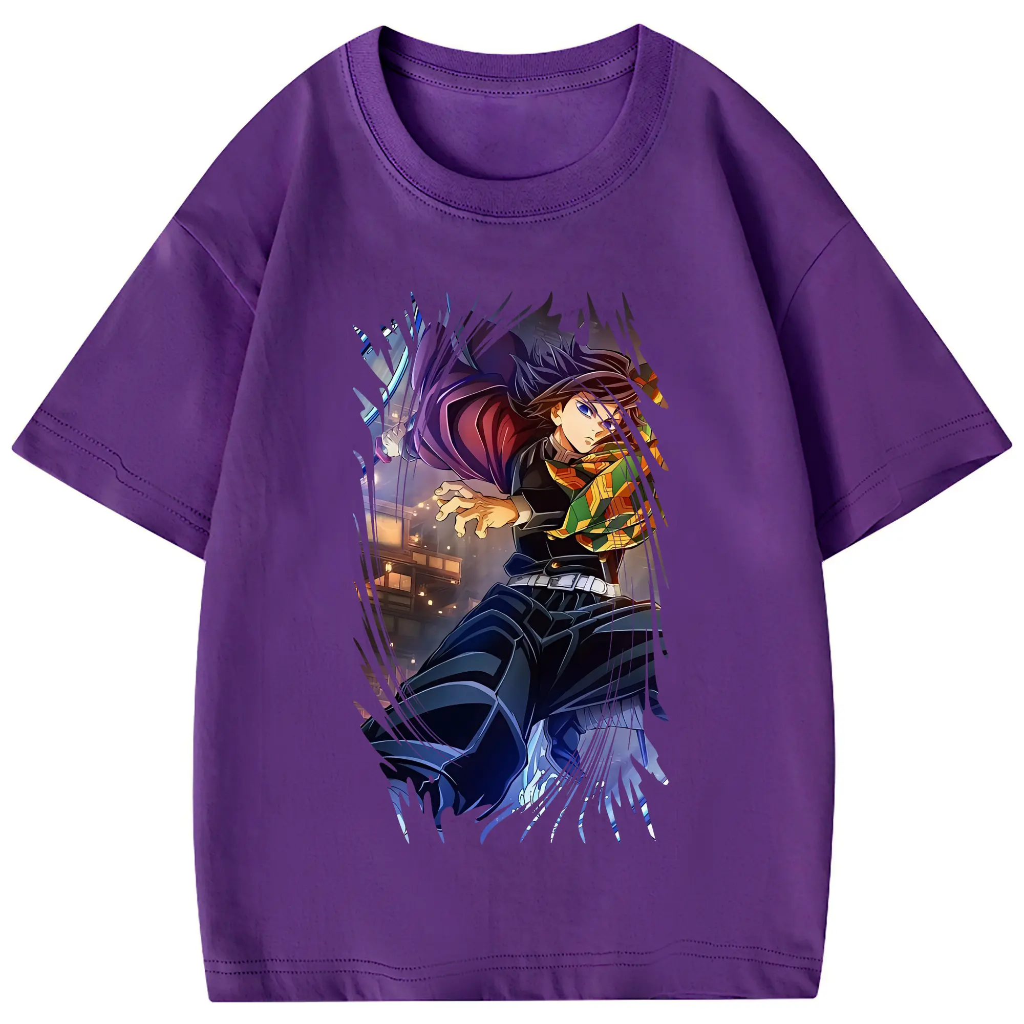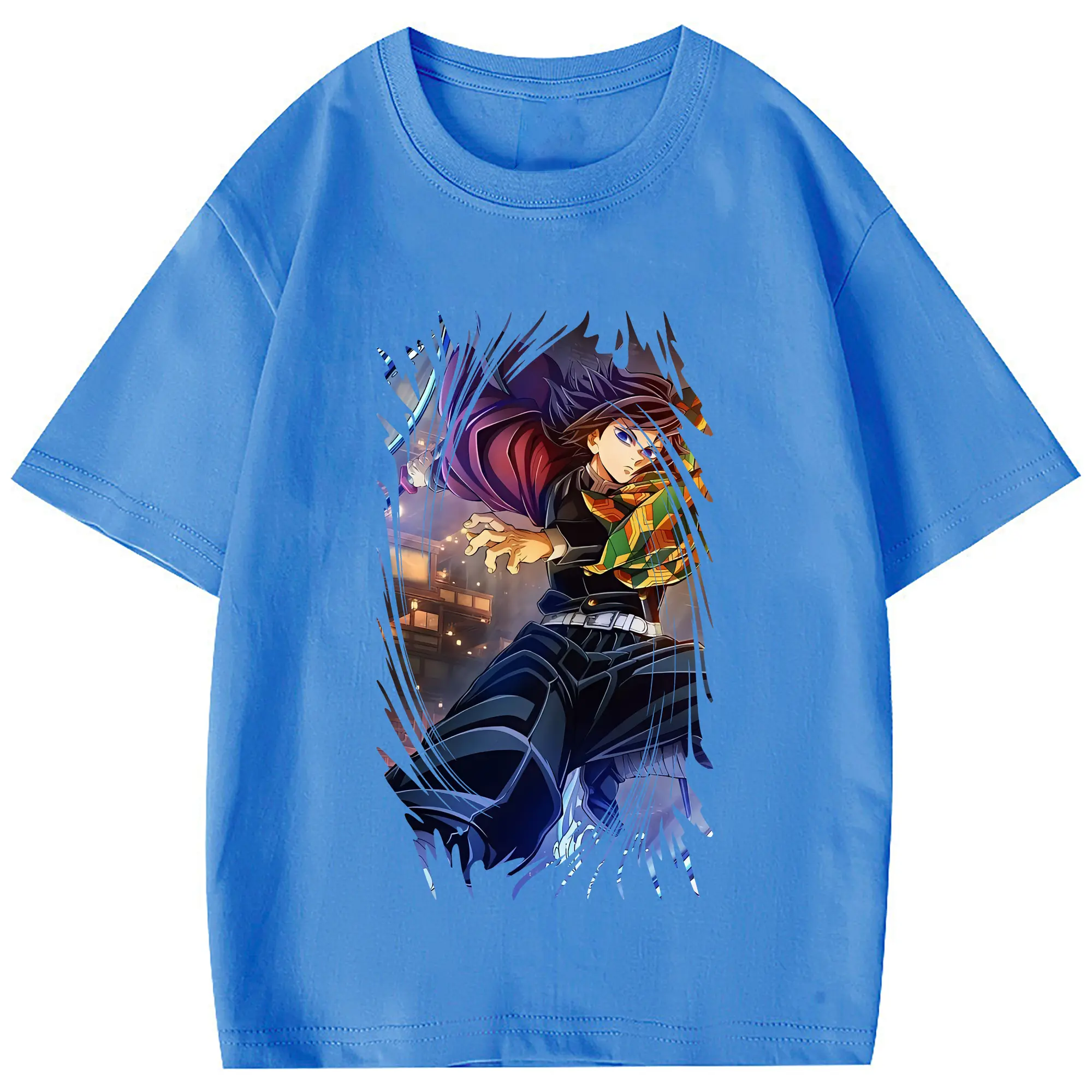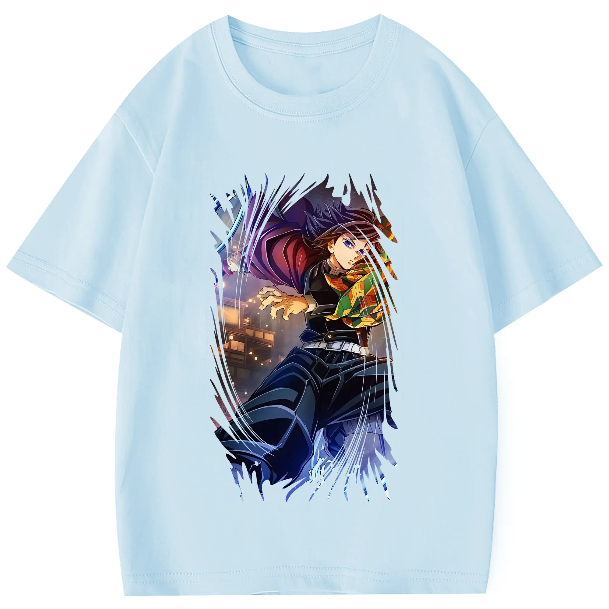 鬼滅の刃 グッズ,冨岡 義勇 - 綿100% 半袖Tシャツ ・ フロントプリント ・ 快適 通気性 ・ 日常使い 散歩 スポーツ用