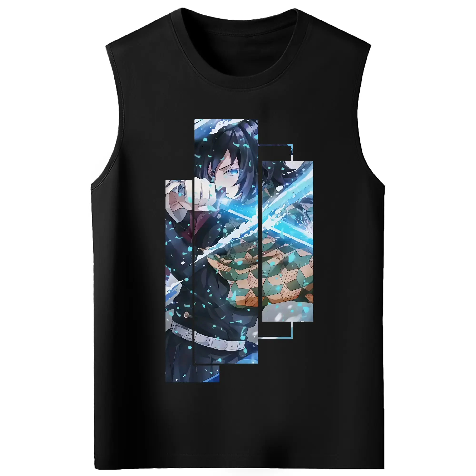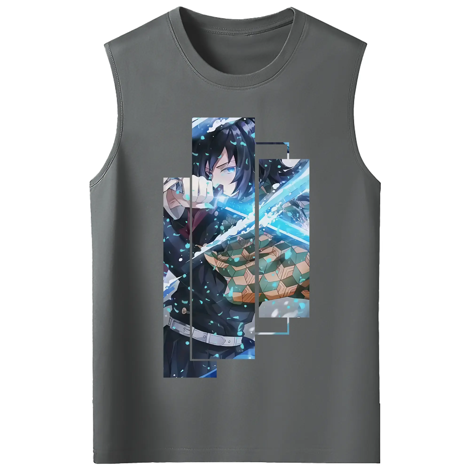 鬼滅の刃 グッズ,冨岡 義勇 - コットン100% タンクトップ ・ フロントプリント ・ タイトフィット ・ 快適 通気性 ・ スポーツ カジュアル 散歩用